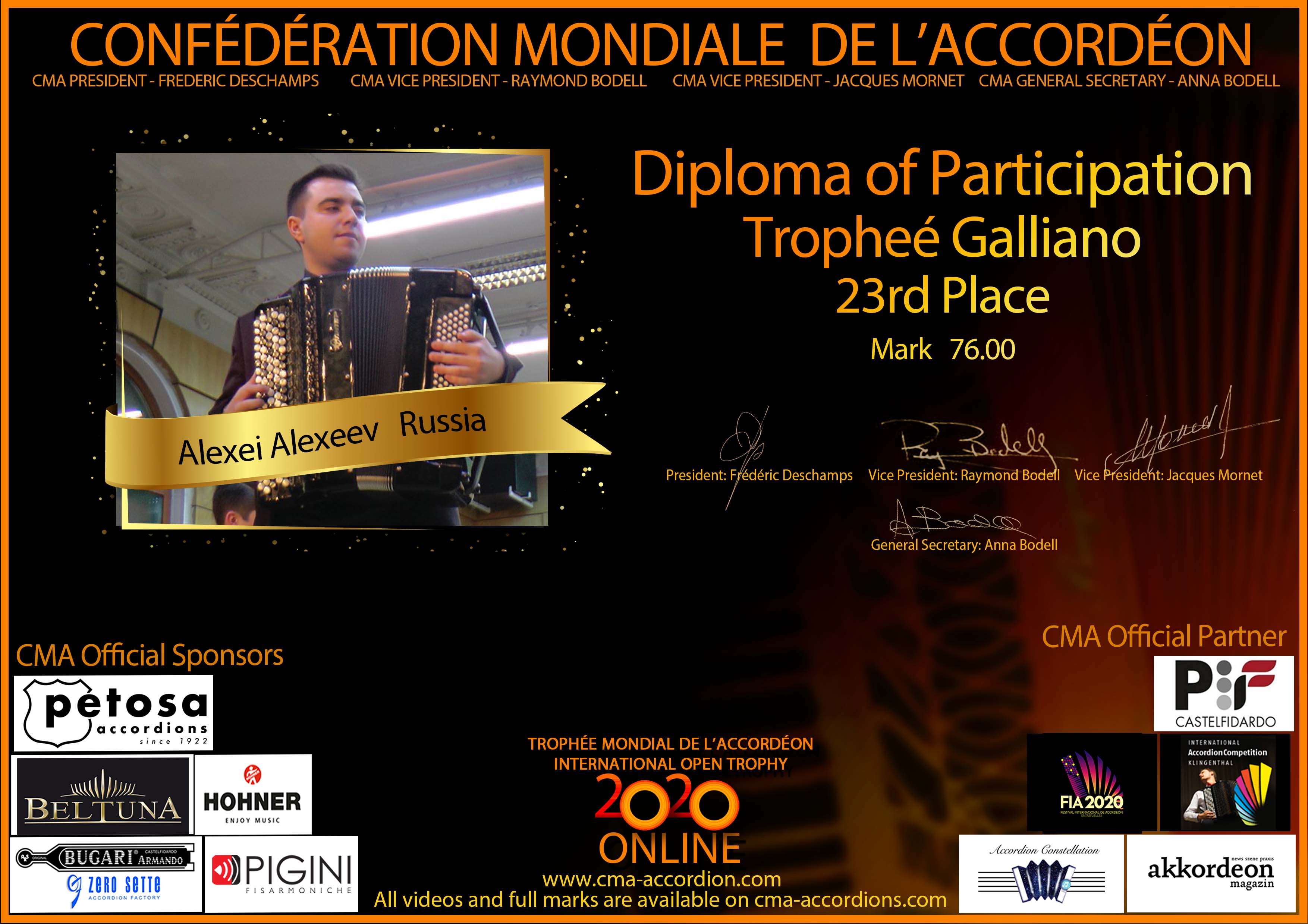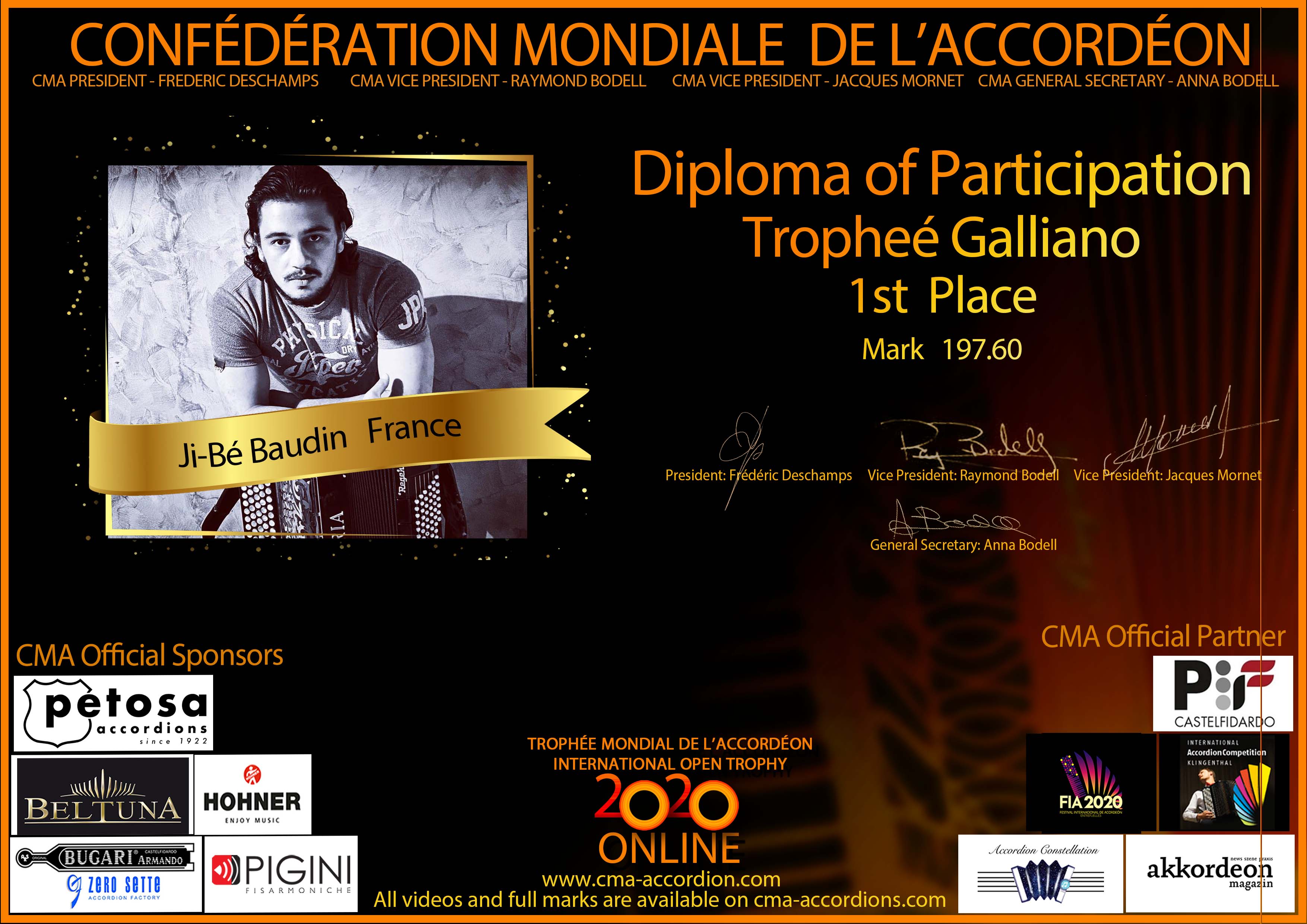 Candidates diploma of Trophee Galliano