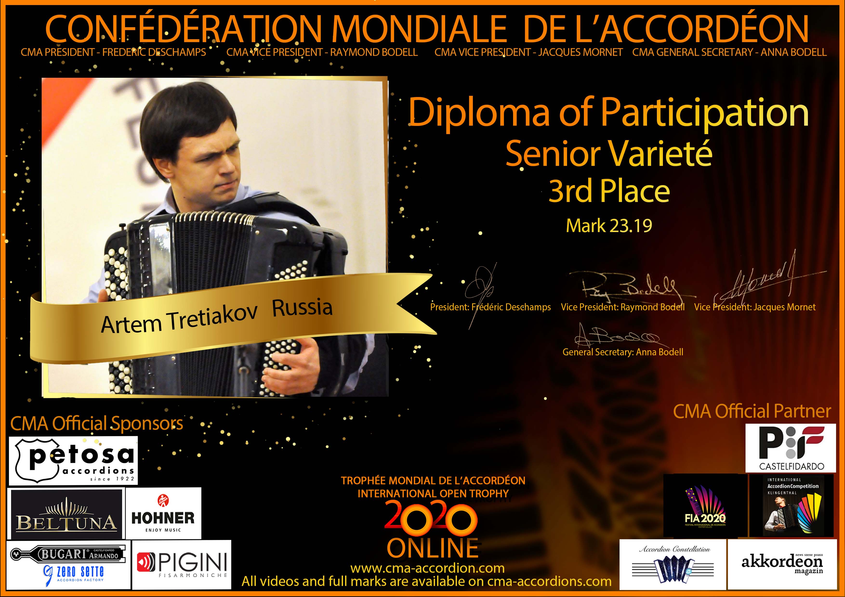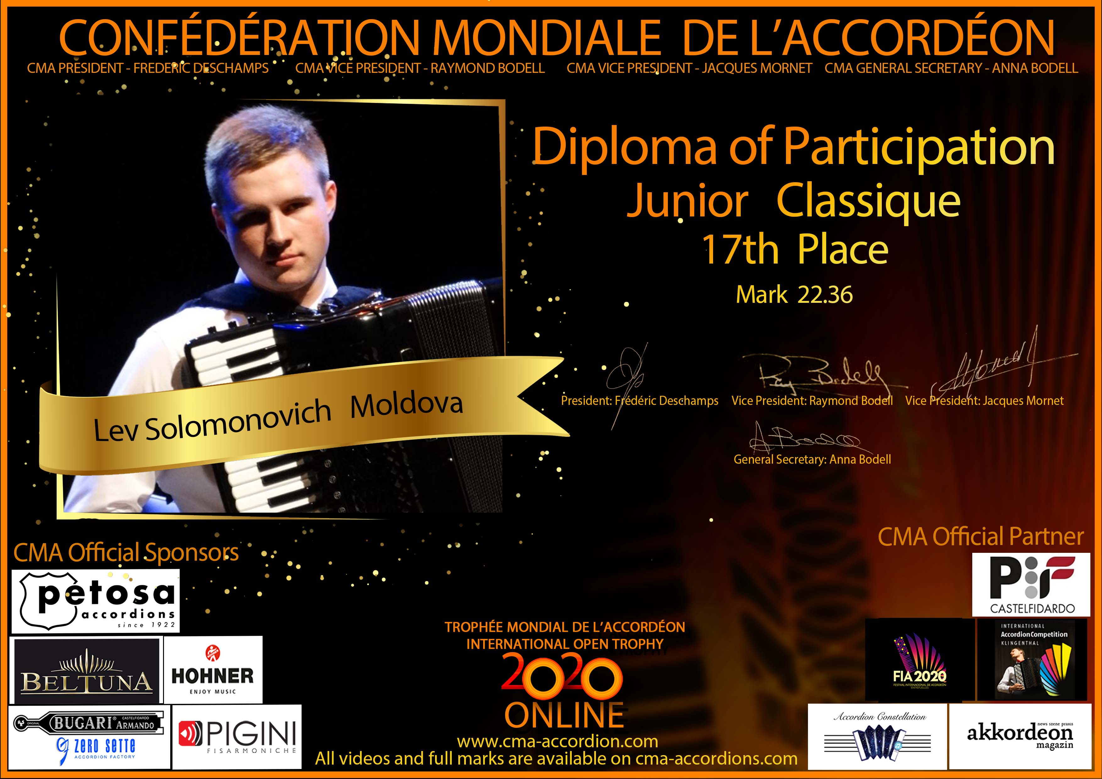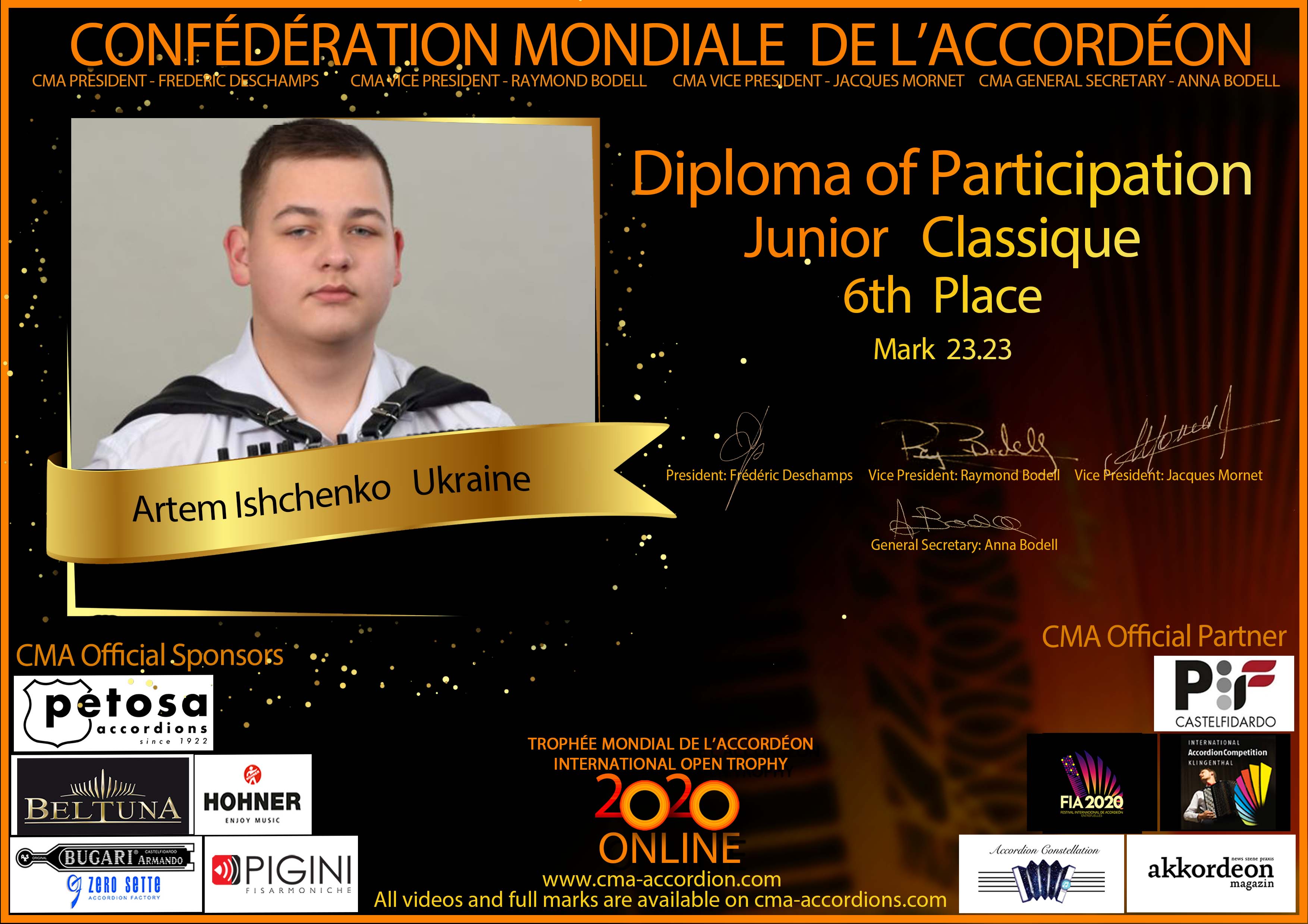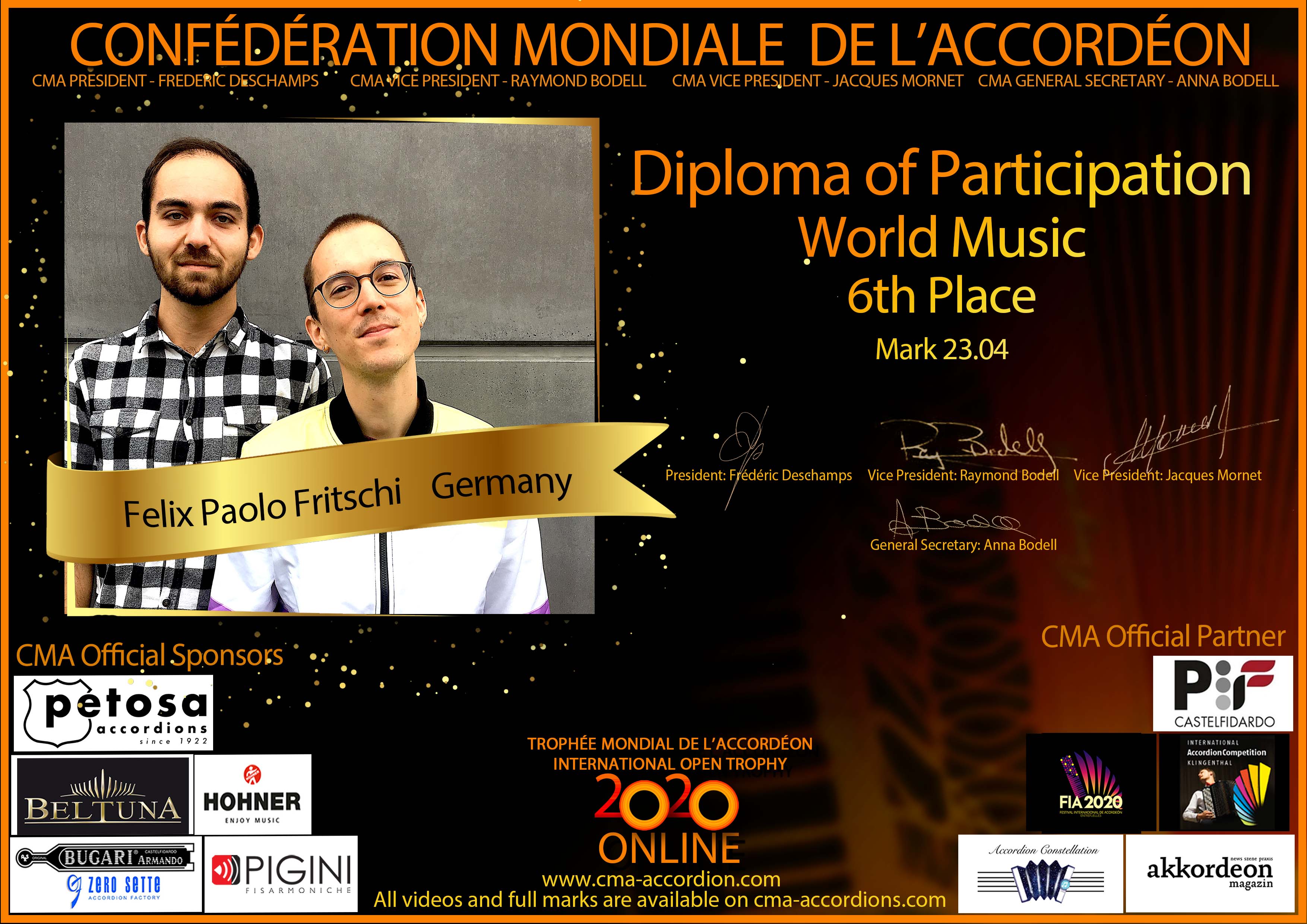 Candidates diploma of Trophee Mondial