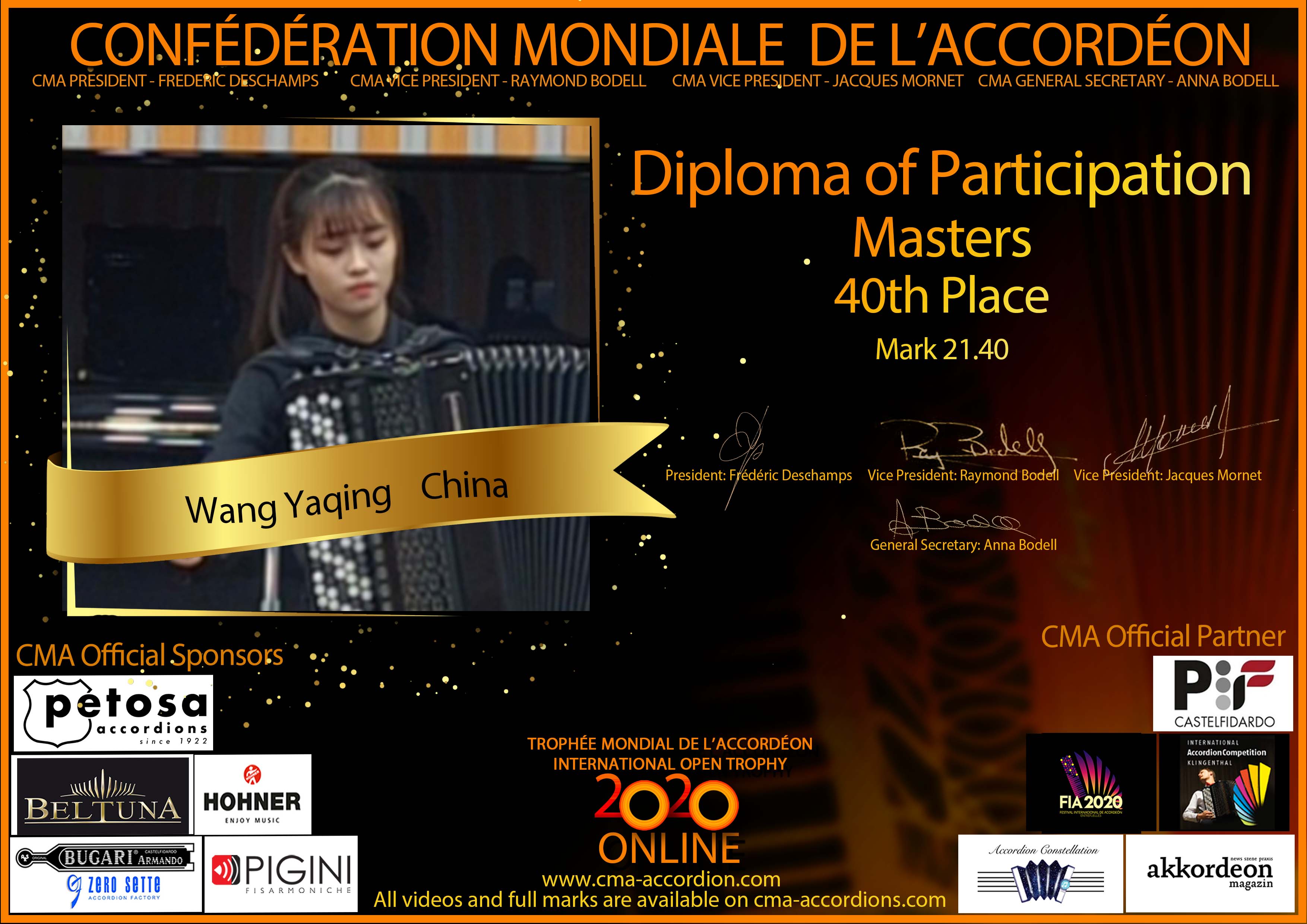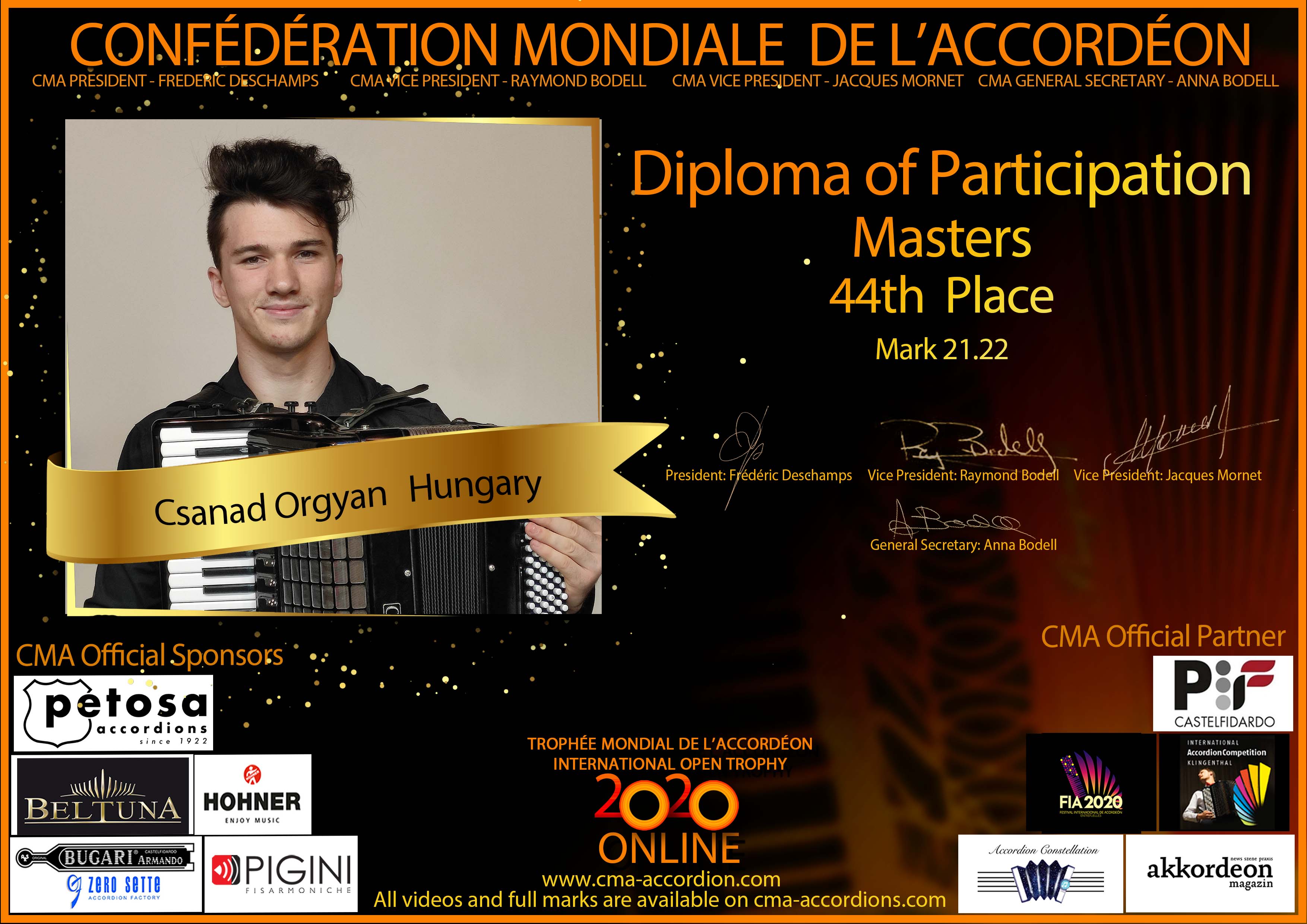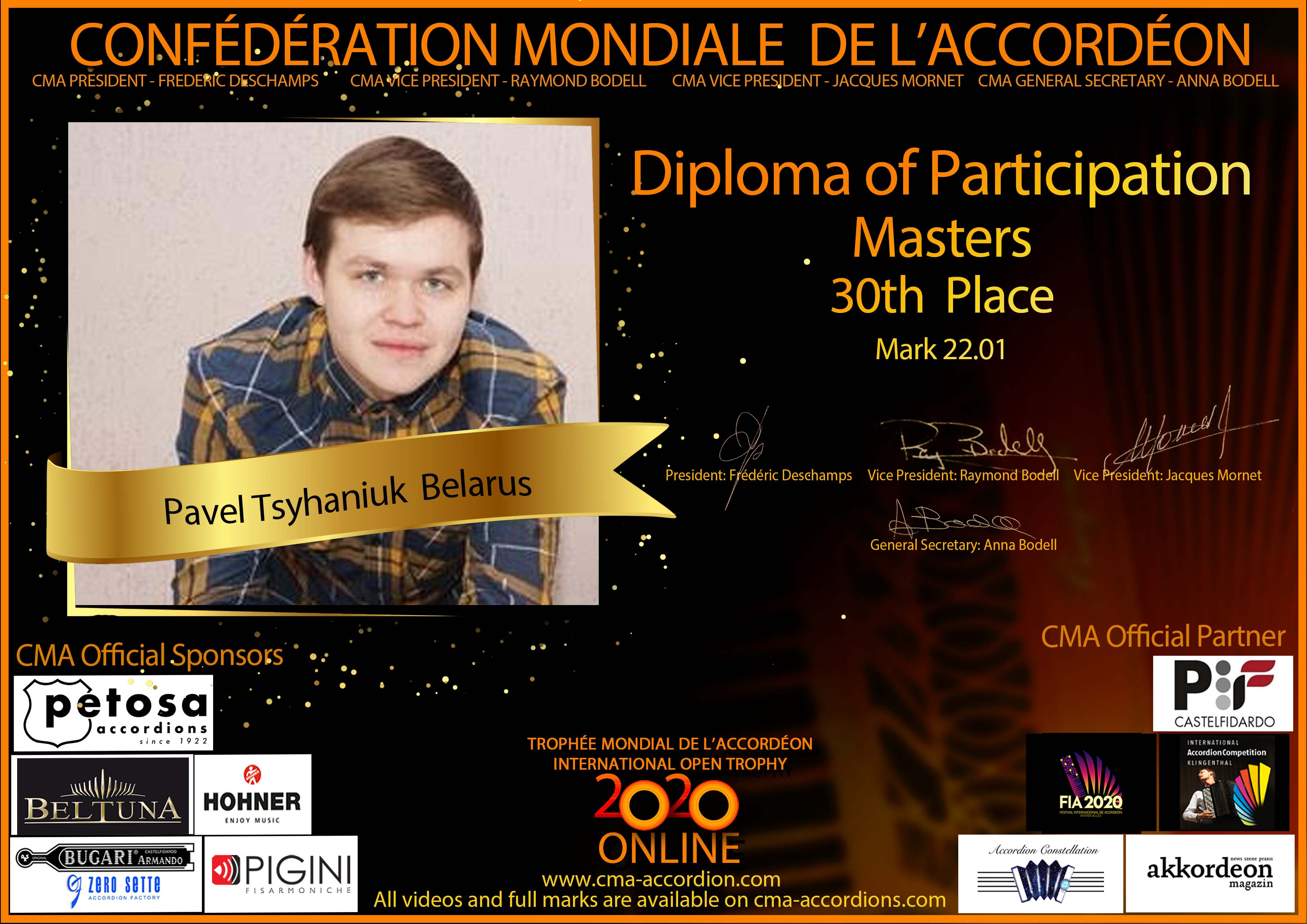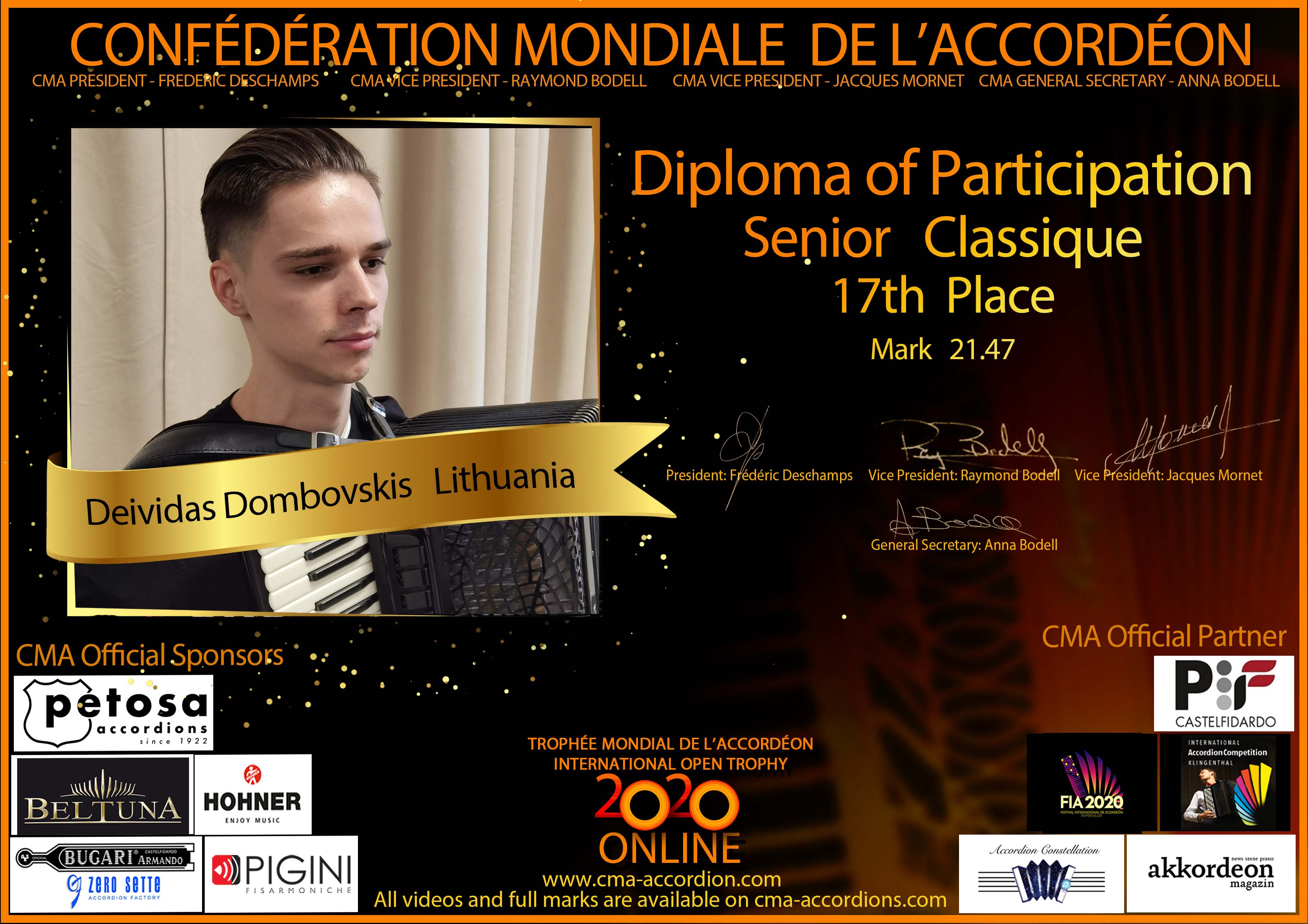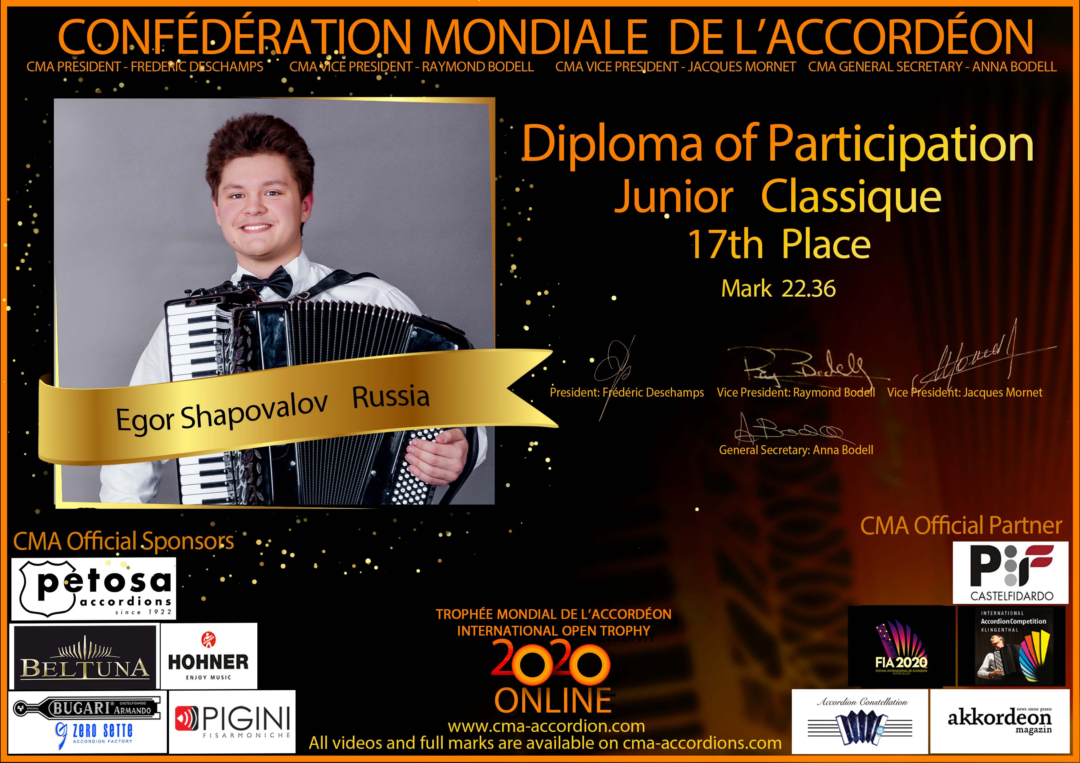 Candidates diploma of Trophee Mondial