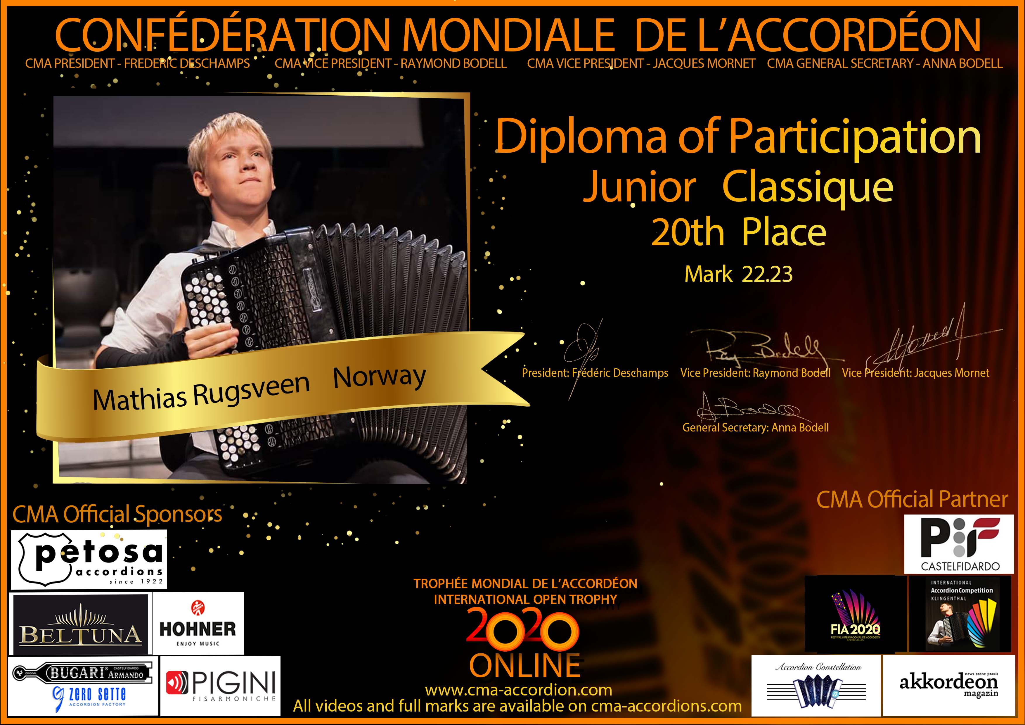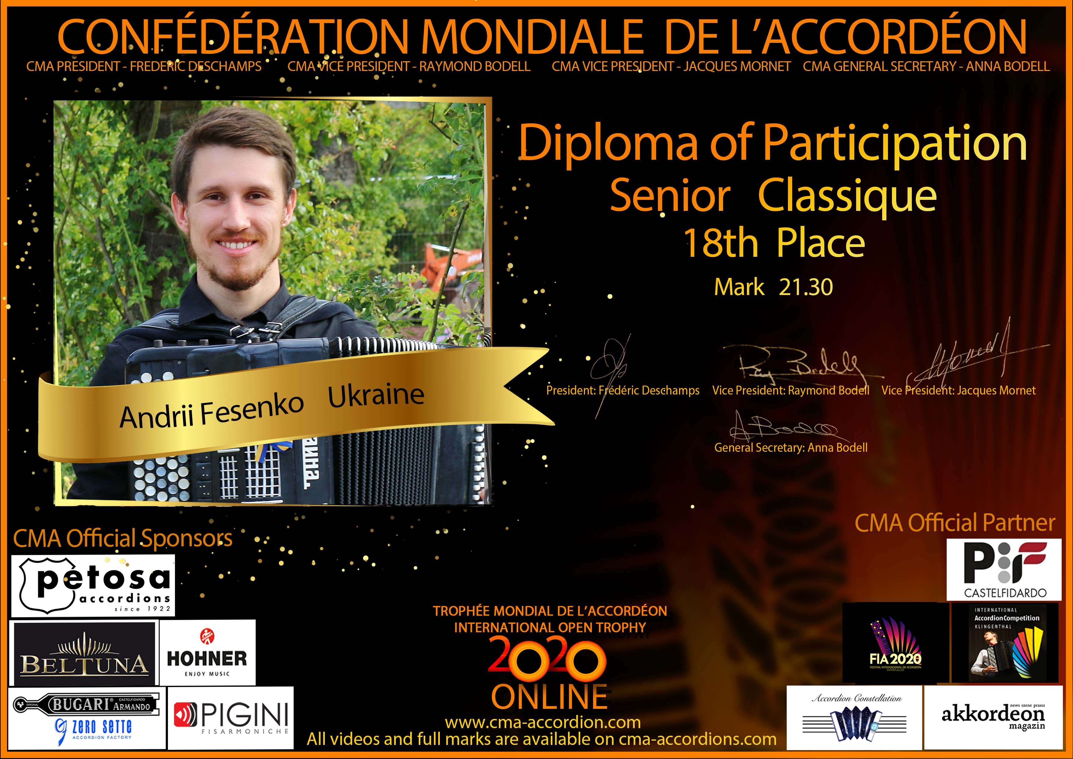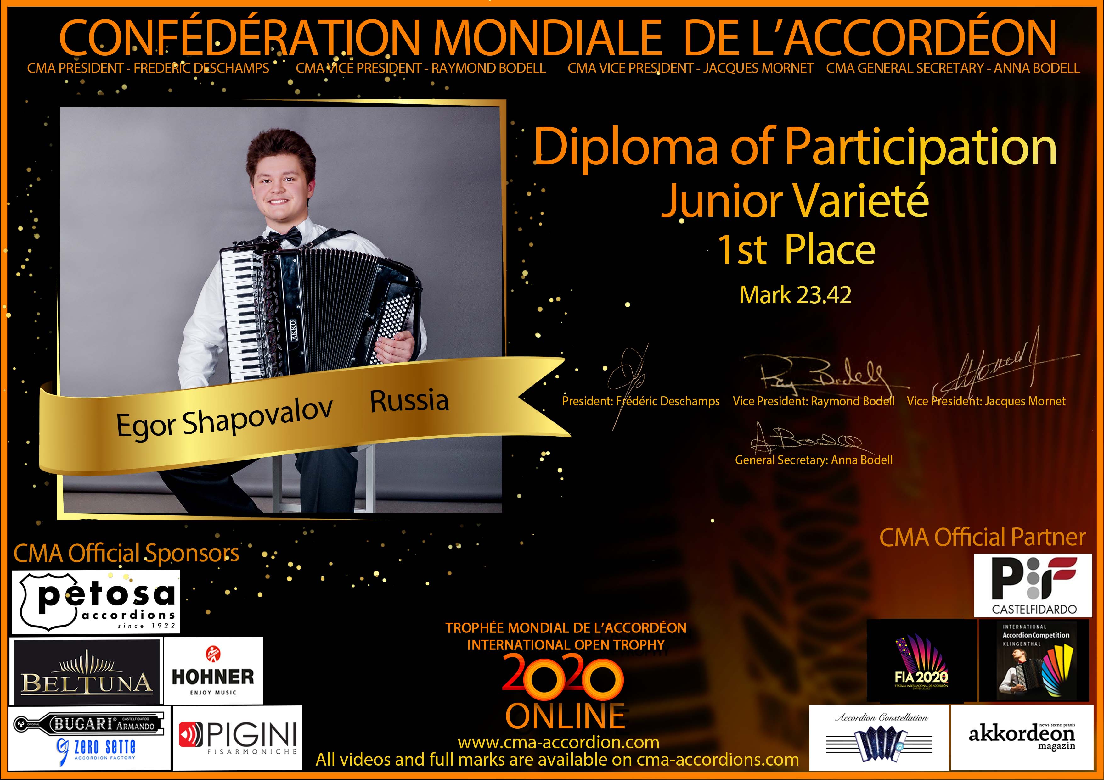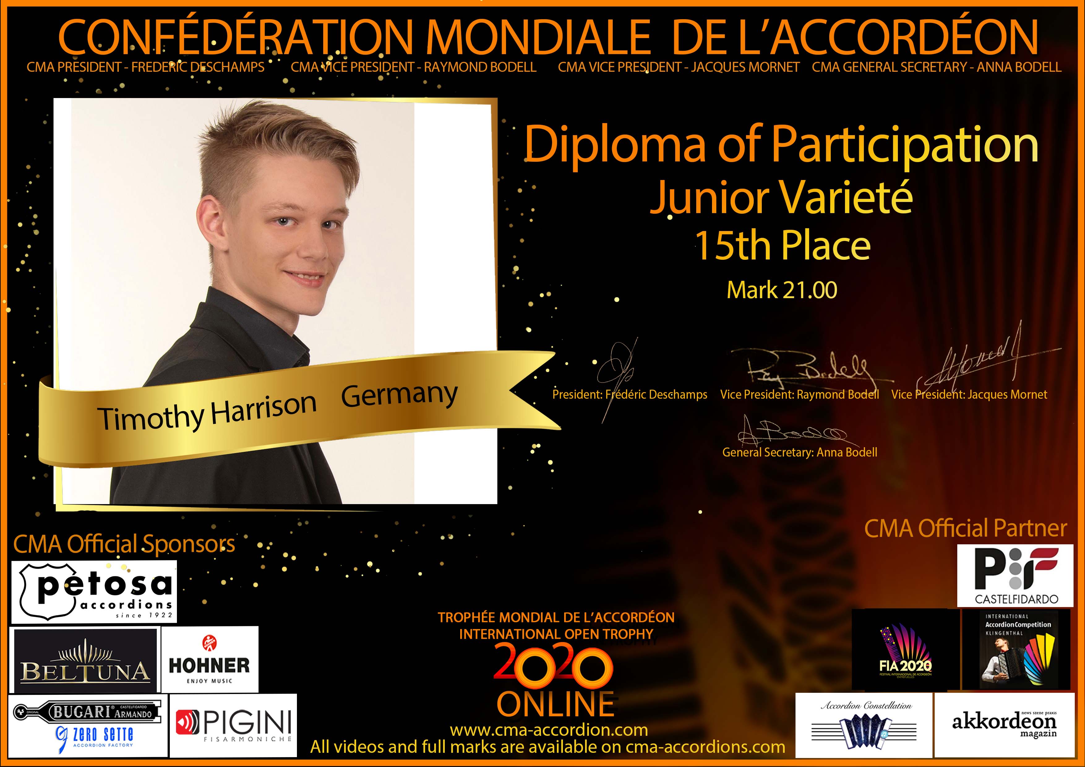 Candidates diploma of Trophee Mondial