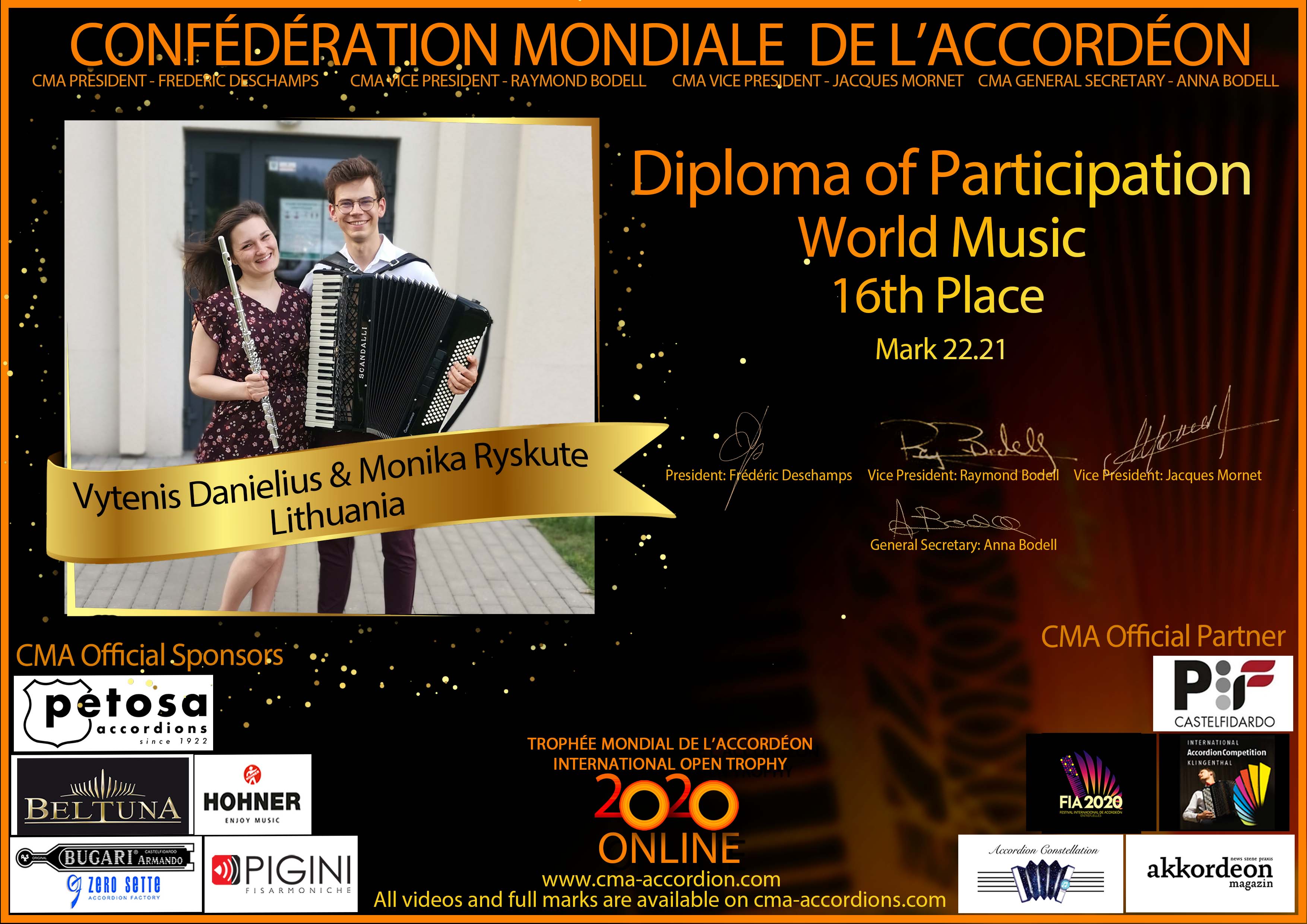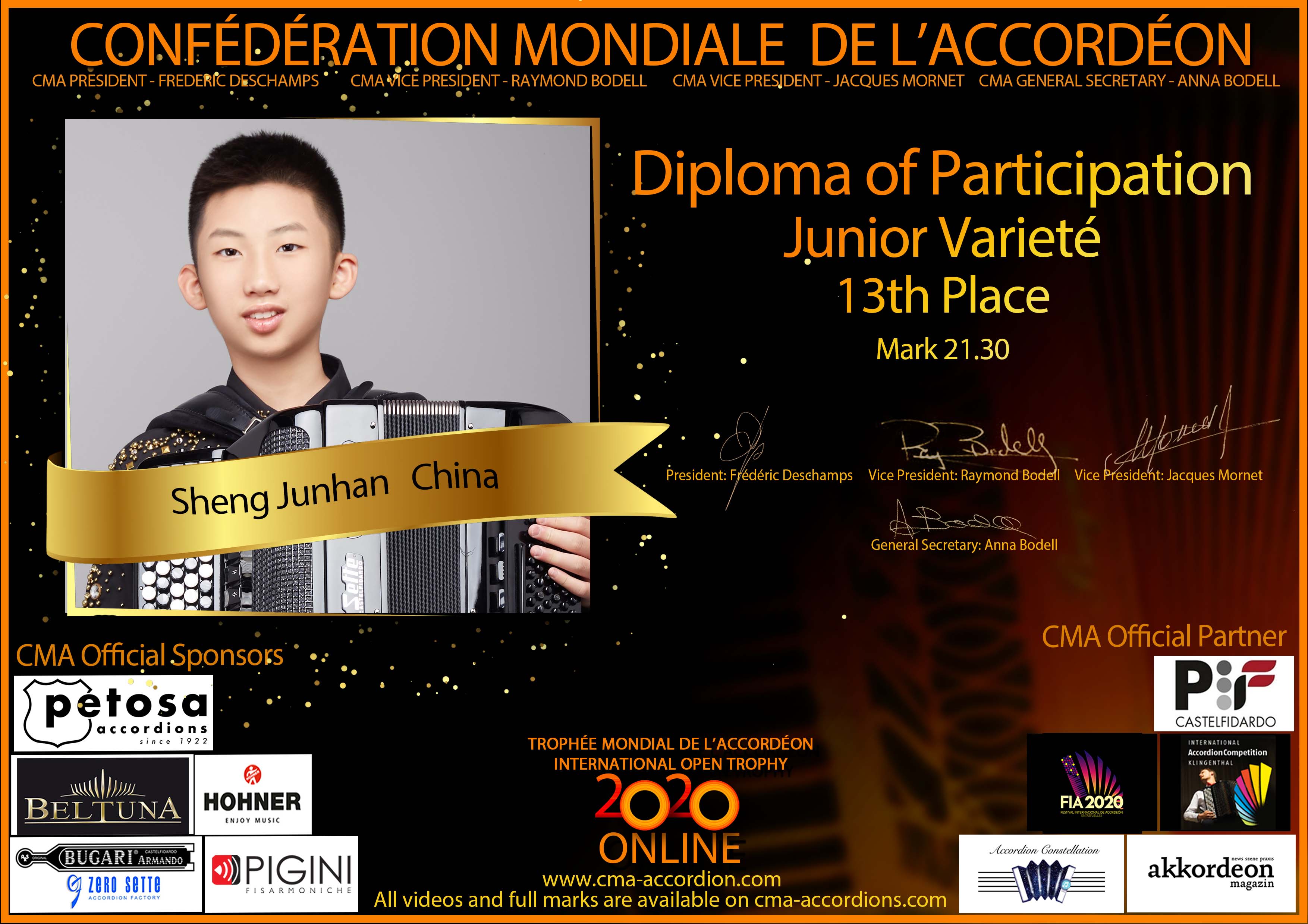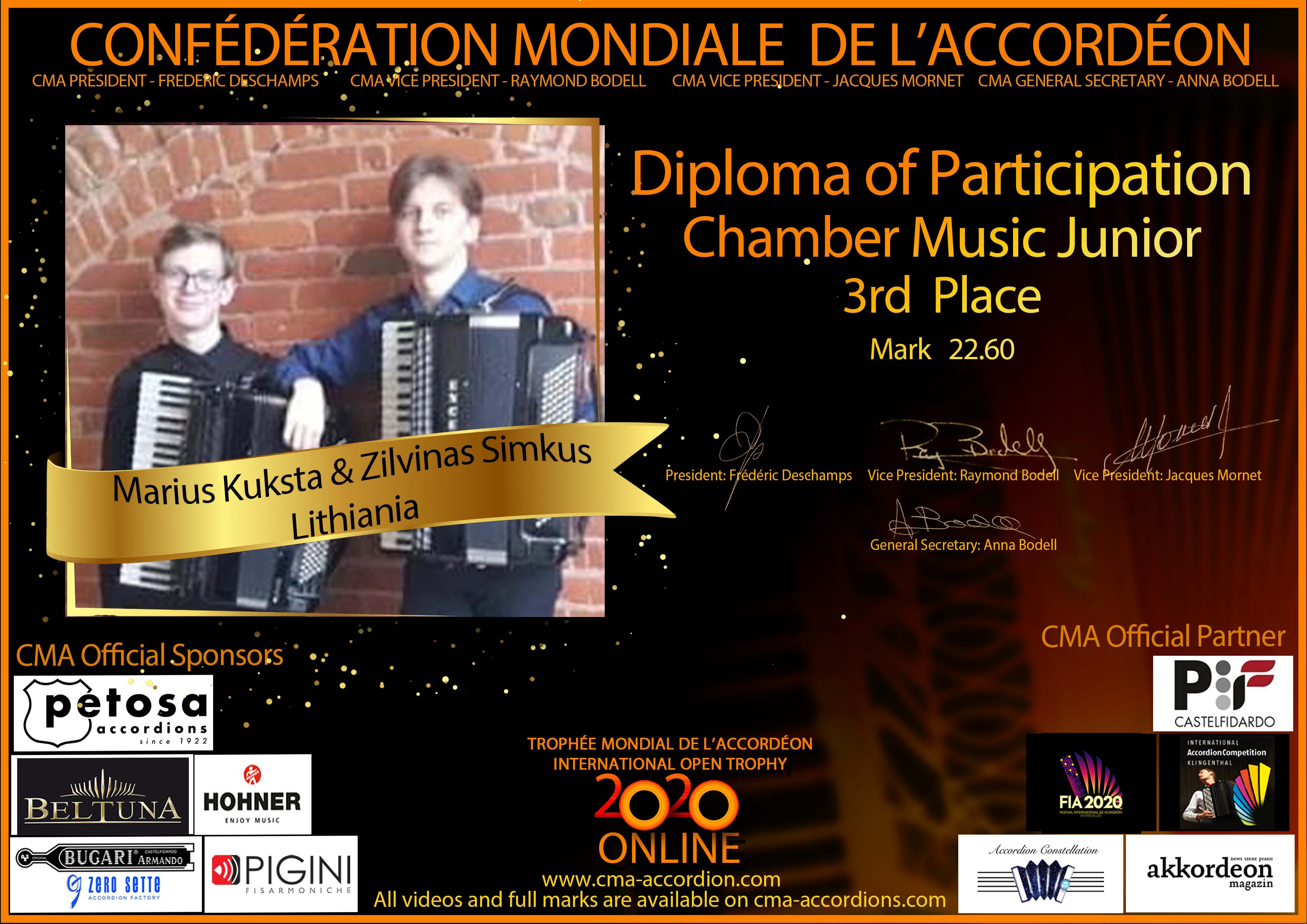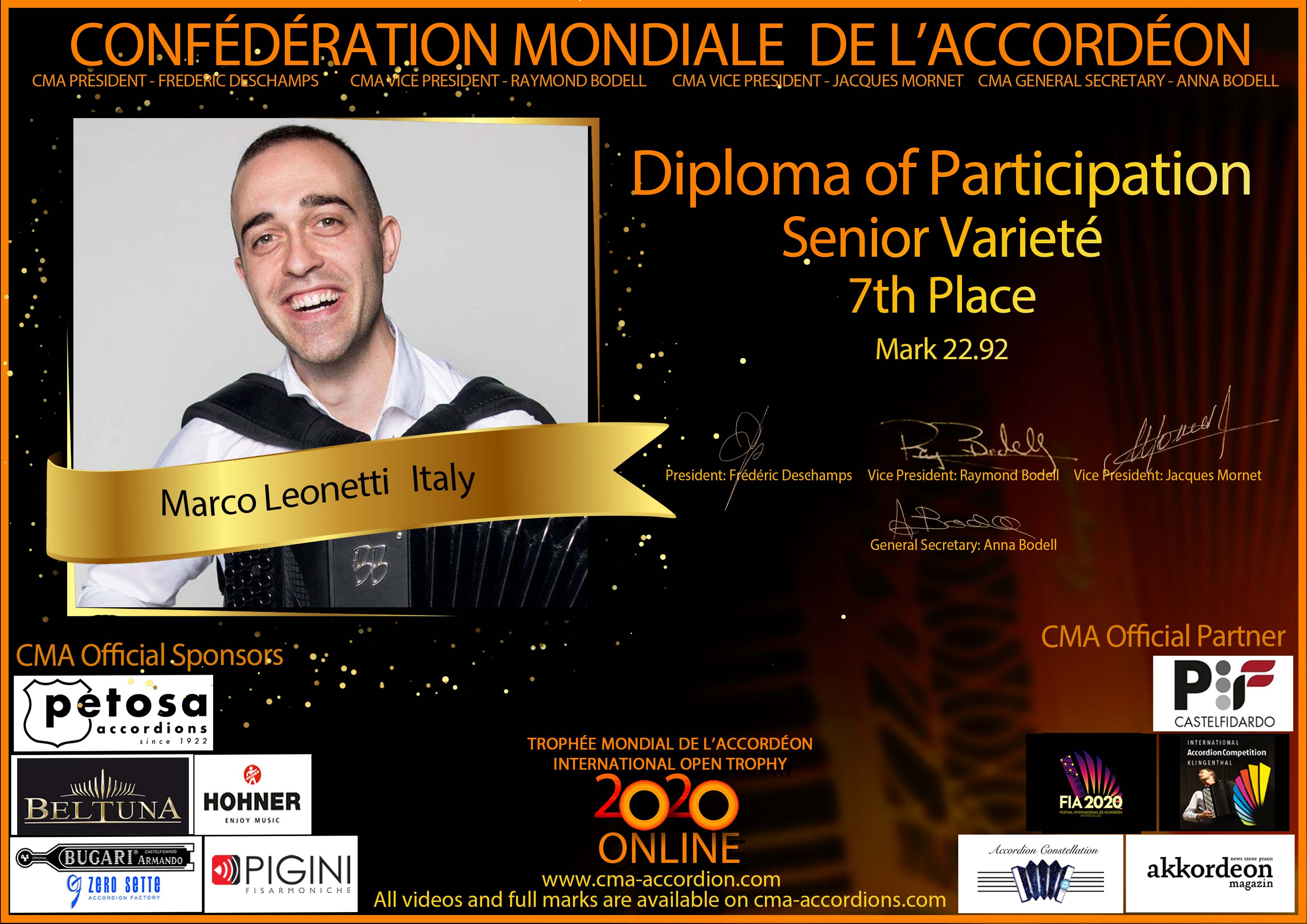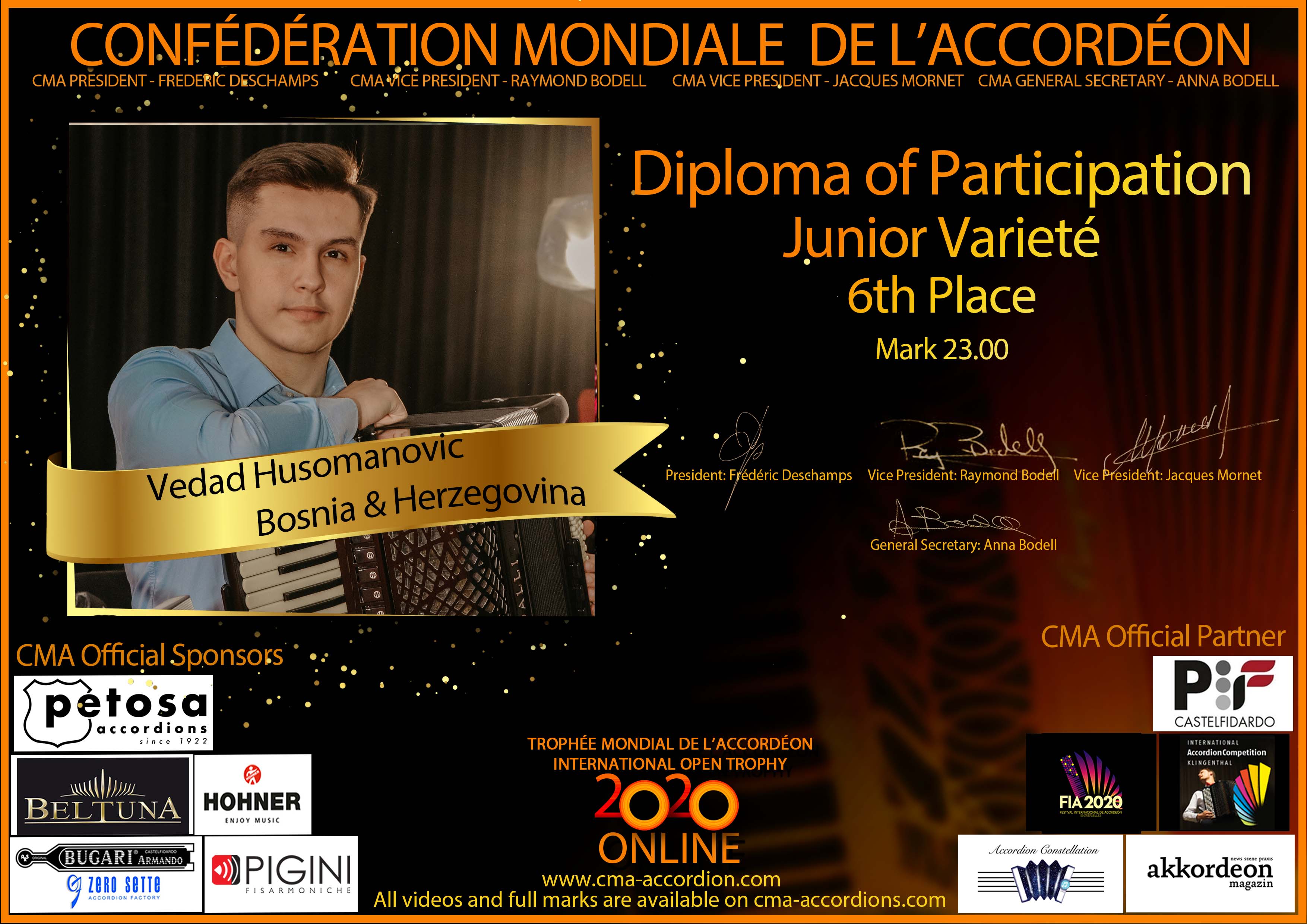 Candidates diploma of Trophee Mondial