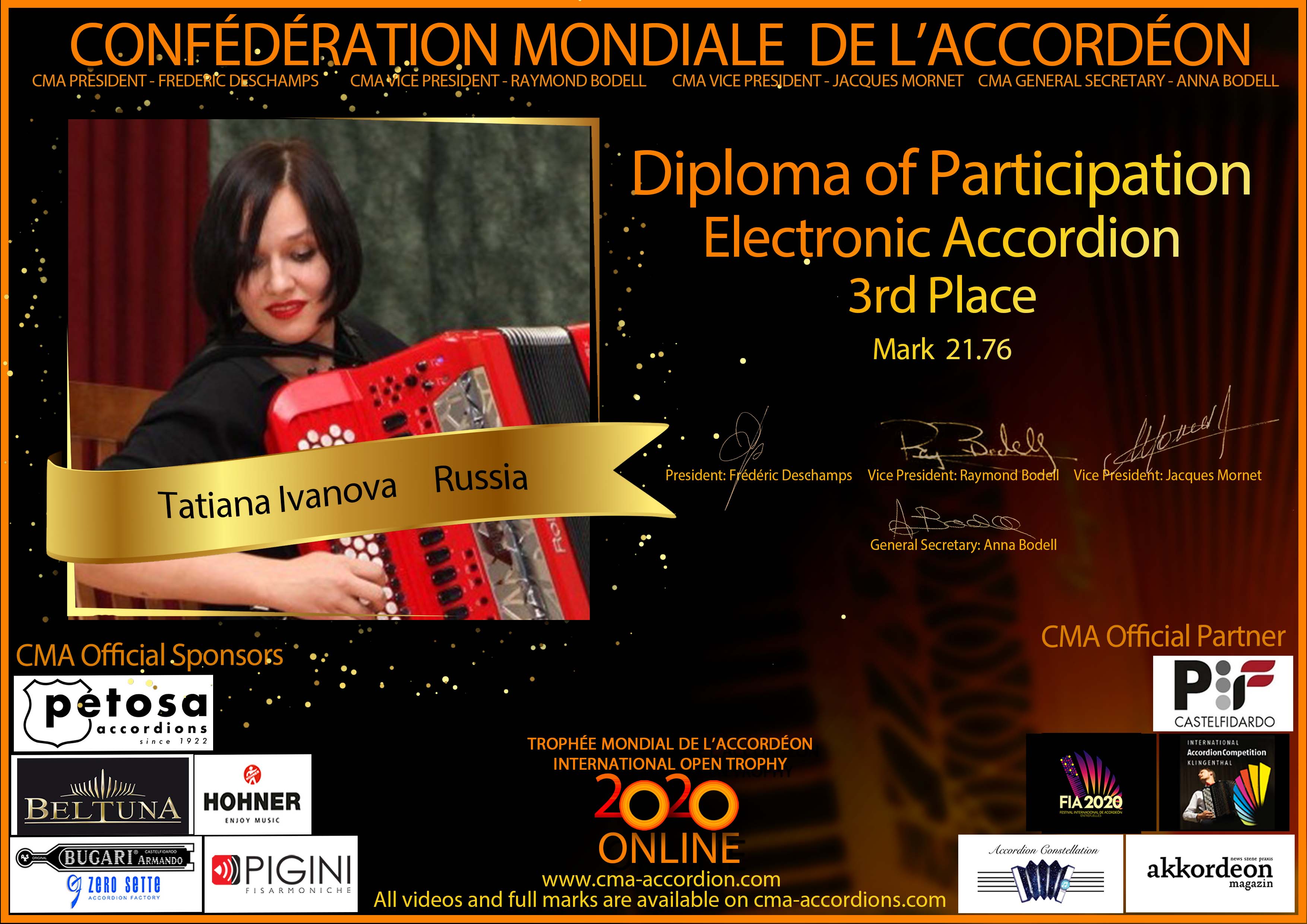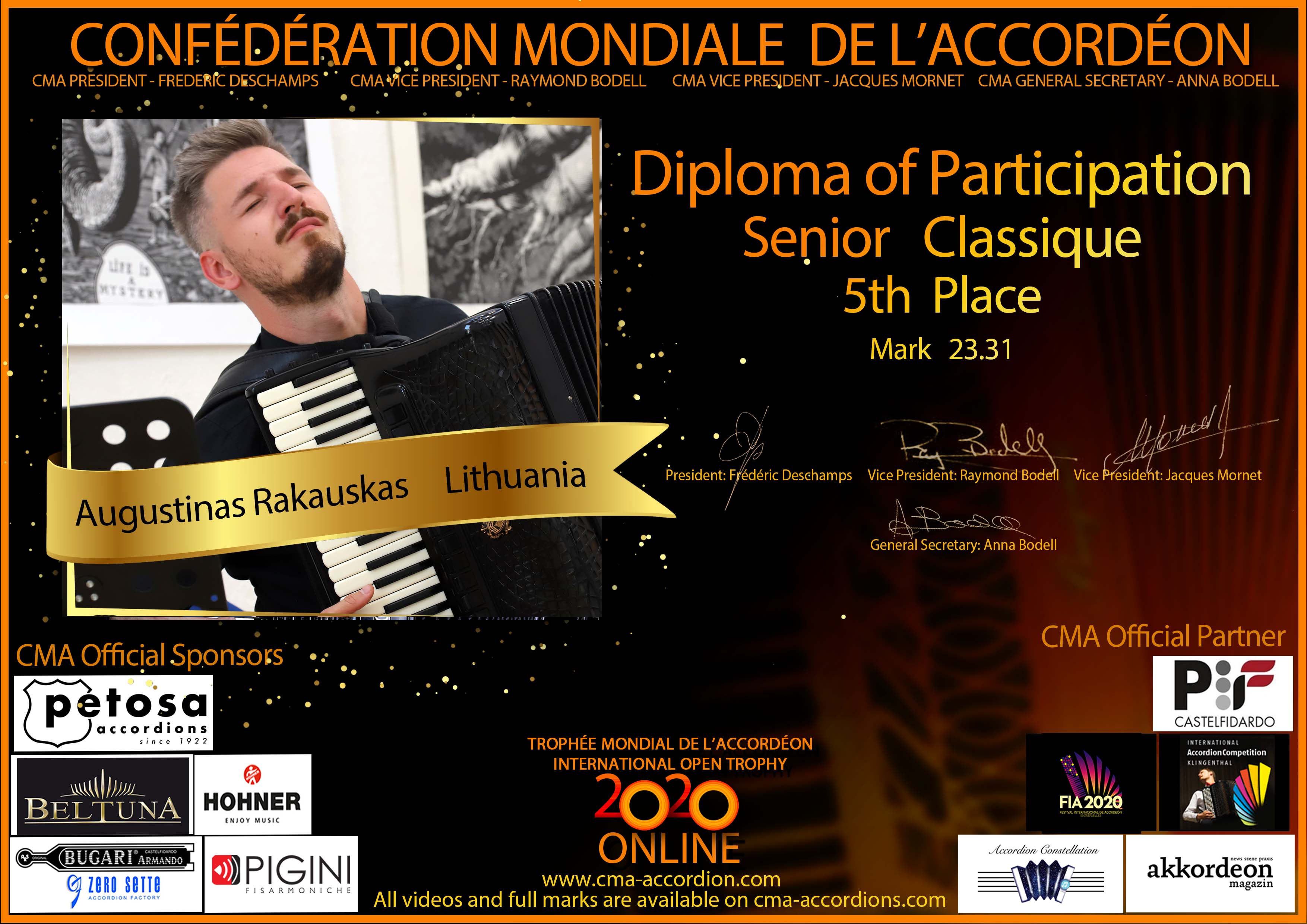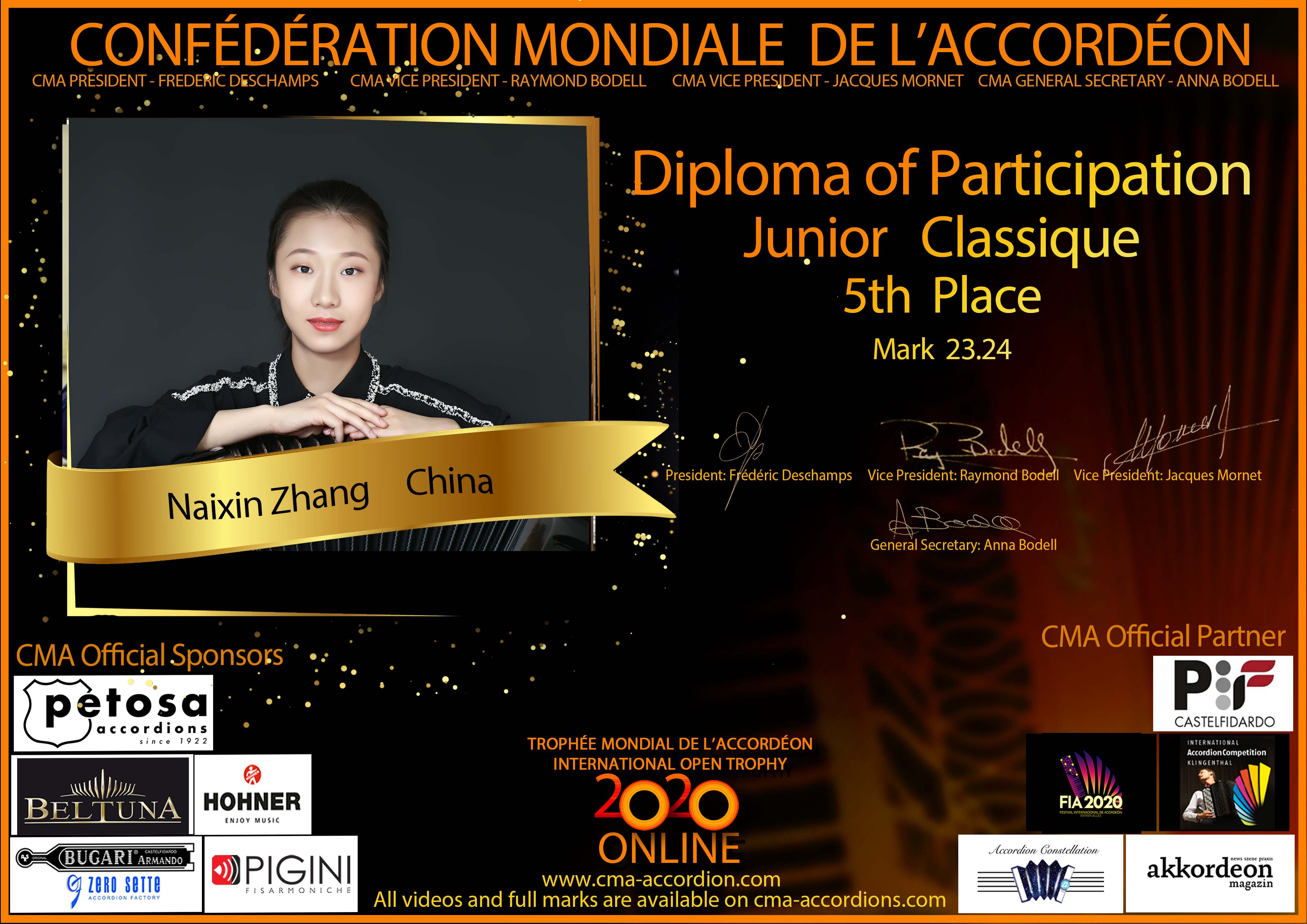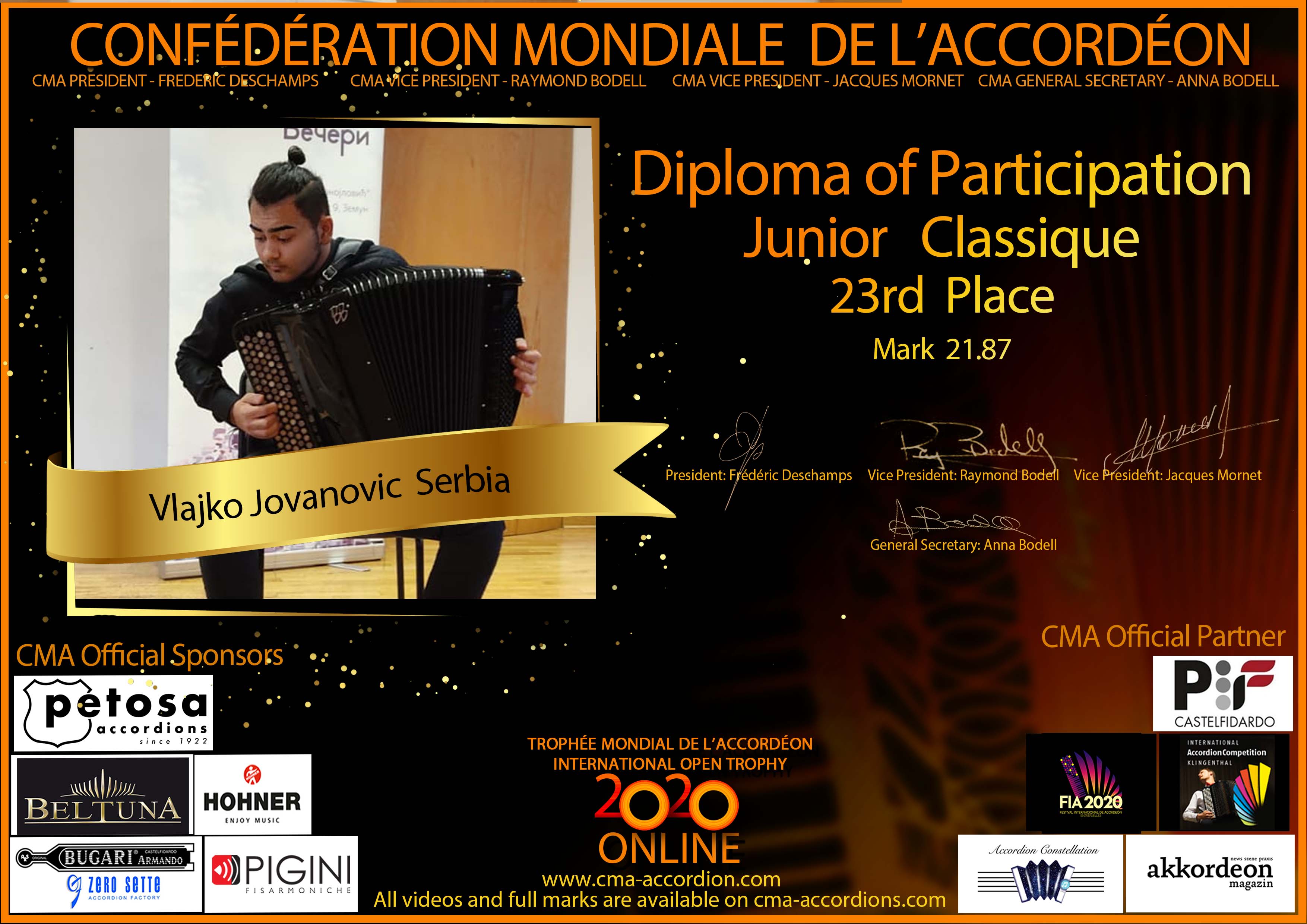 Candidates diploma of Trophee Mondial