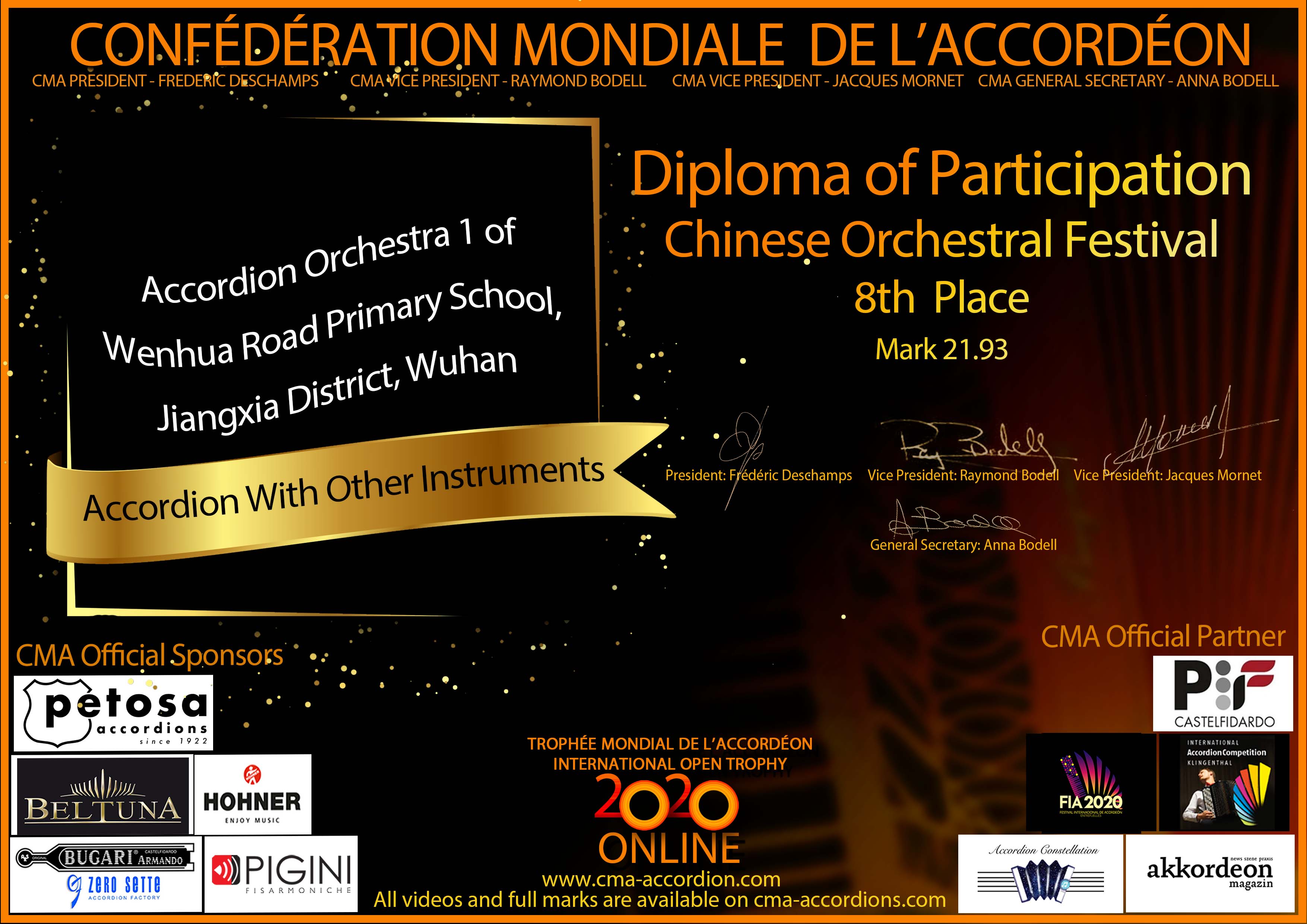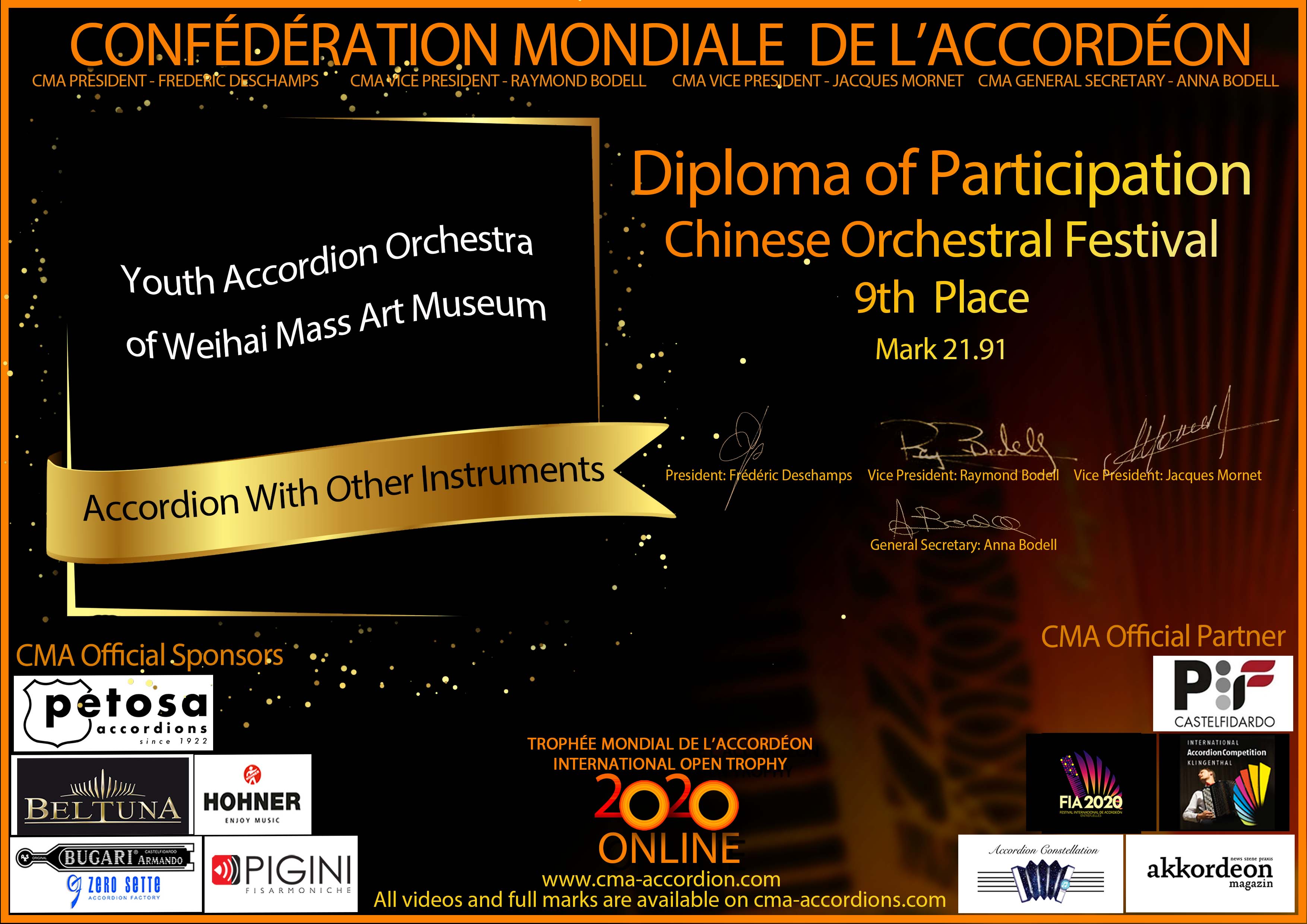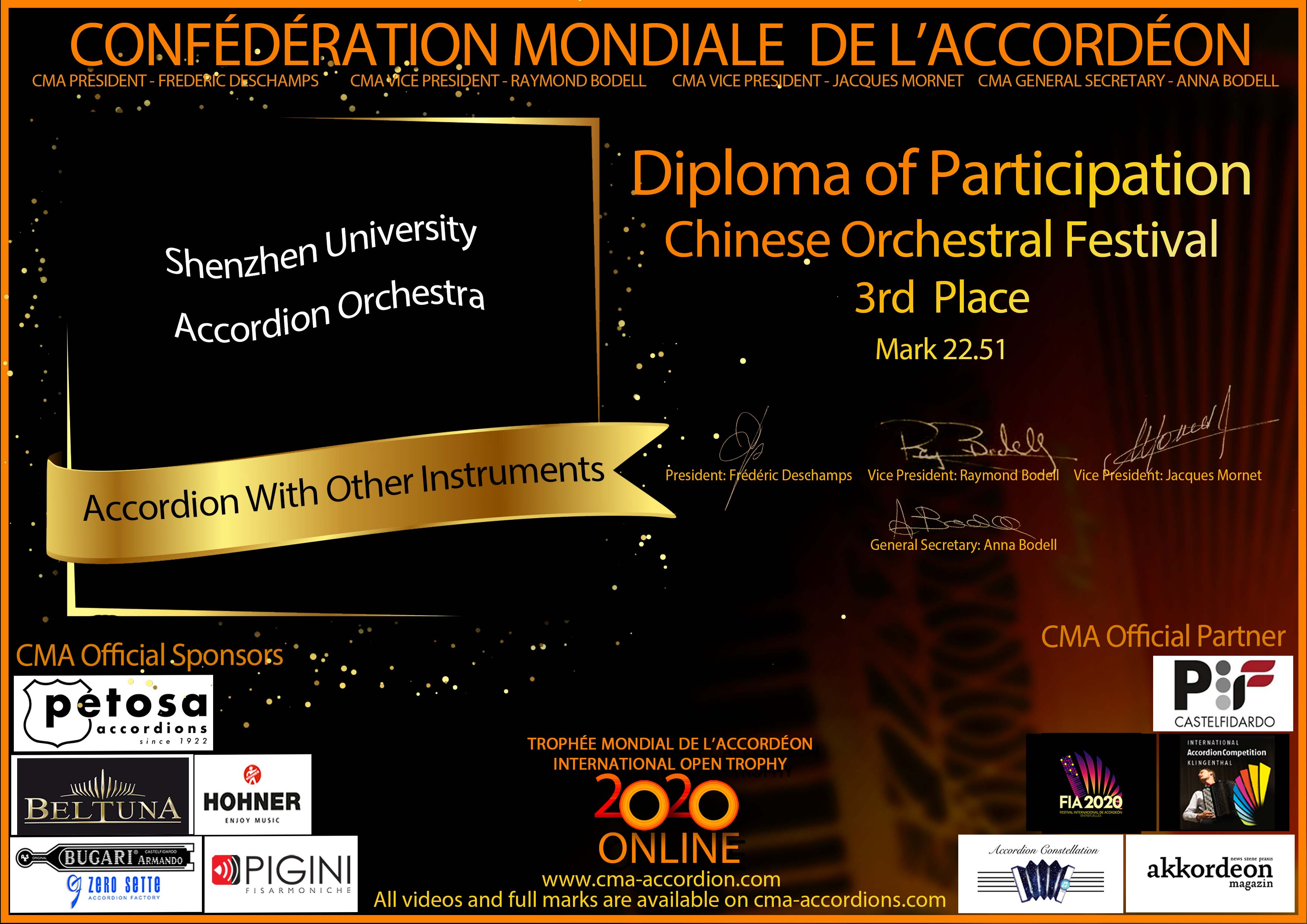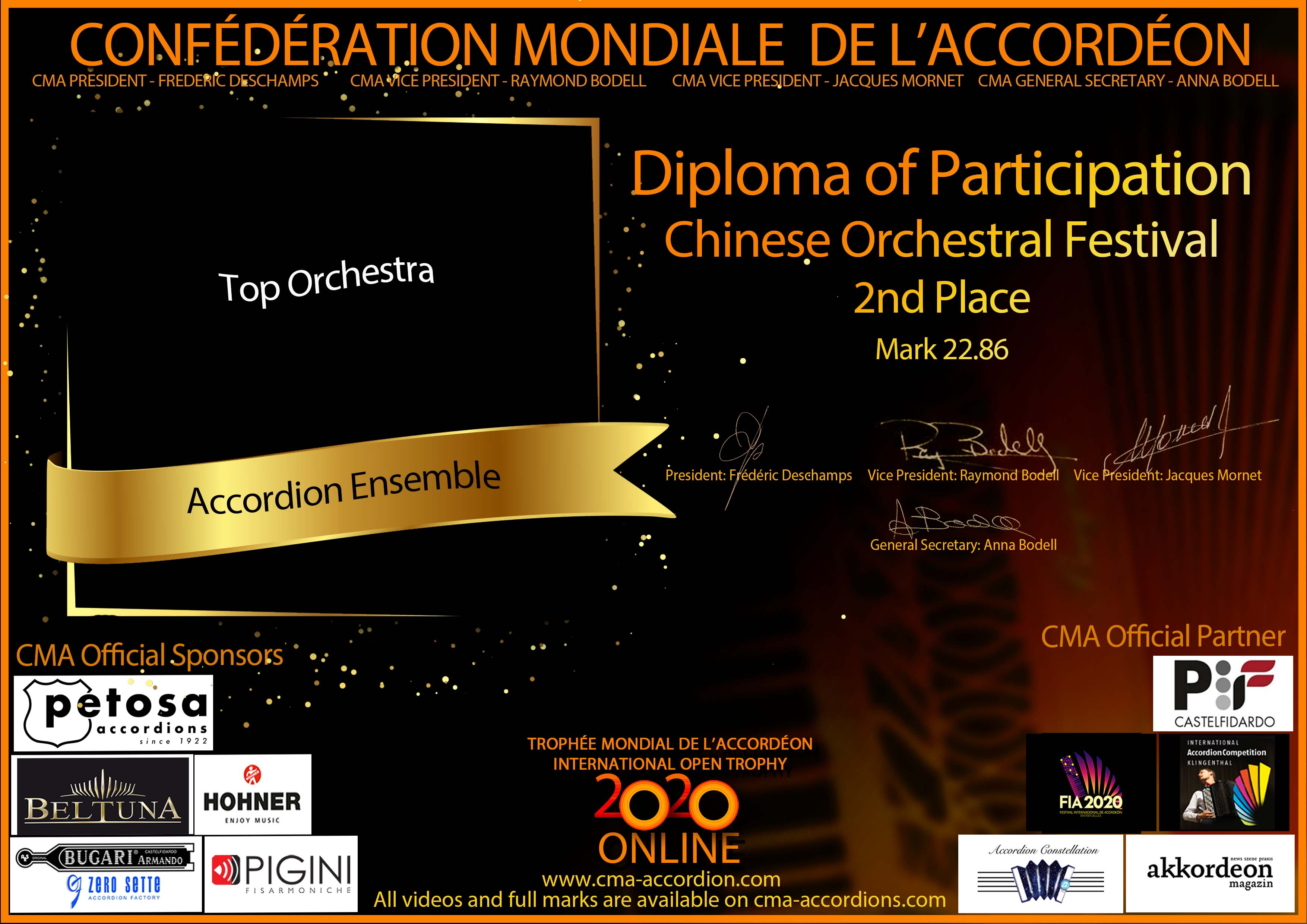 Candidates diploma of Chinese Orchesta Festival