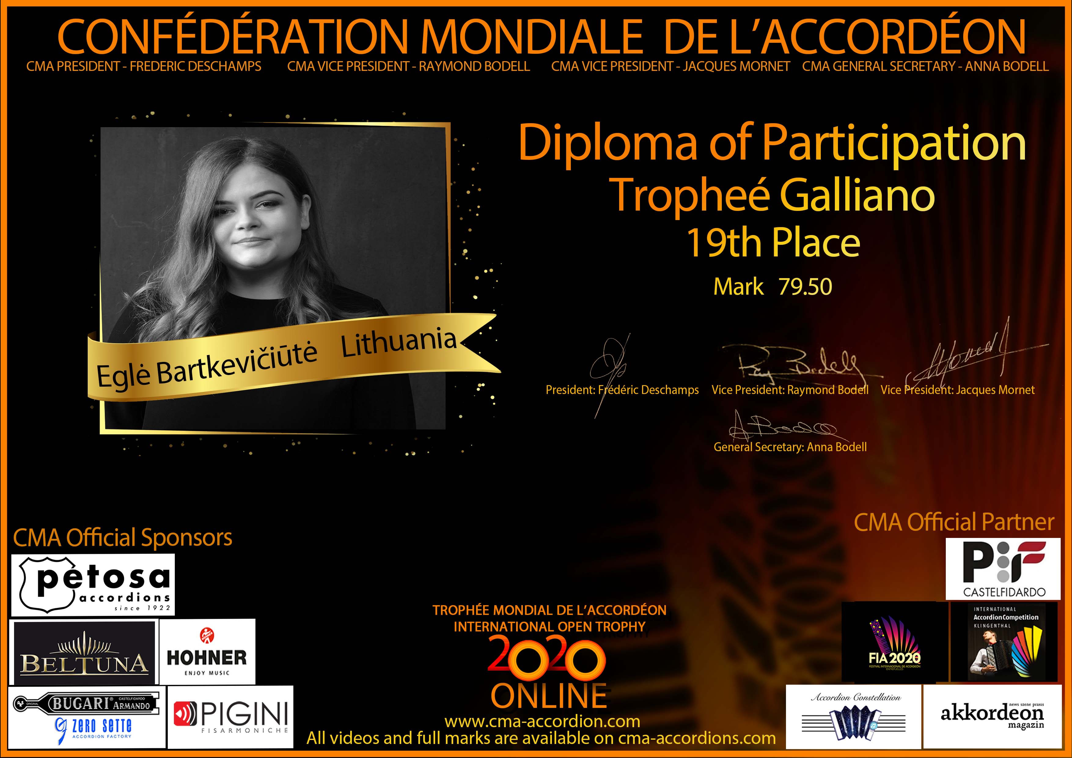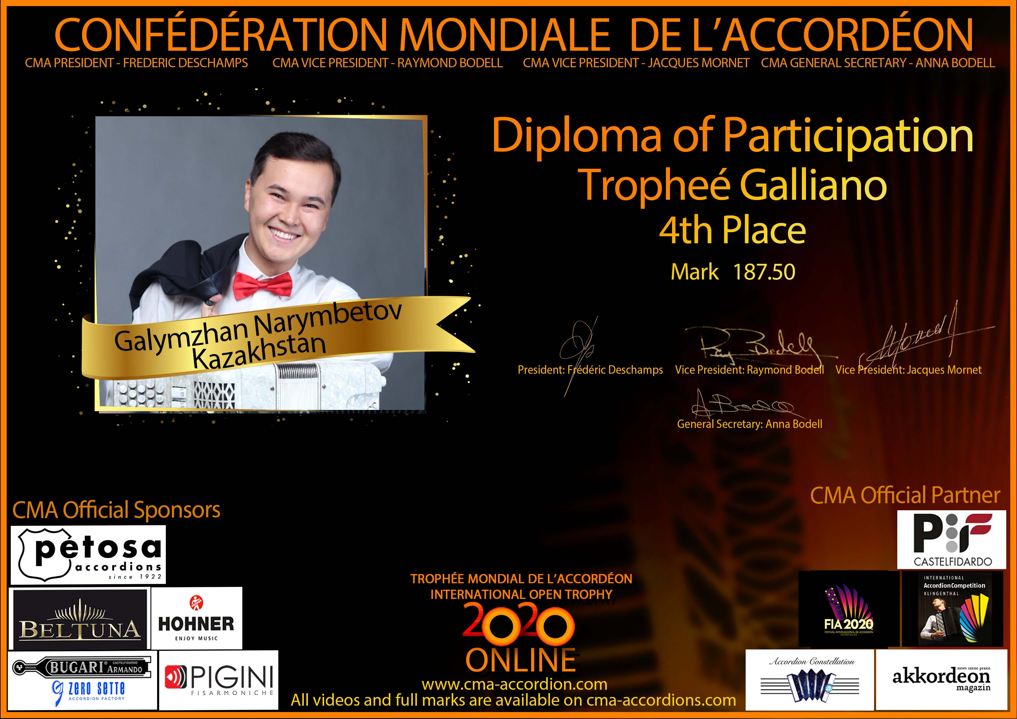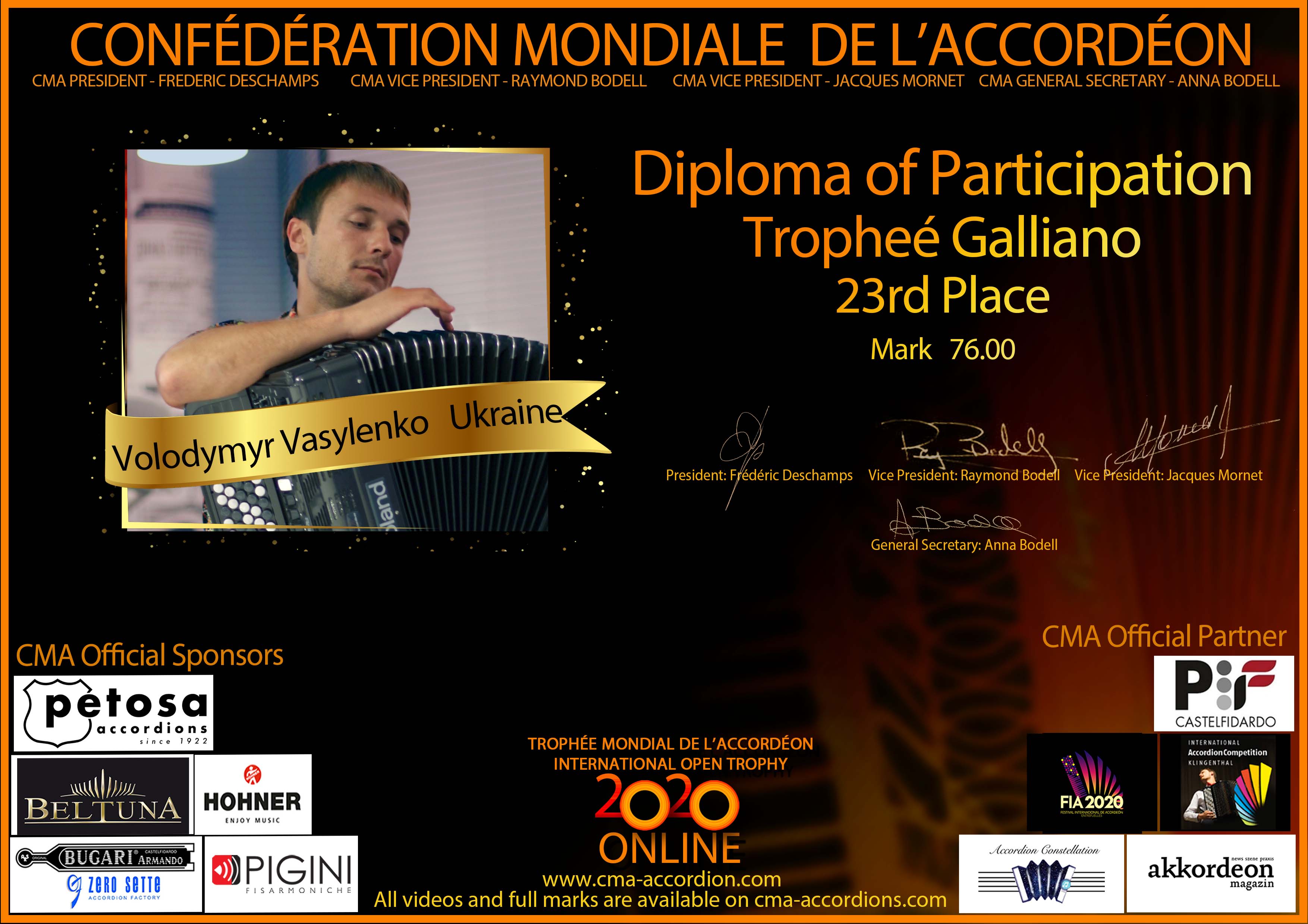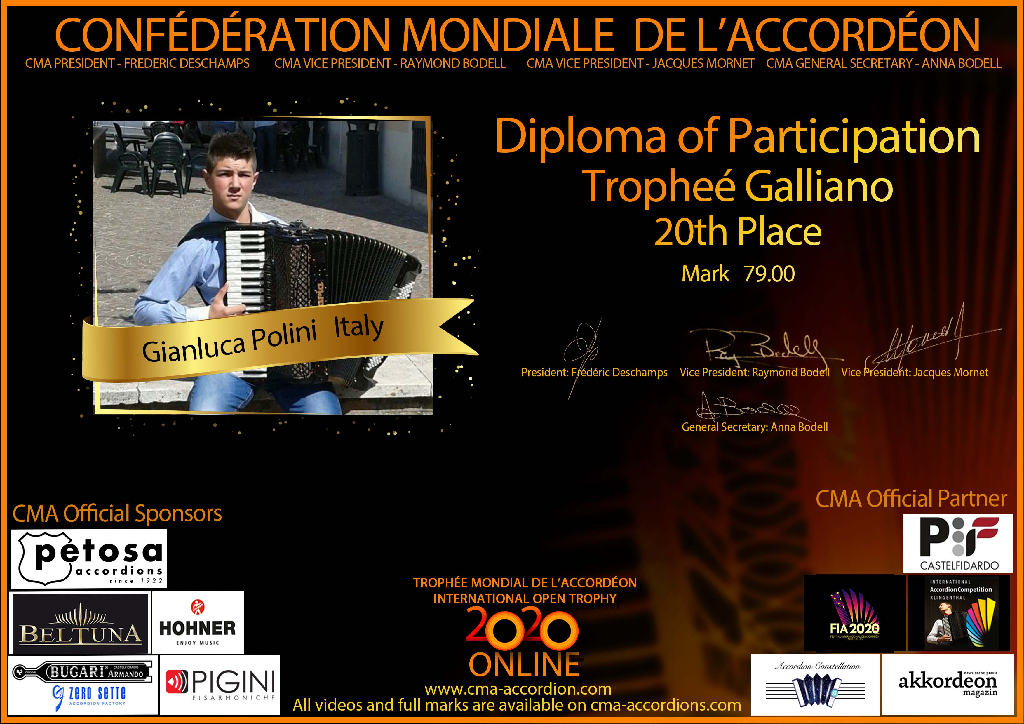 Candidates diploma of Trophee Galliano
