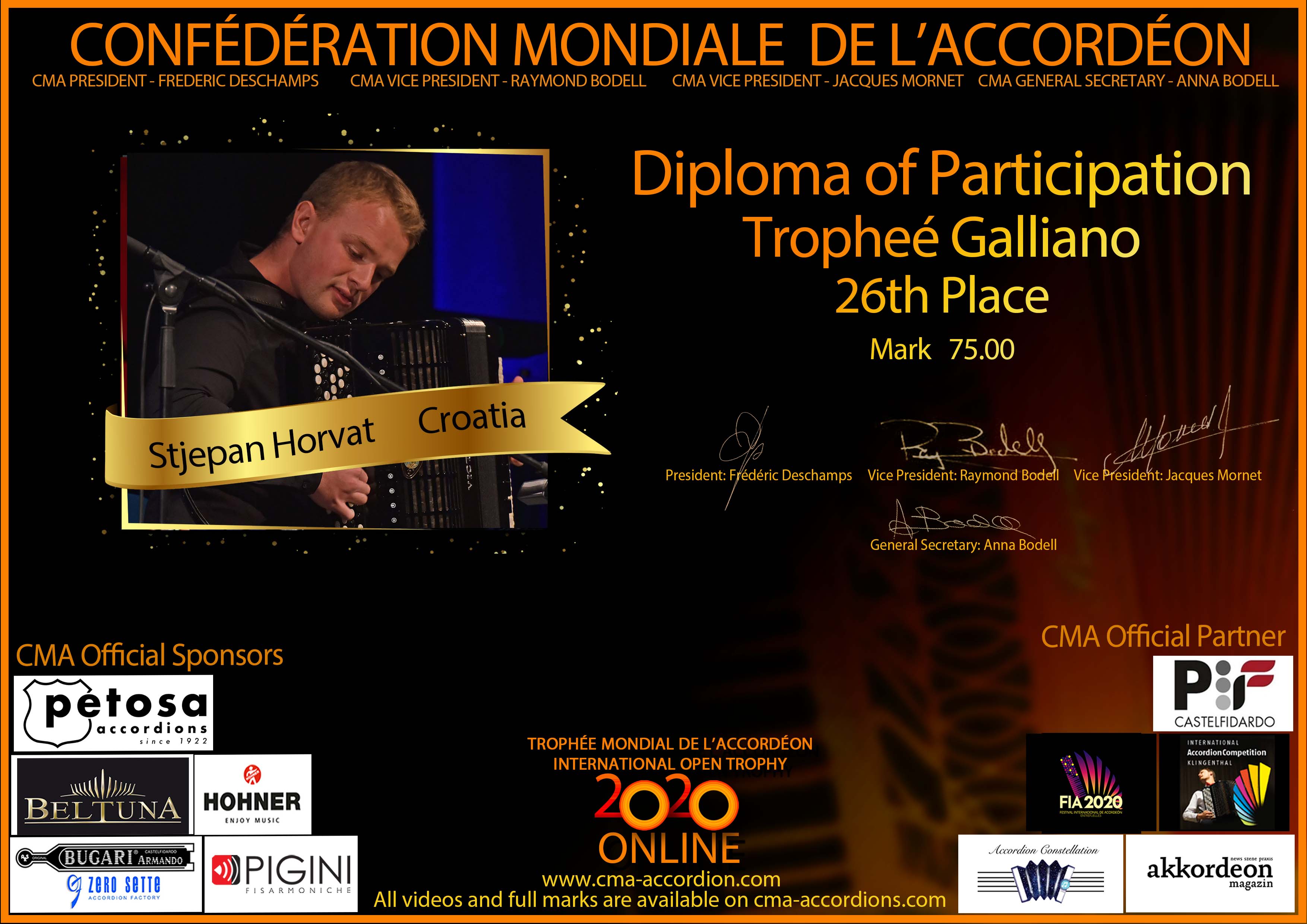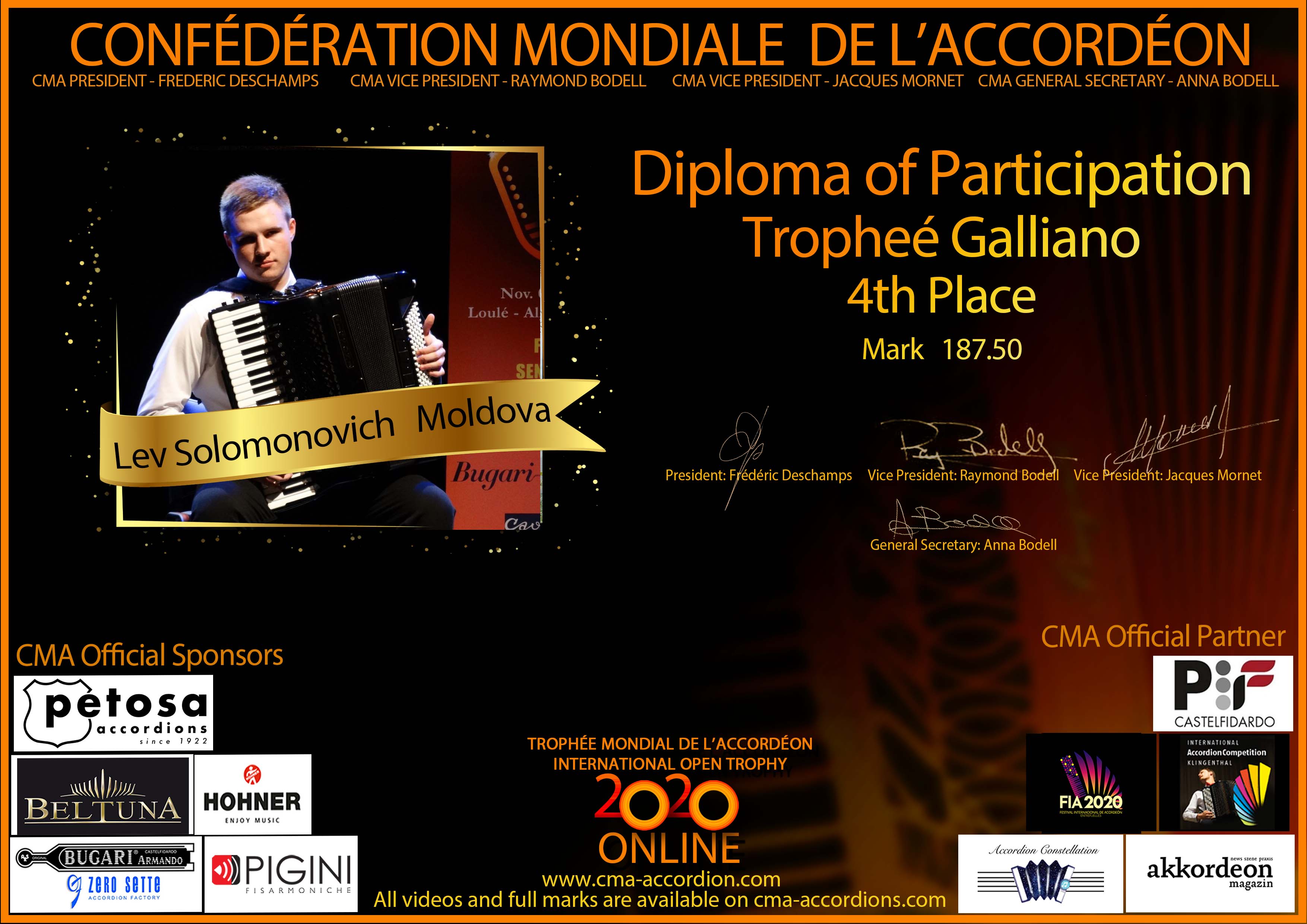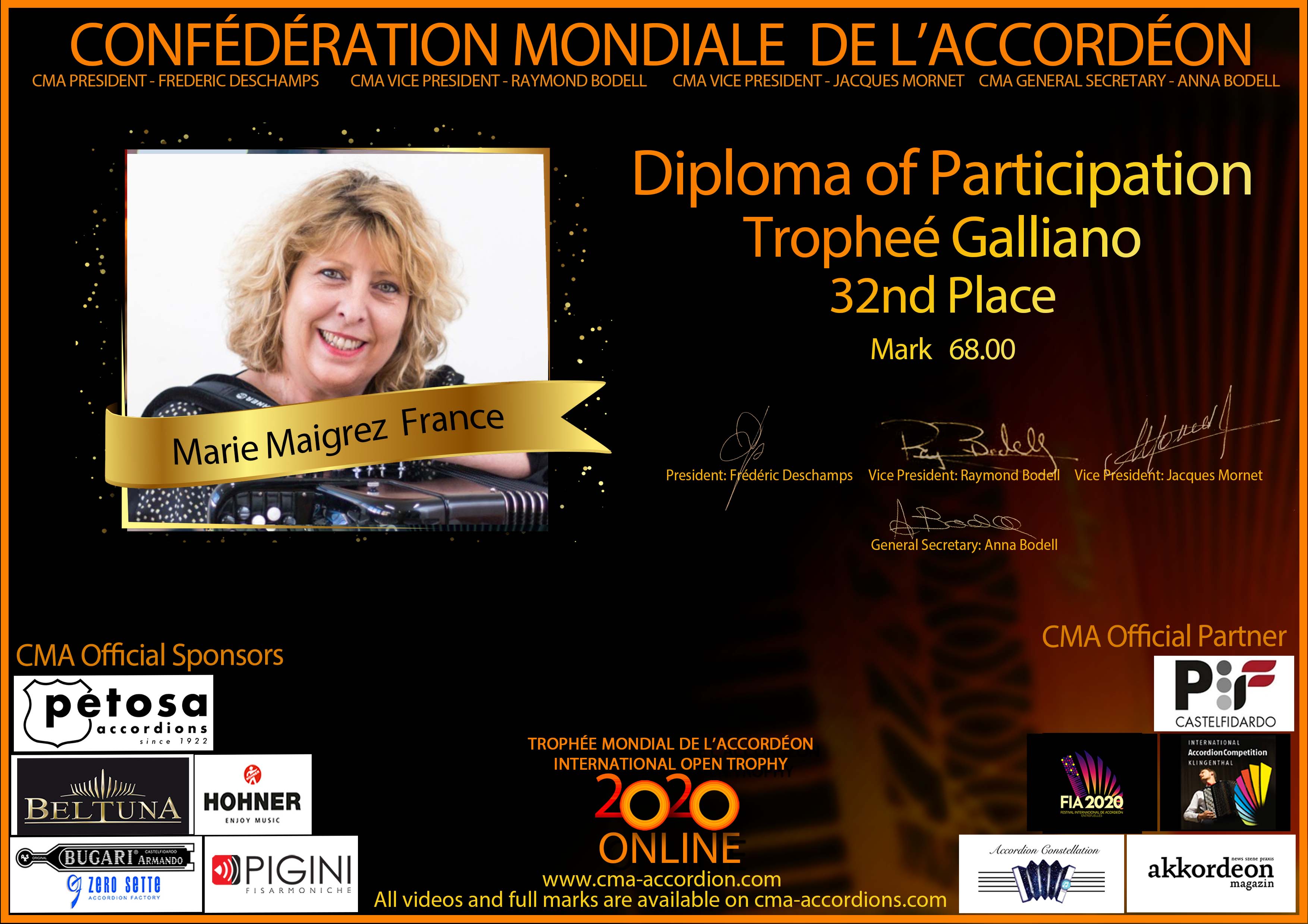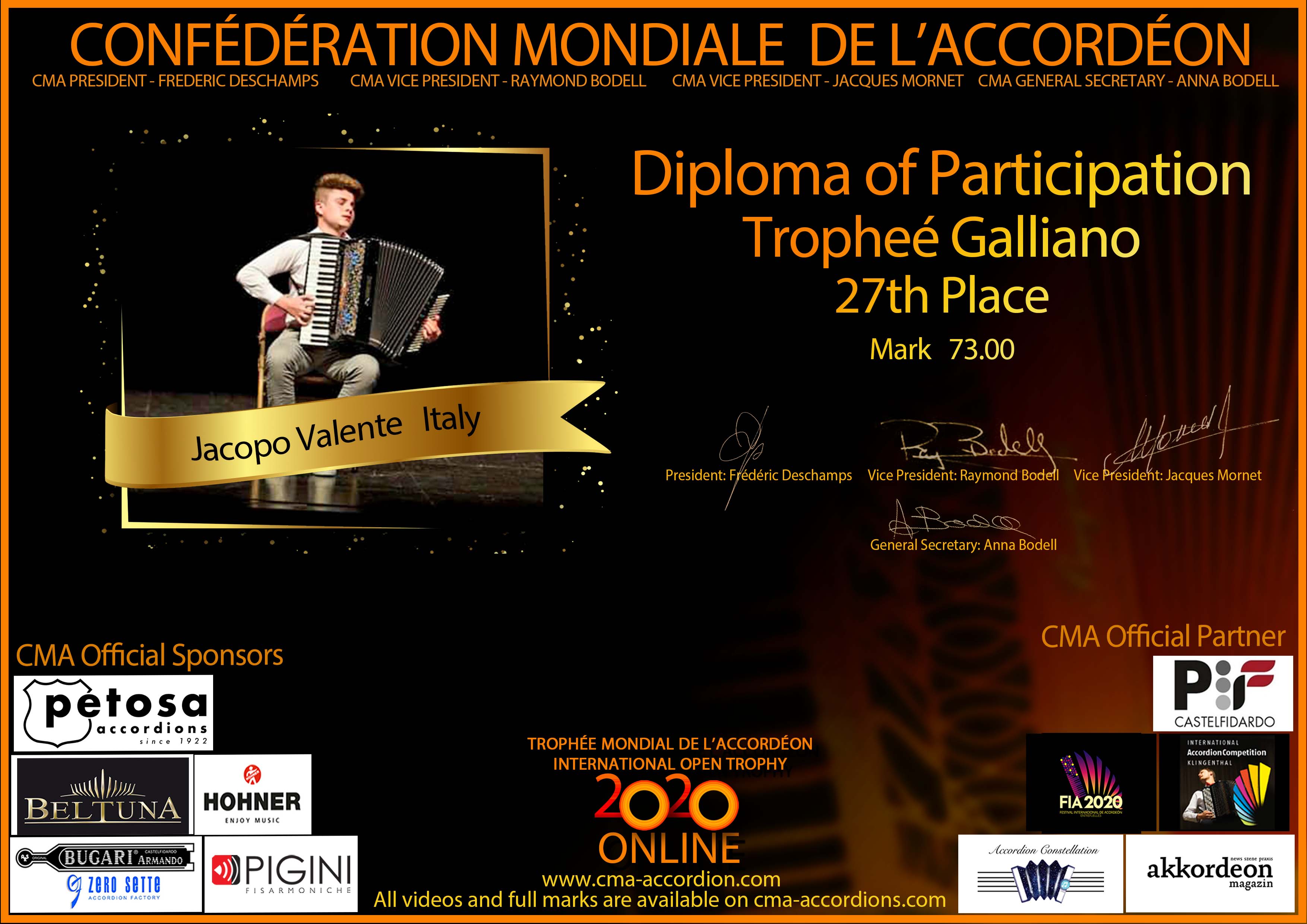 Candidates diploma of Trophee Galliano