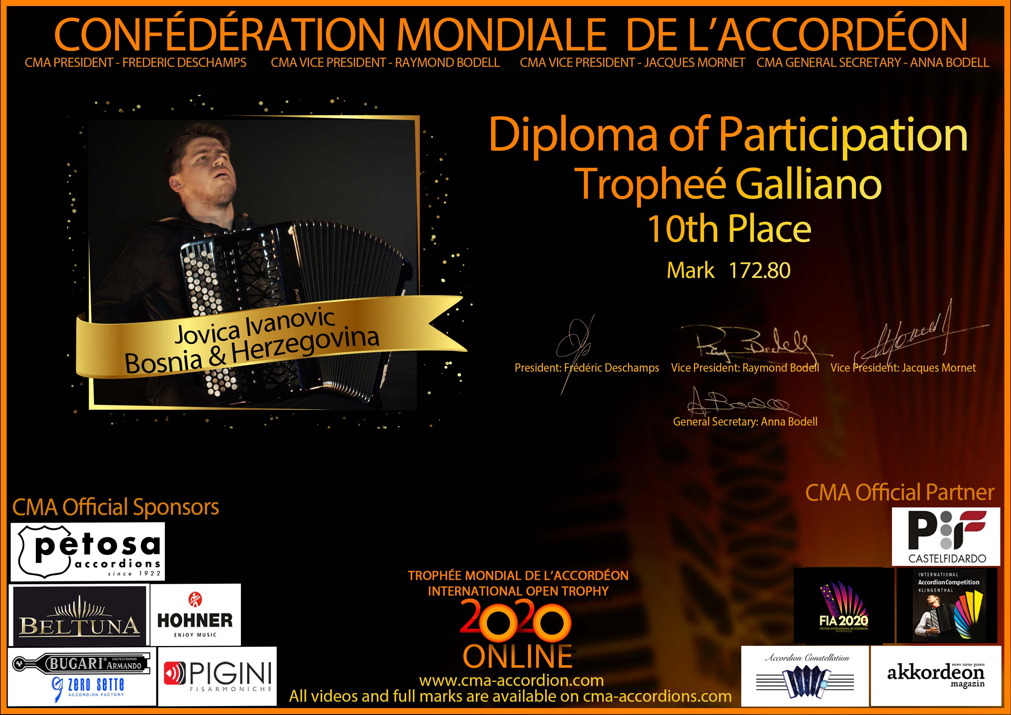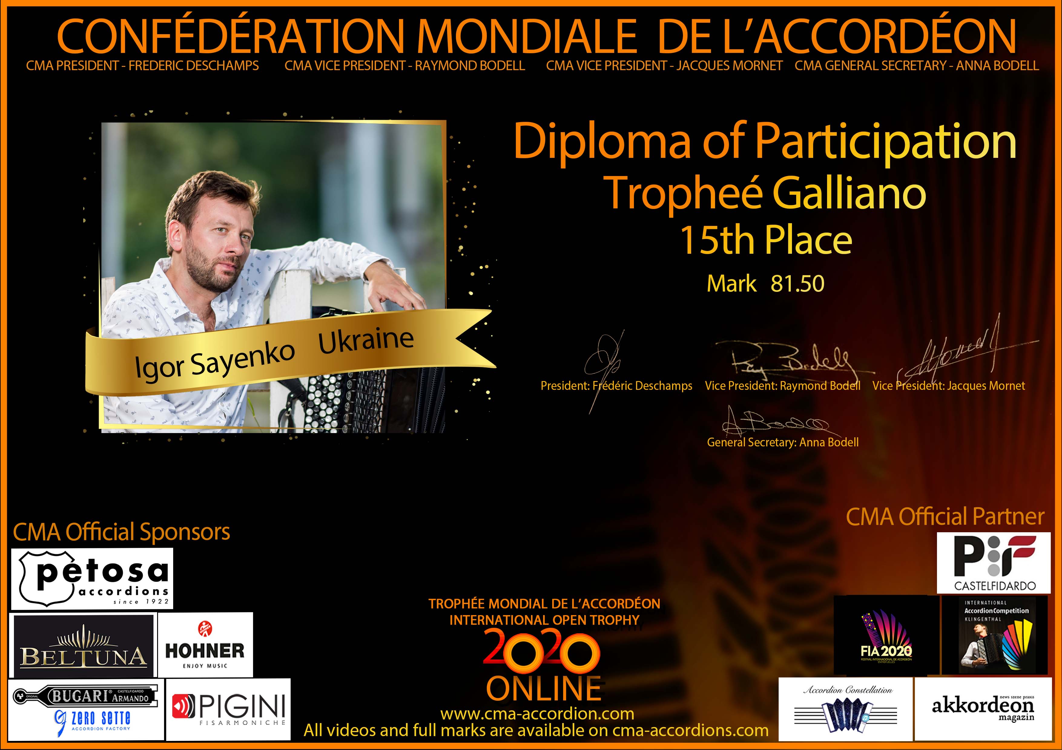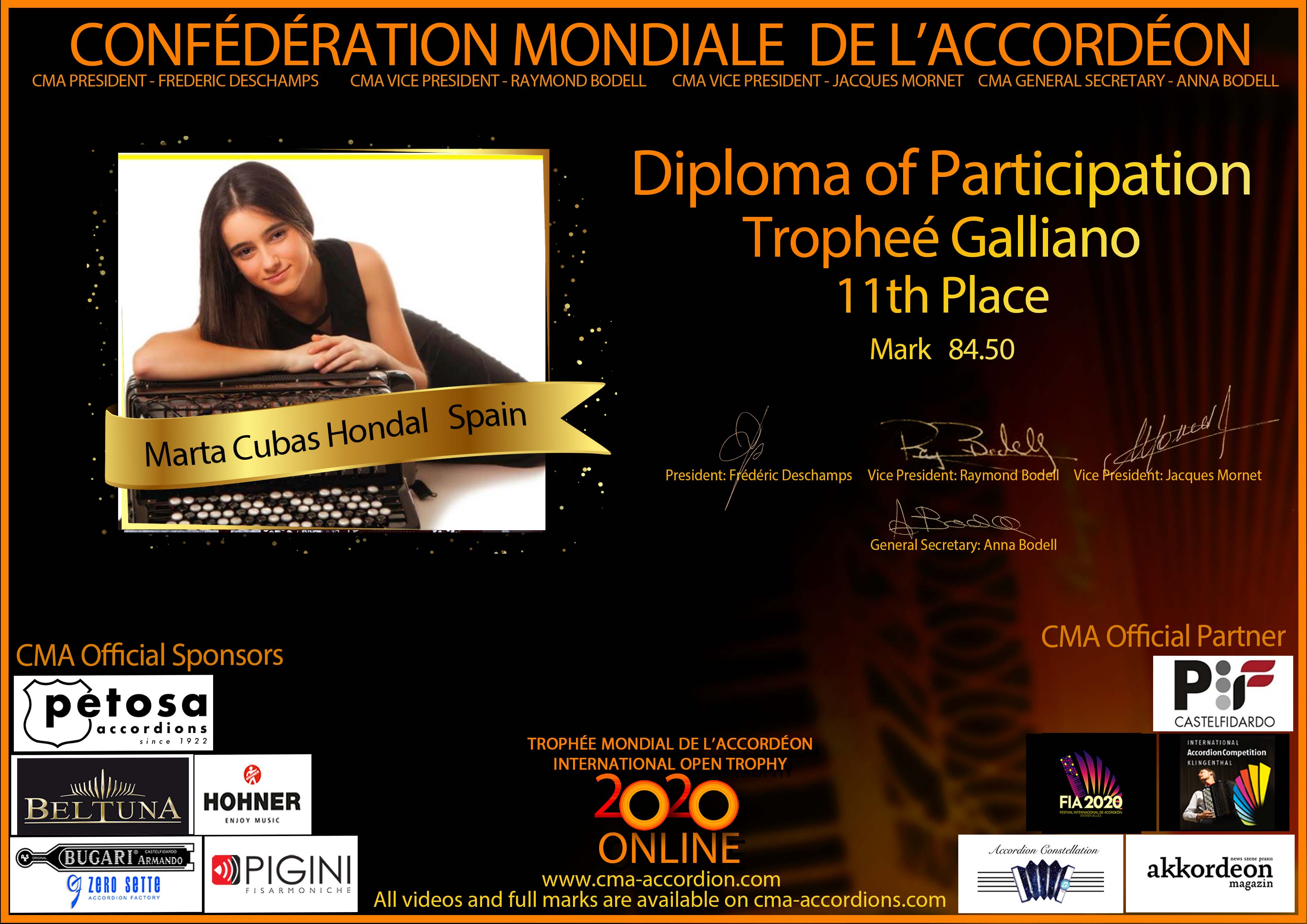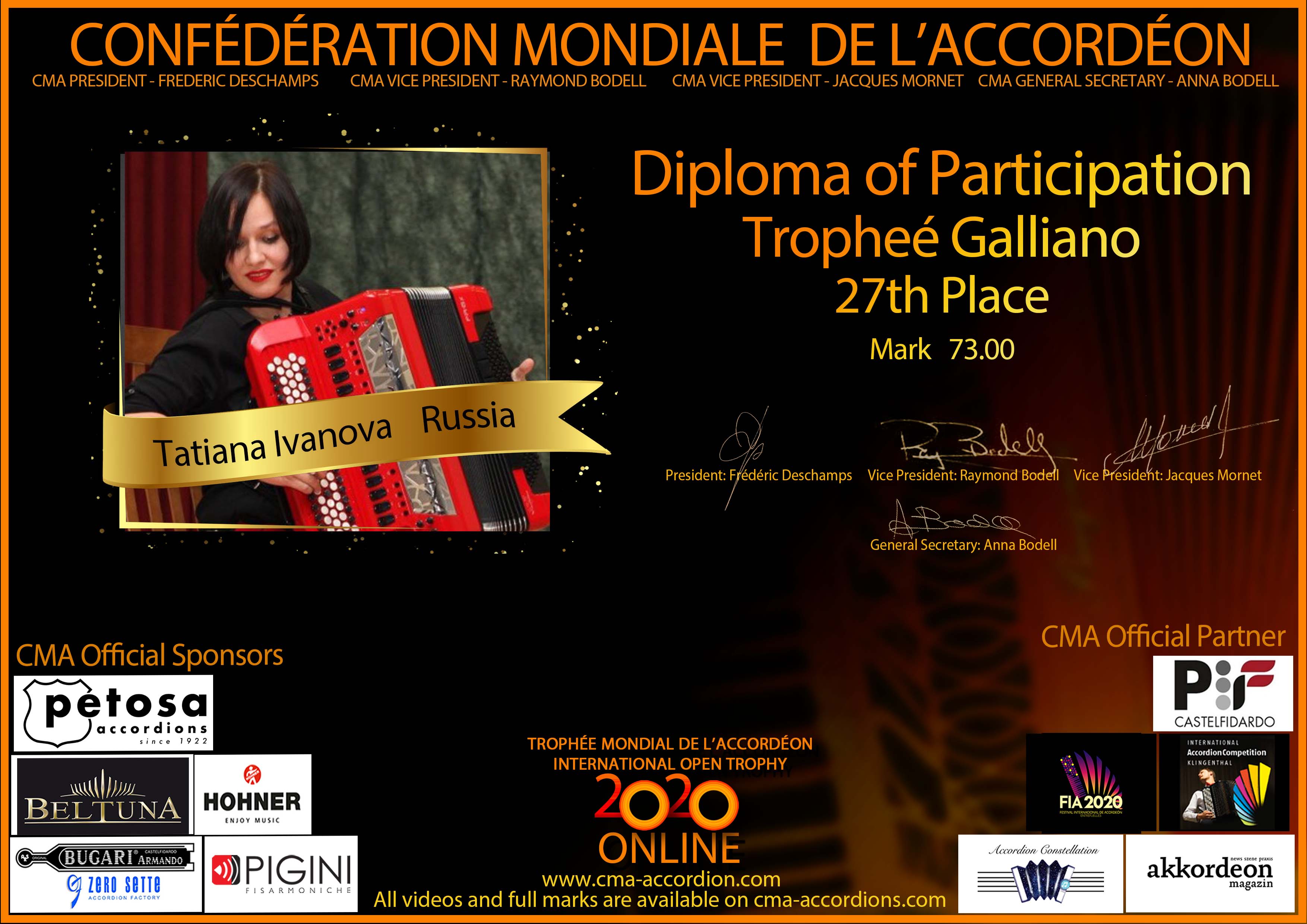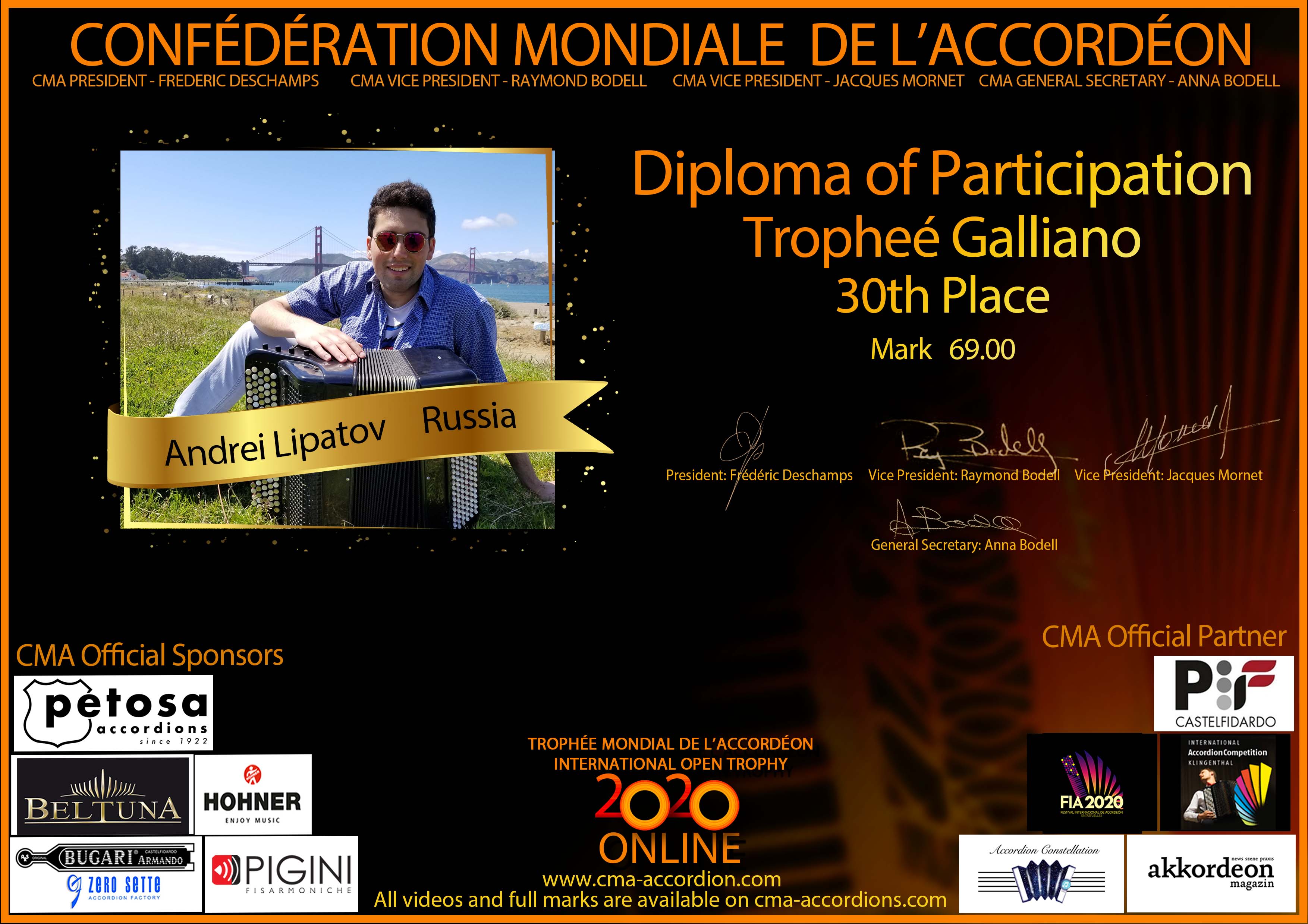 Candidates diploma of Trophee Galliano