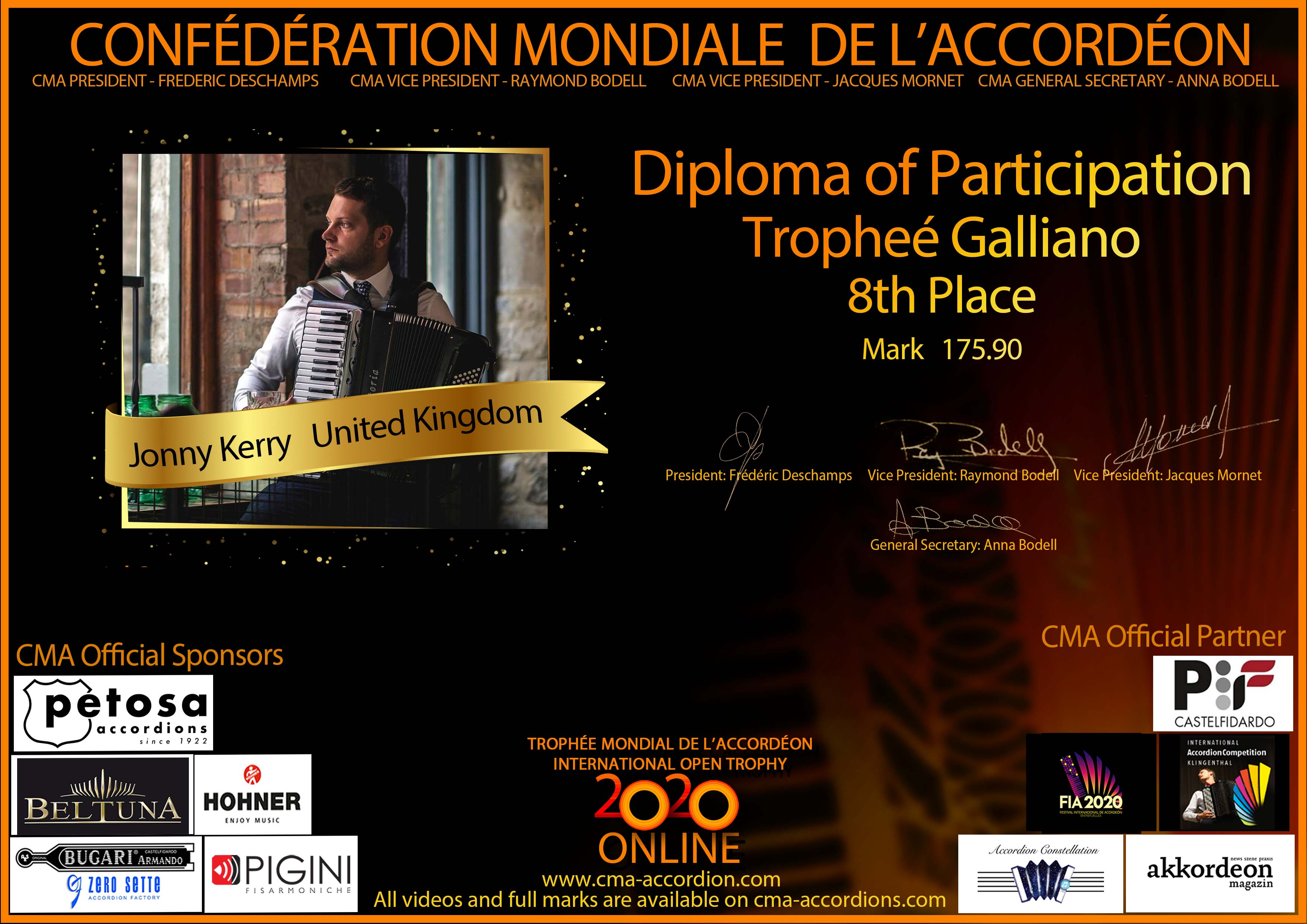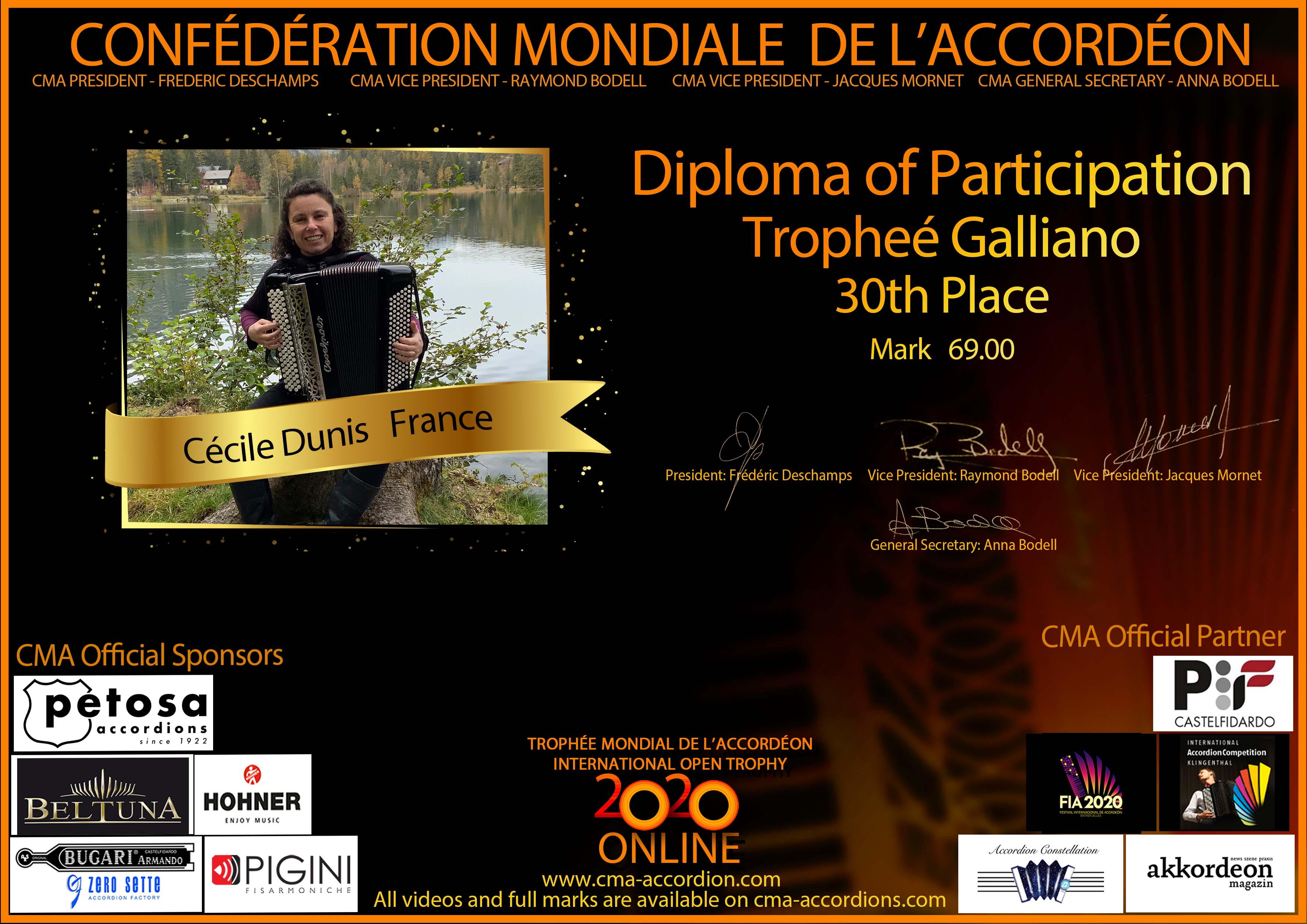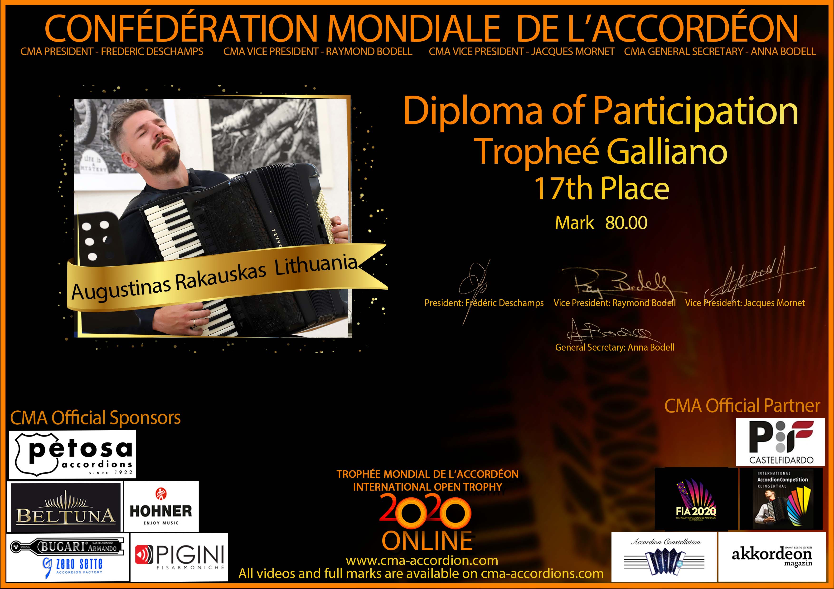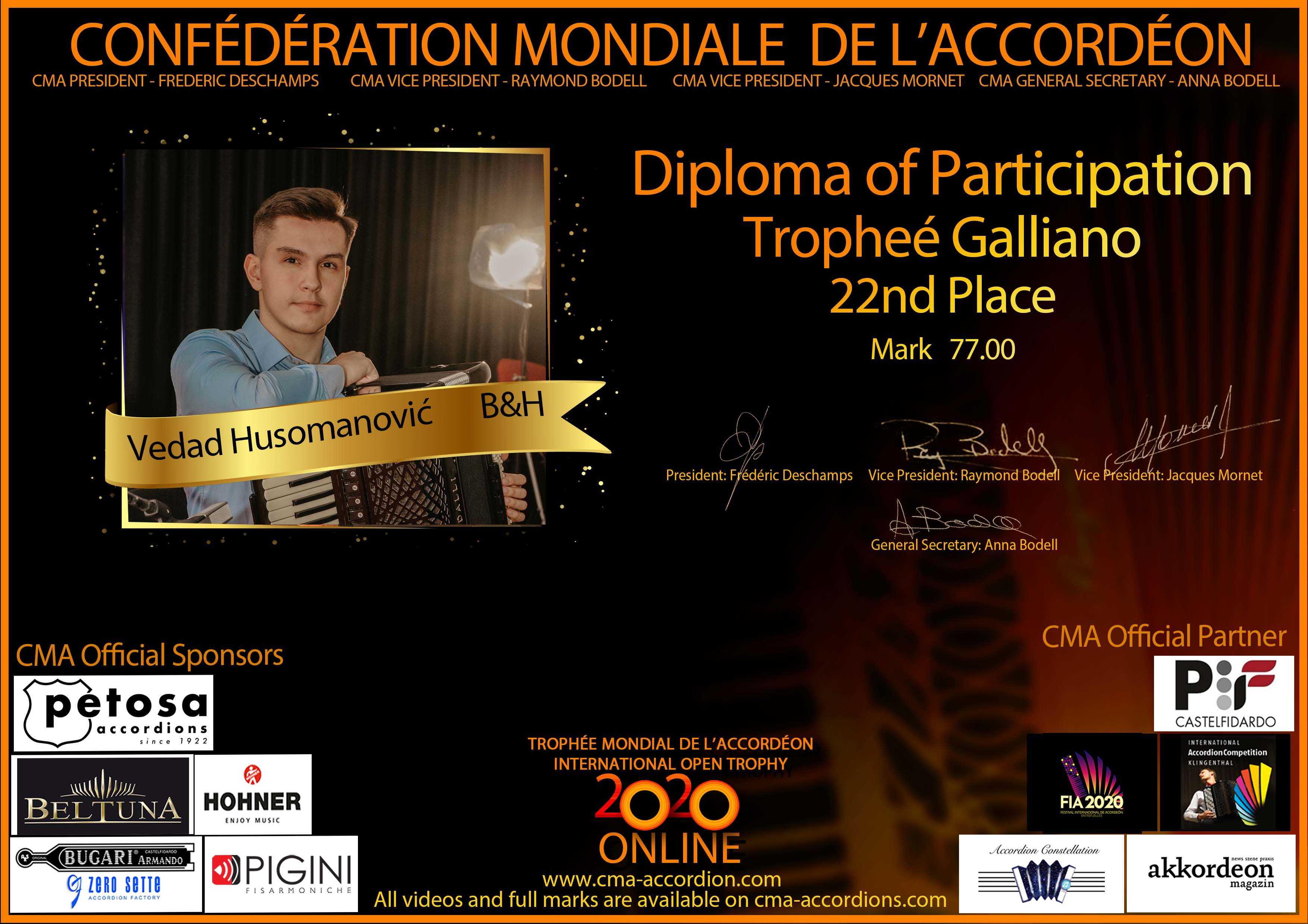 Candidates diploma of Trophee Galliano