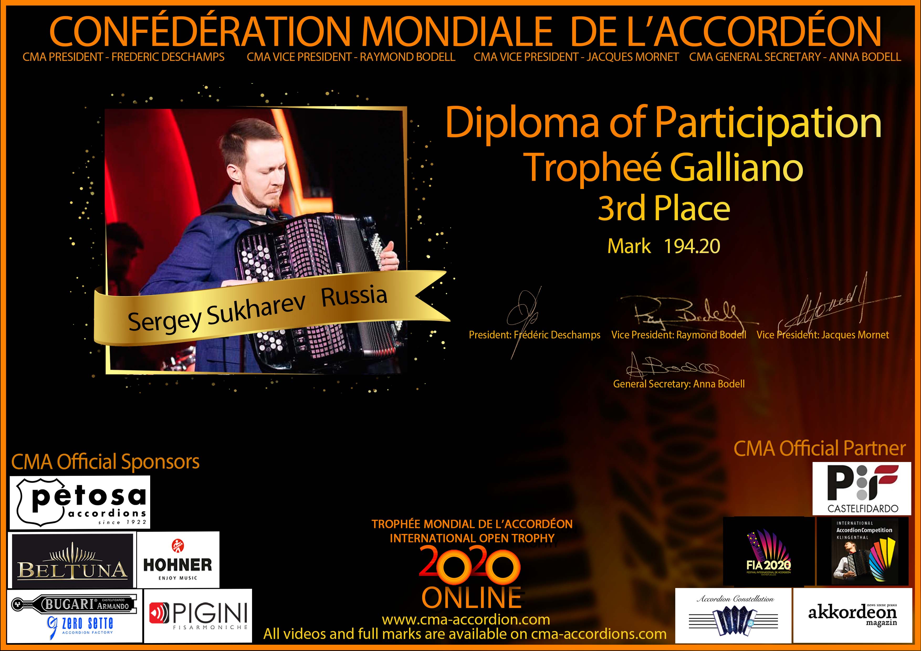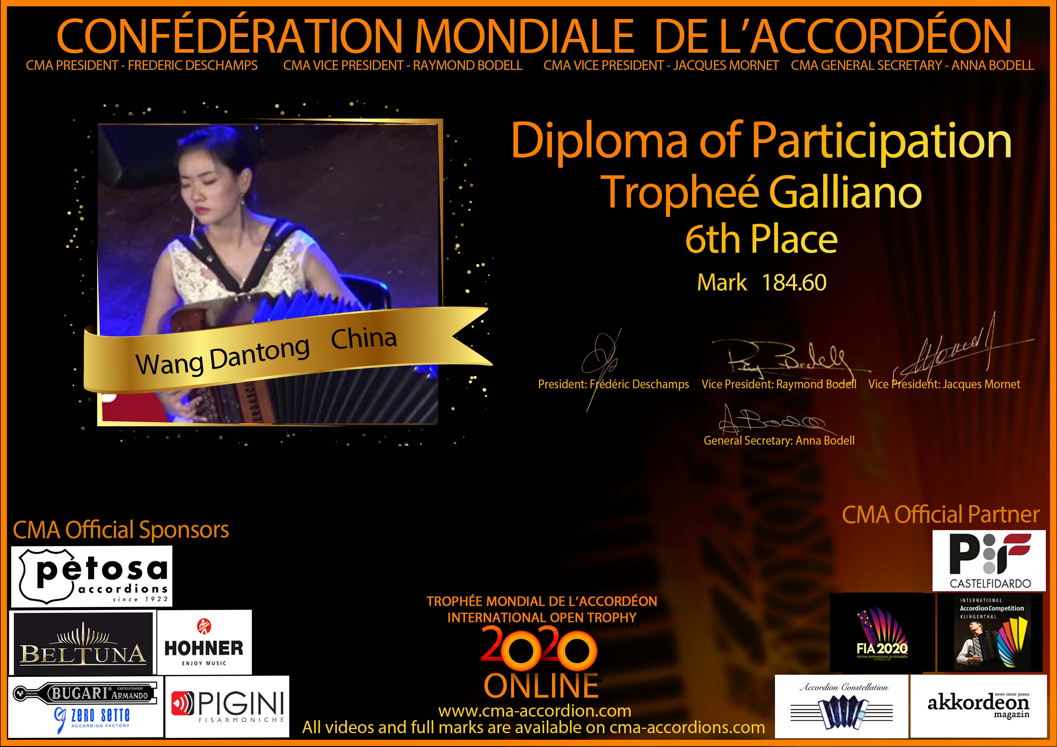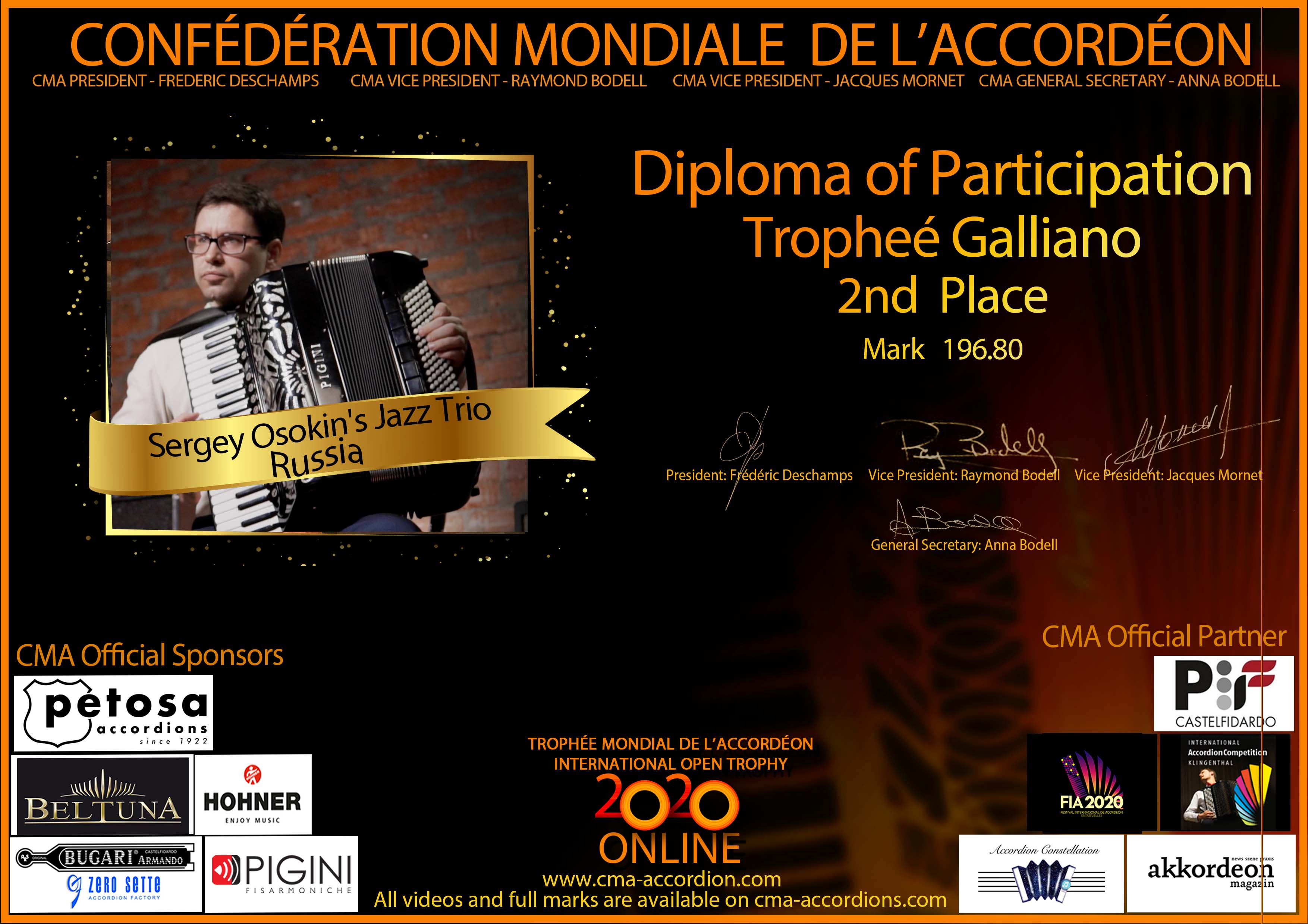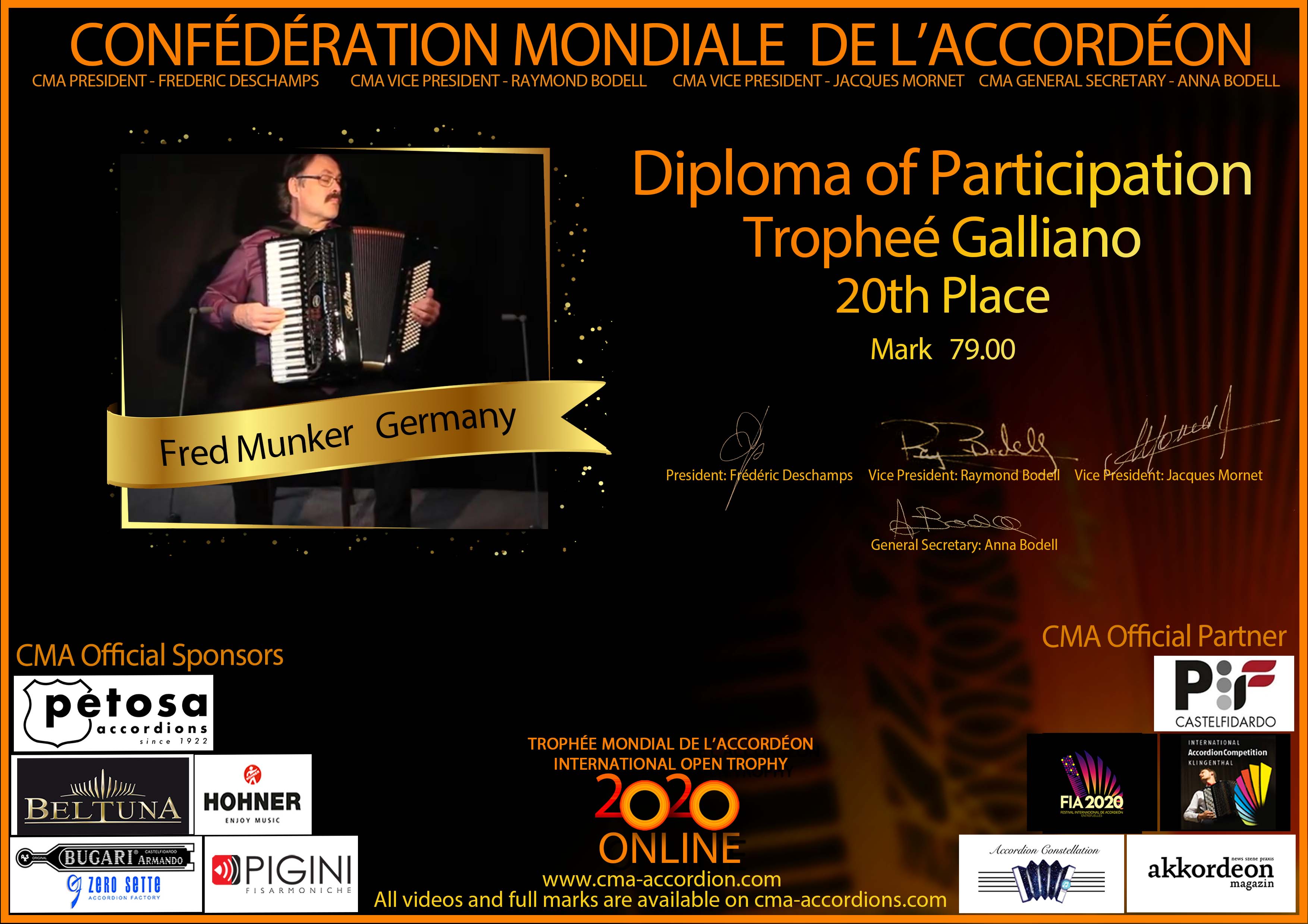 Candidates diploma of Trophee Galliano