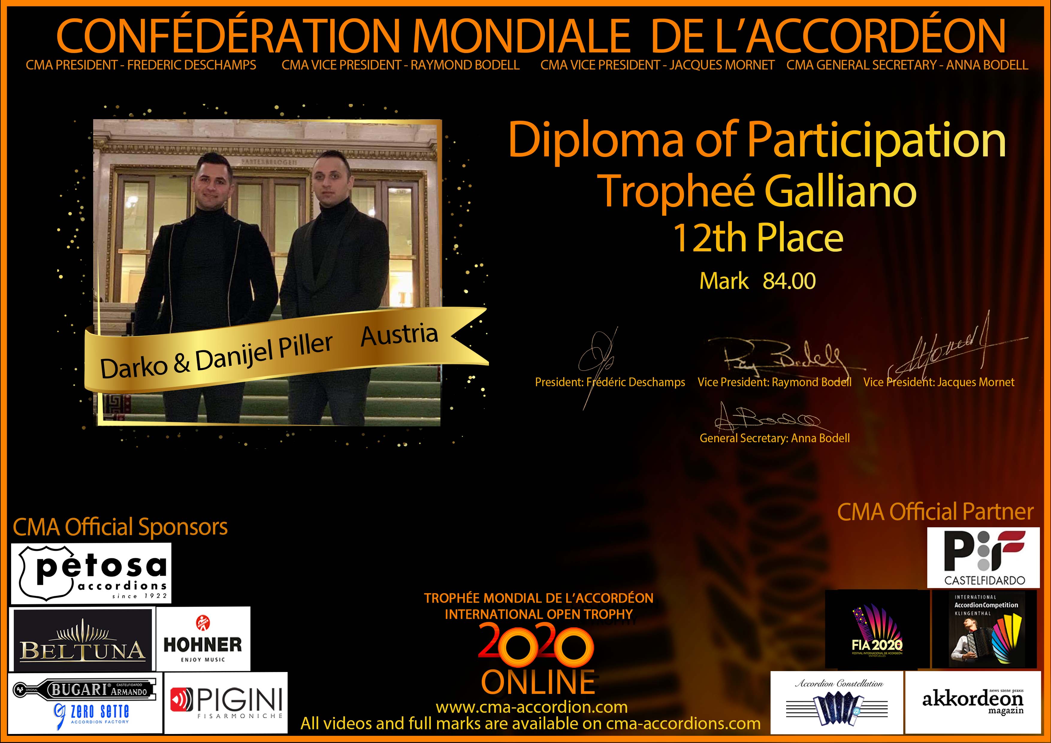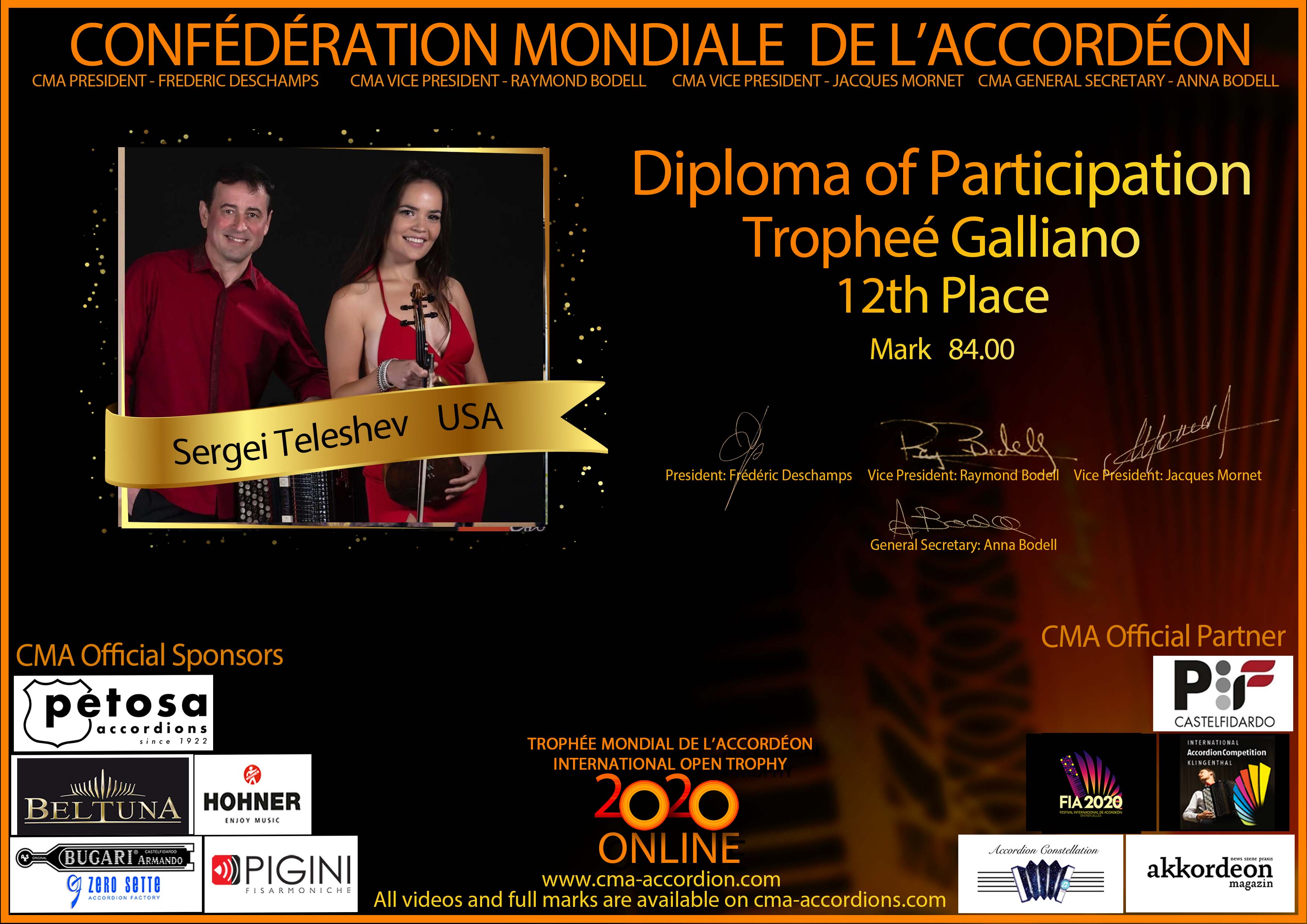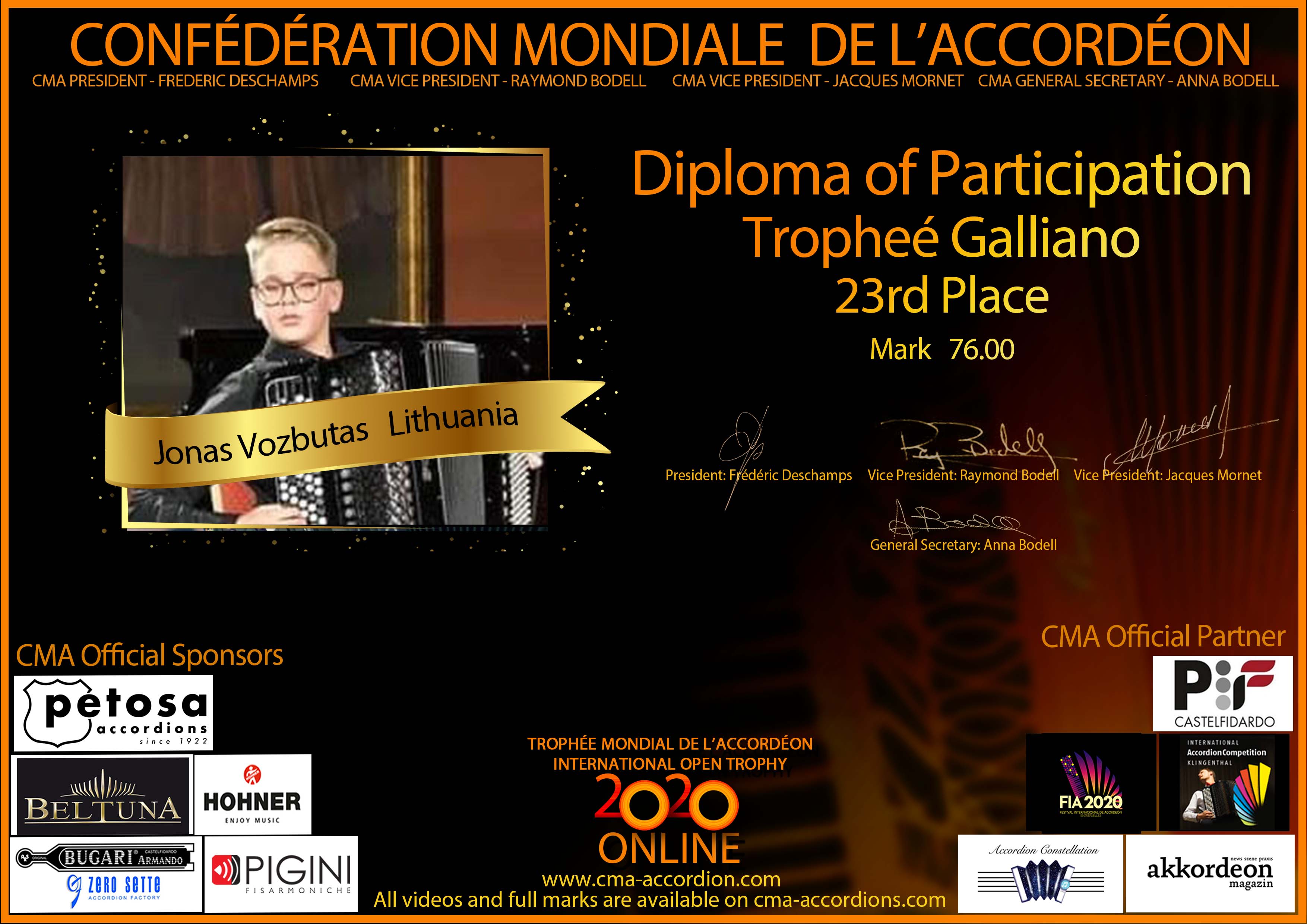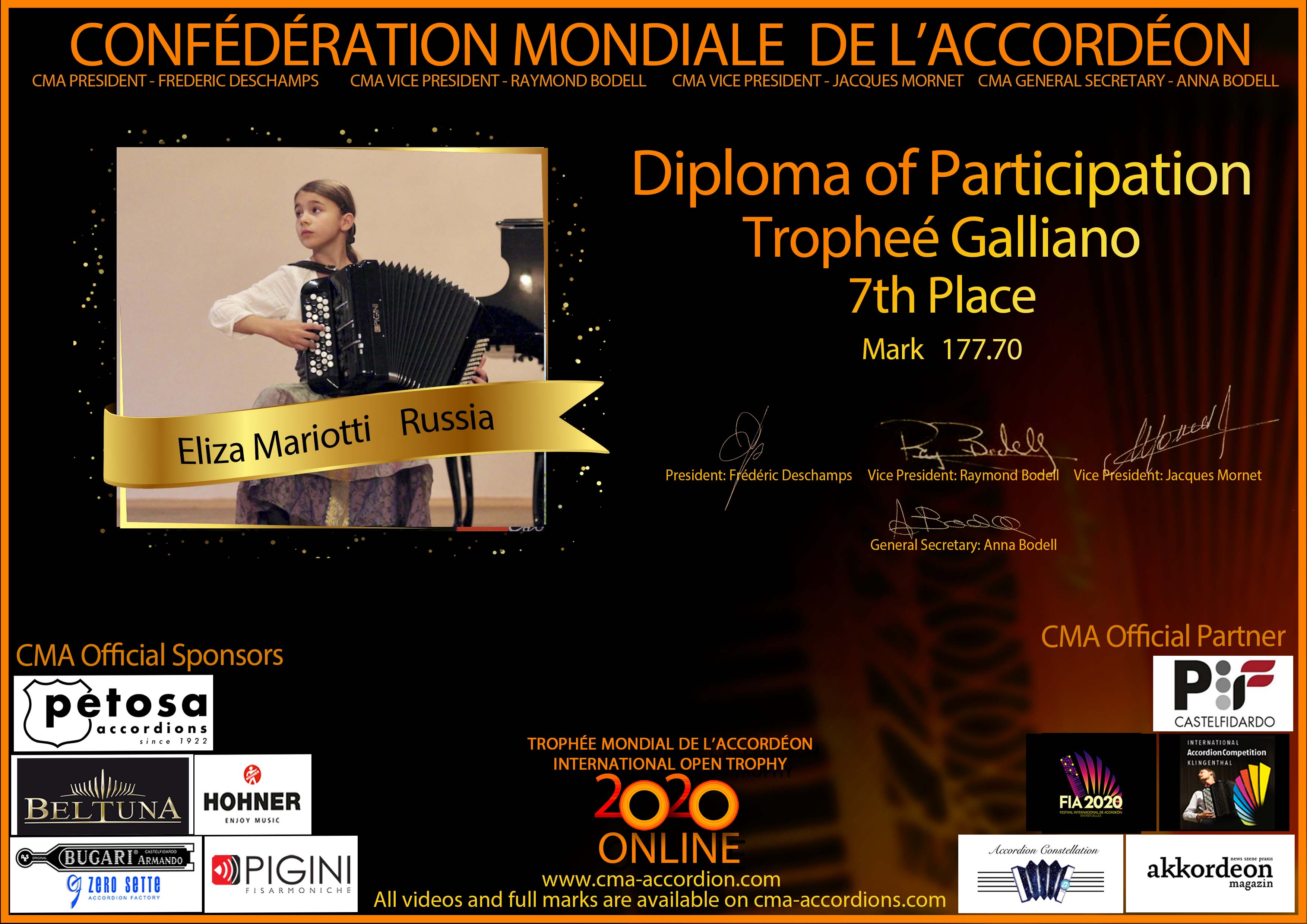 Diploma Trophee Galliano