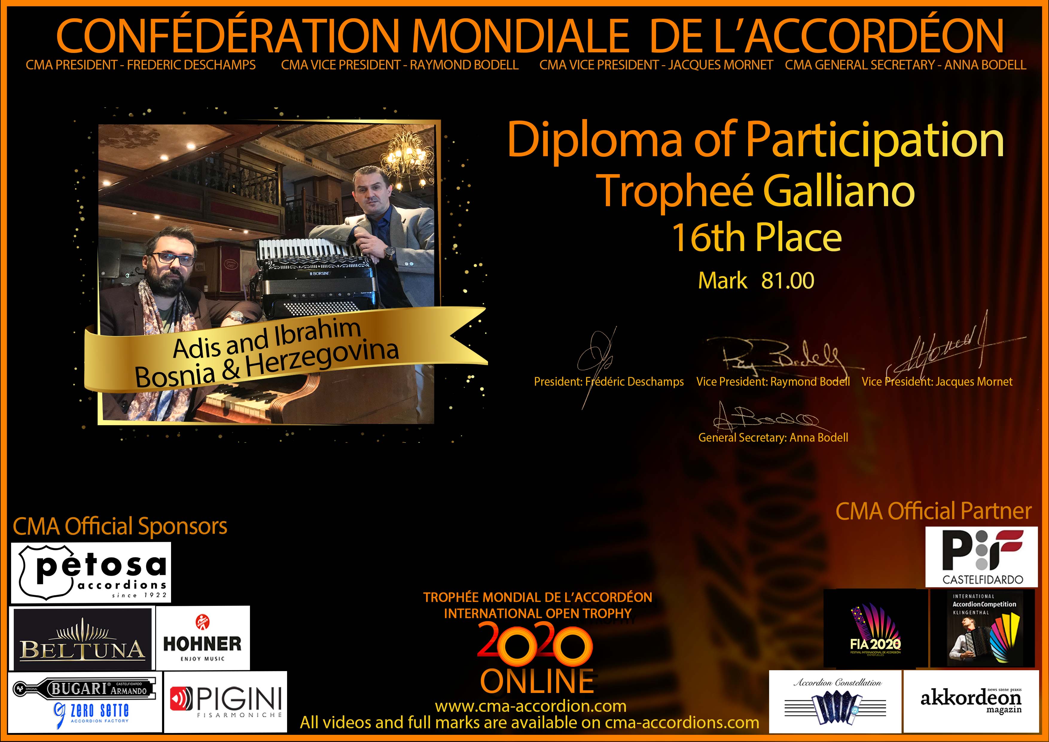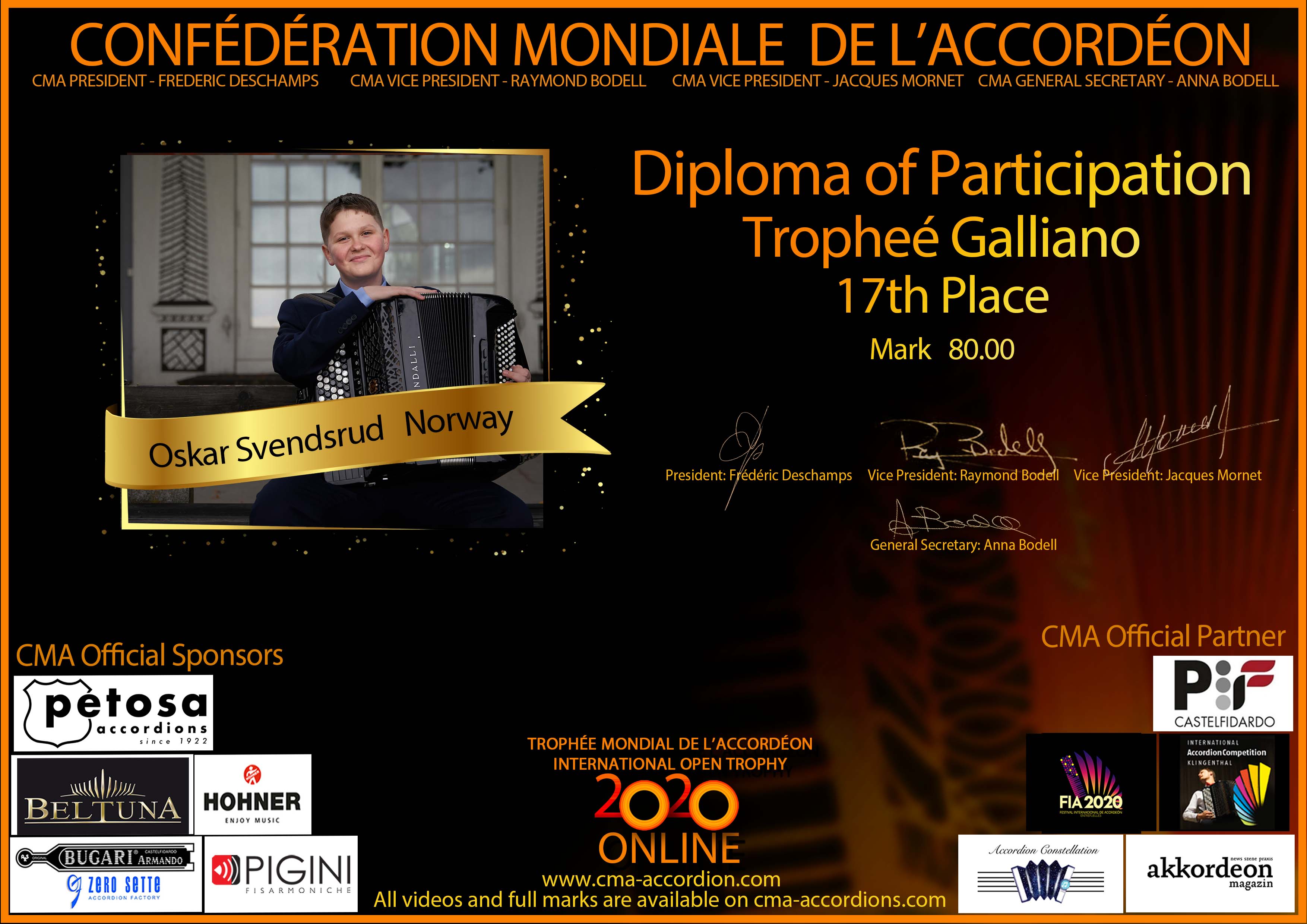 Diploma Trophee Mondial