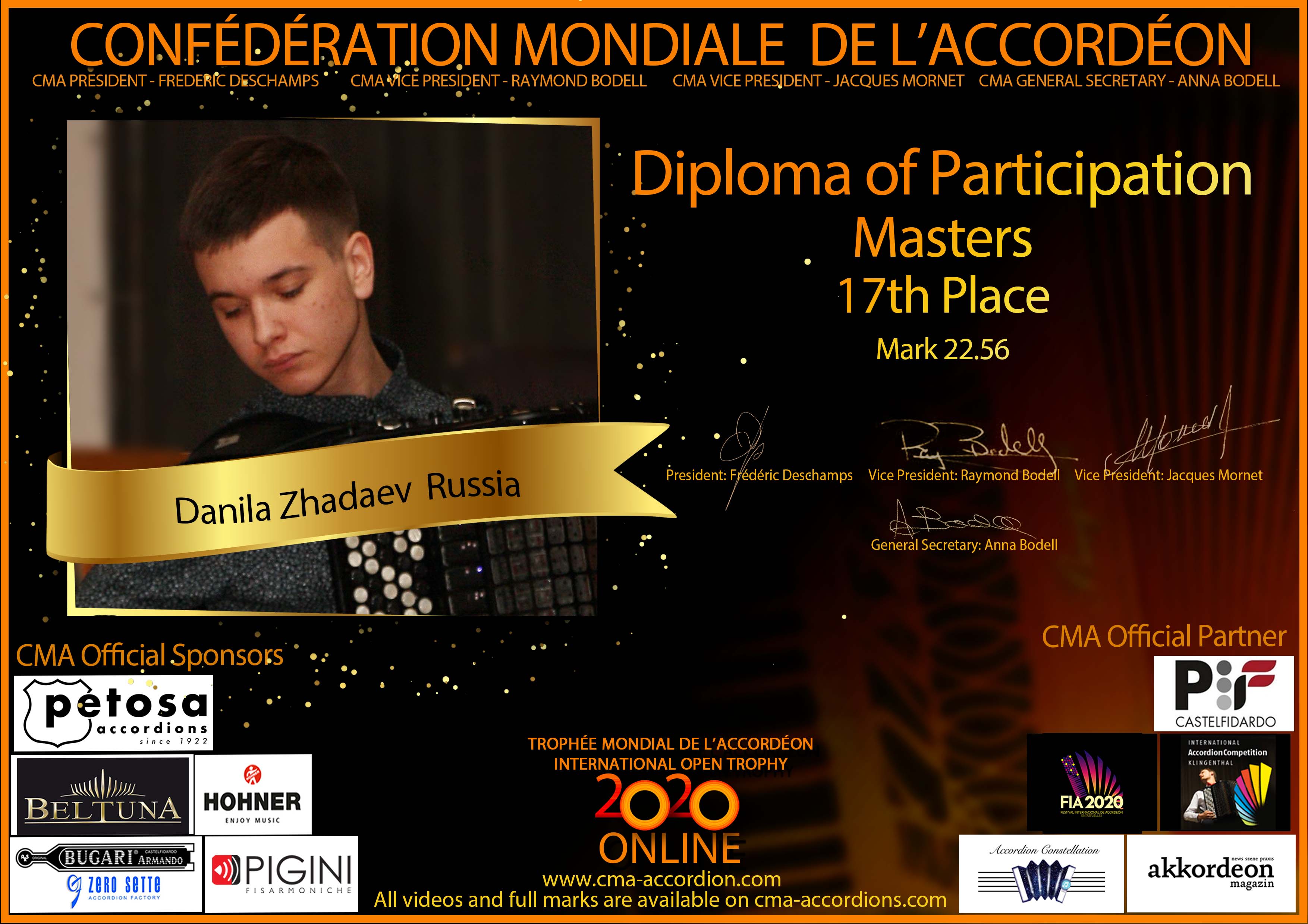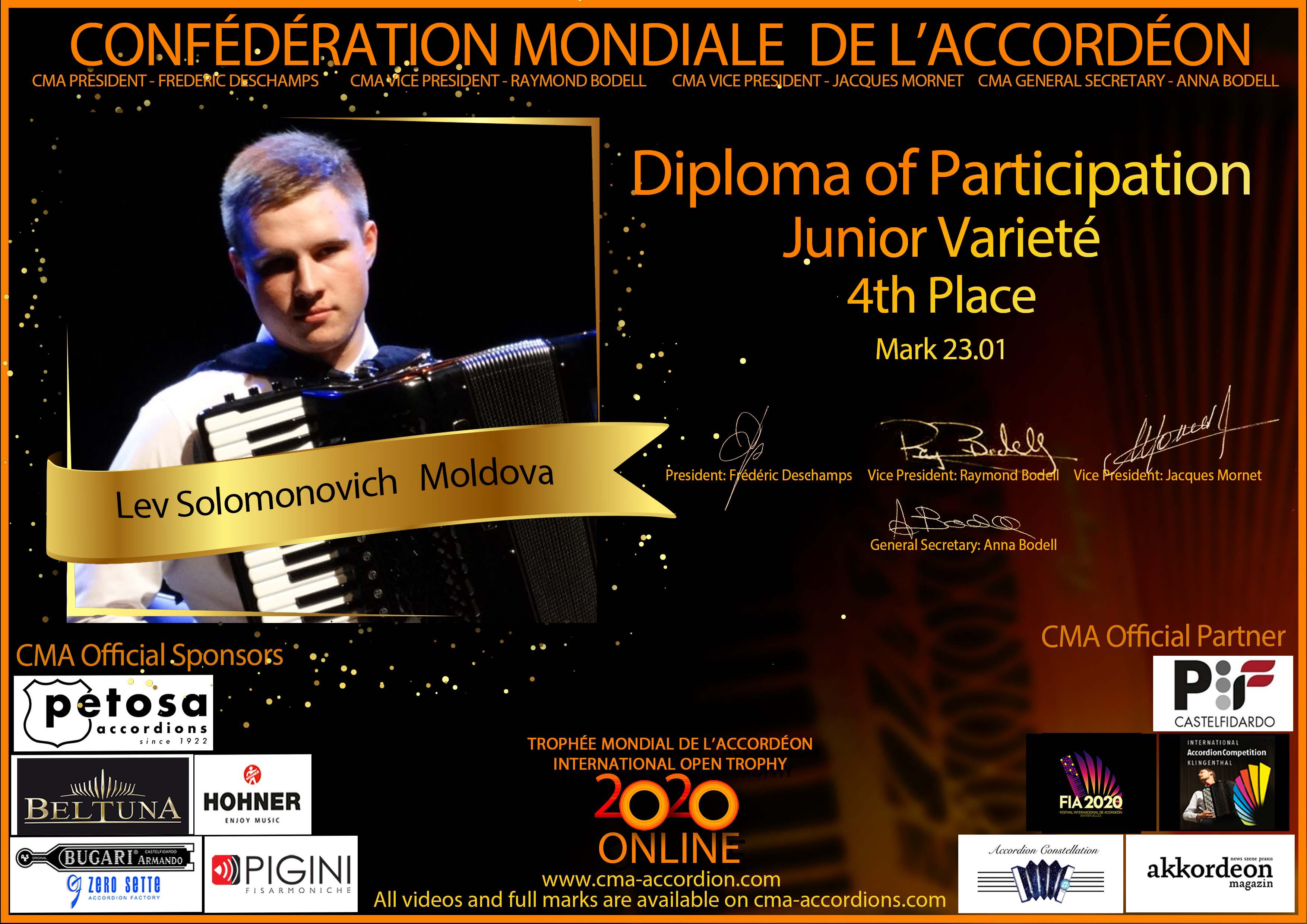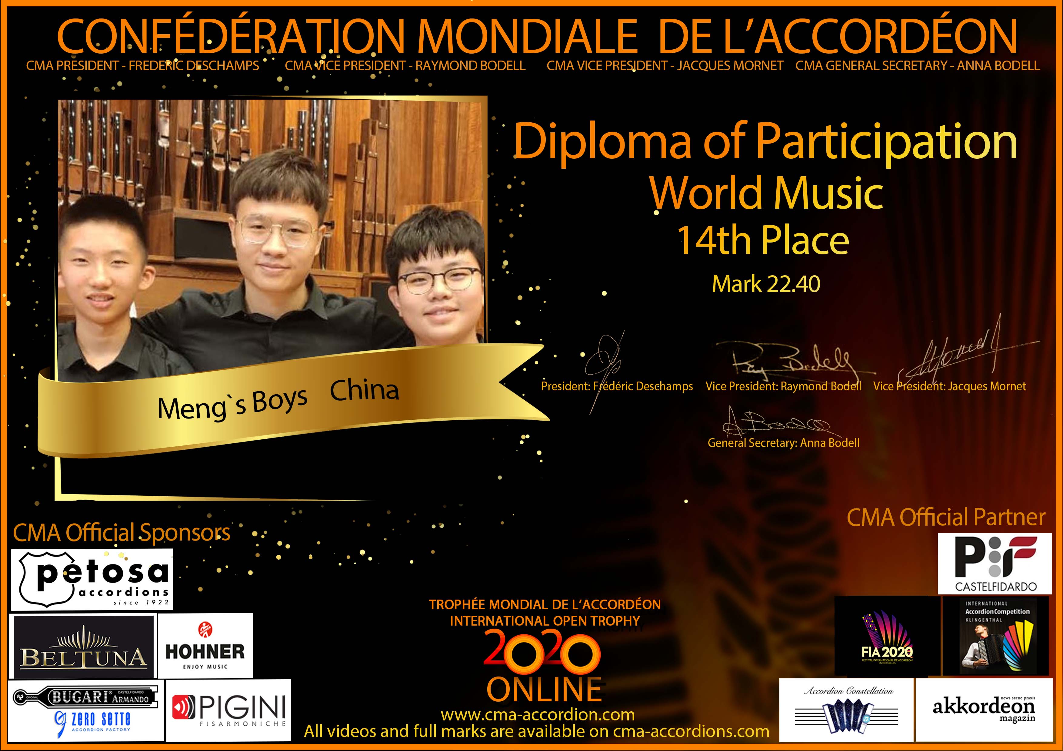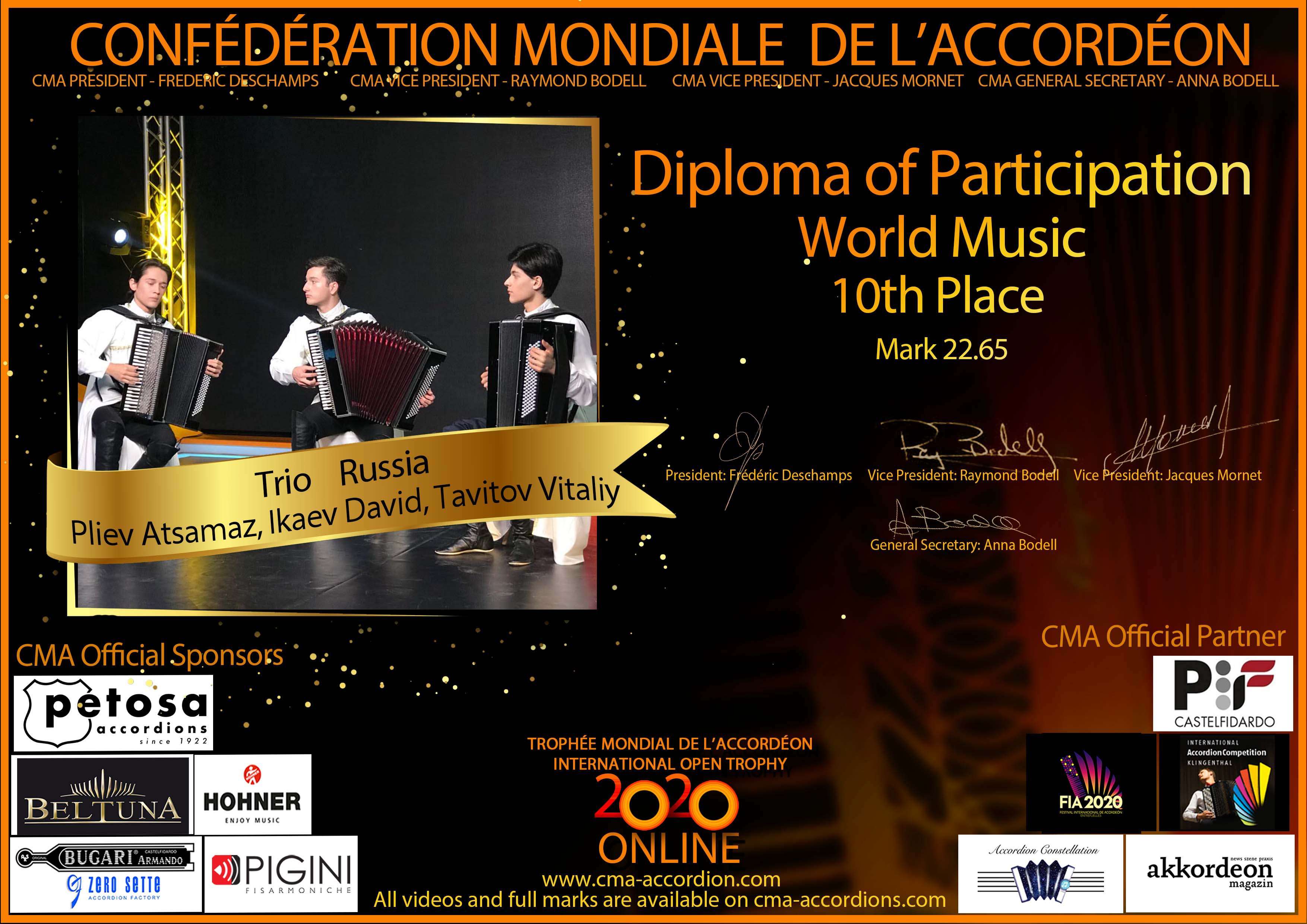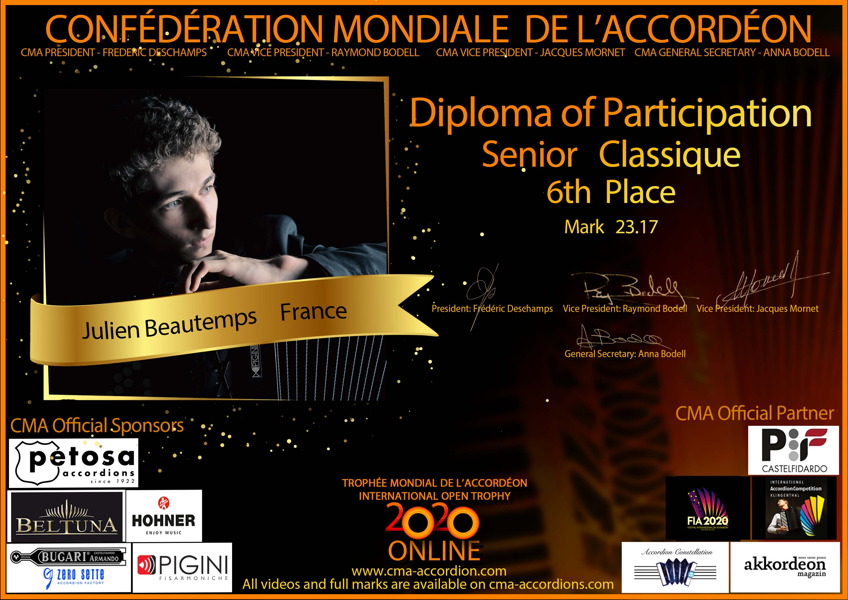Candidates diploma of Trophee Mondial