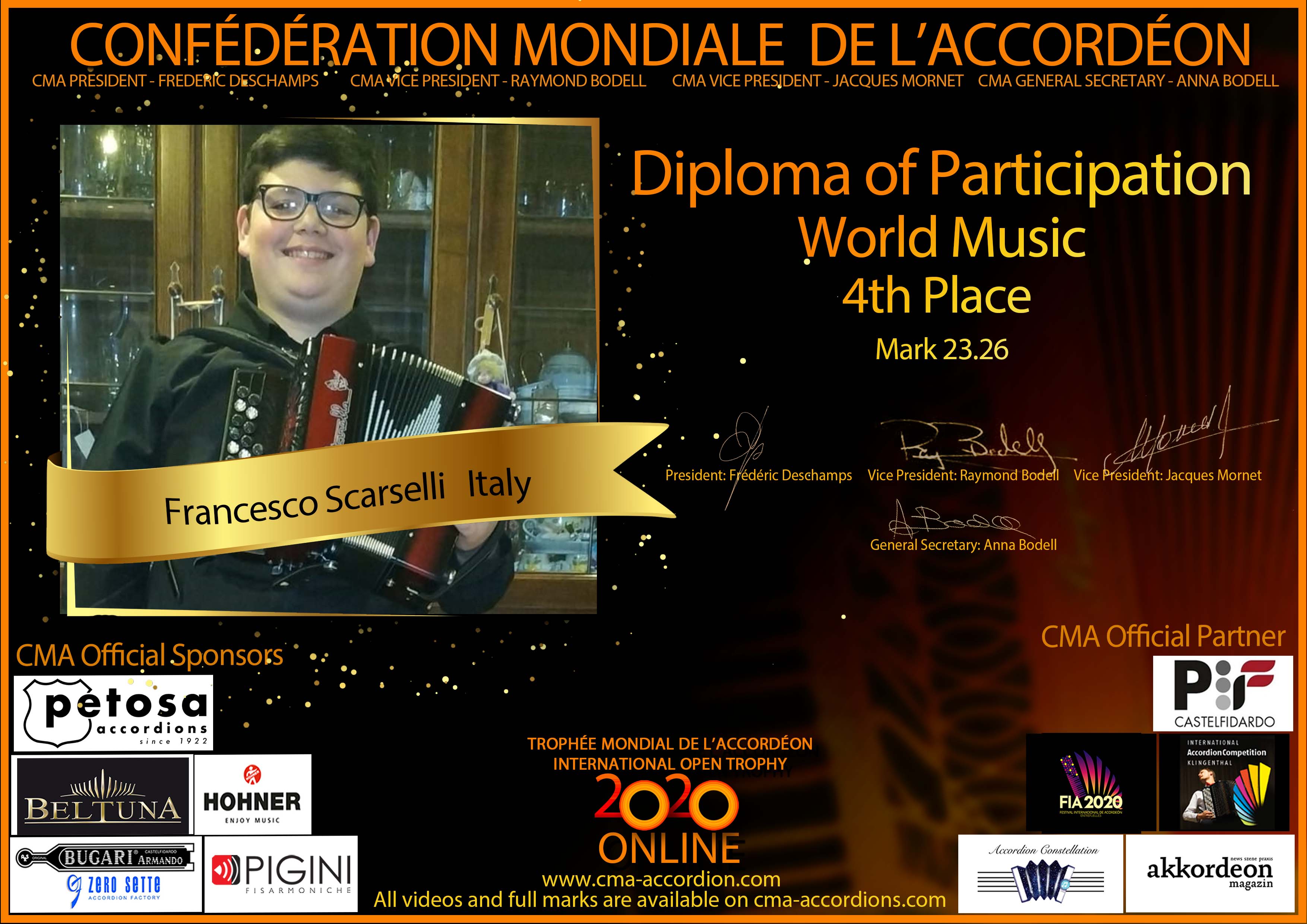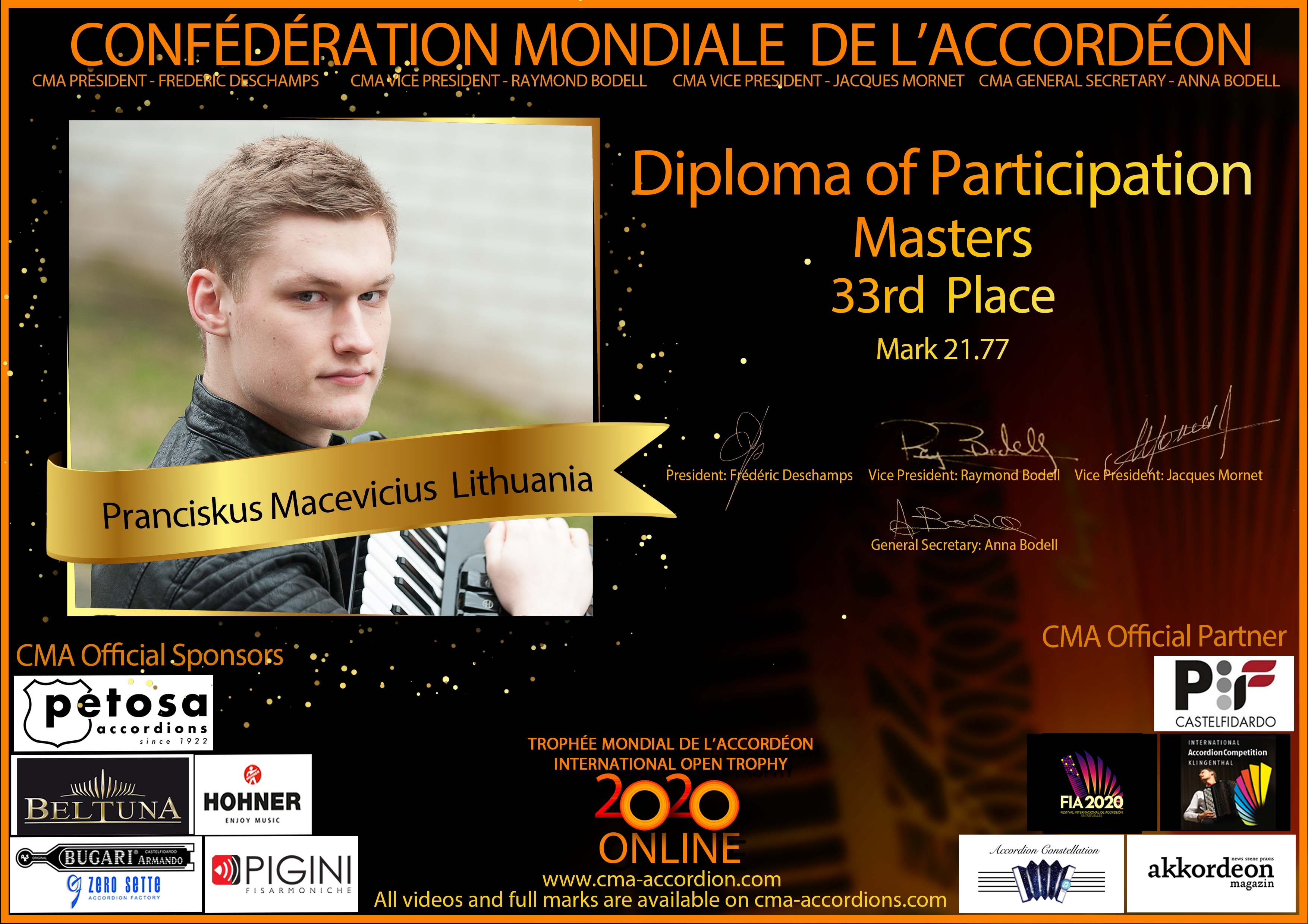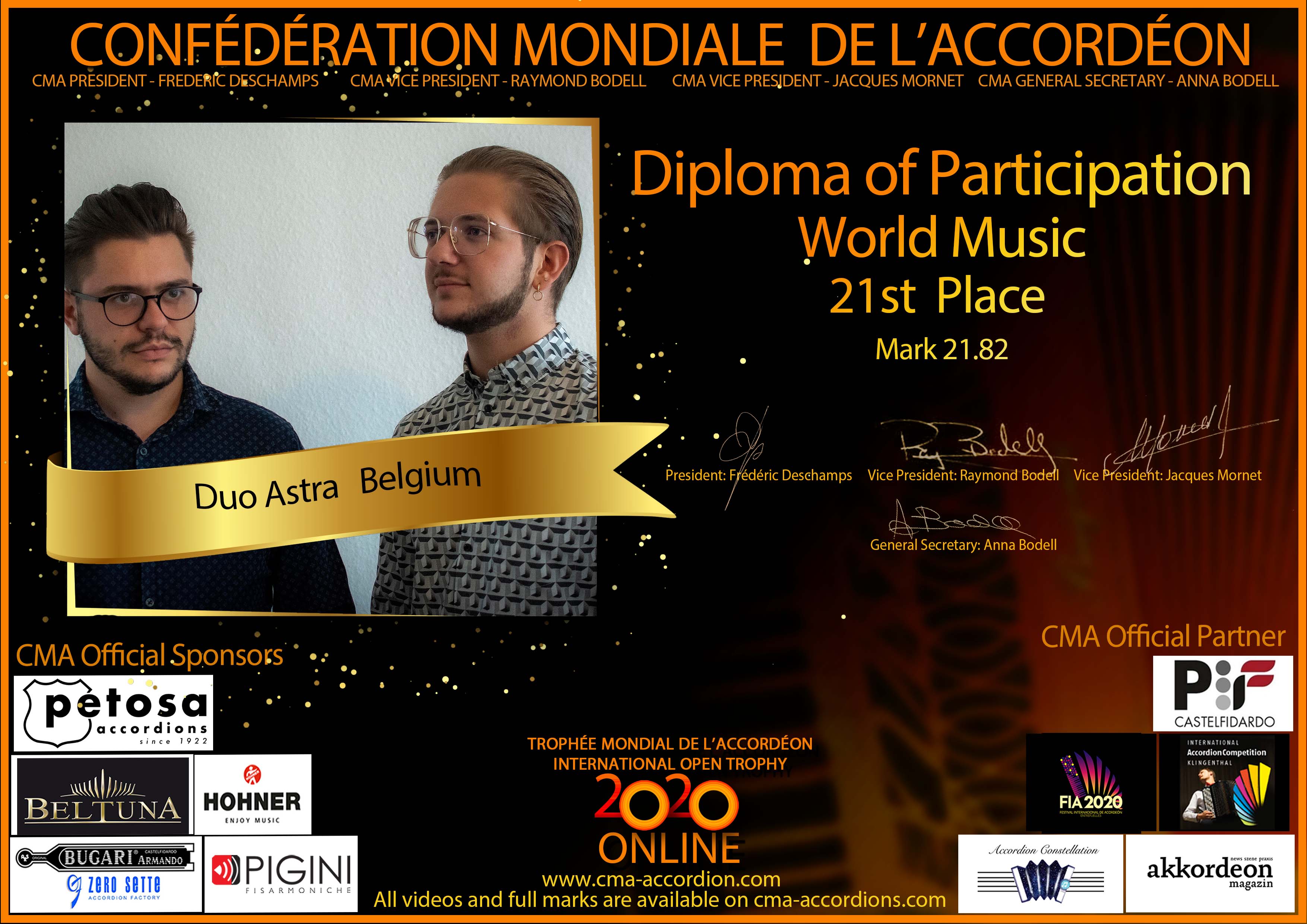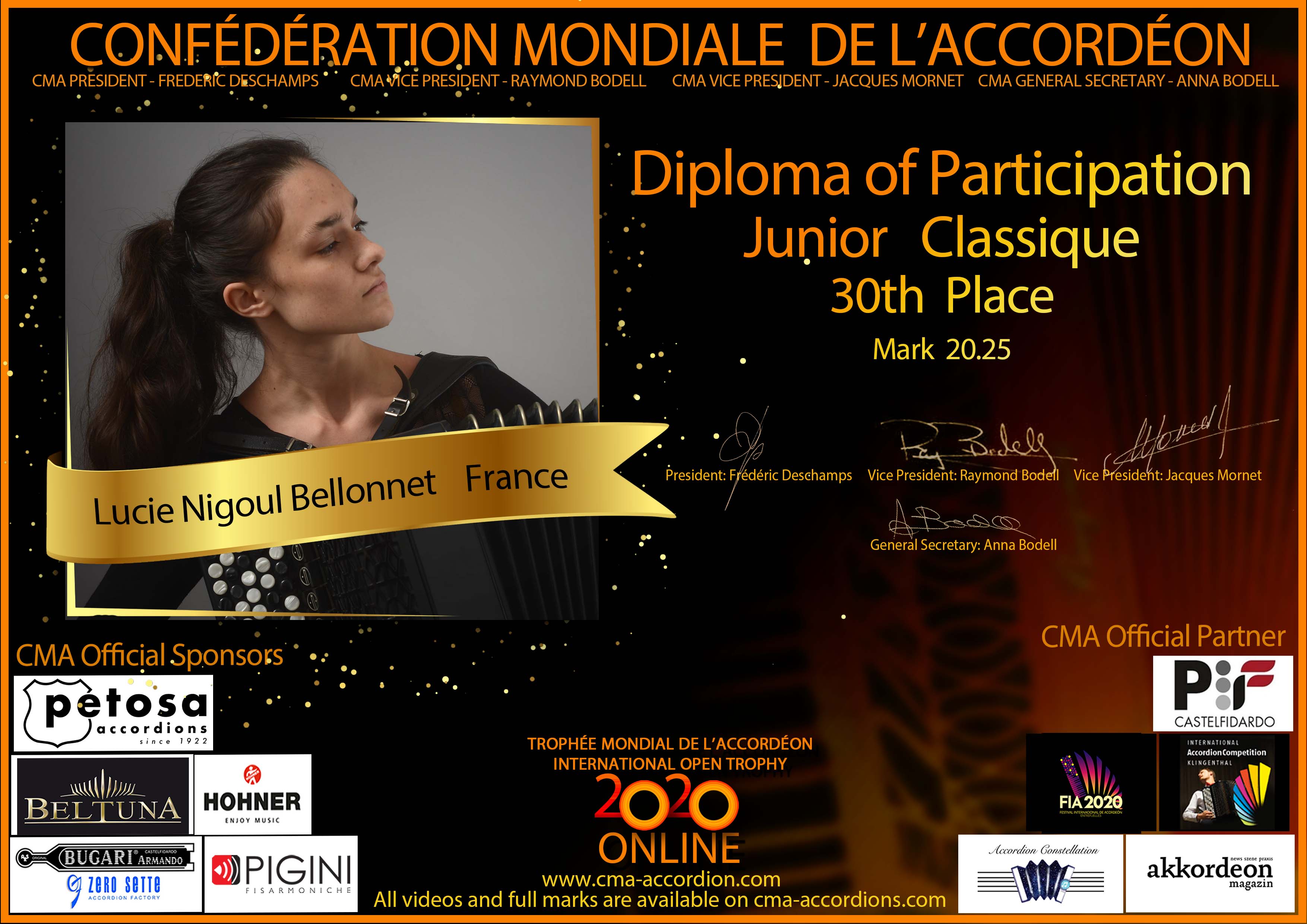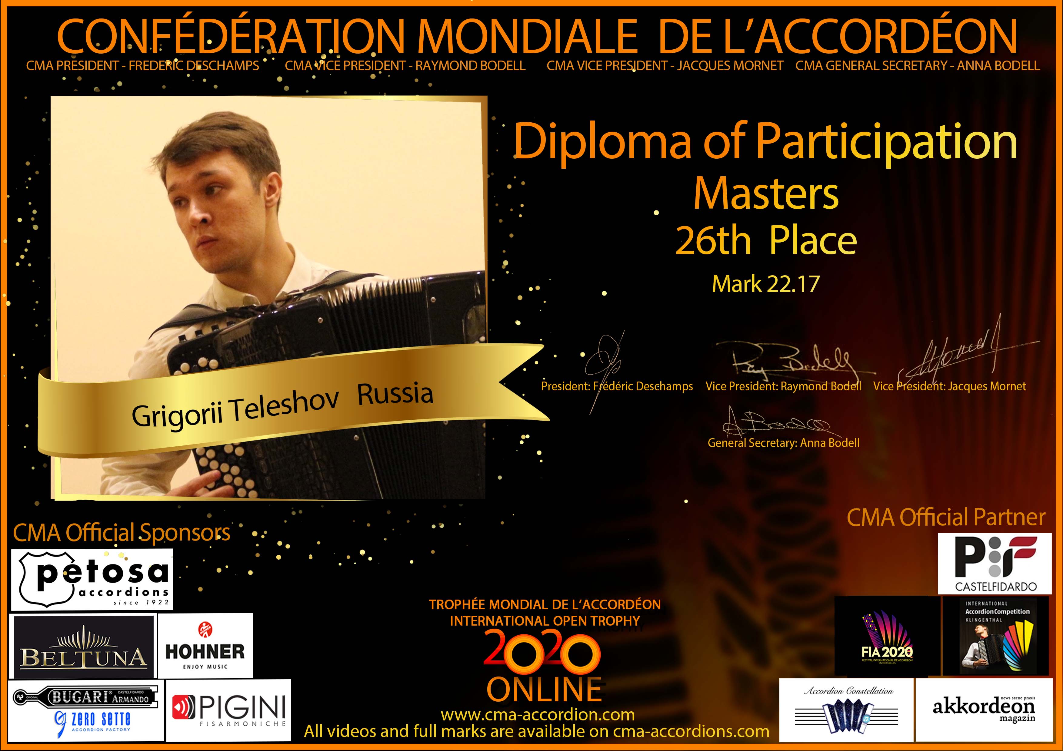 Candidates diploma of Trophee Mondial