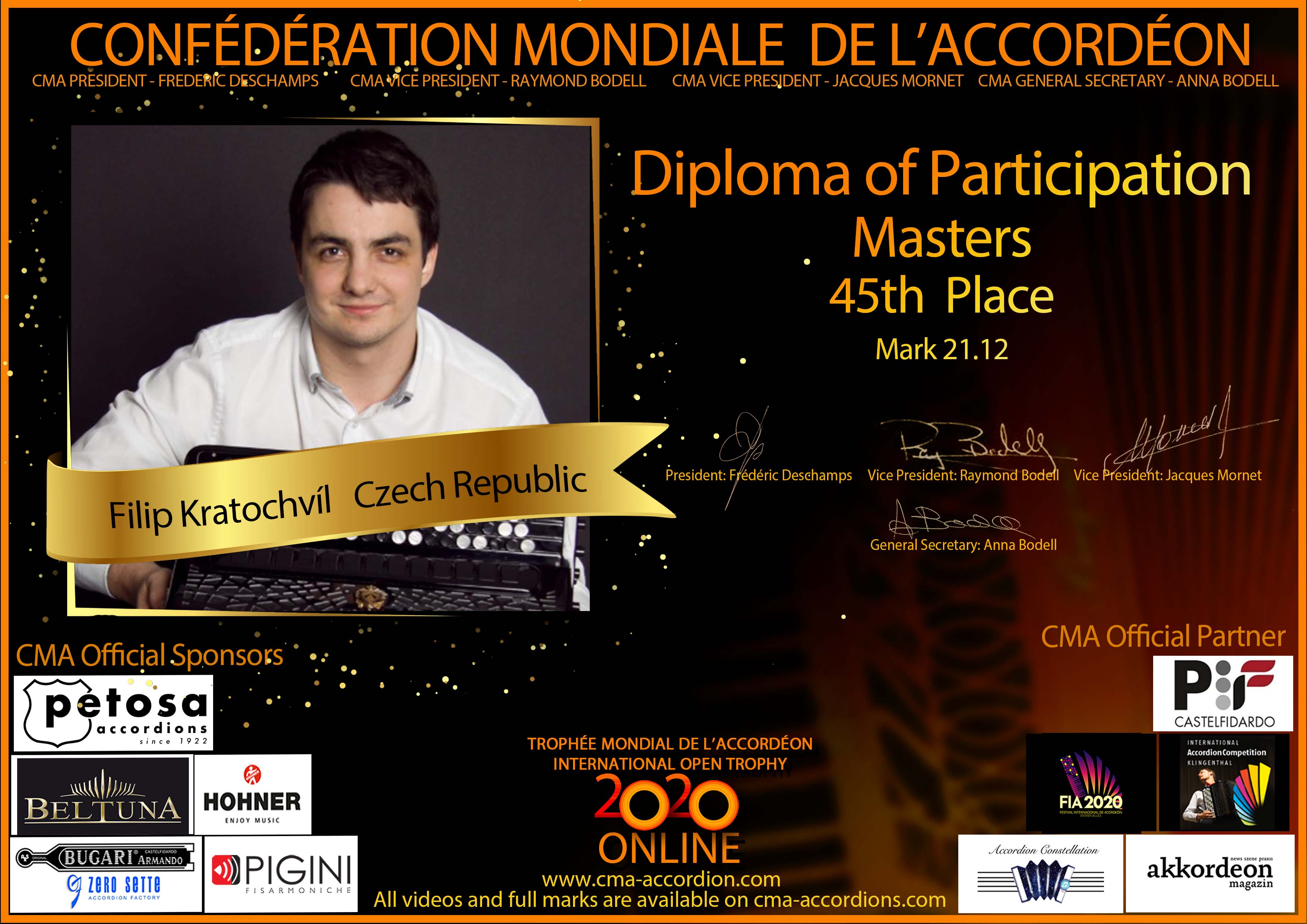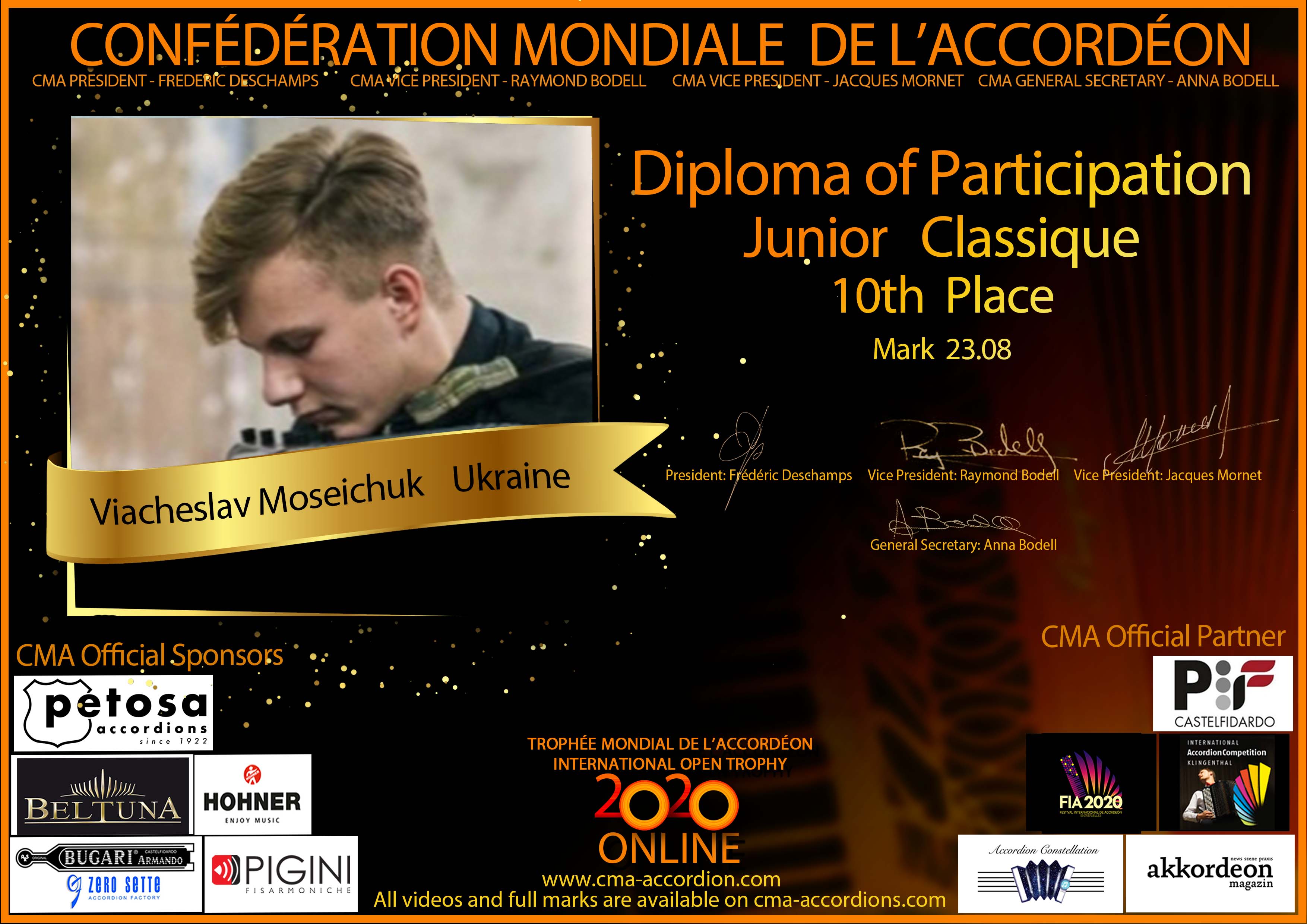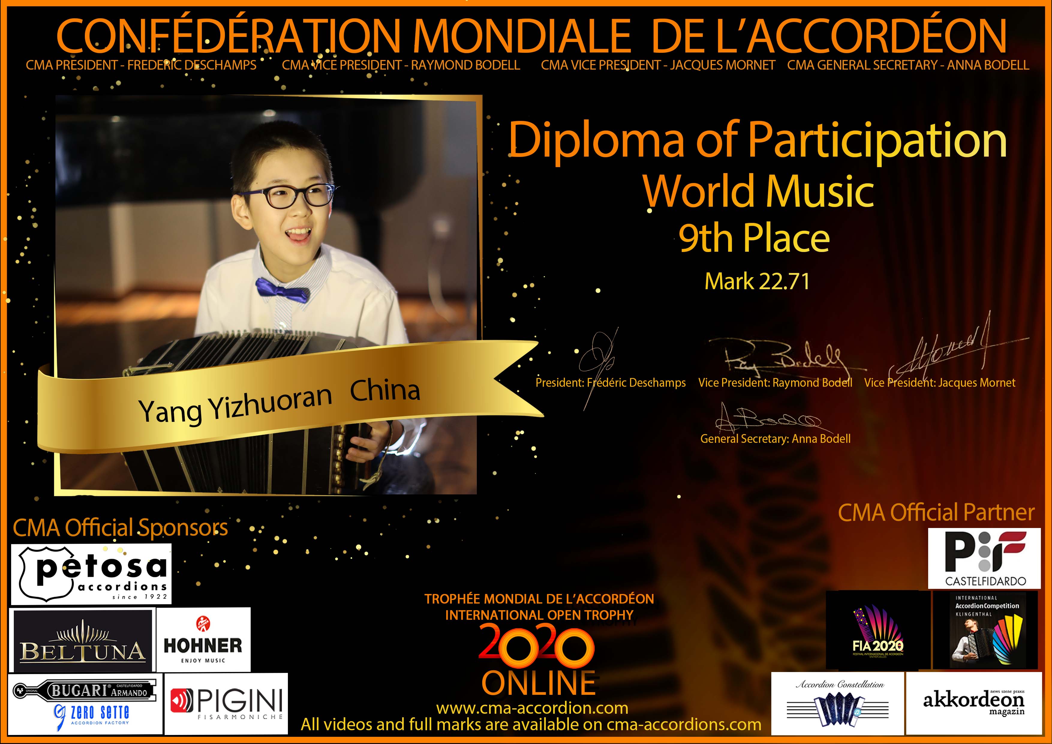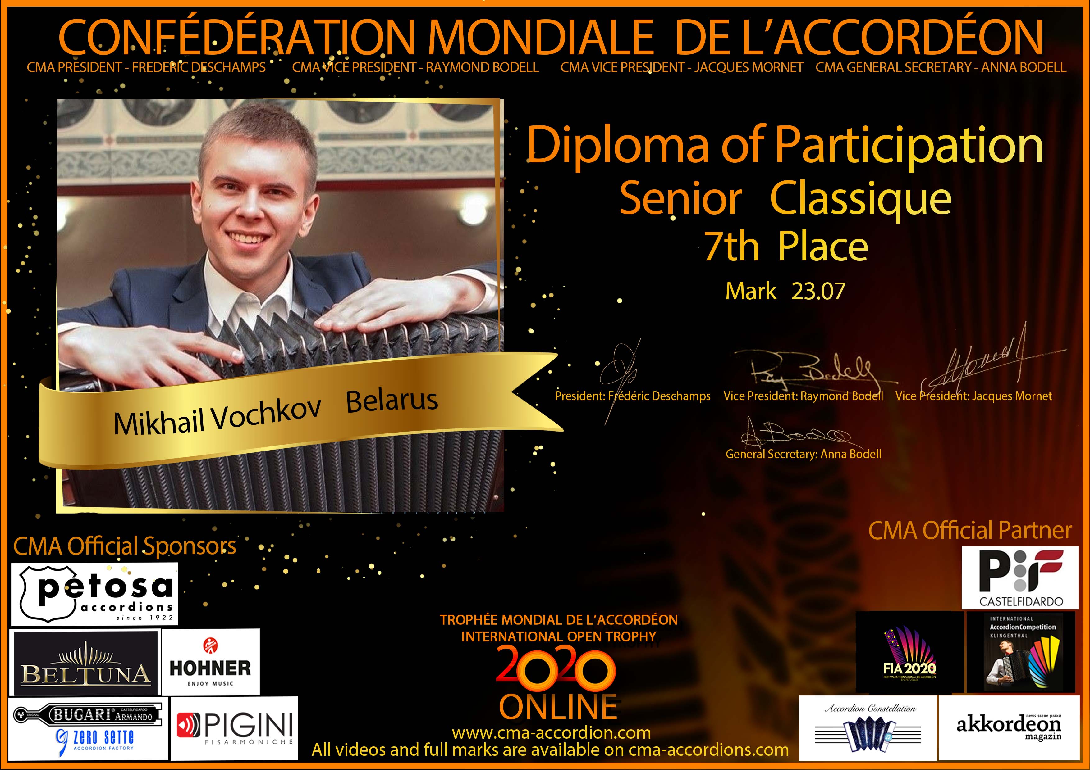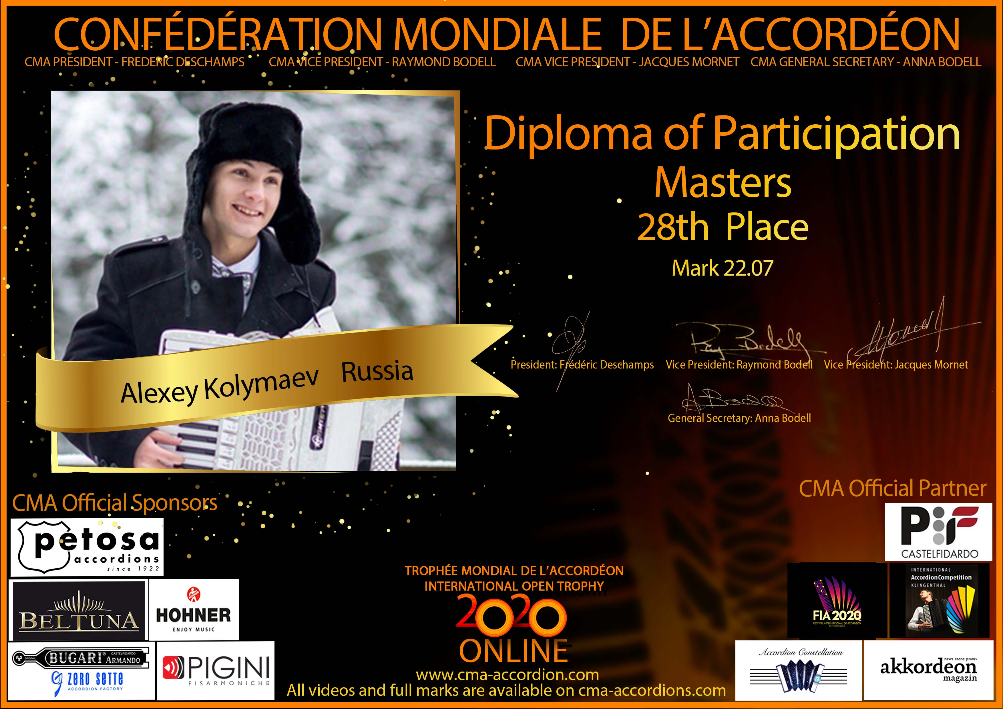 Candidates diploma of Trophee Mondial