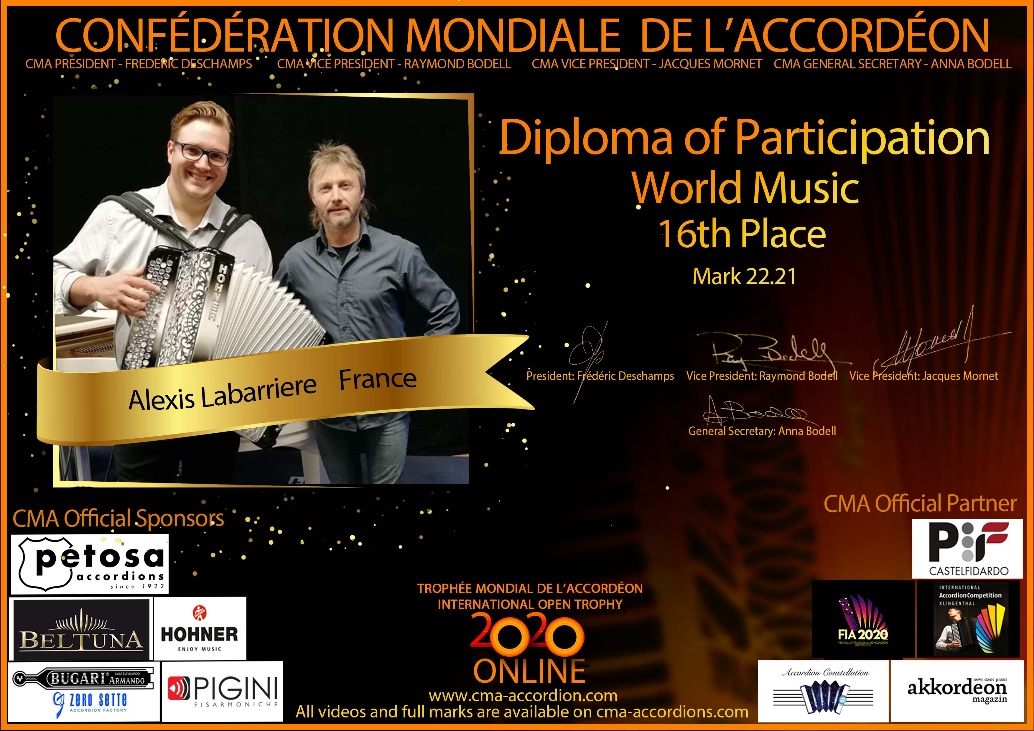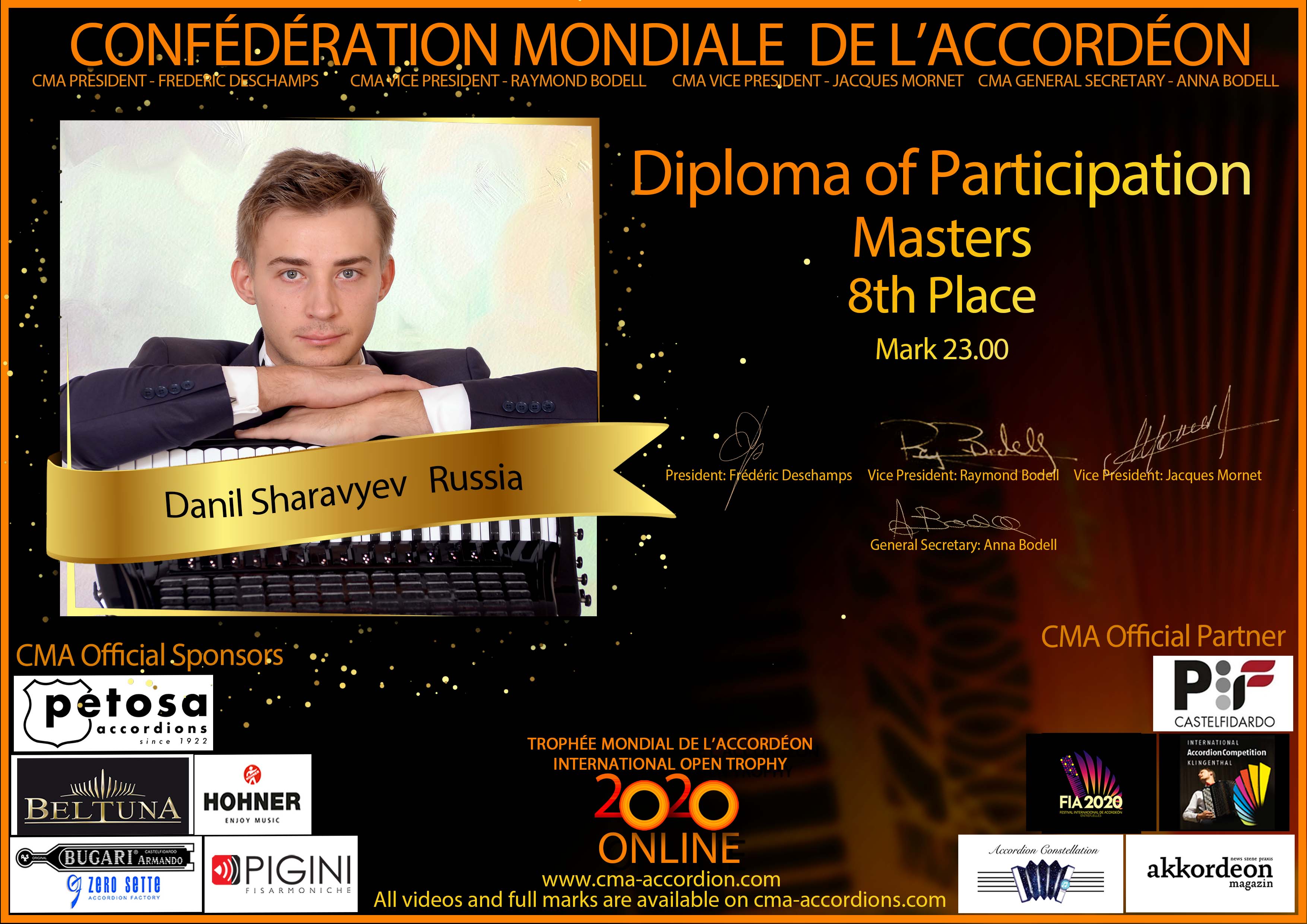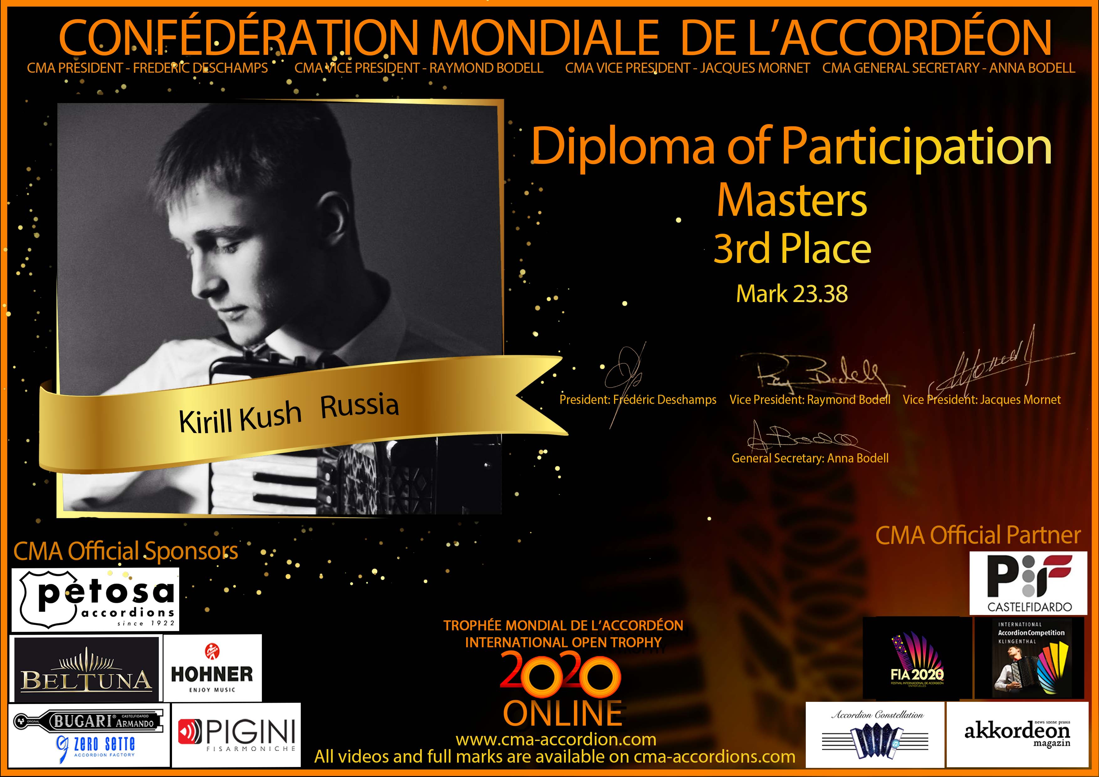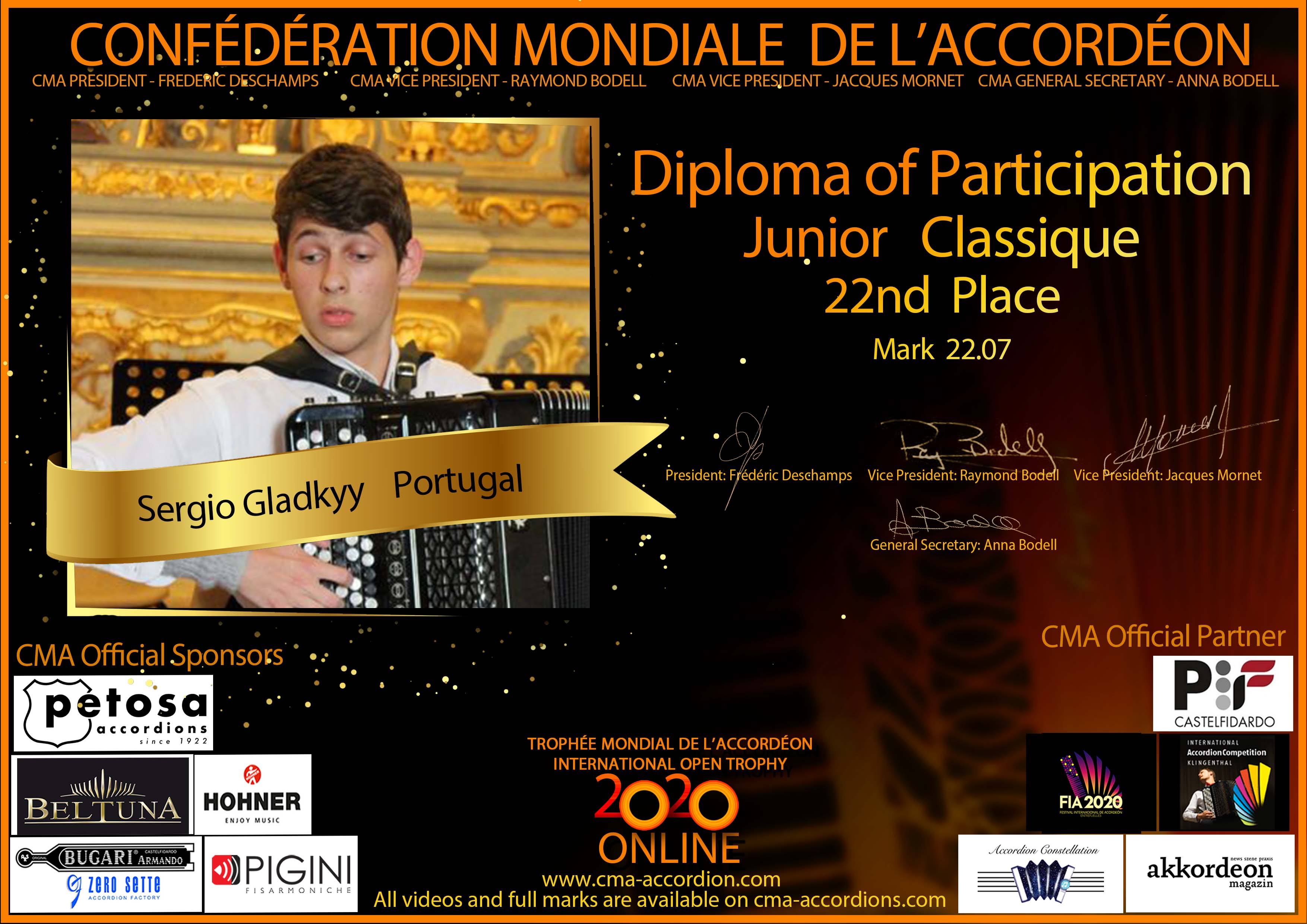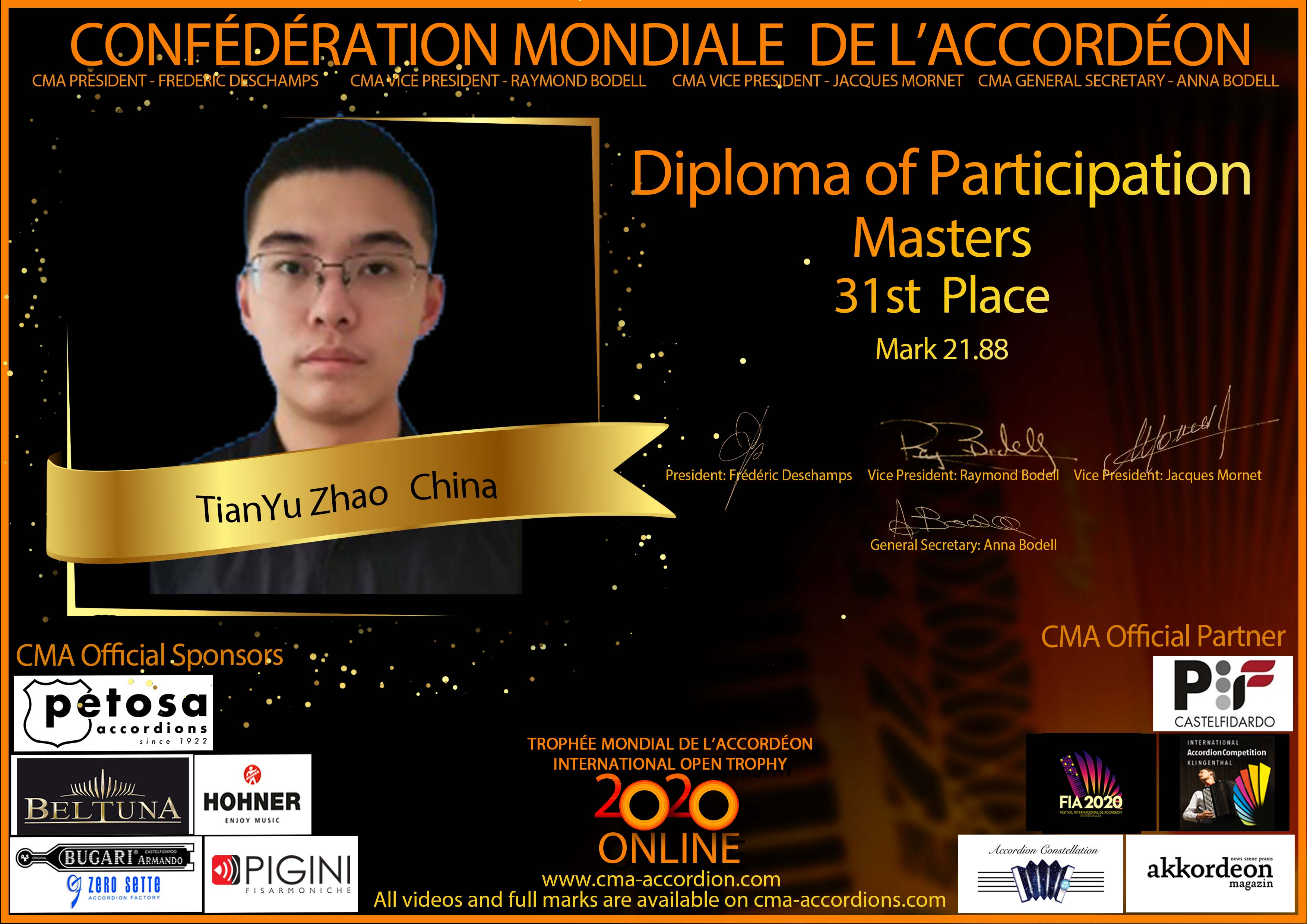 Candidates diploma of Trophee Mondial