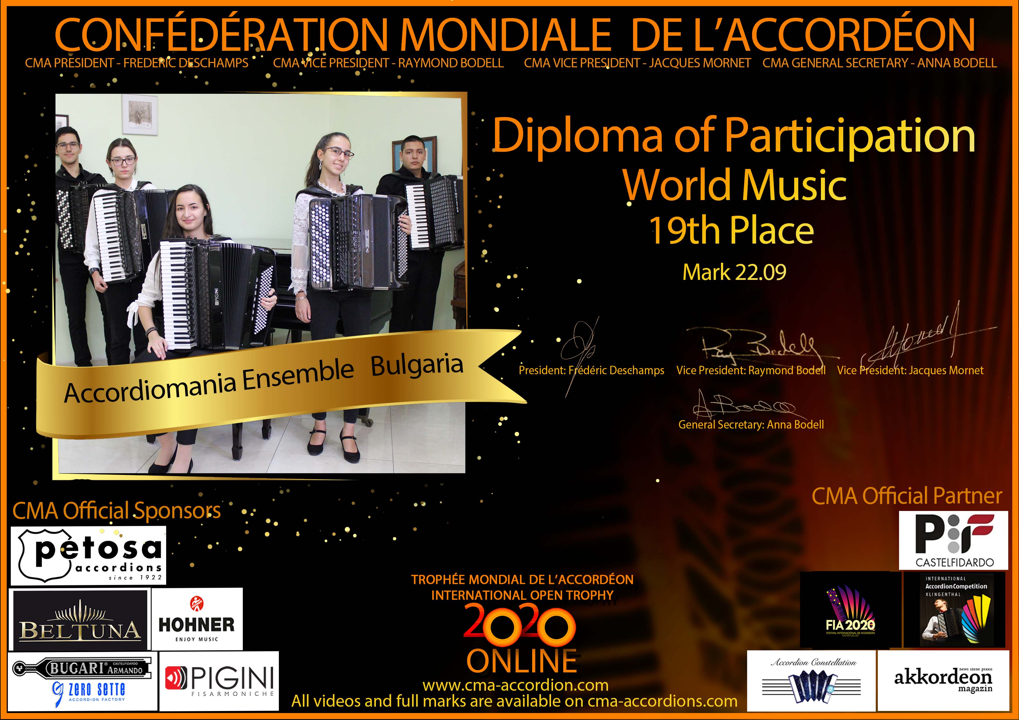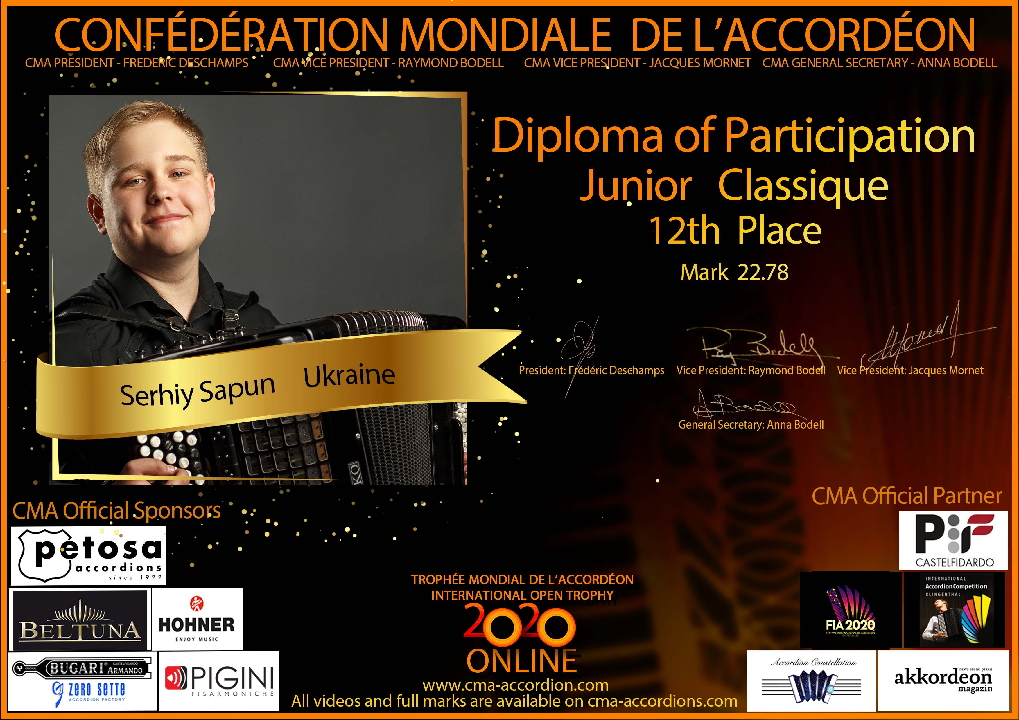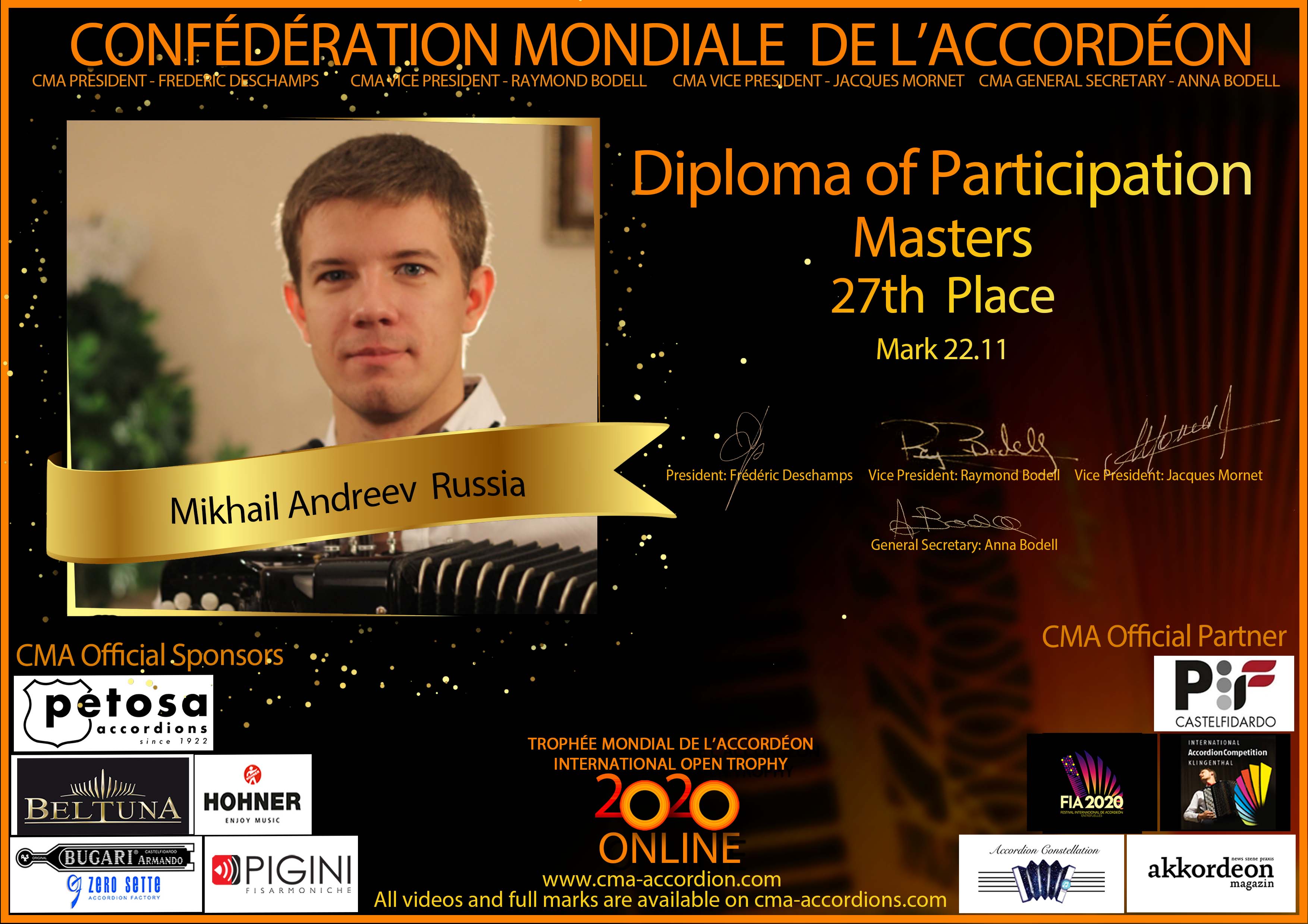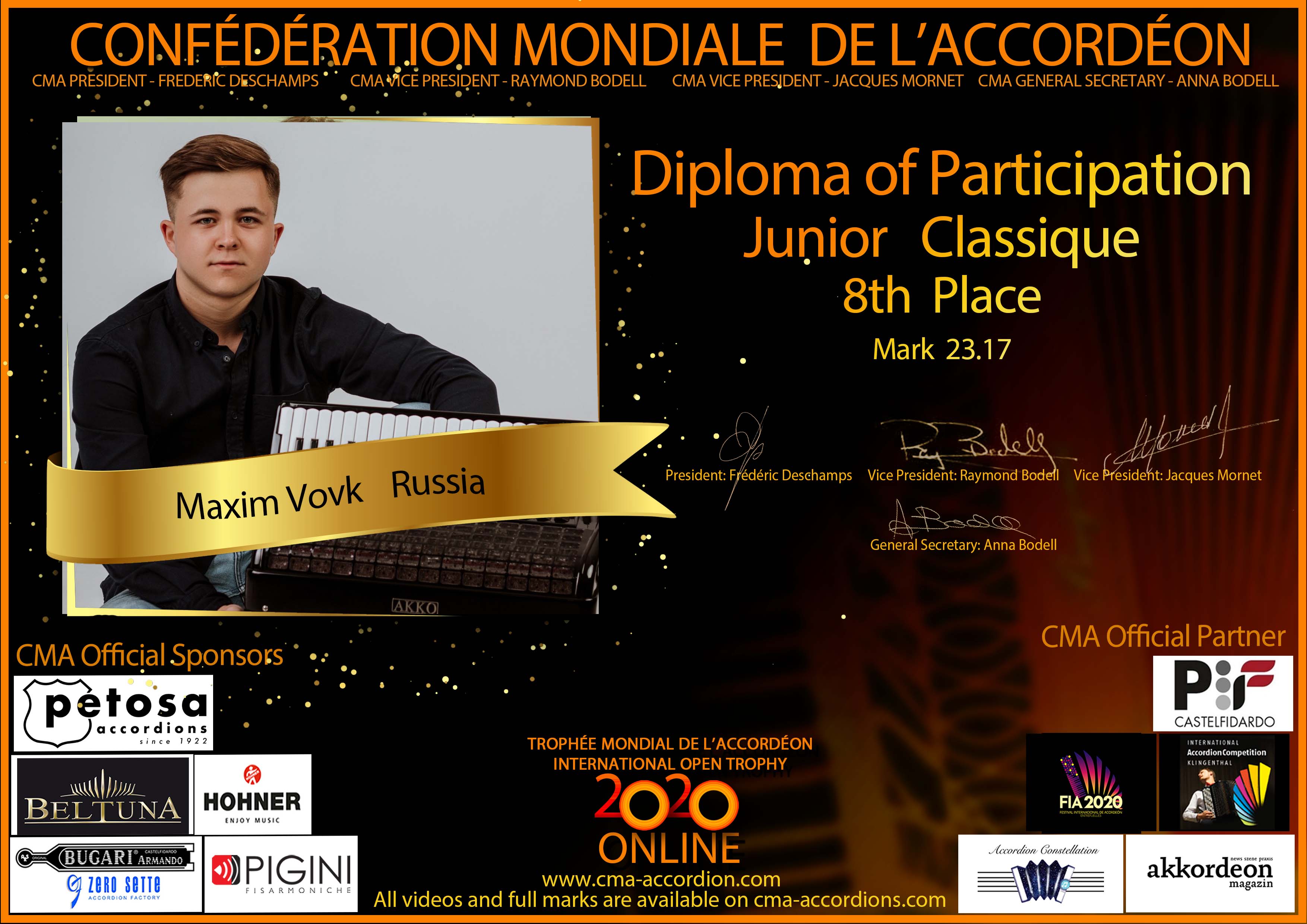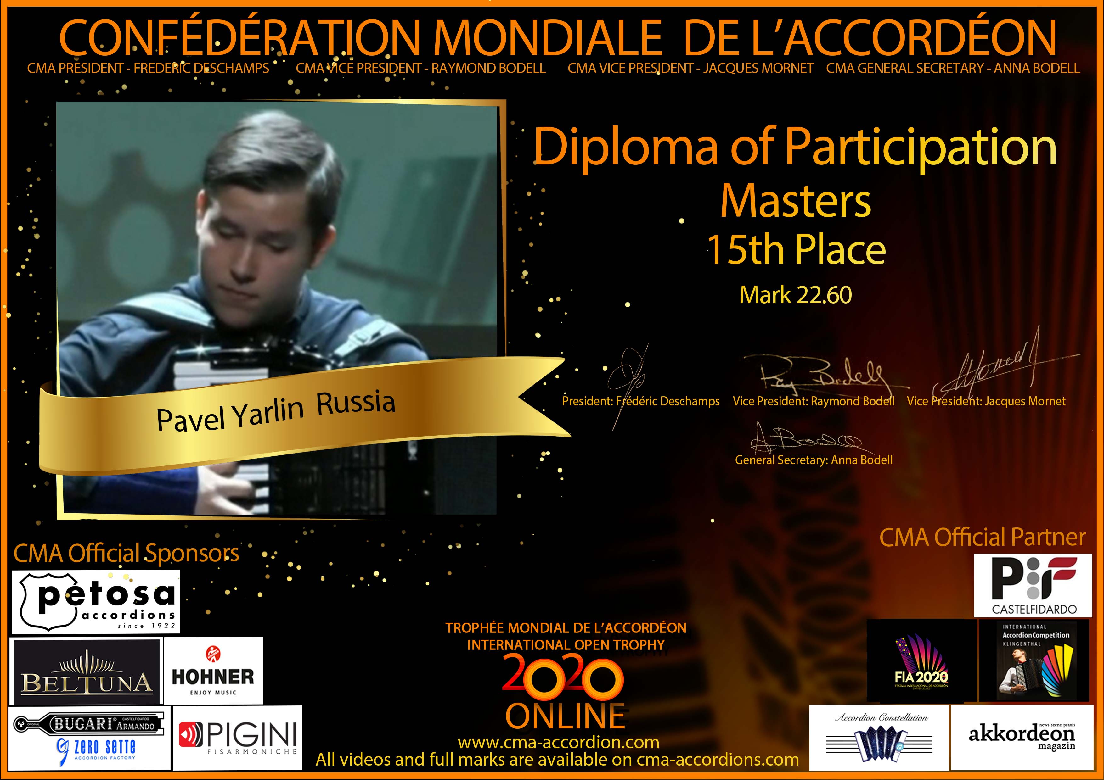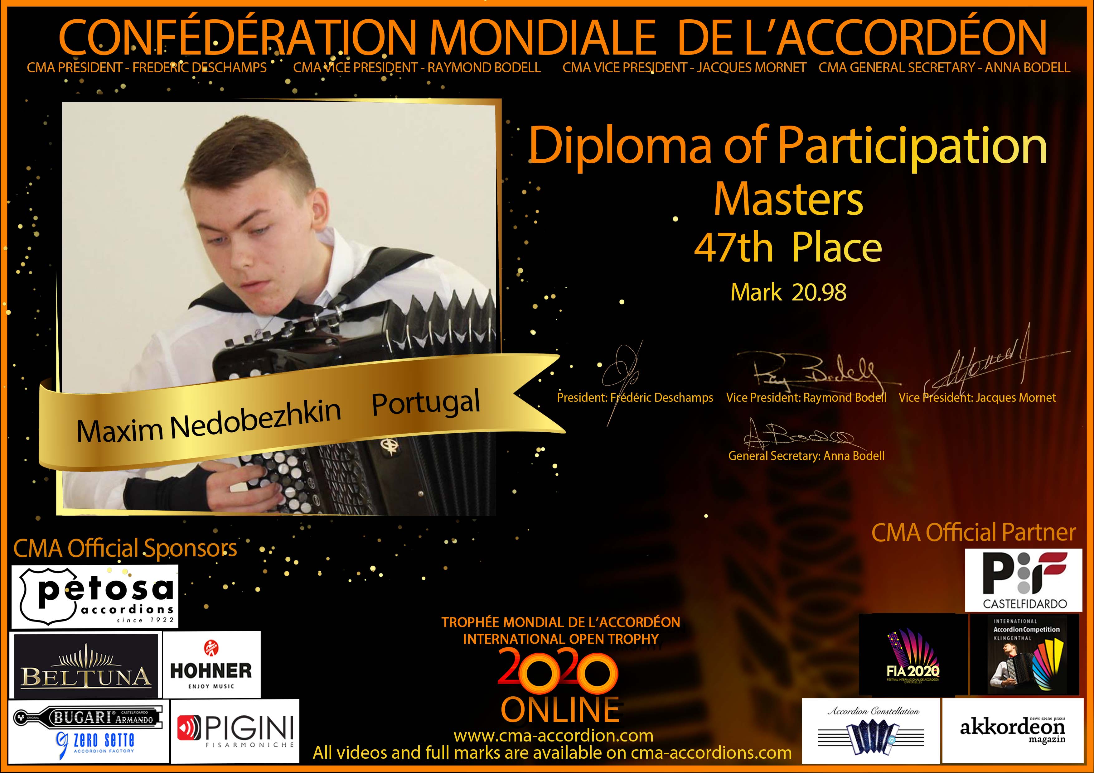 Candidates diploma of Trophee Mondial