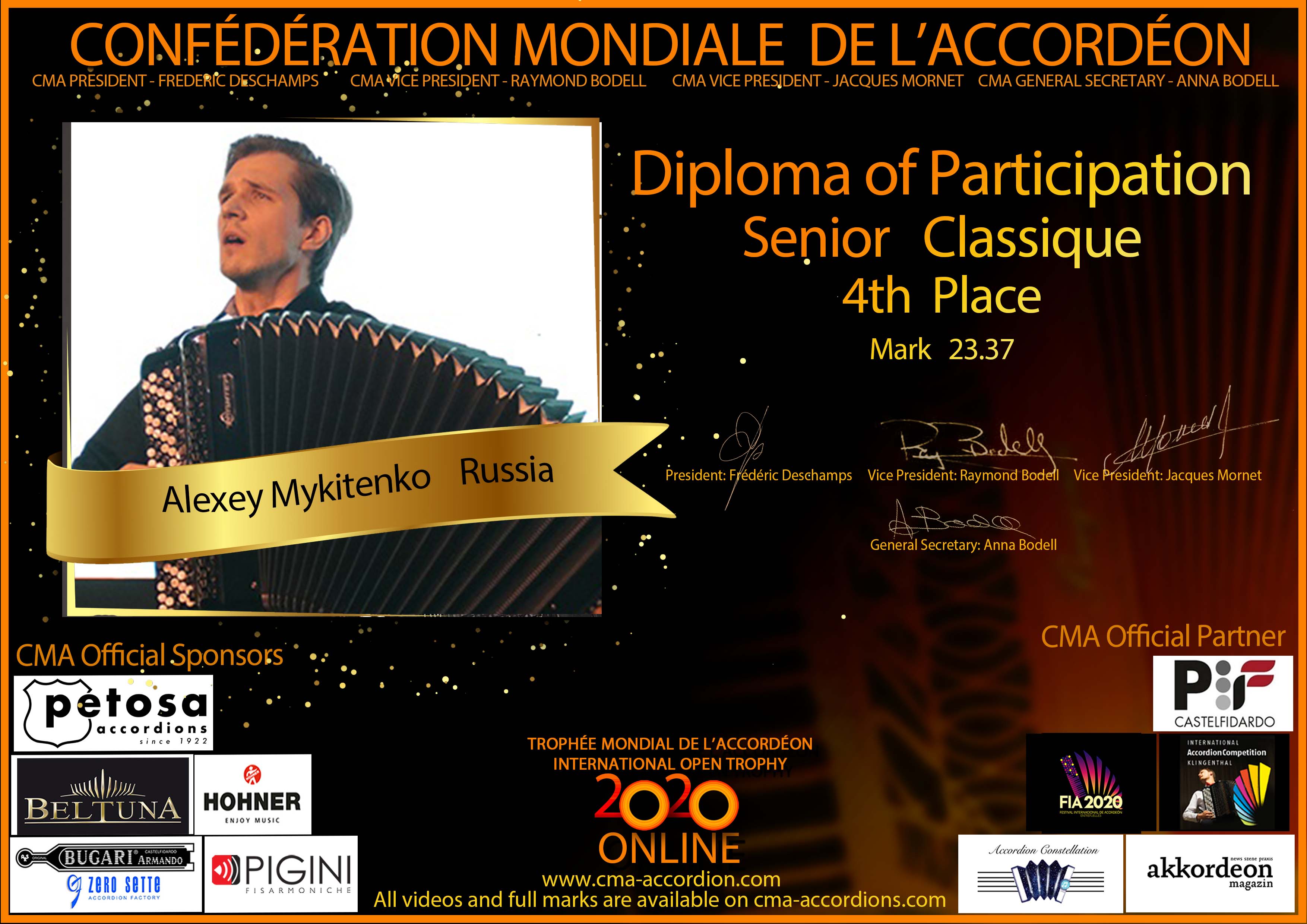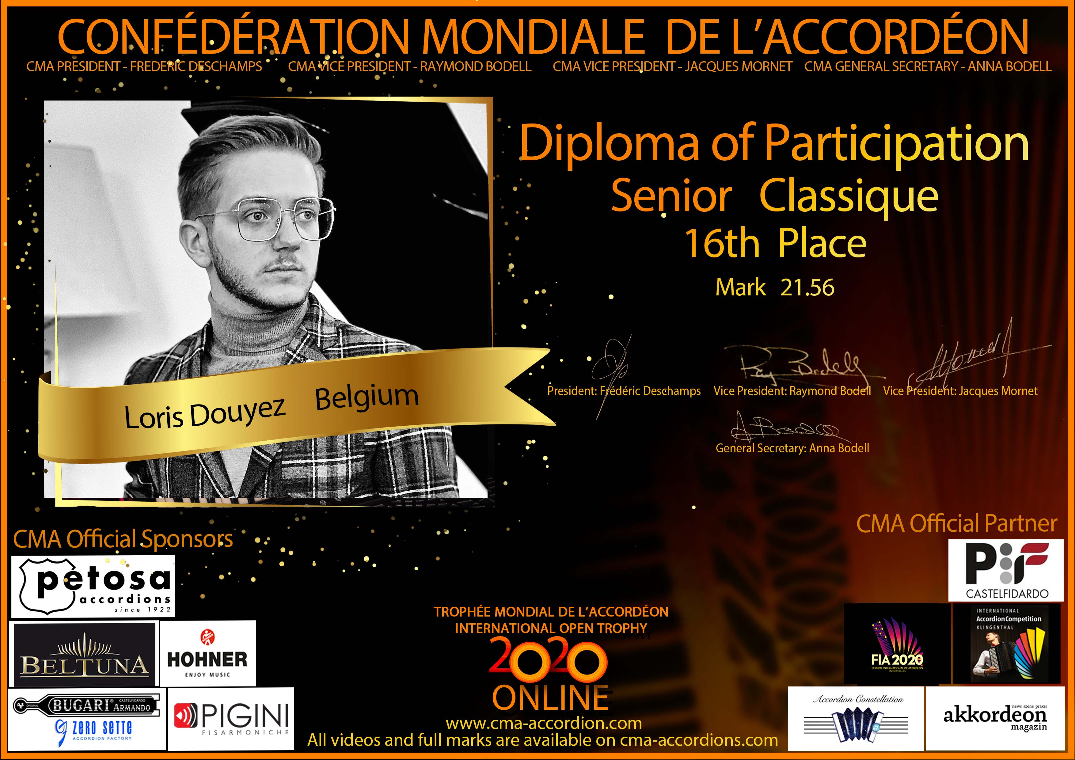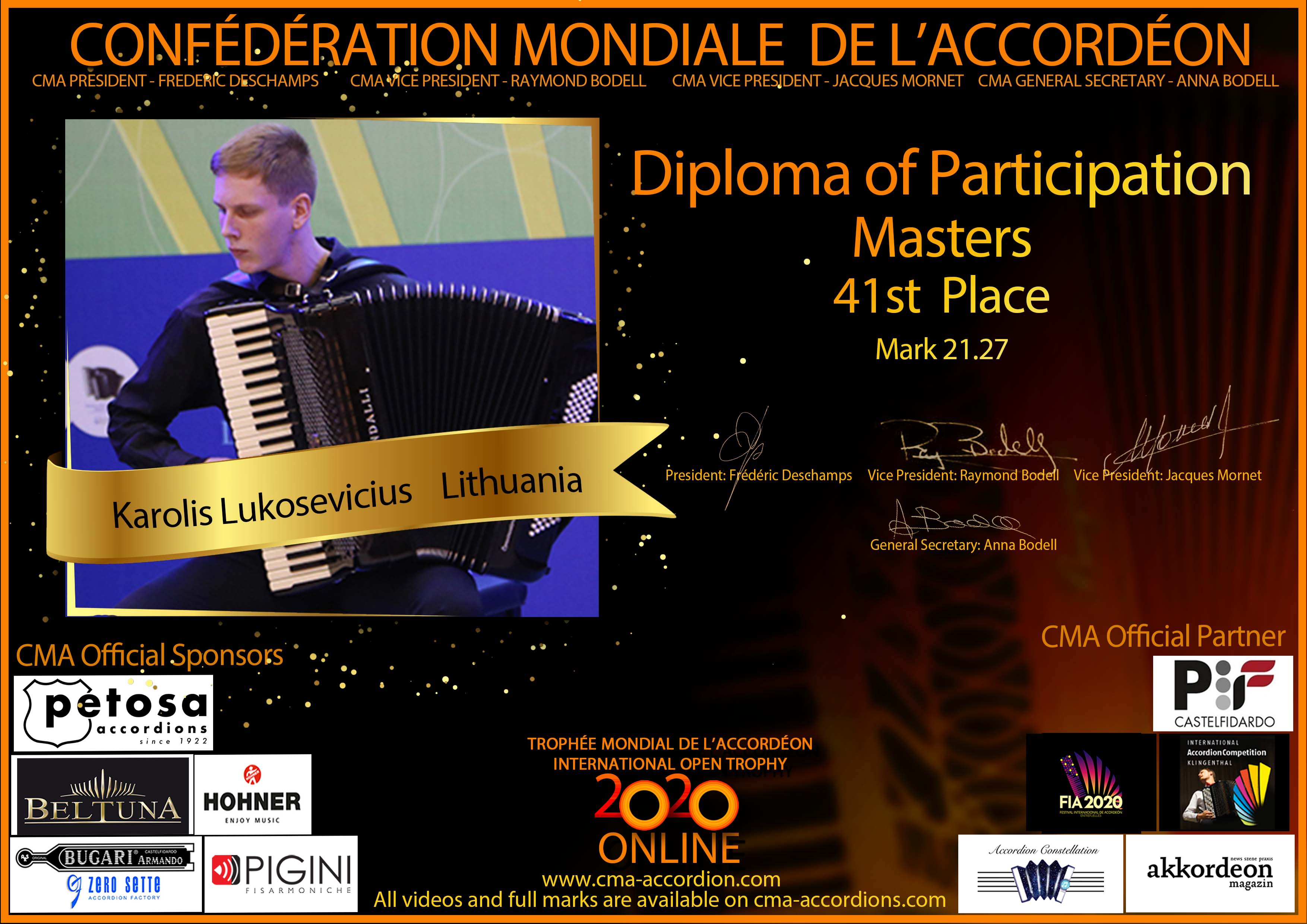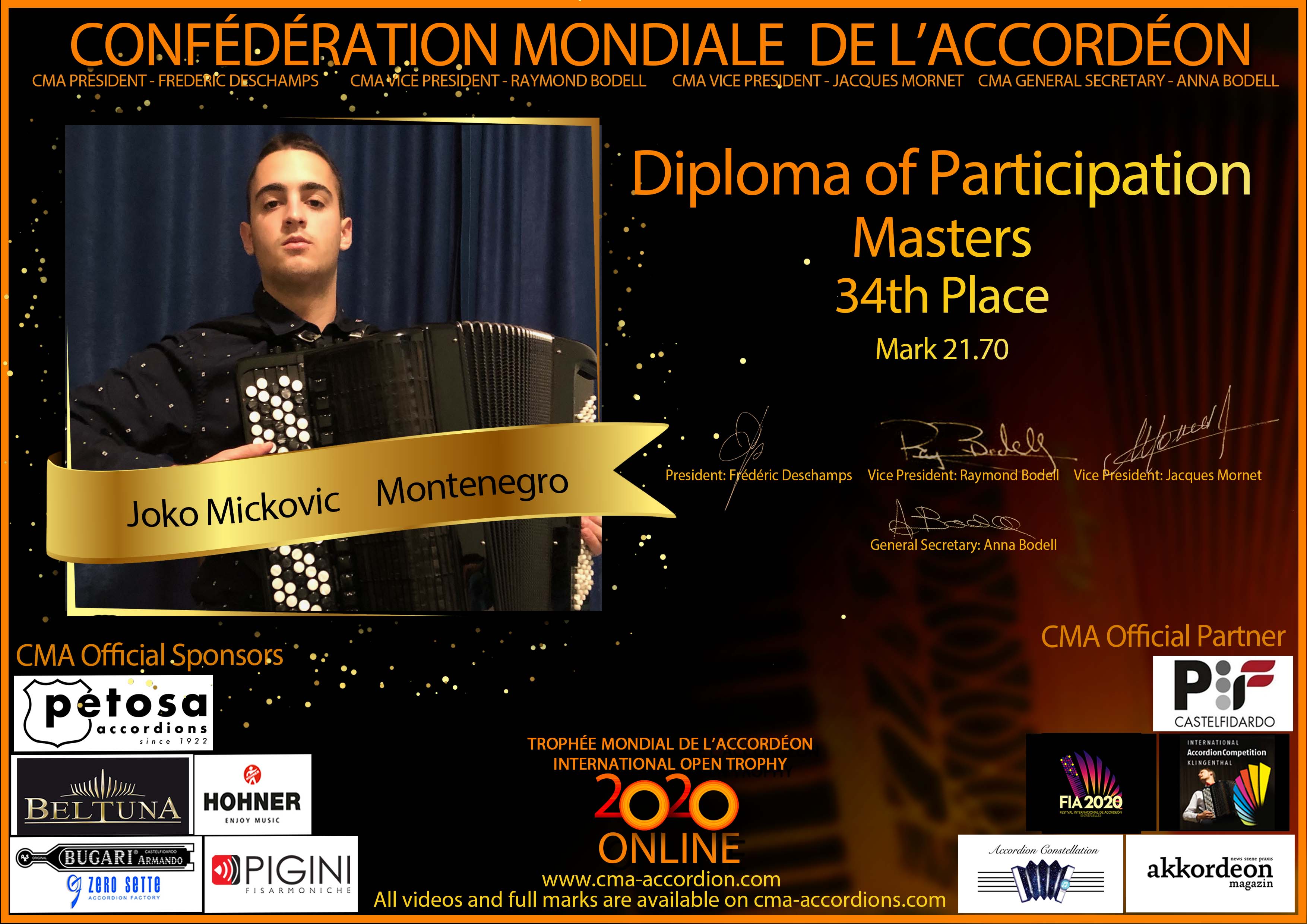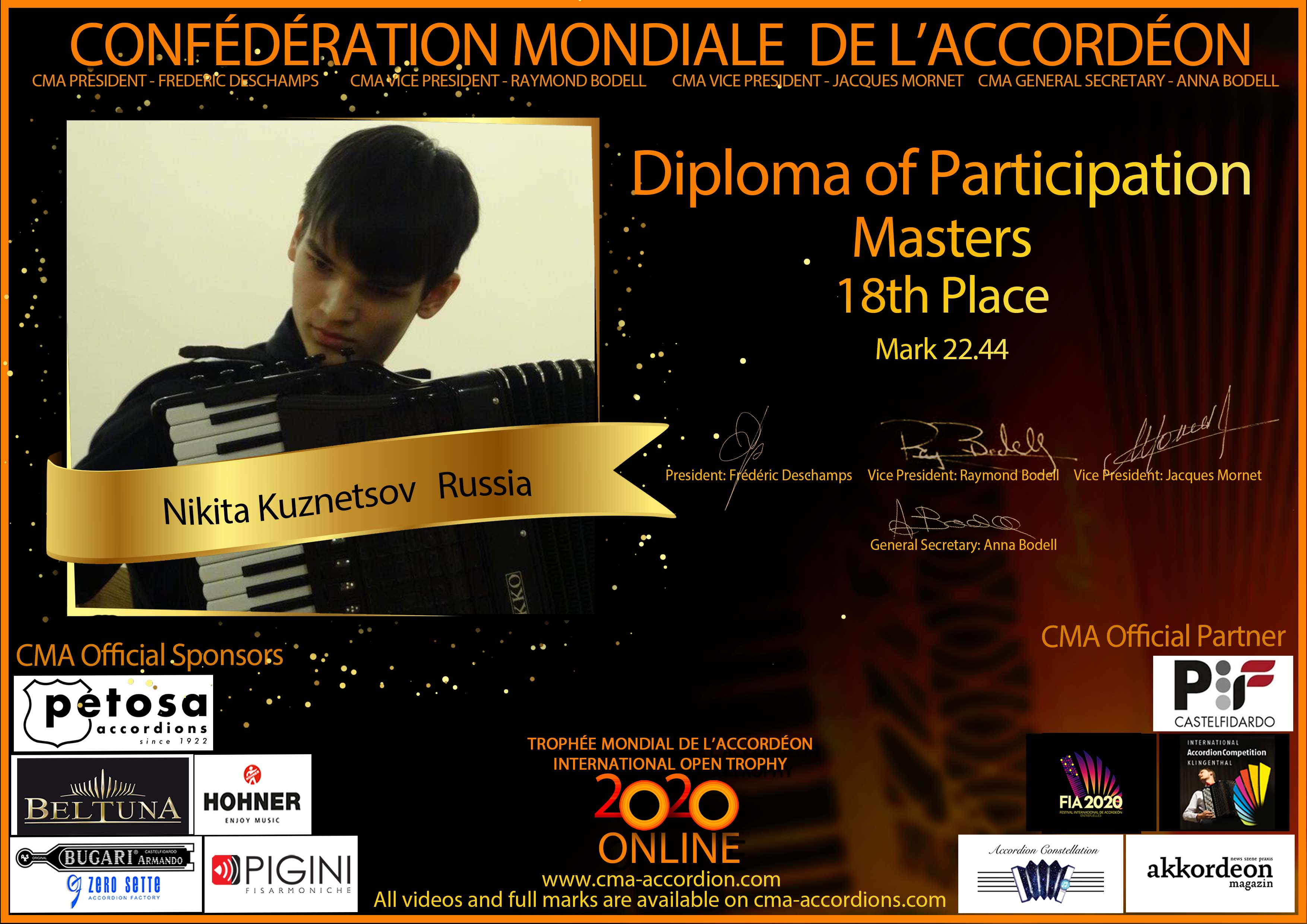 Candidates diploma of Trophee Mondial