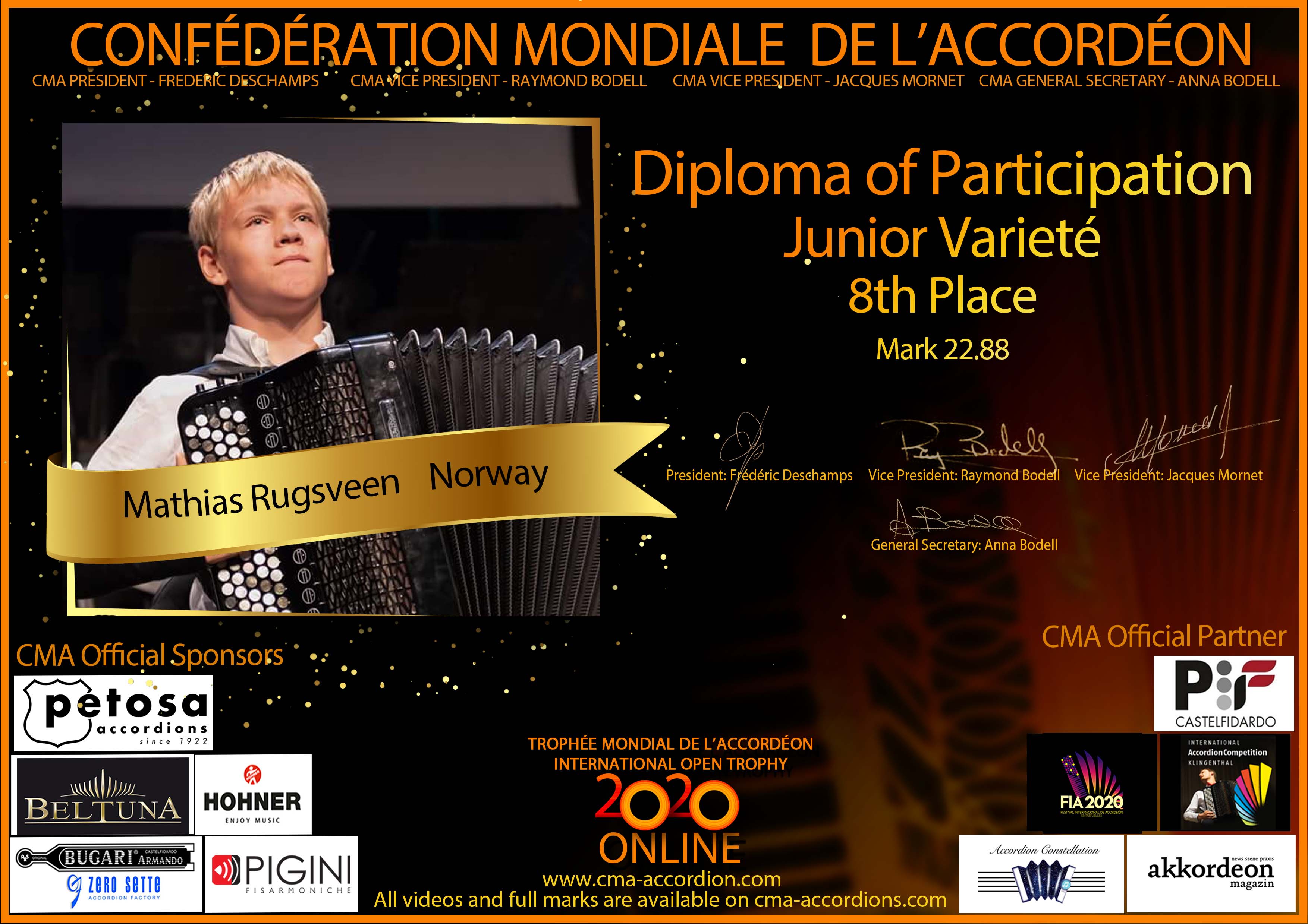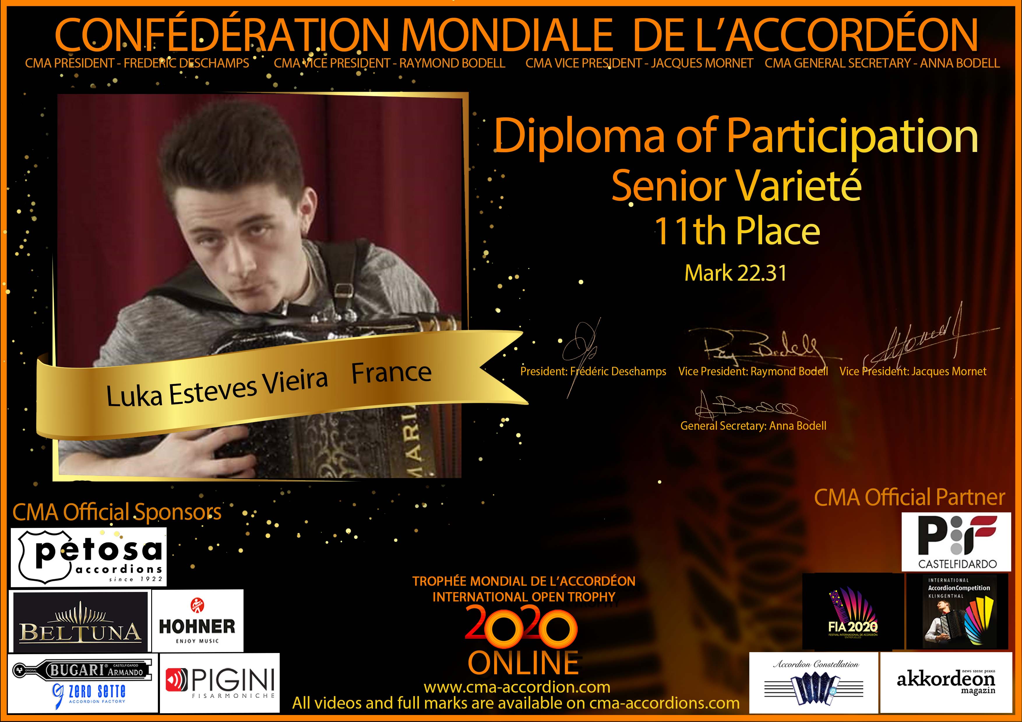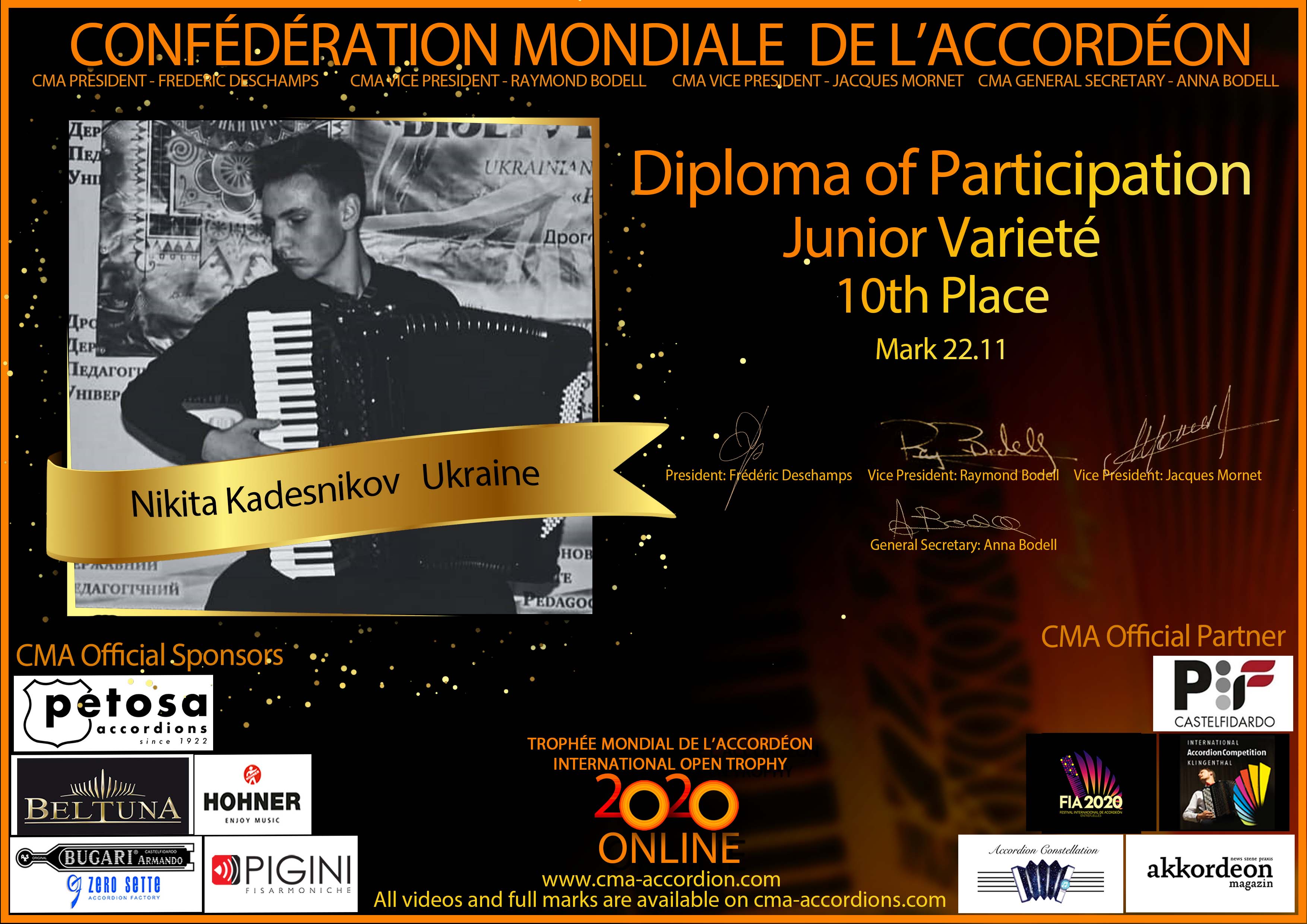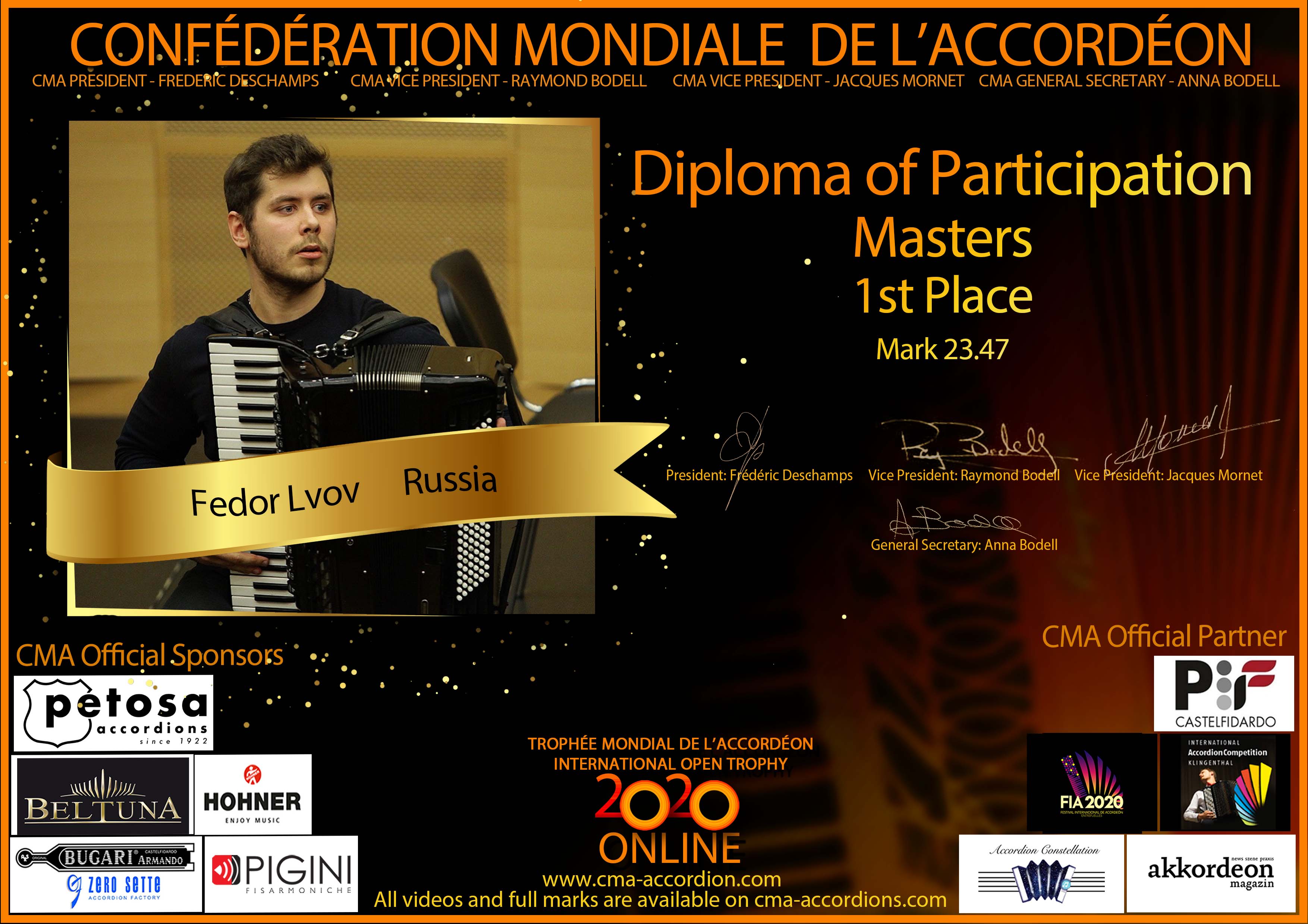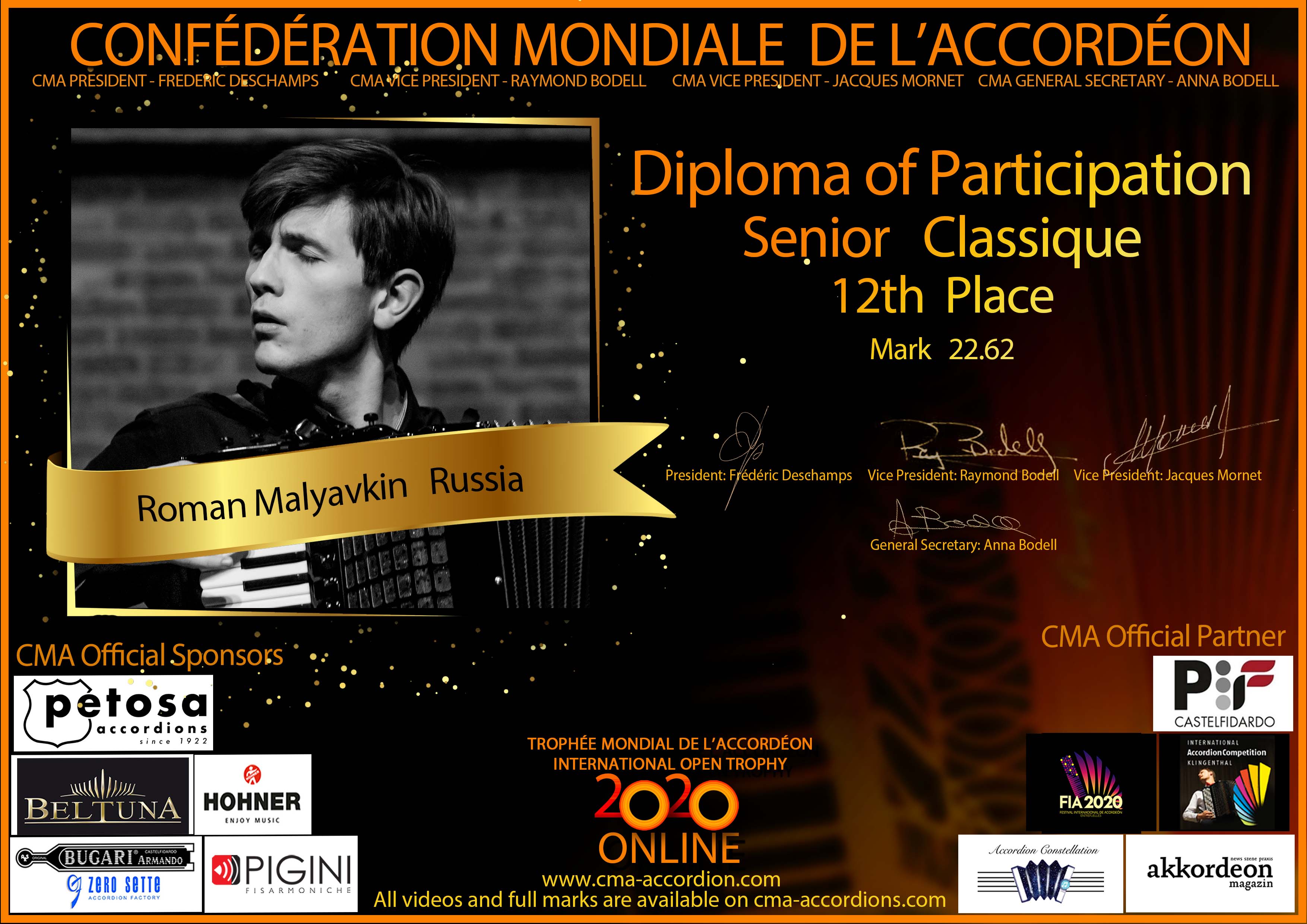 Candidates diploma of Trophee Mondial