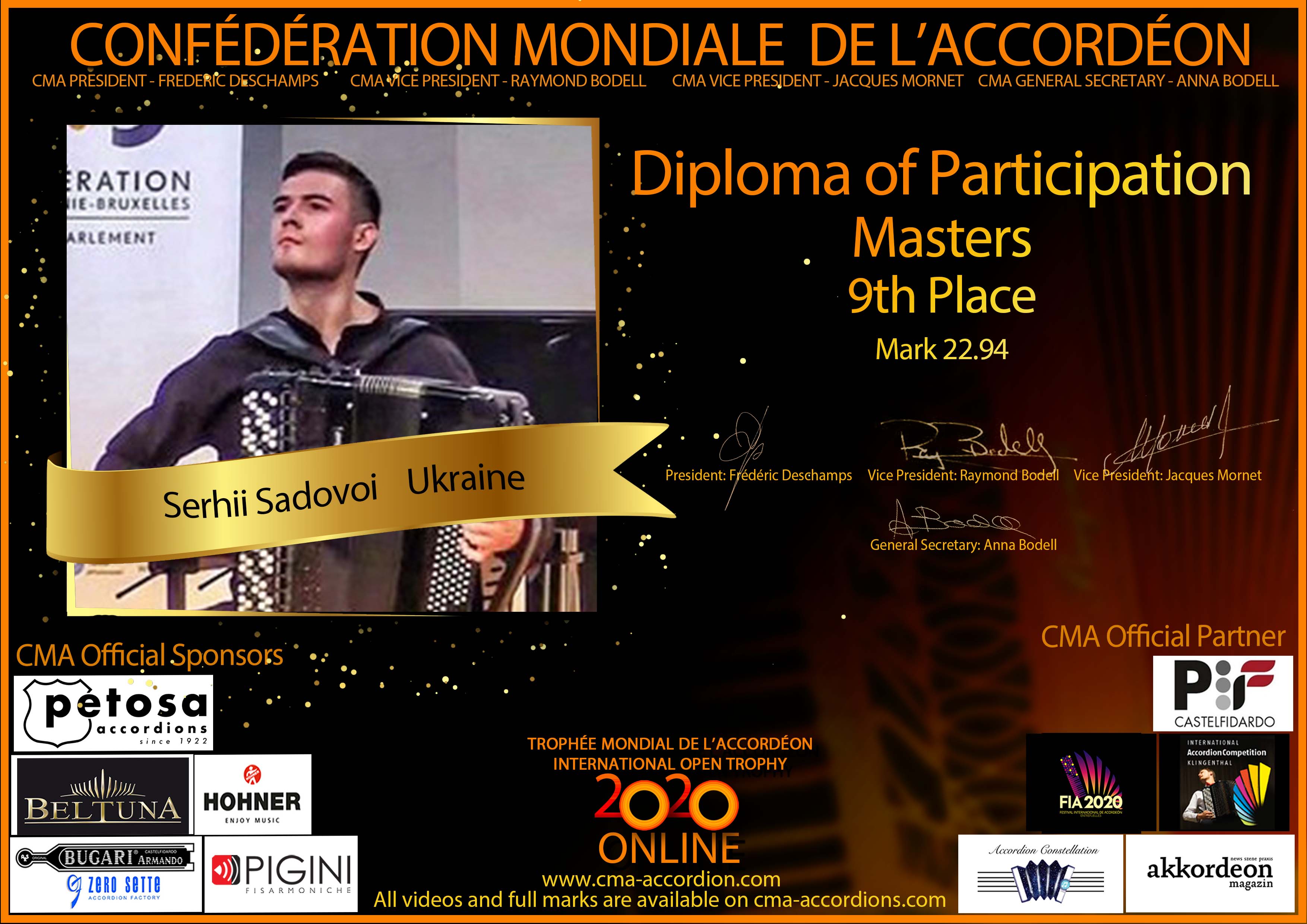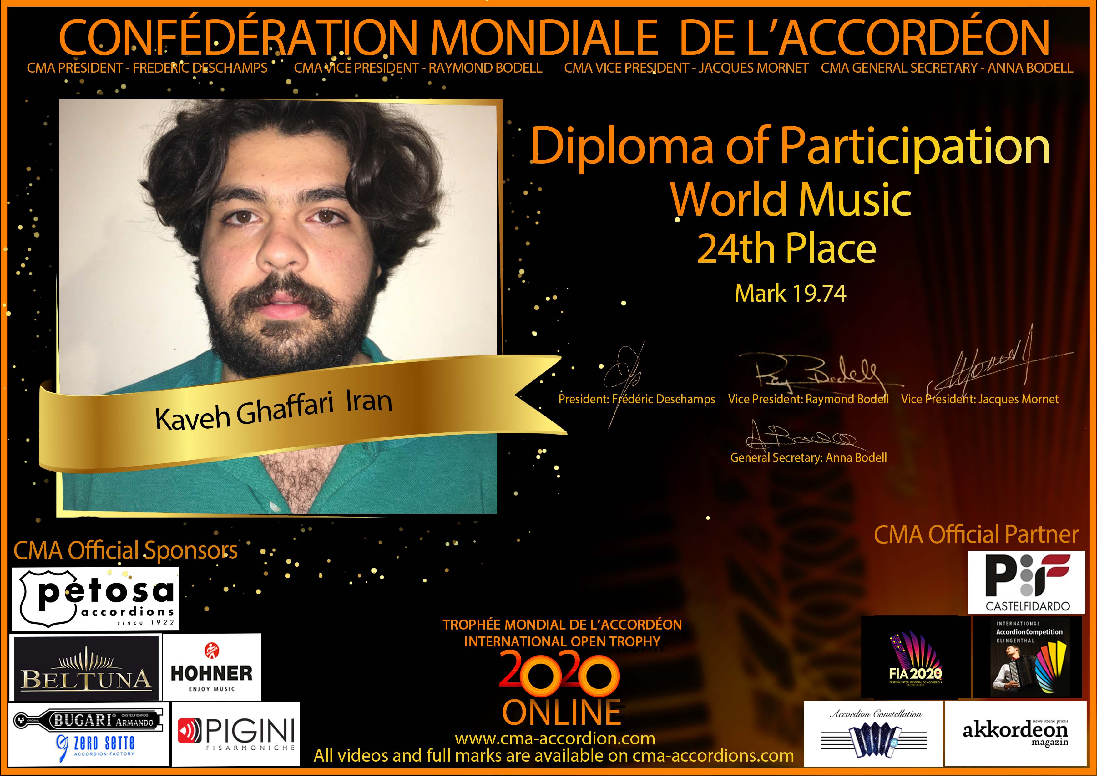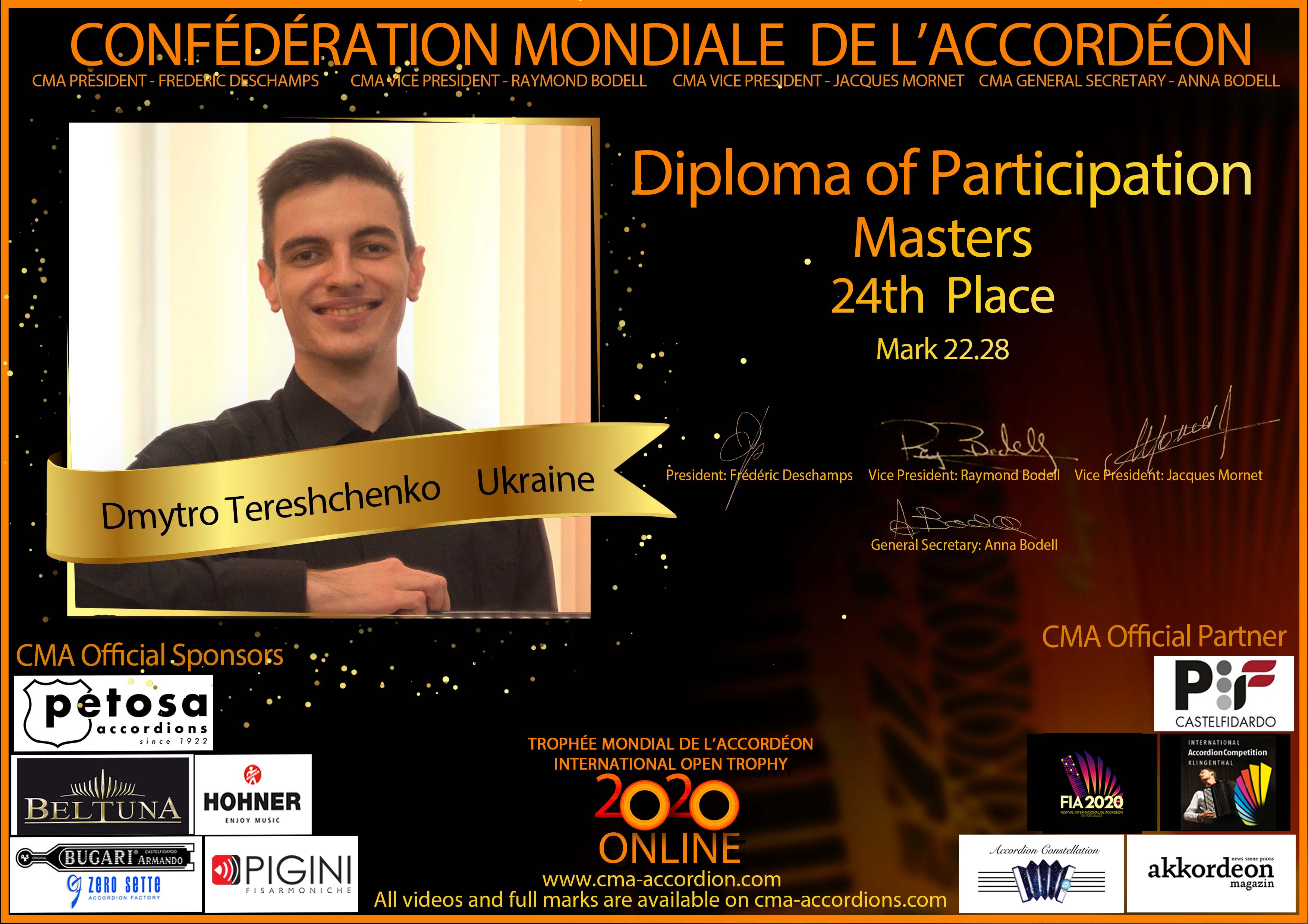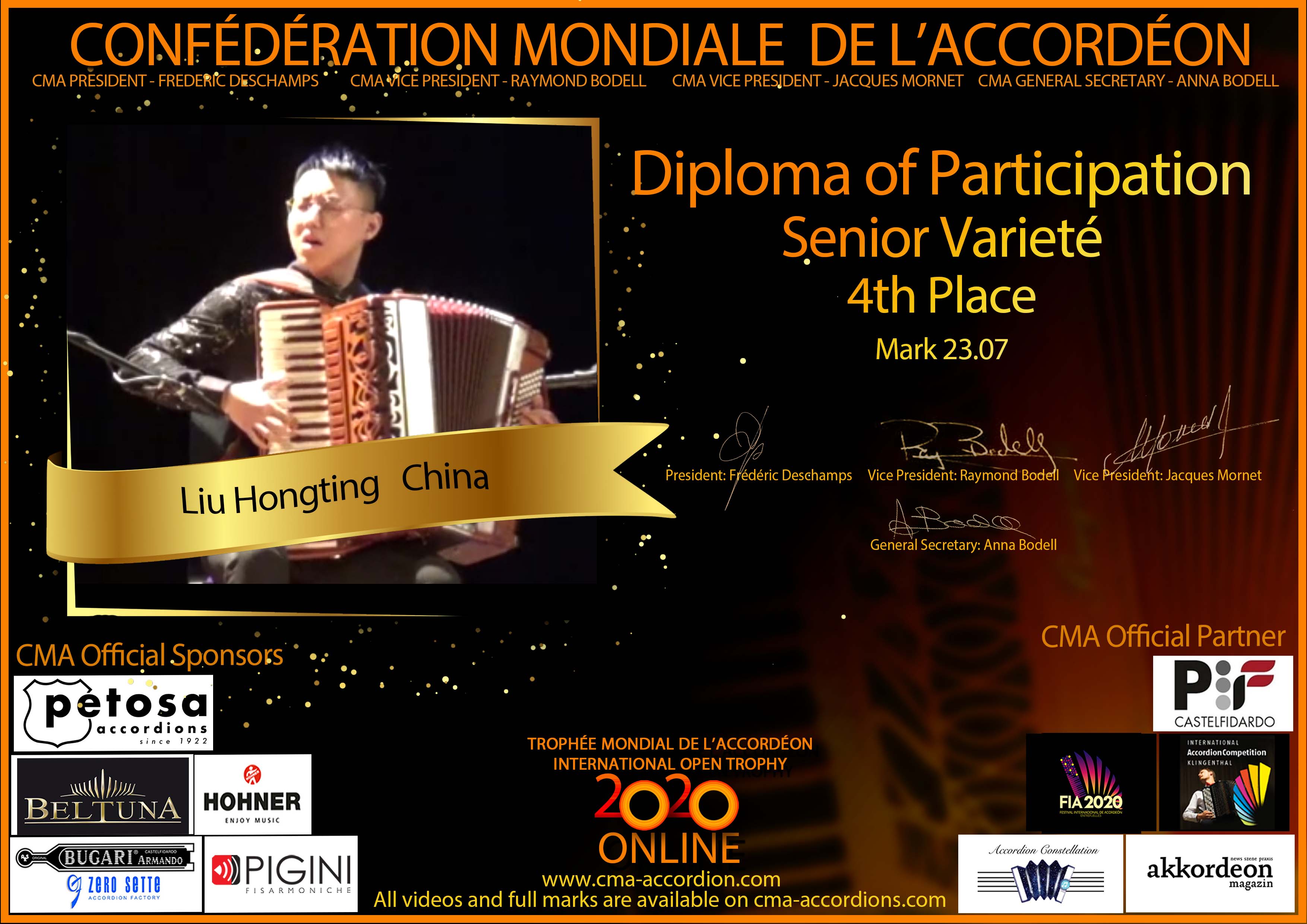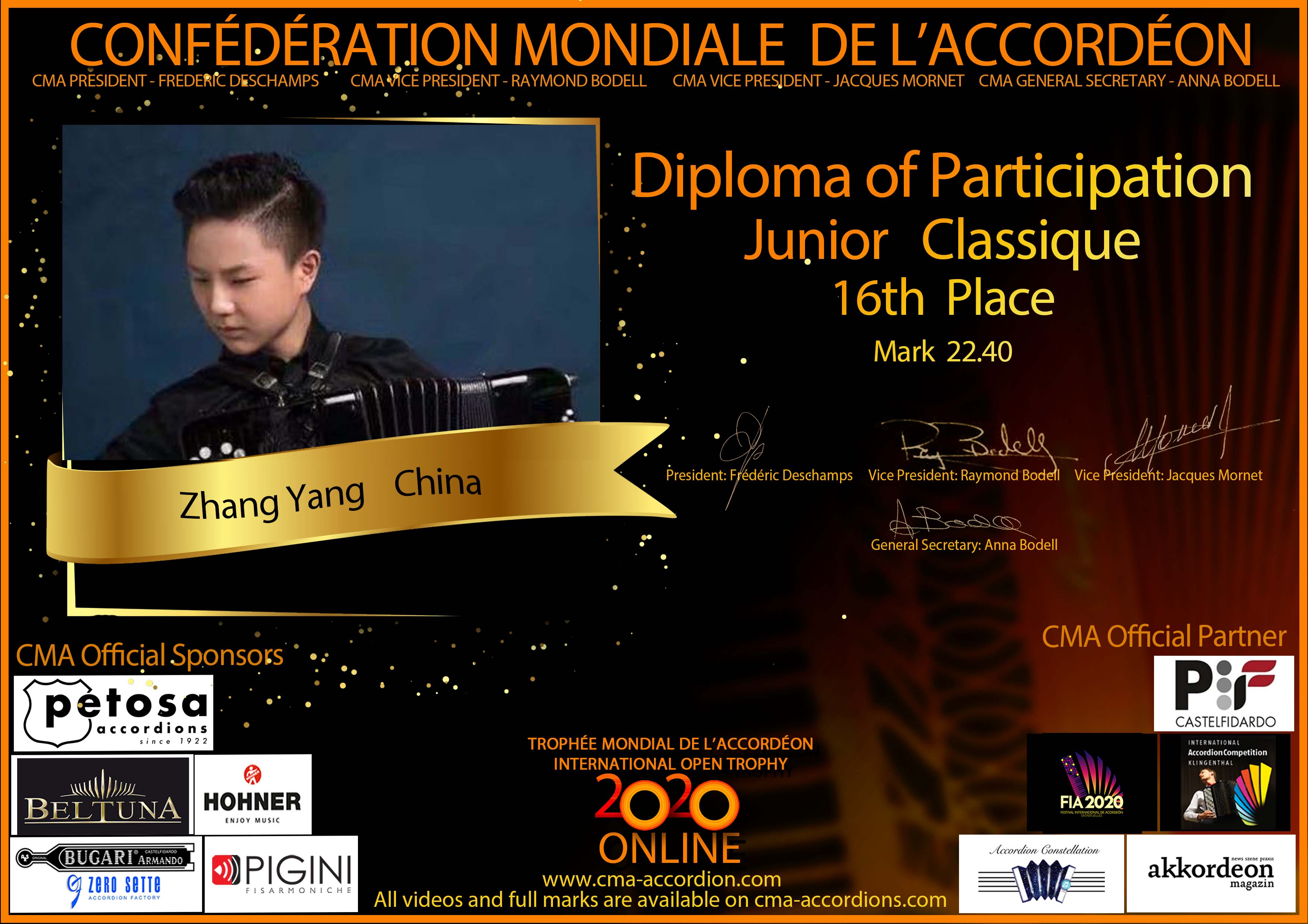 Candidates diploma of Trophee Mondial