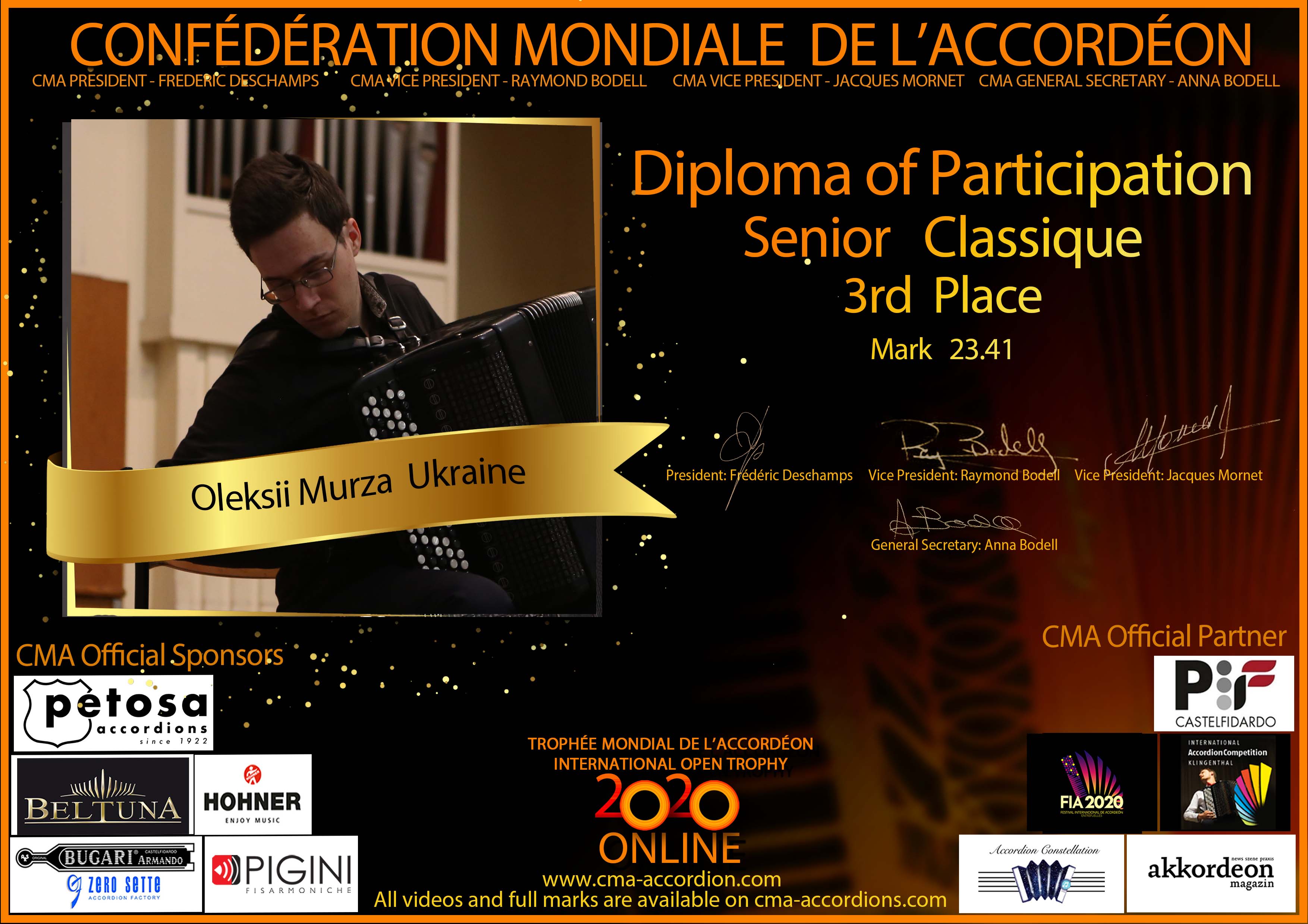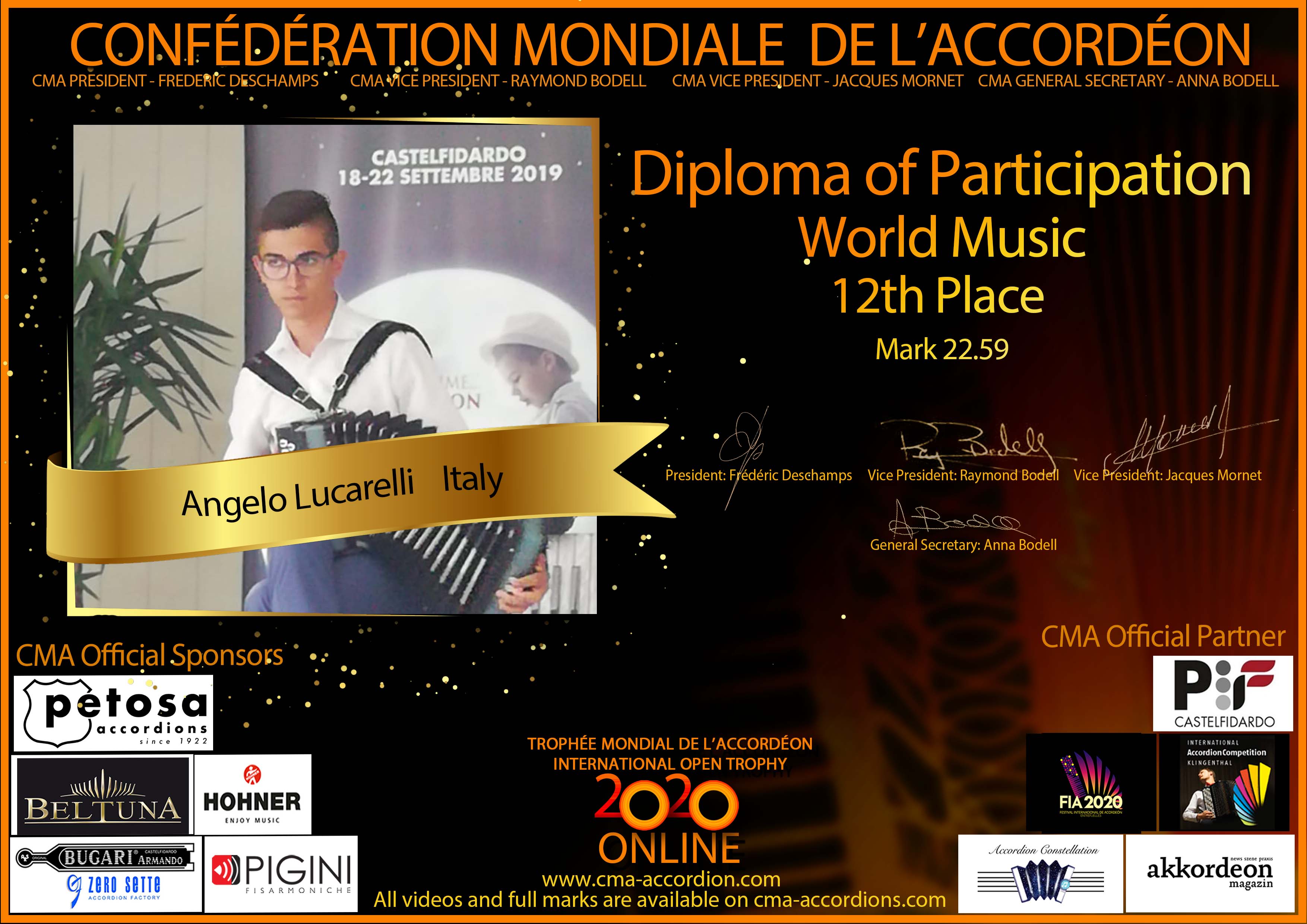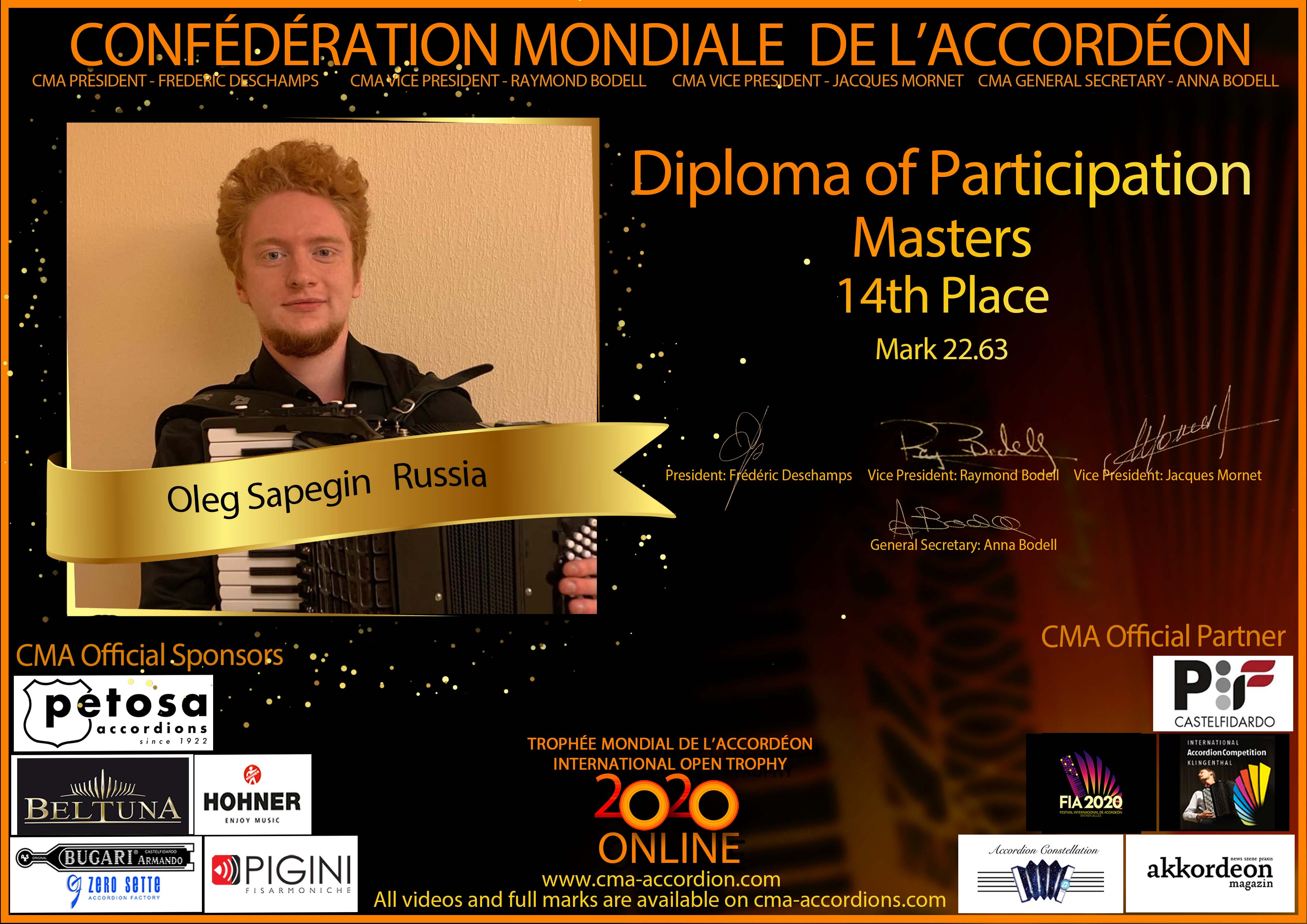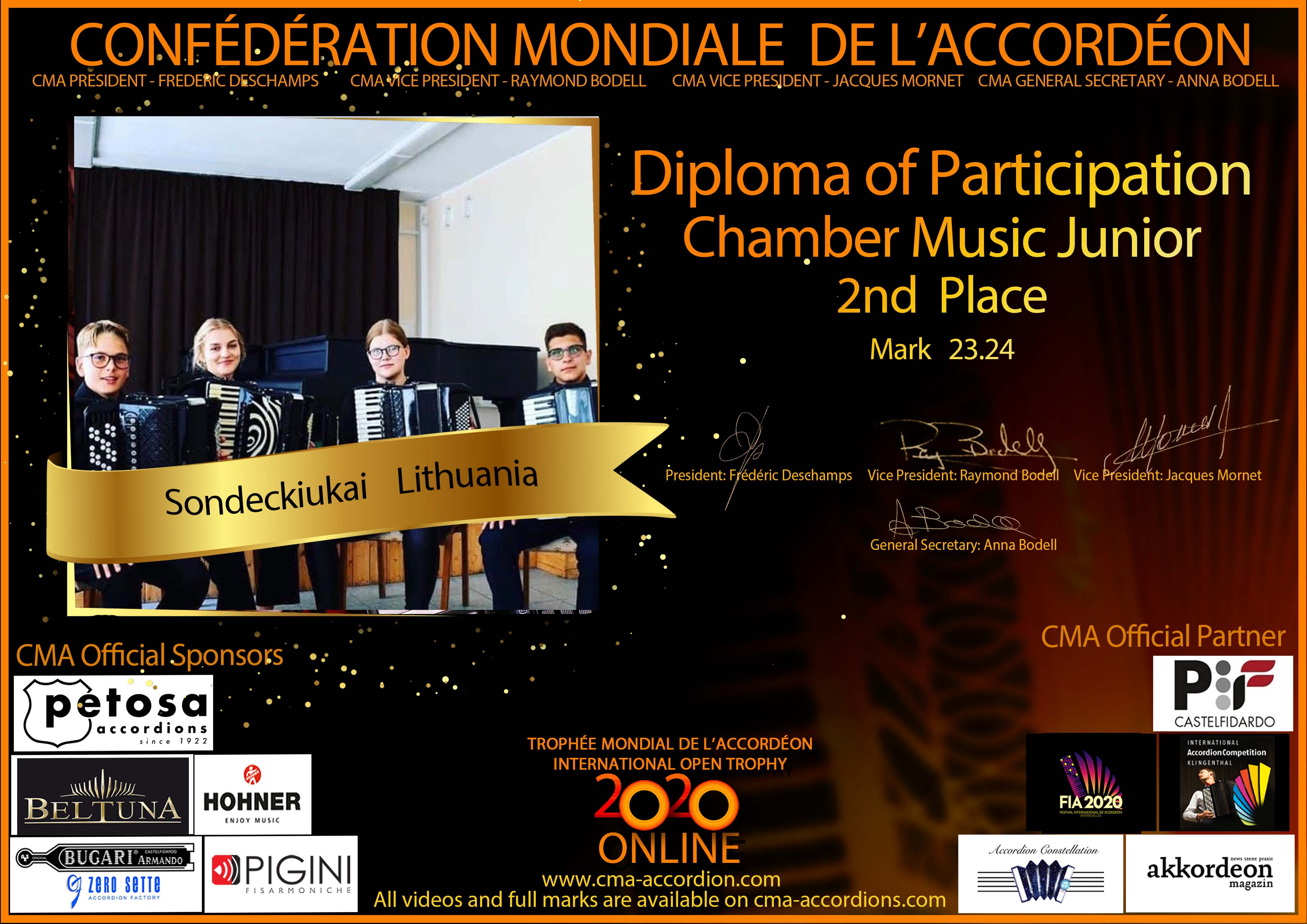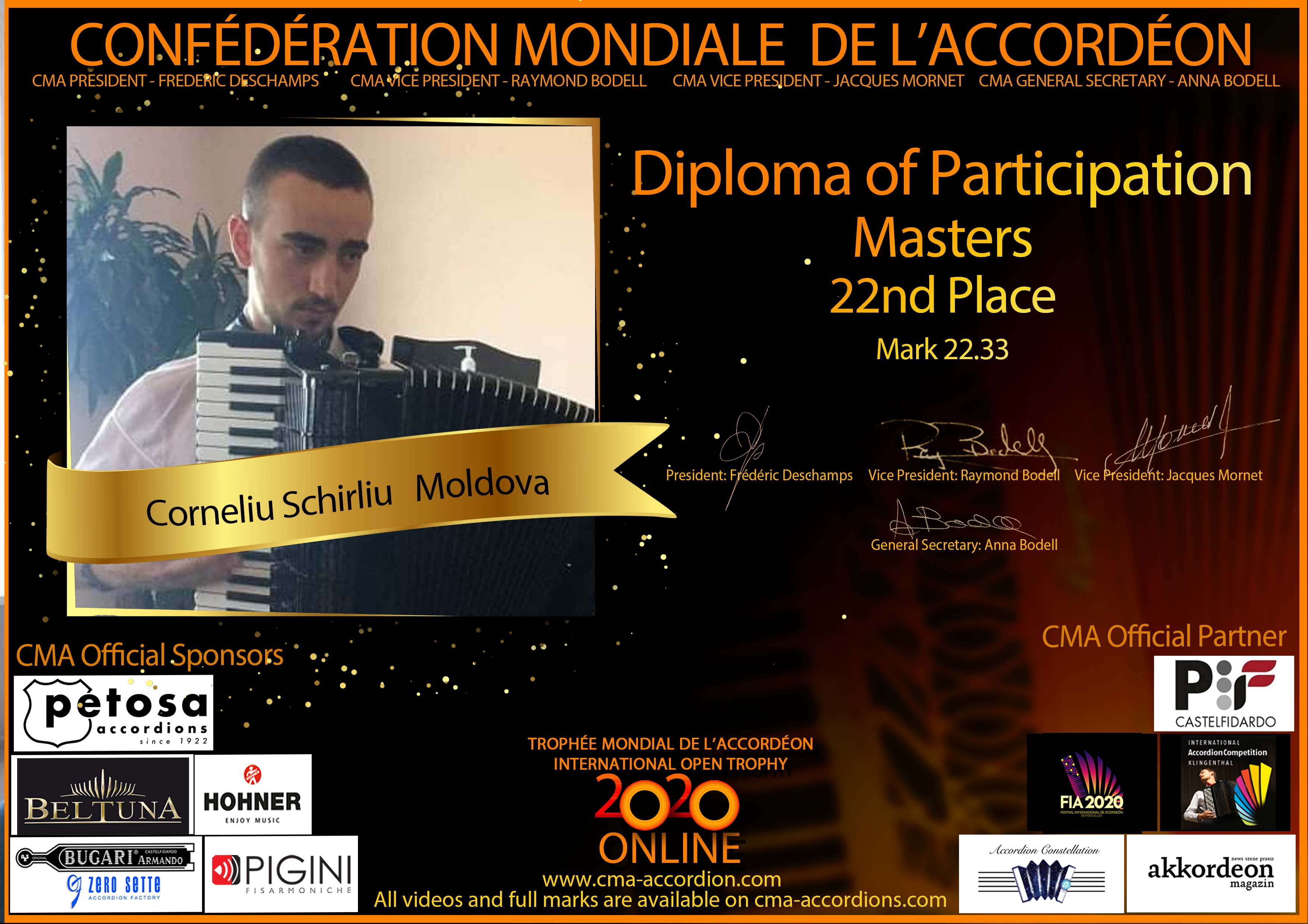 Candidates diploma of Trophee Mondial