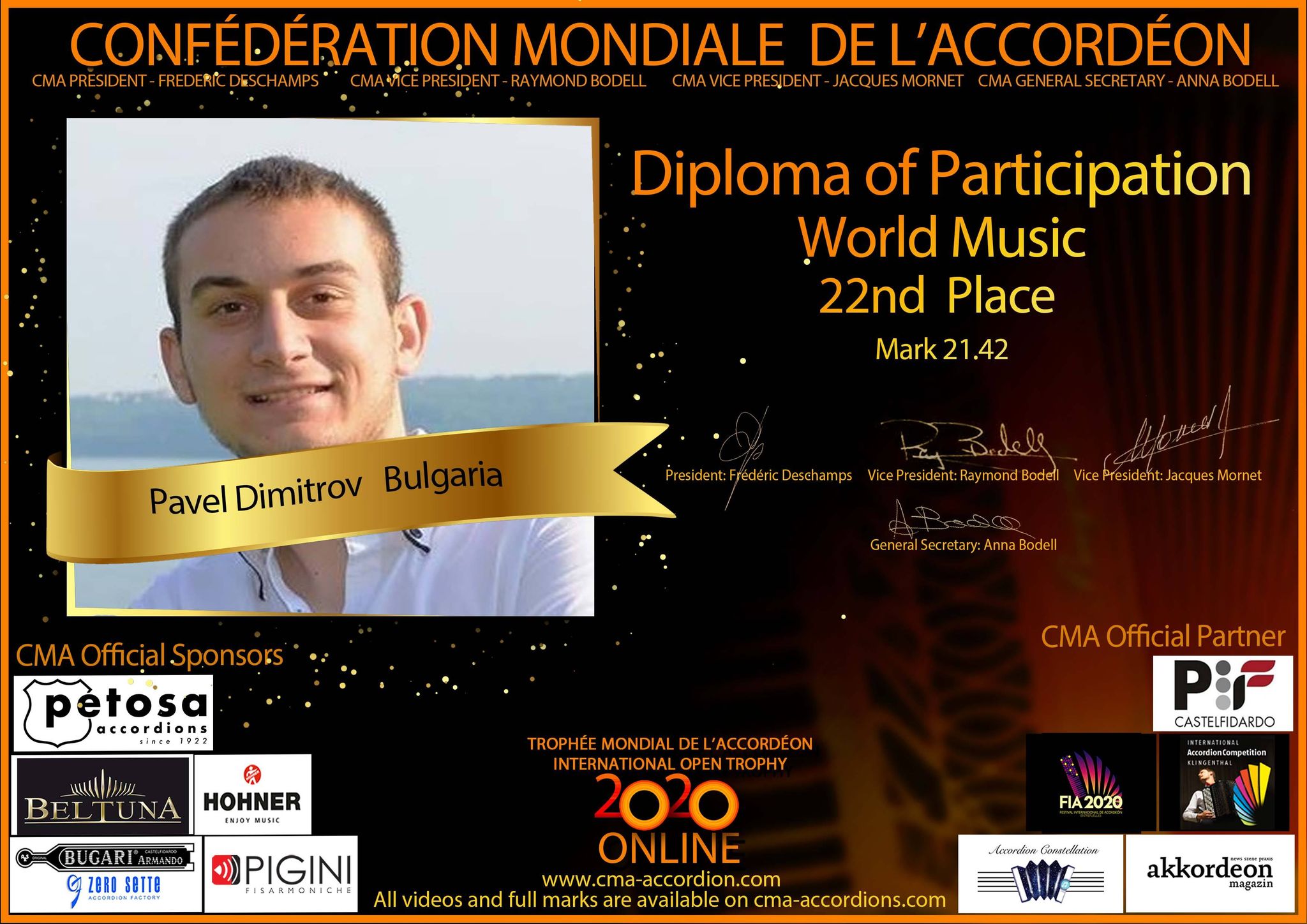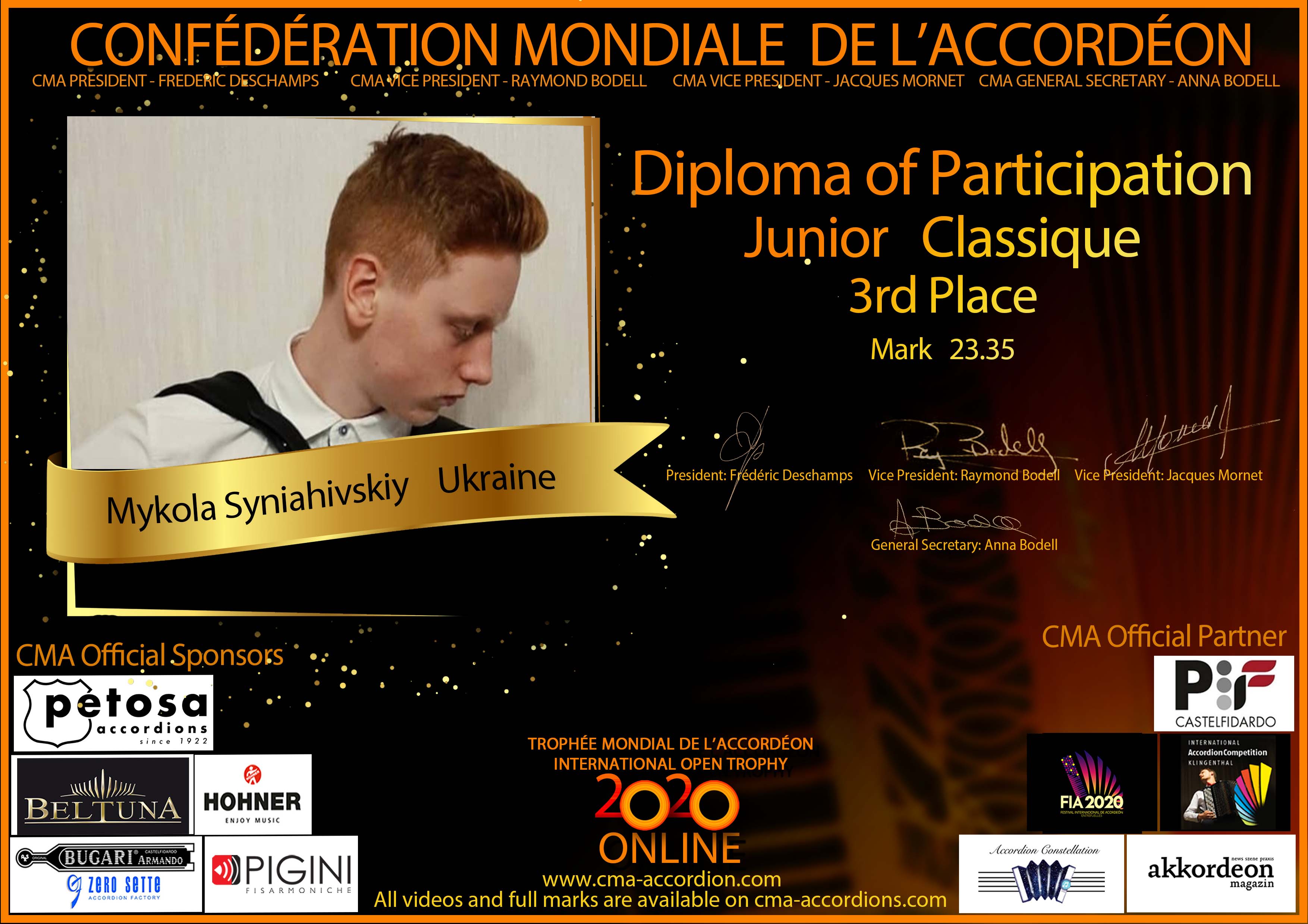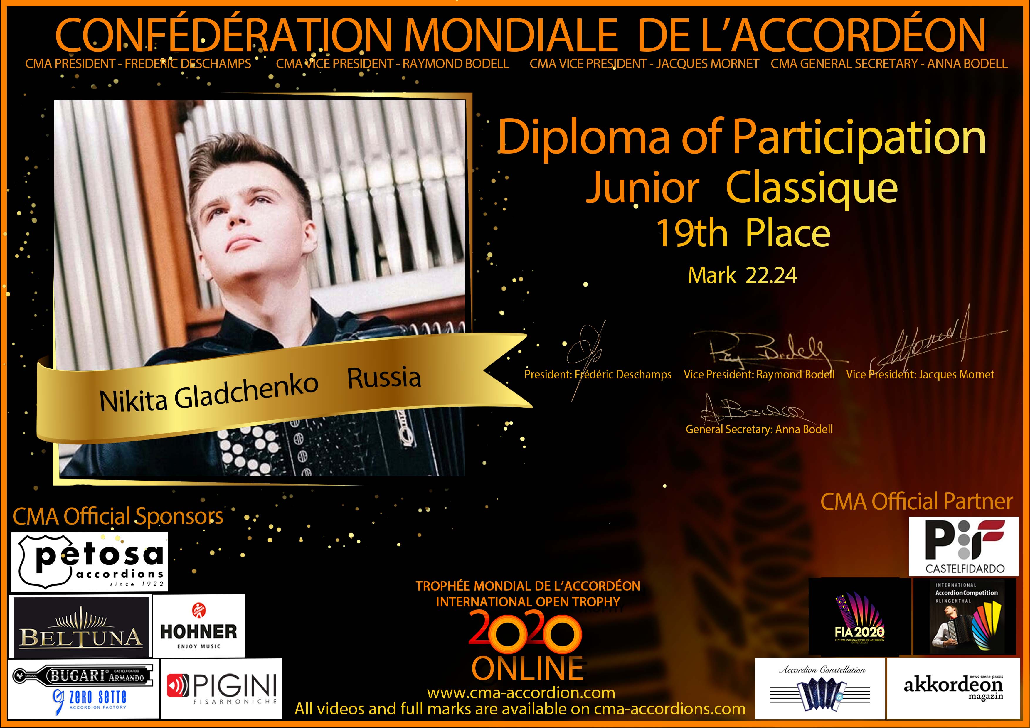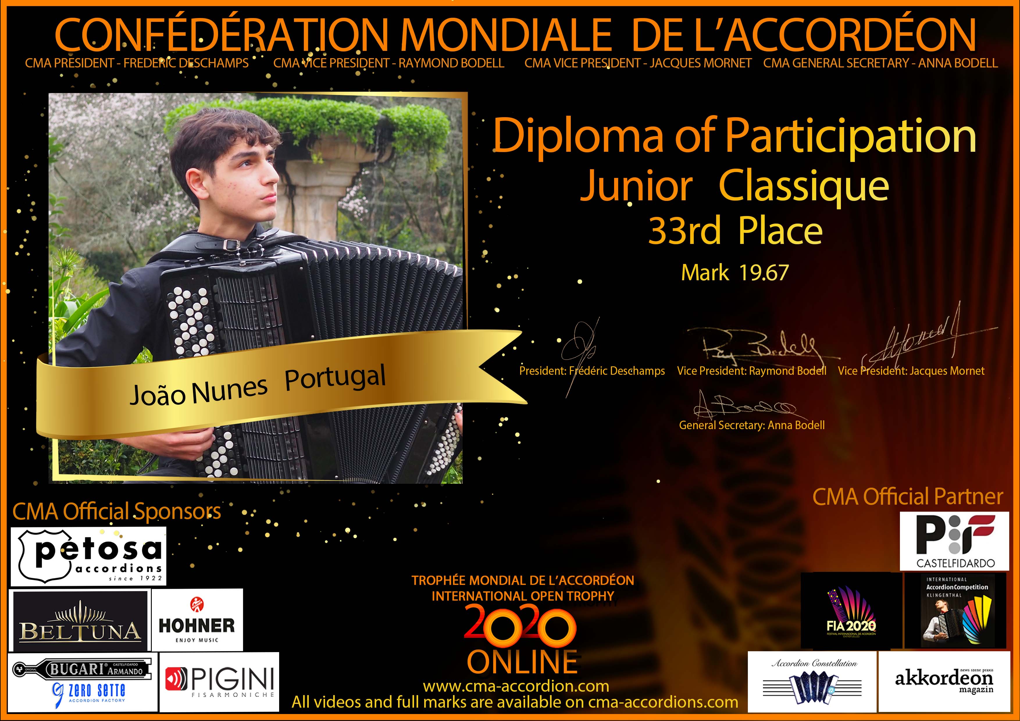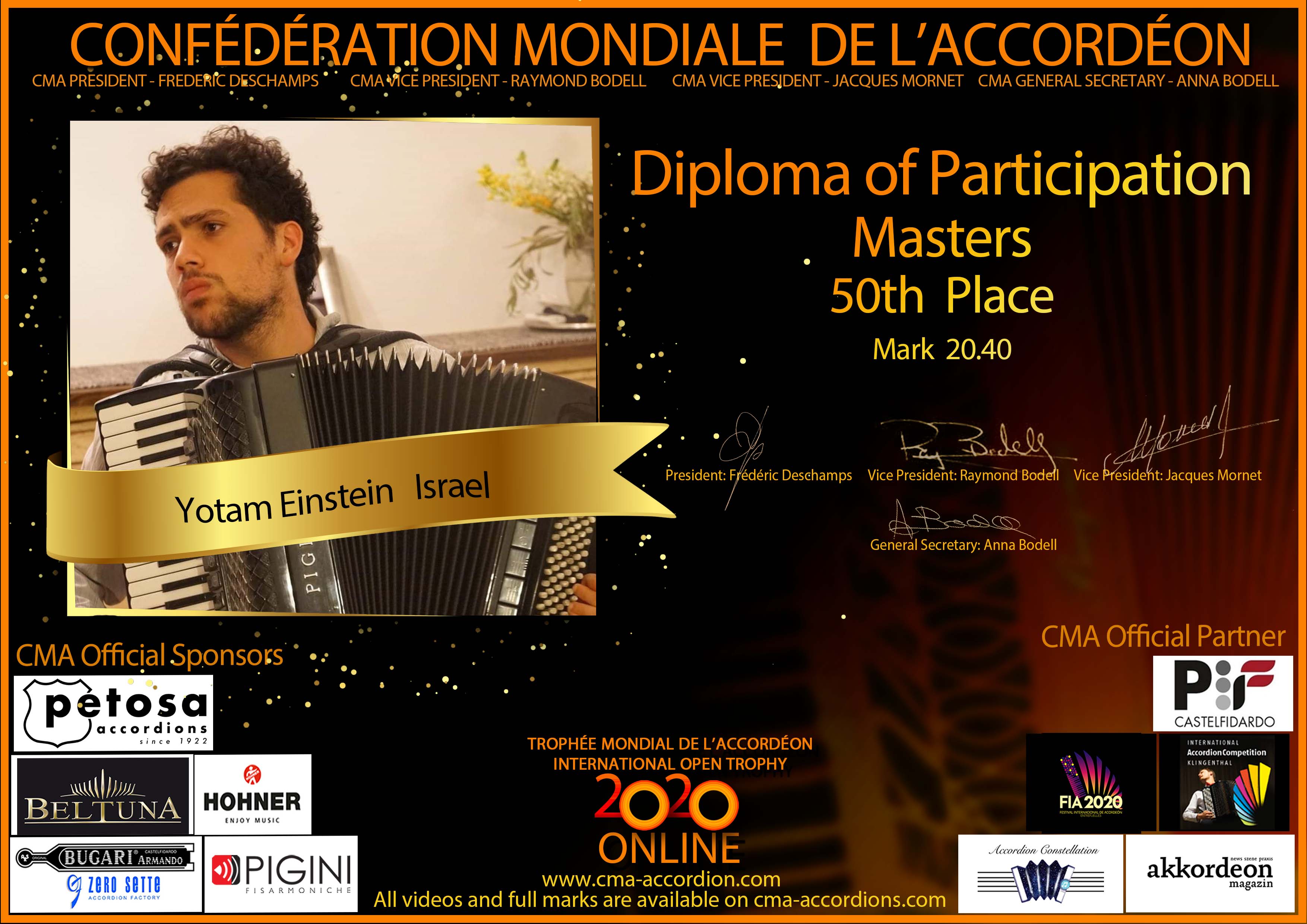 Candidates diploma of Trophee Mondial
