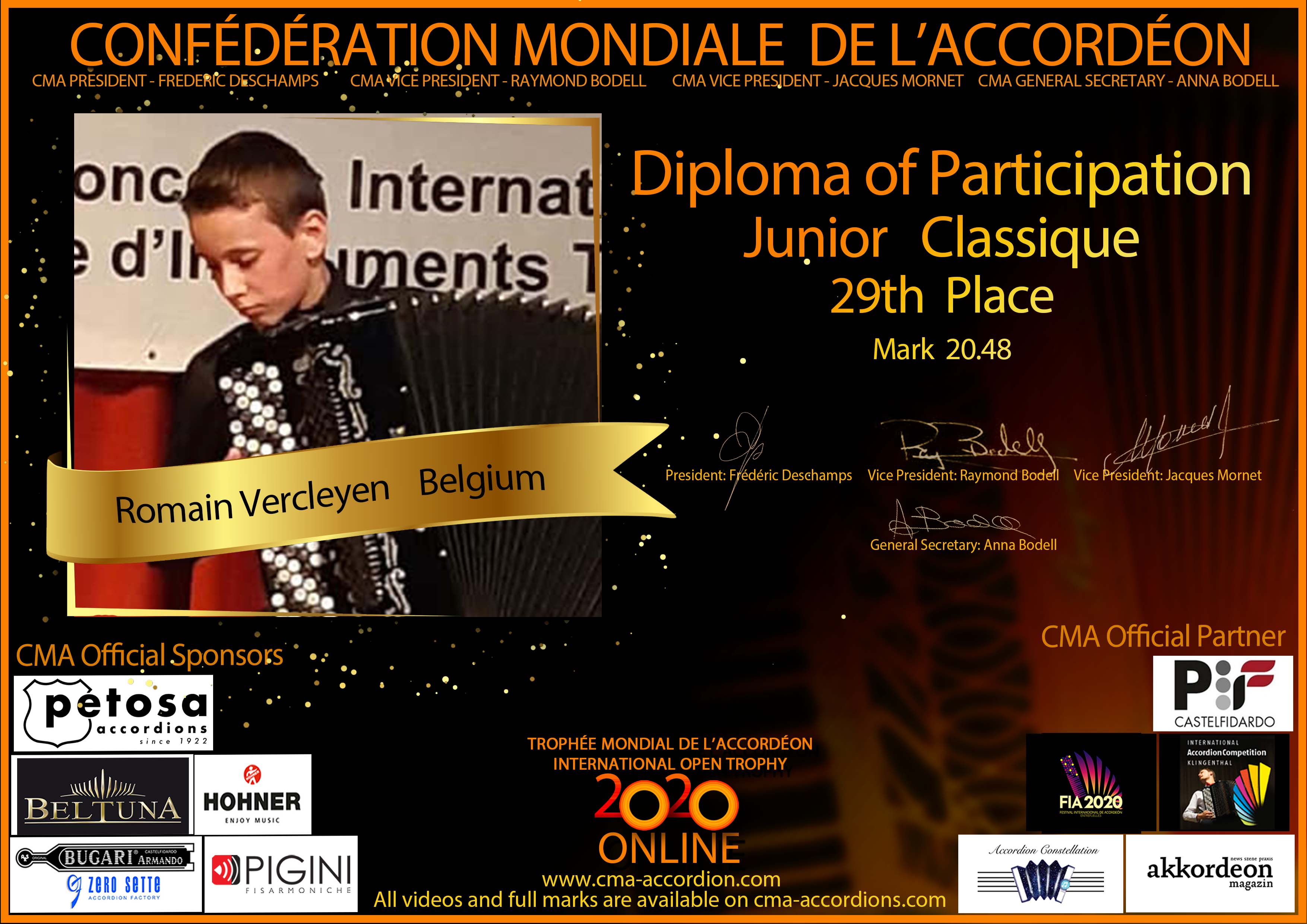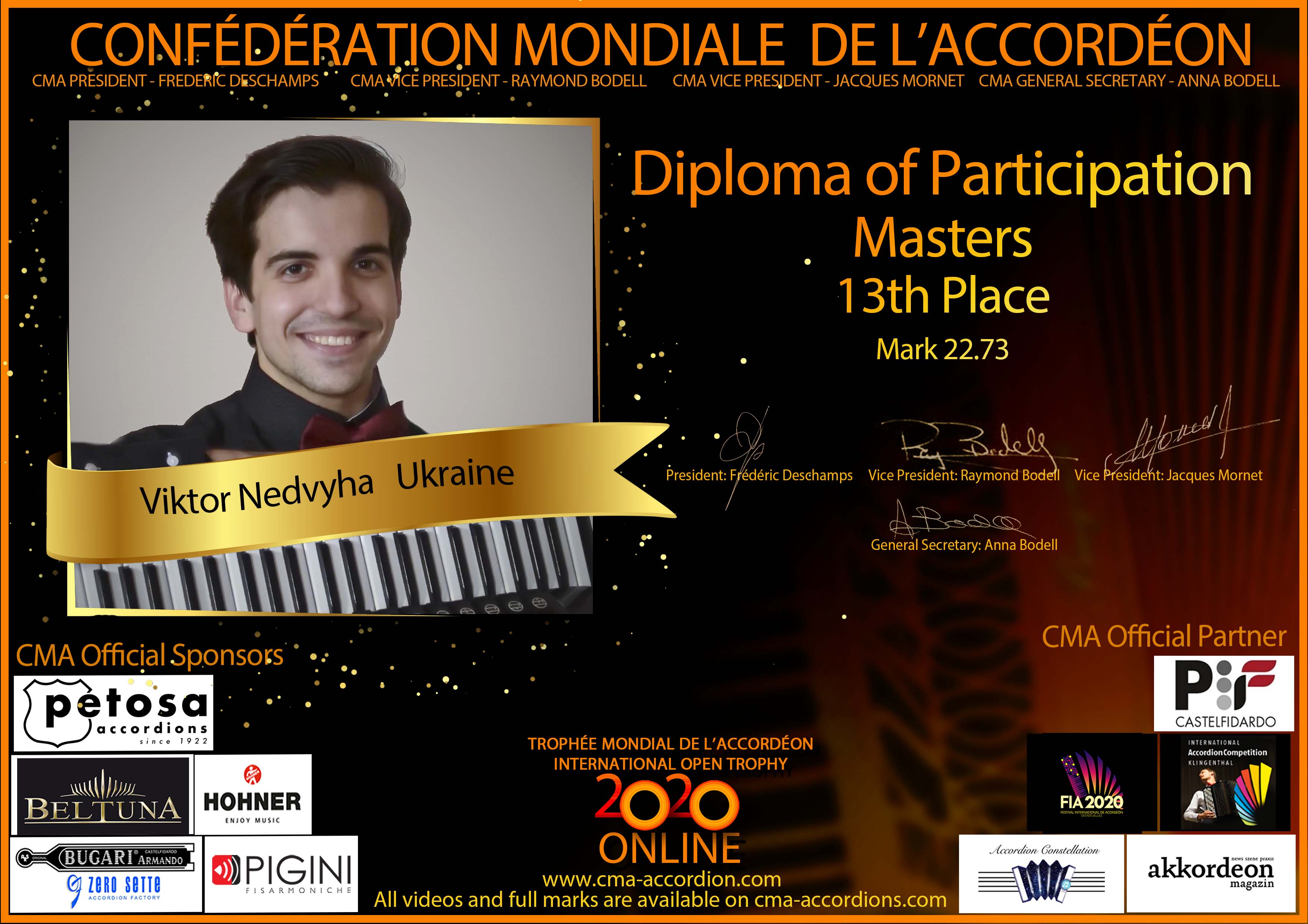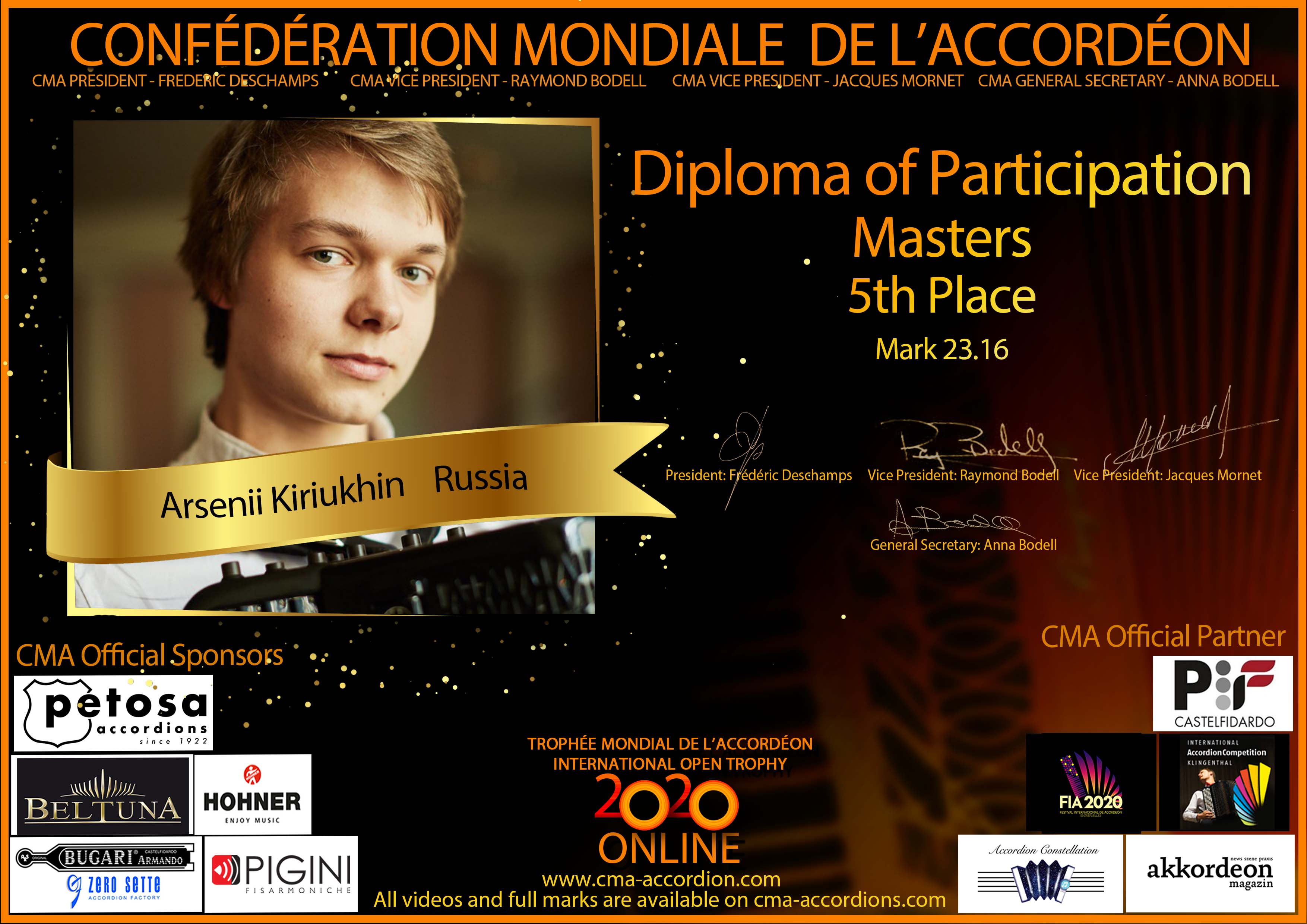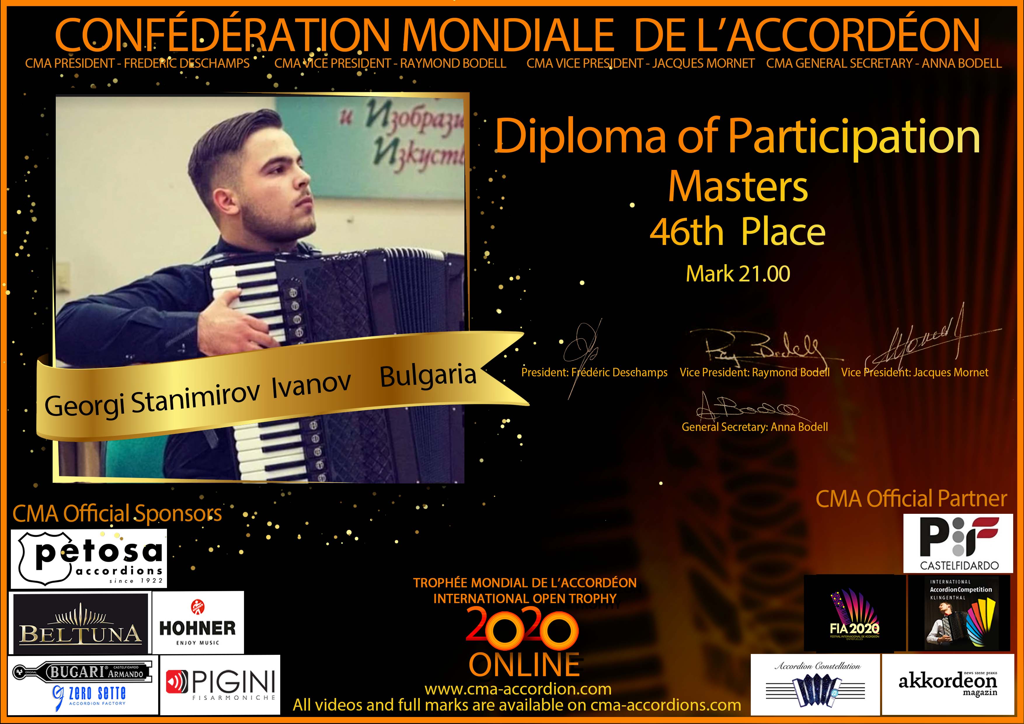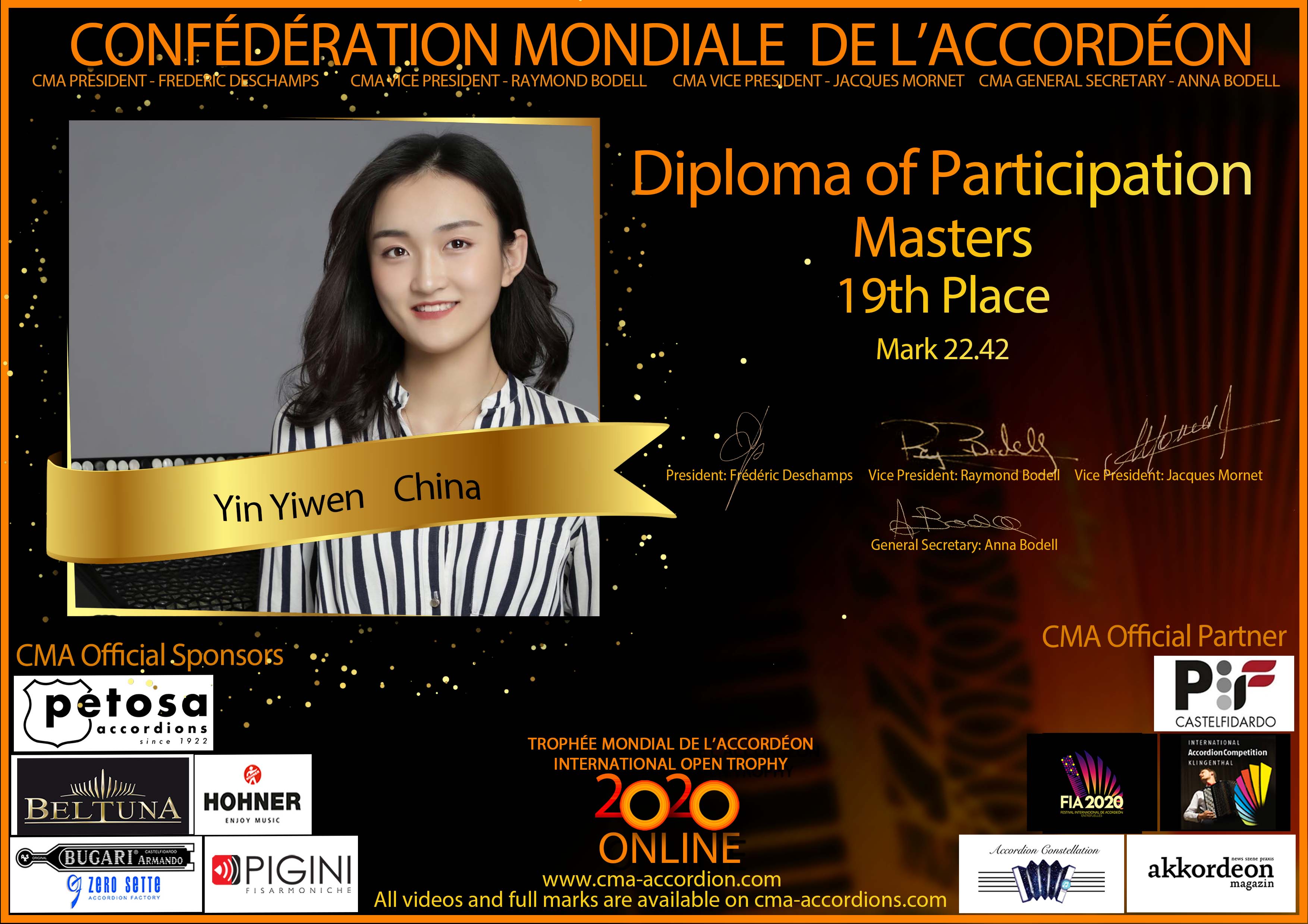 Candidates diploma of Trophee Mondial