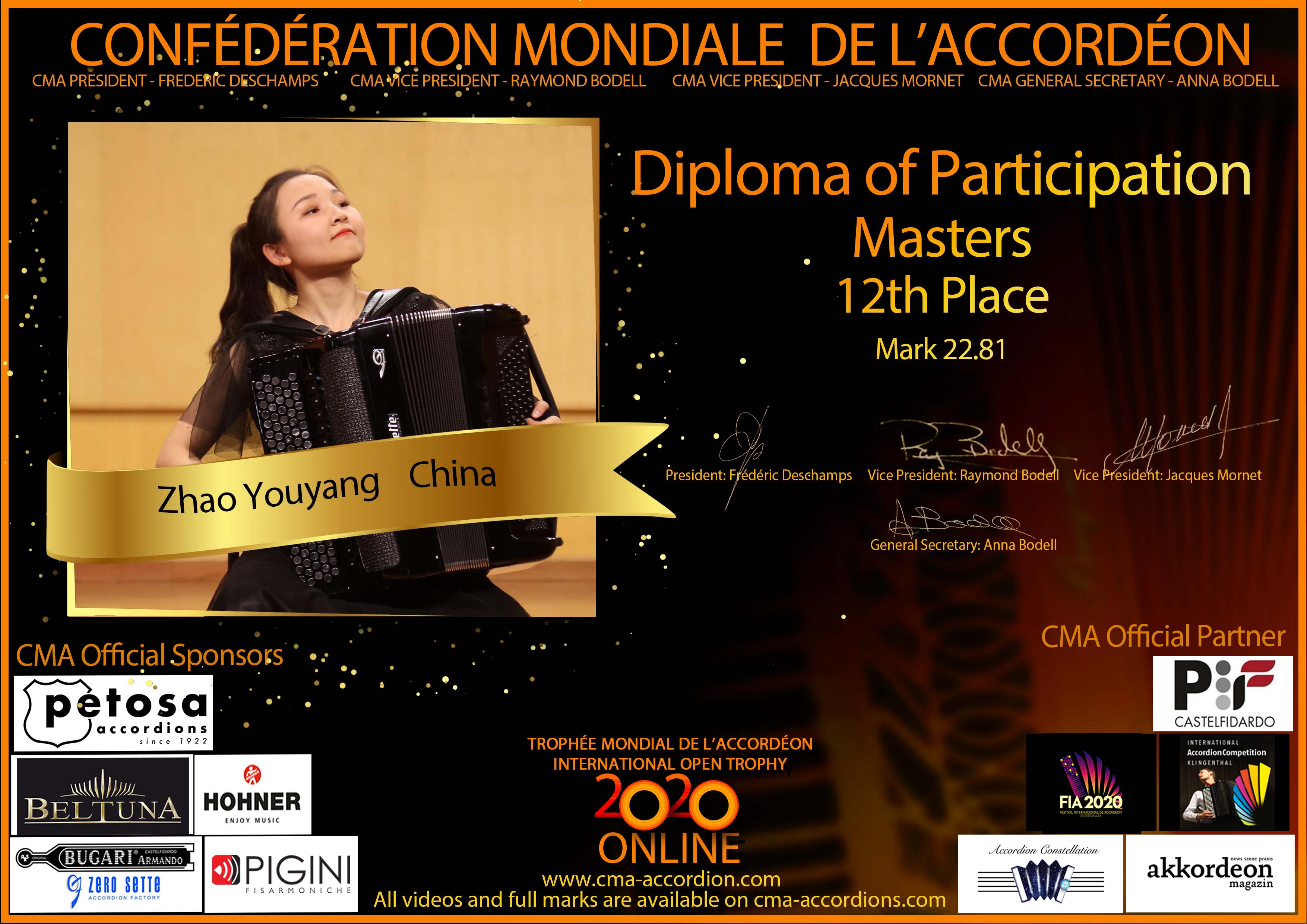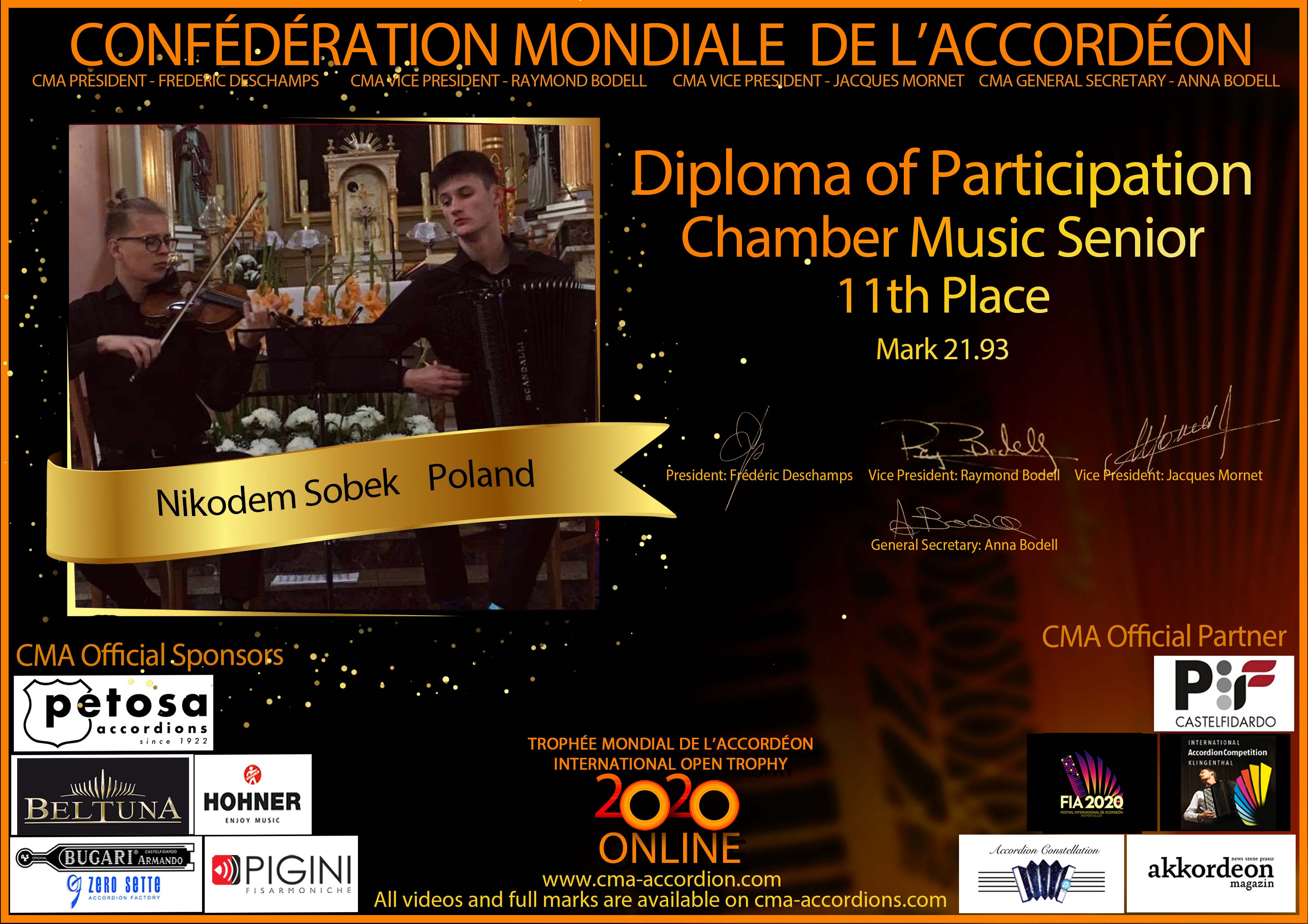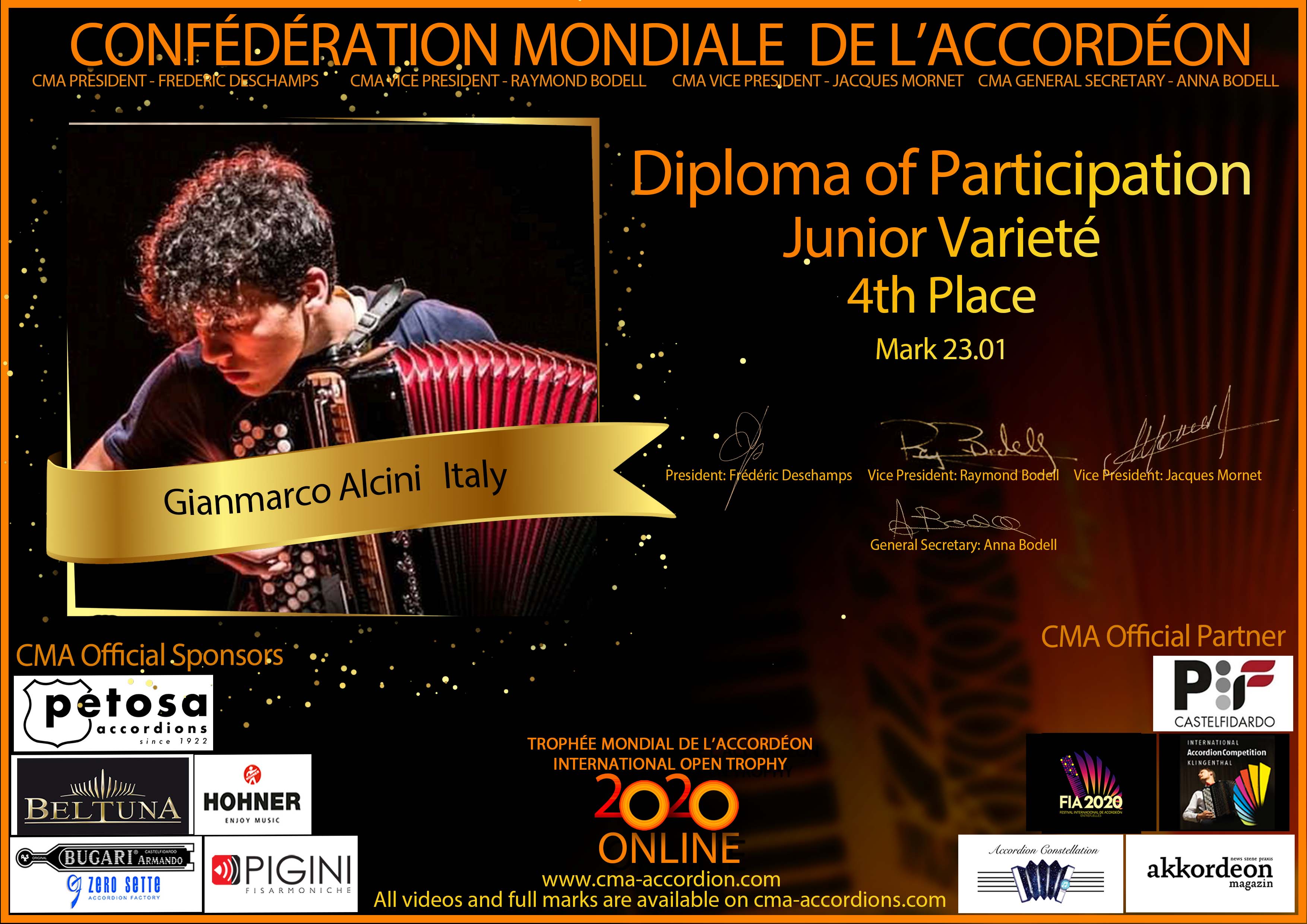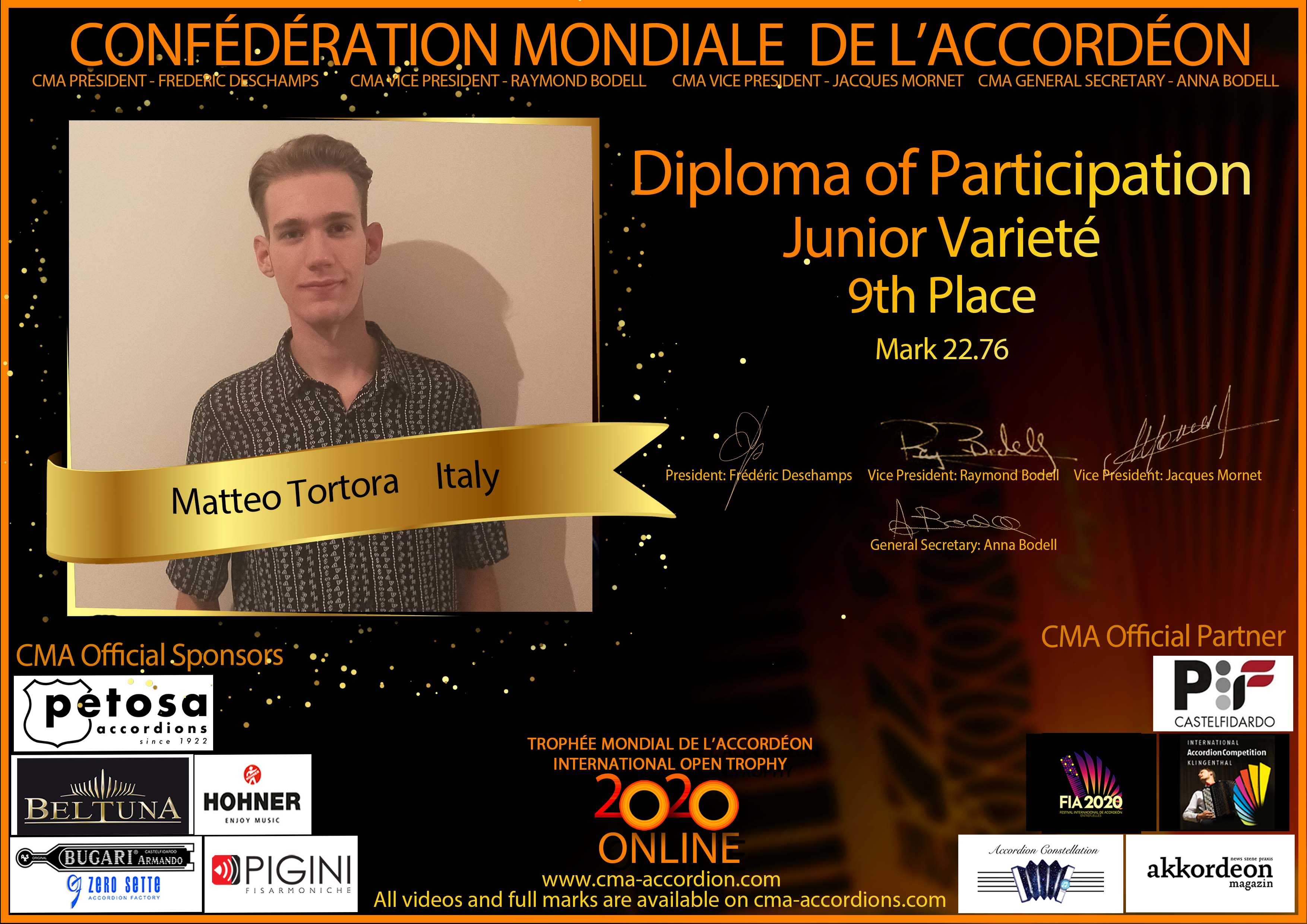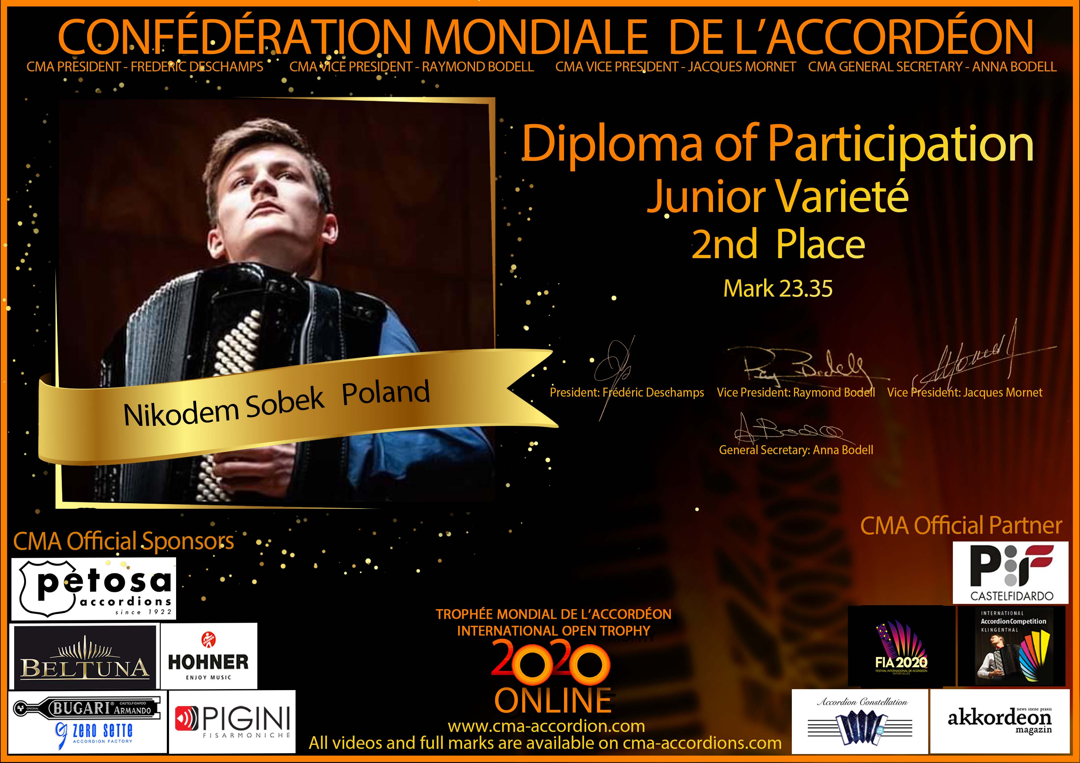 Candidates diploma of Trophee Mondial