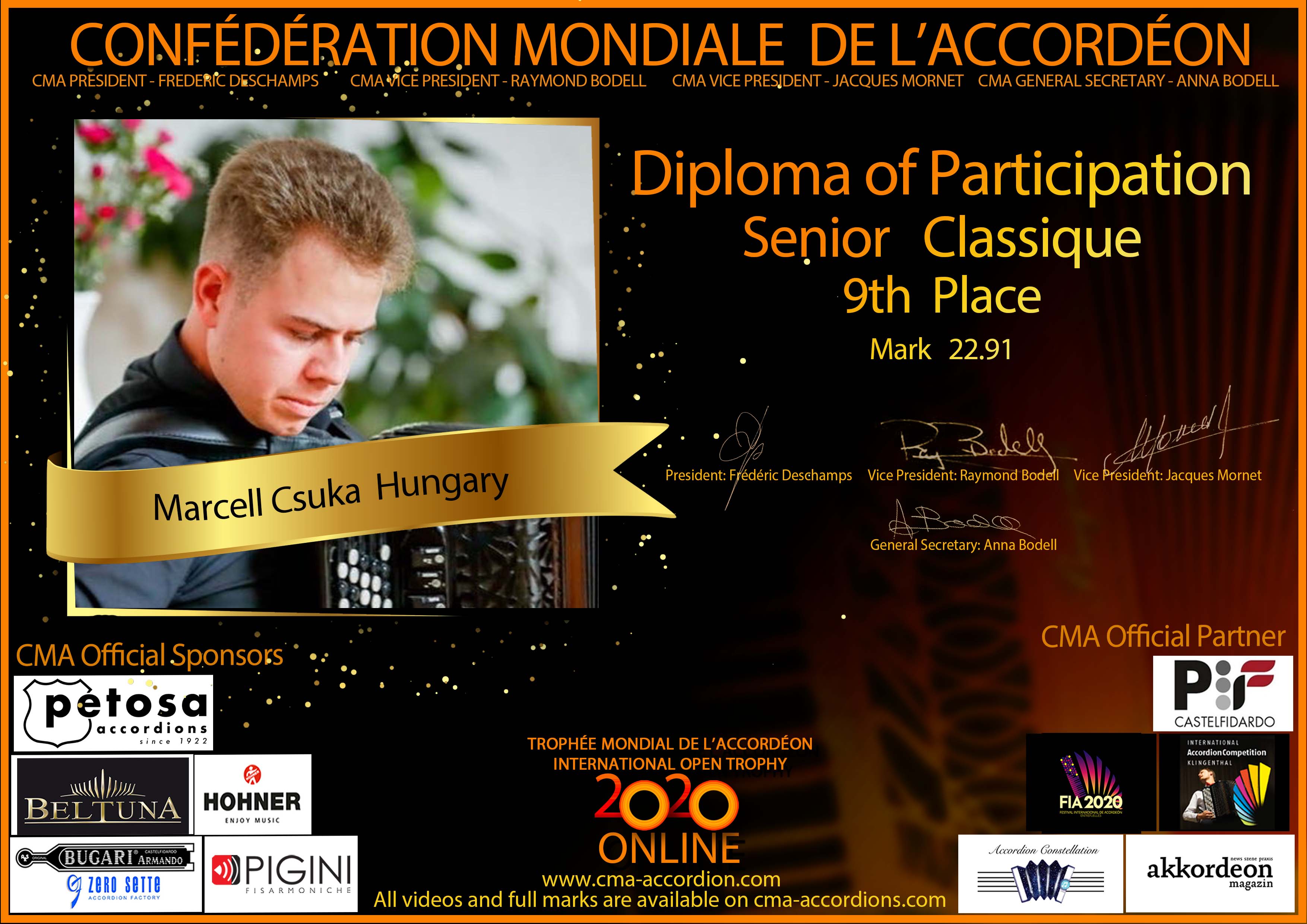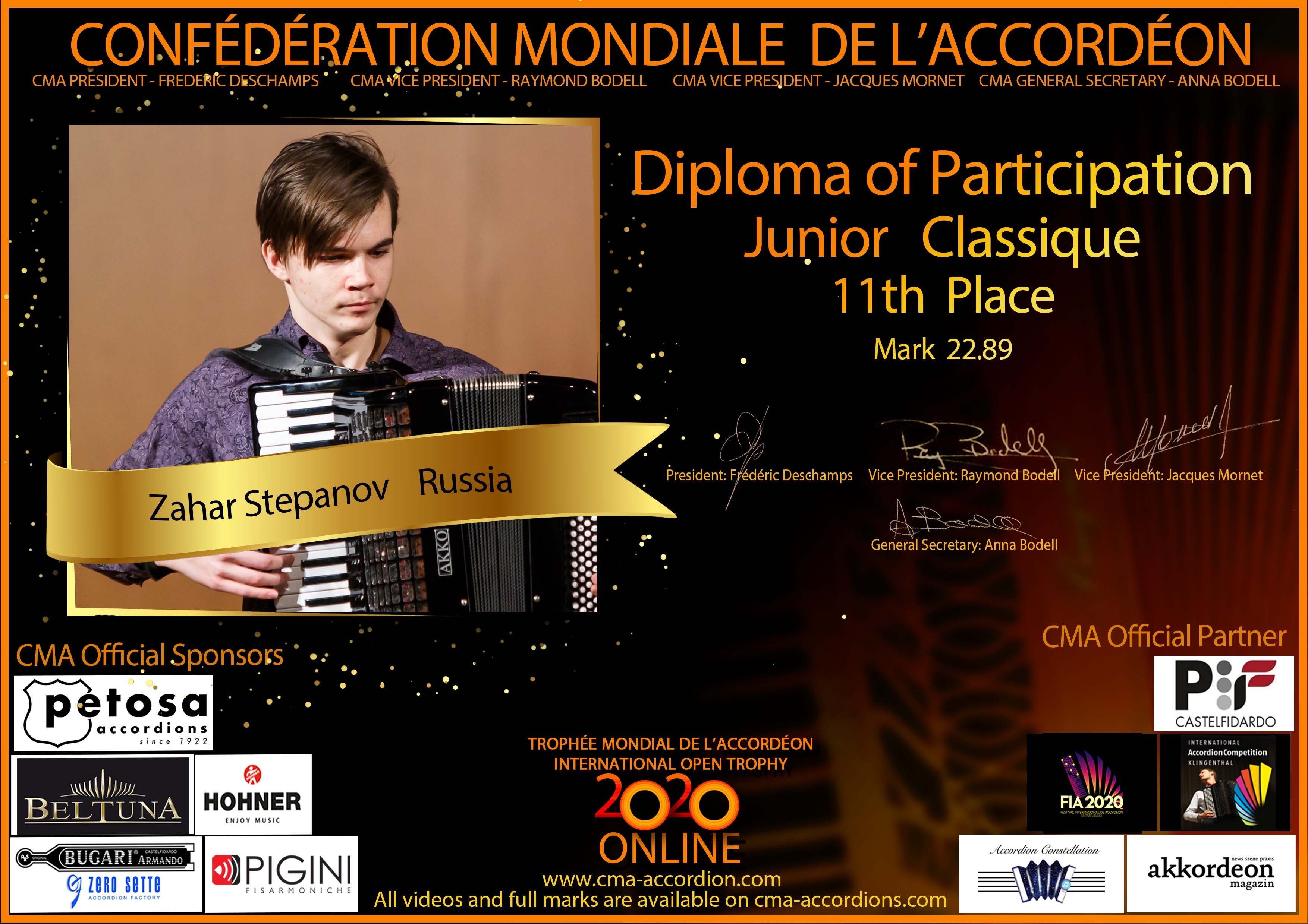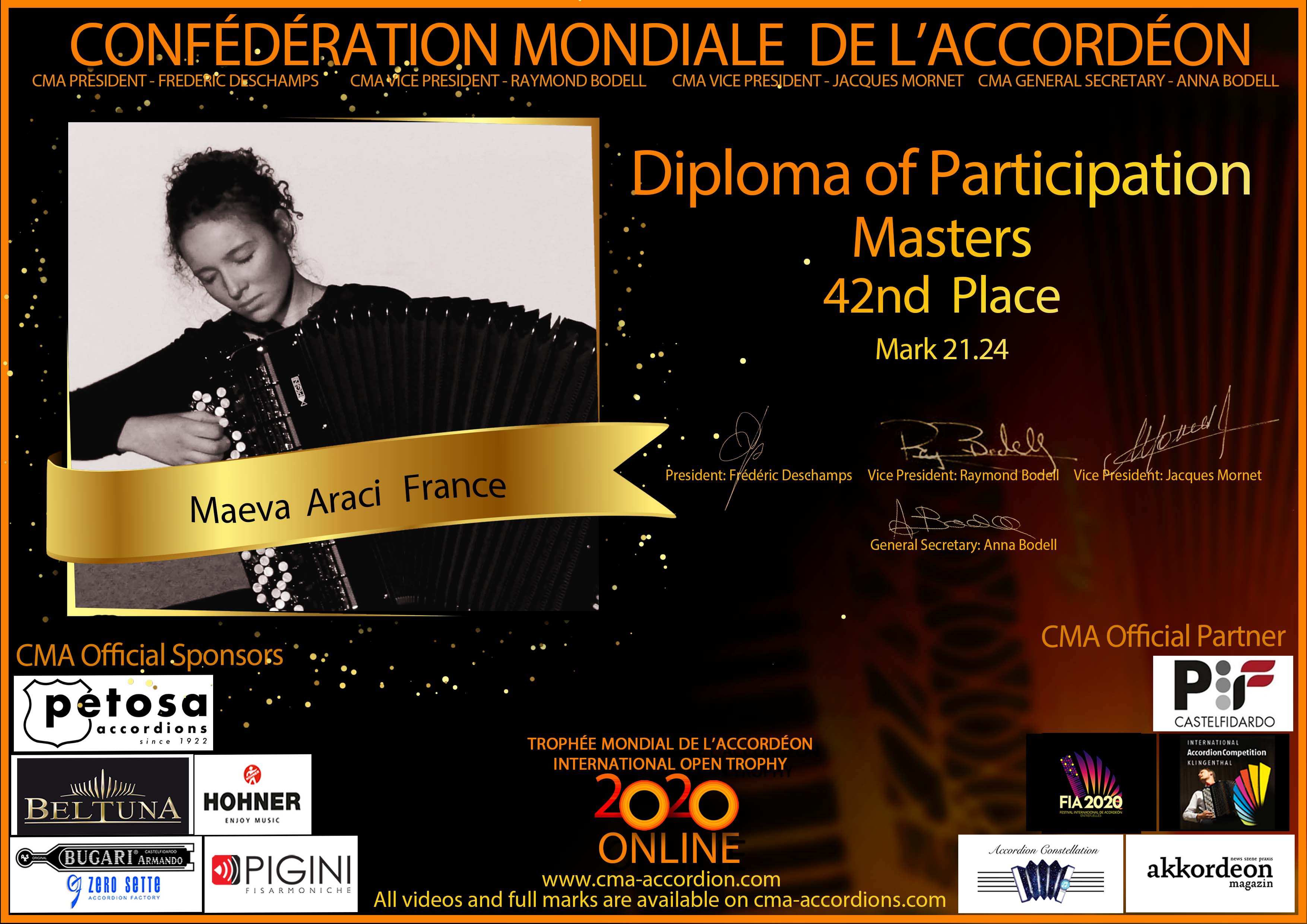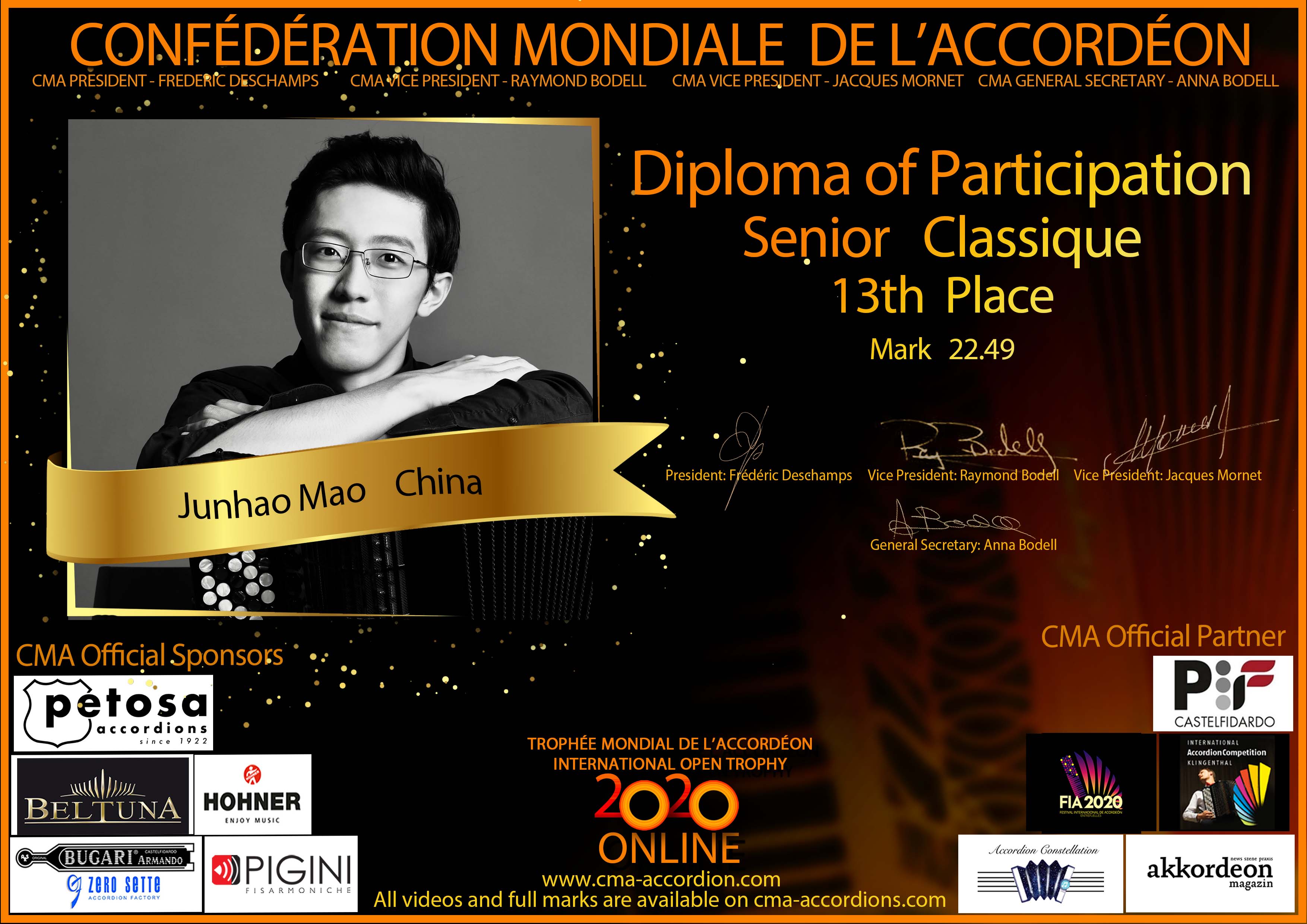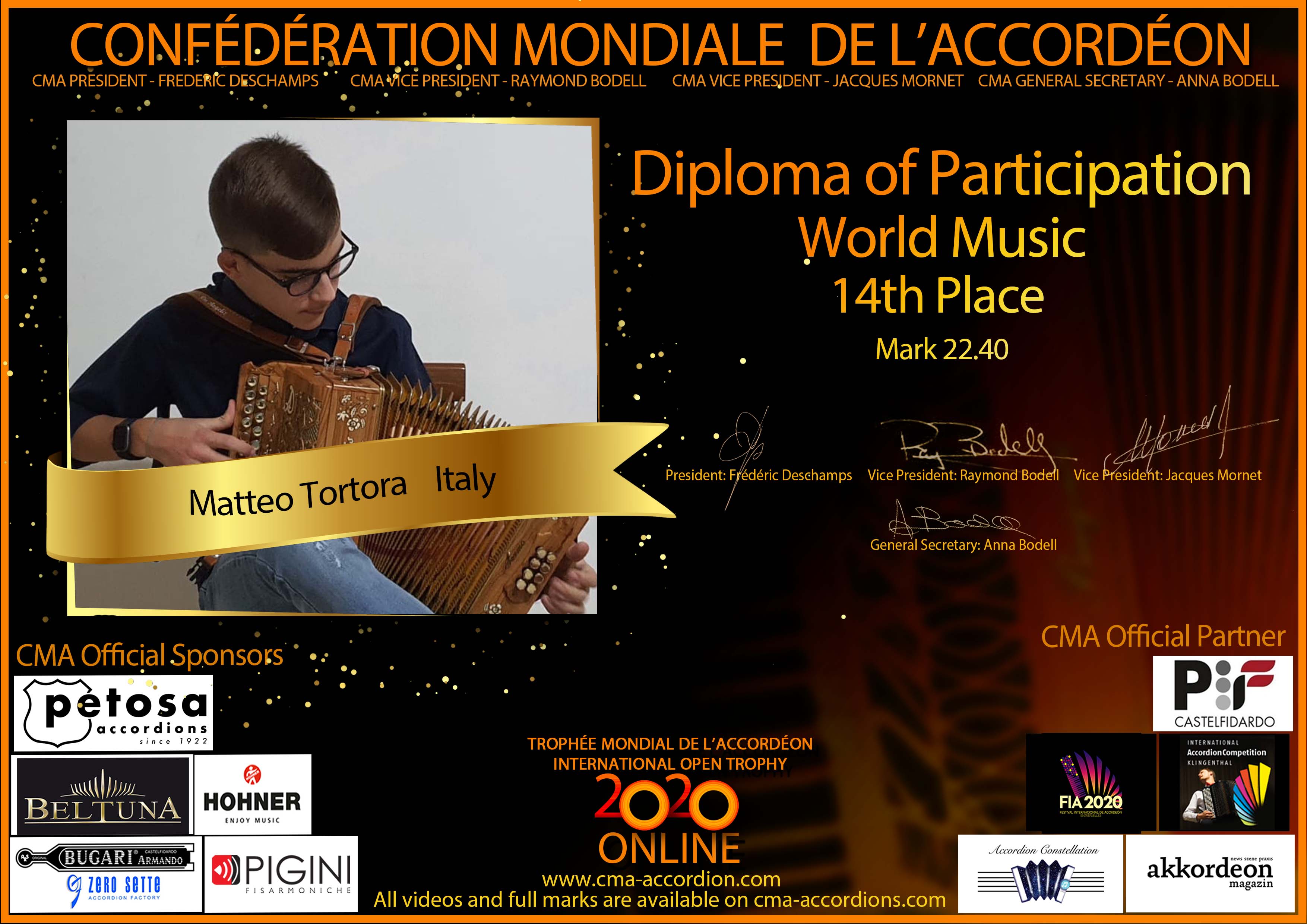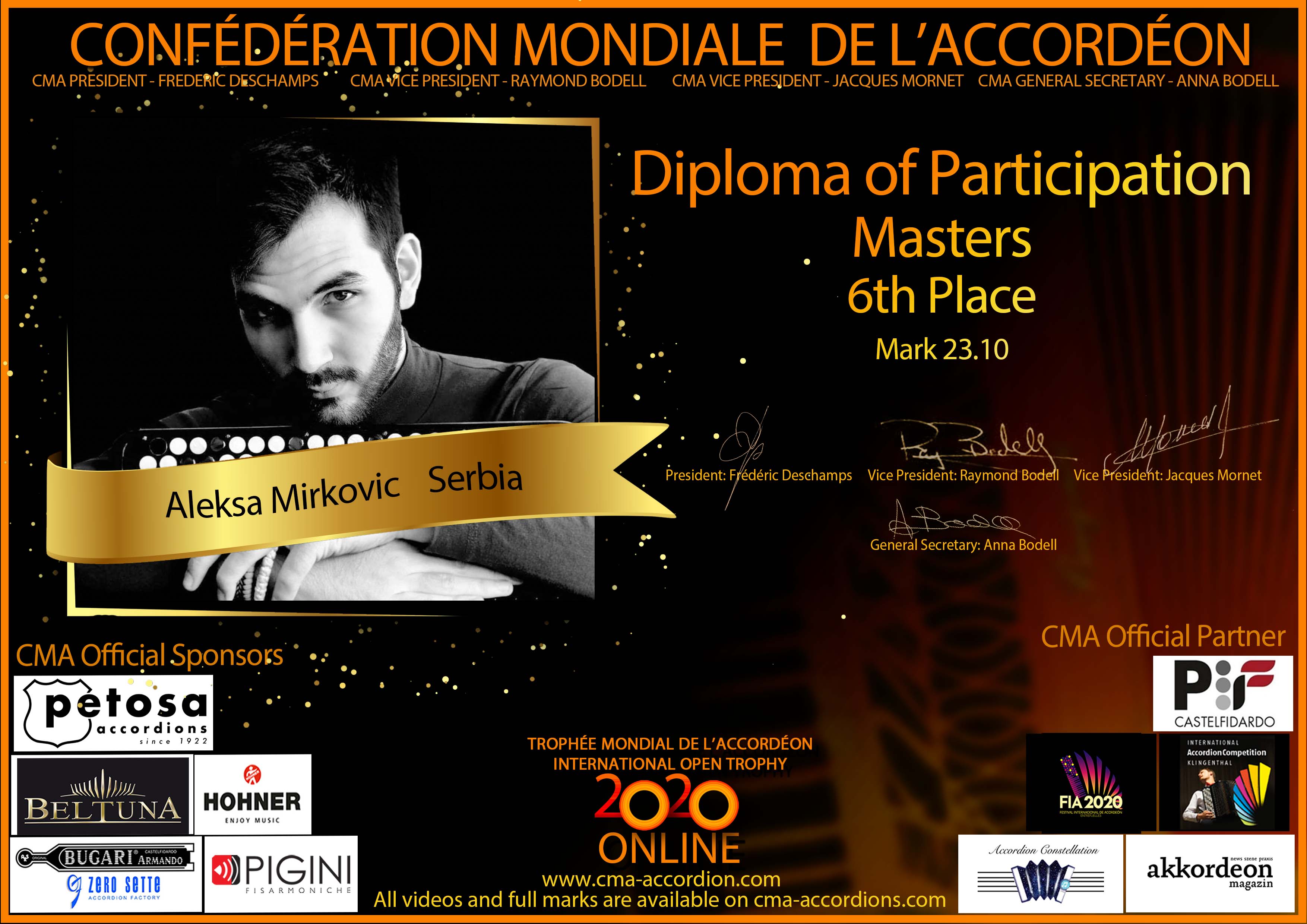 Candidates diploma of Trophee Mondial