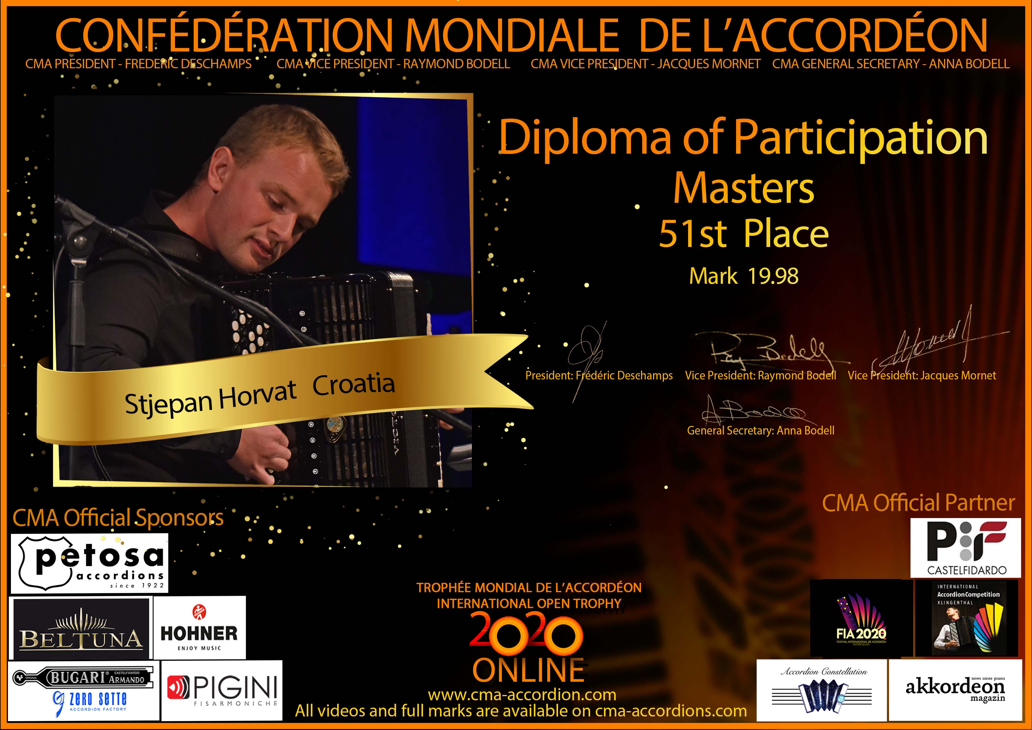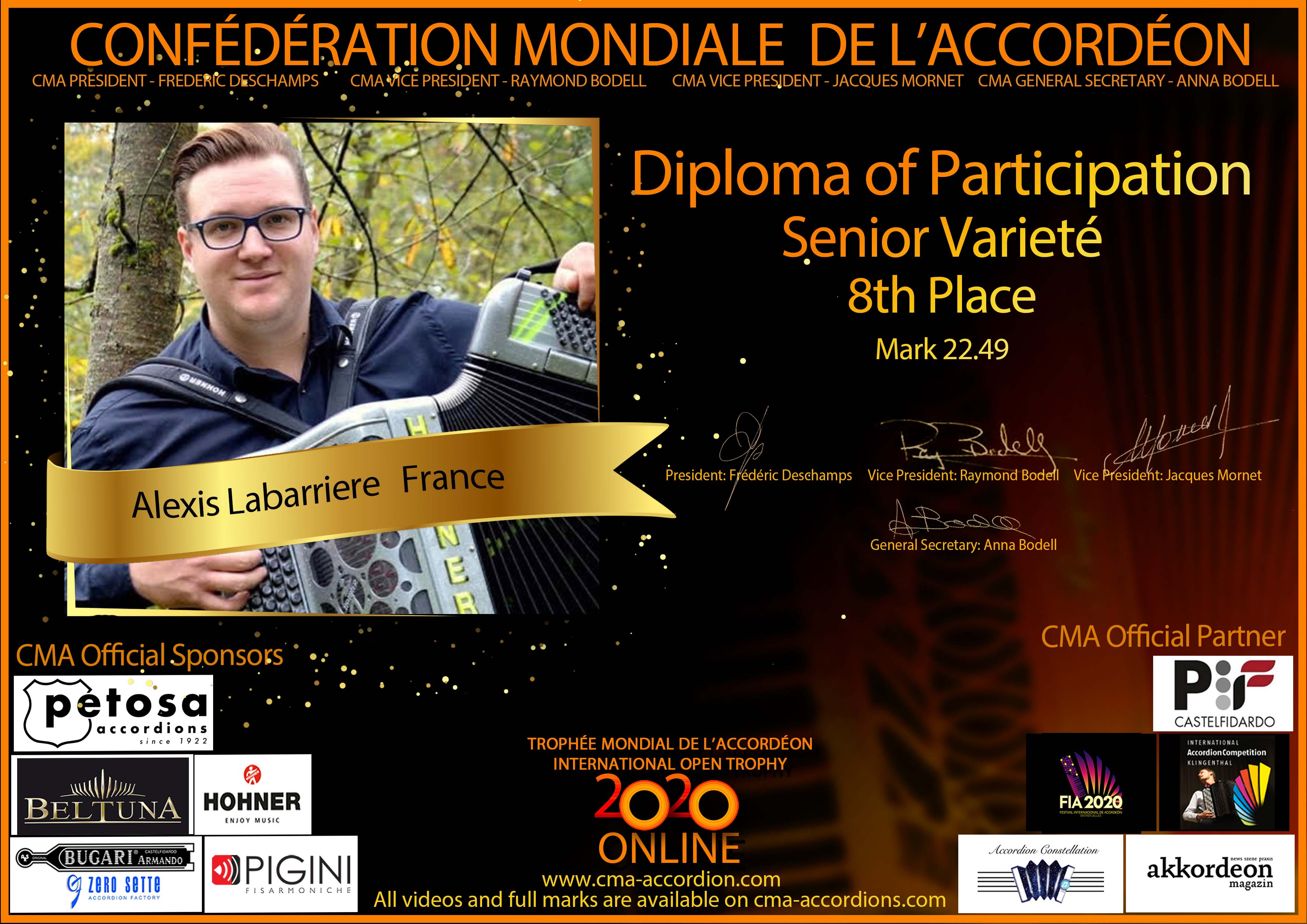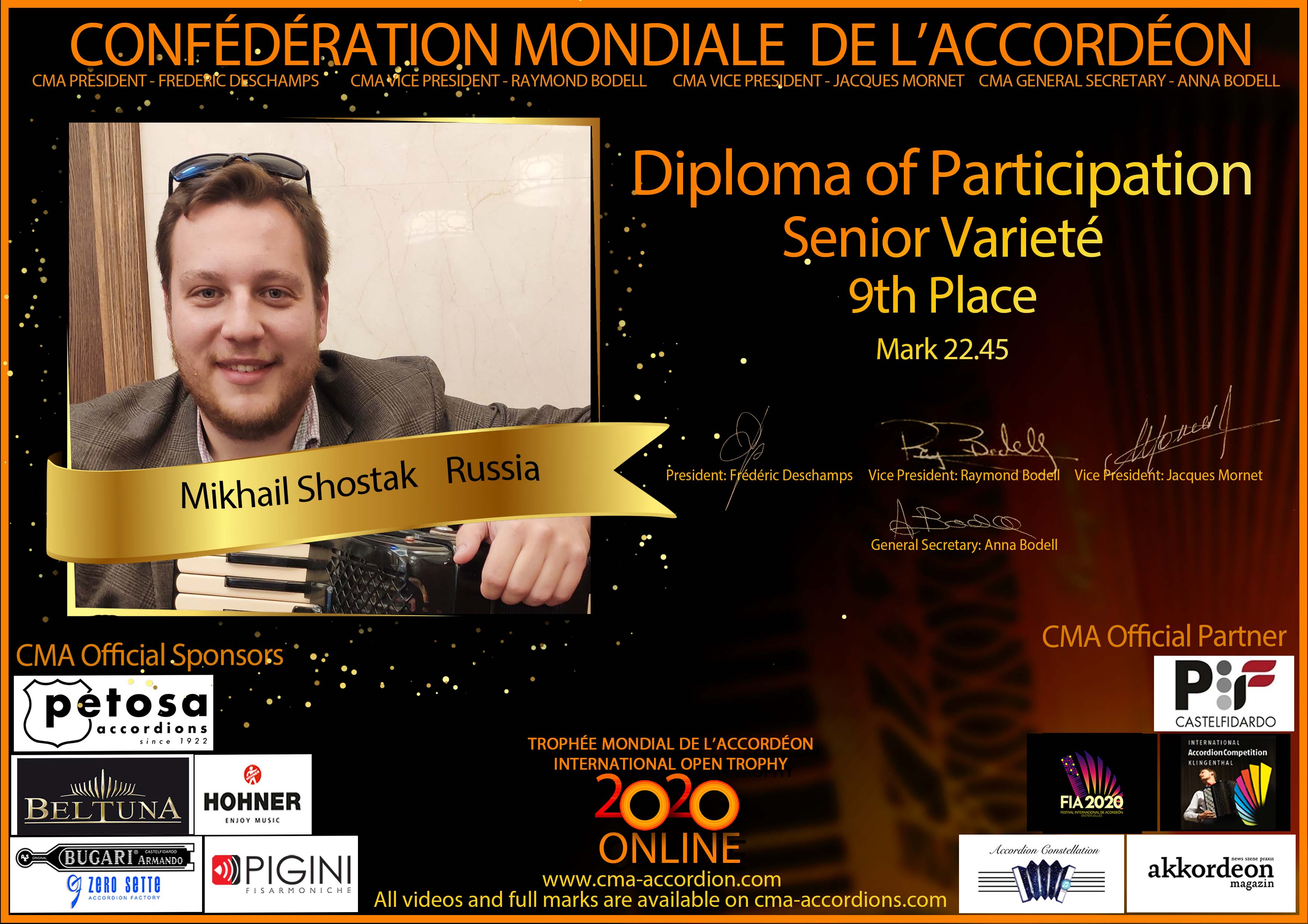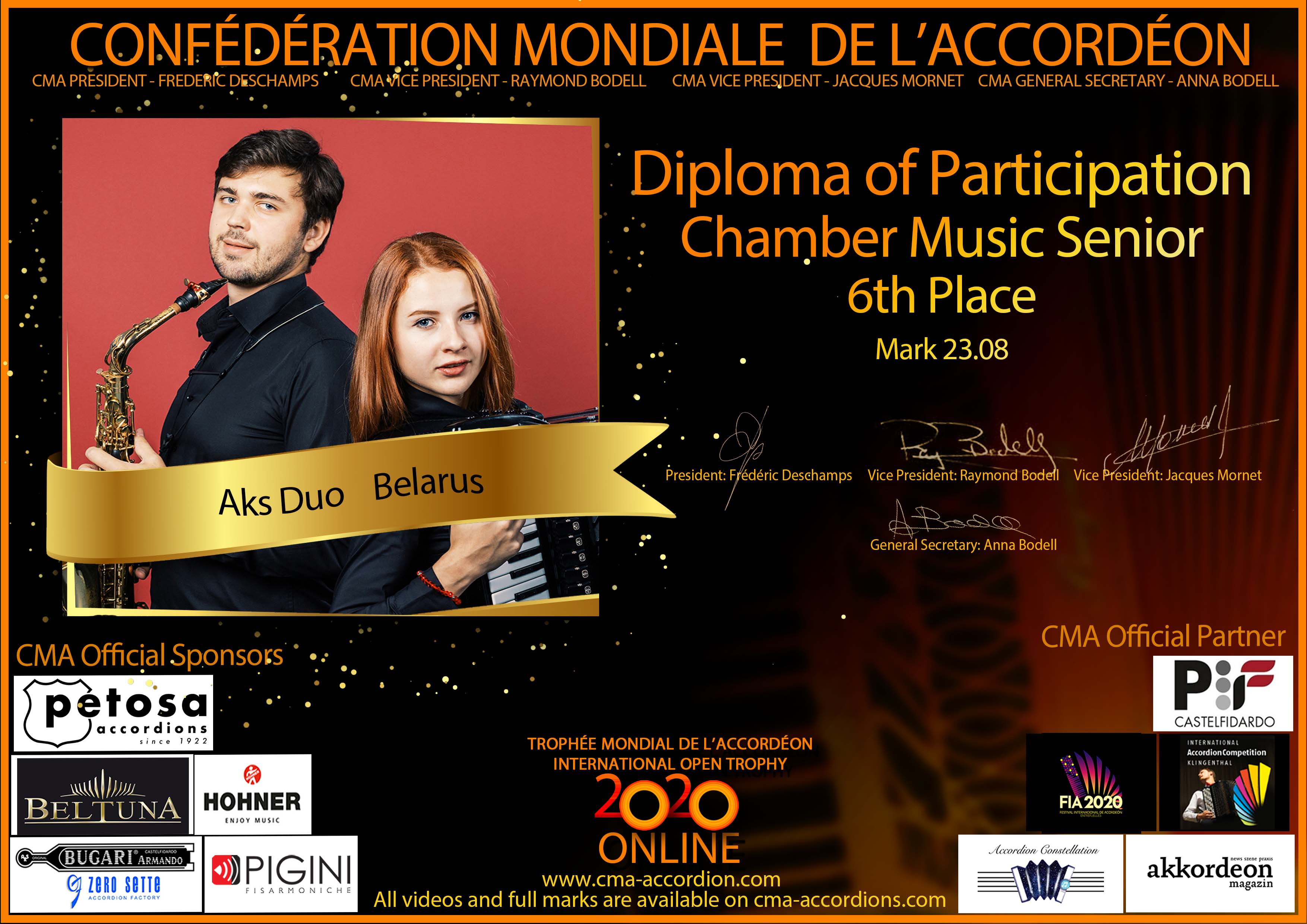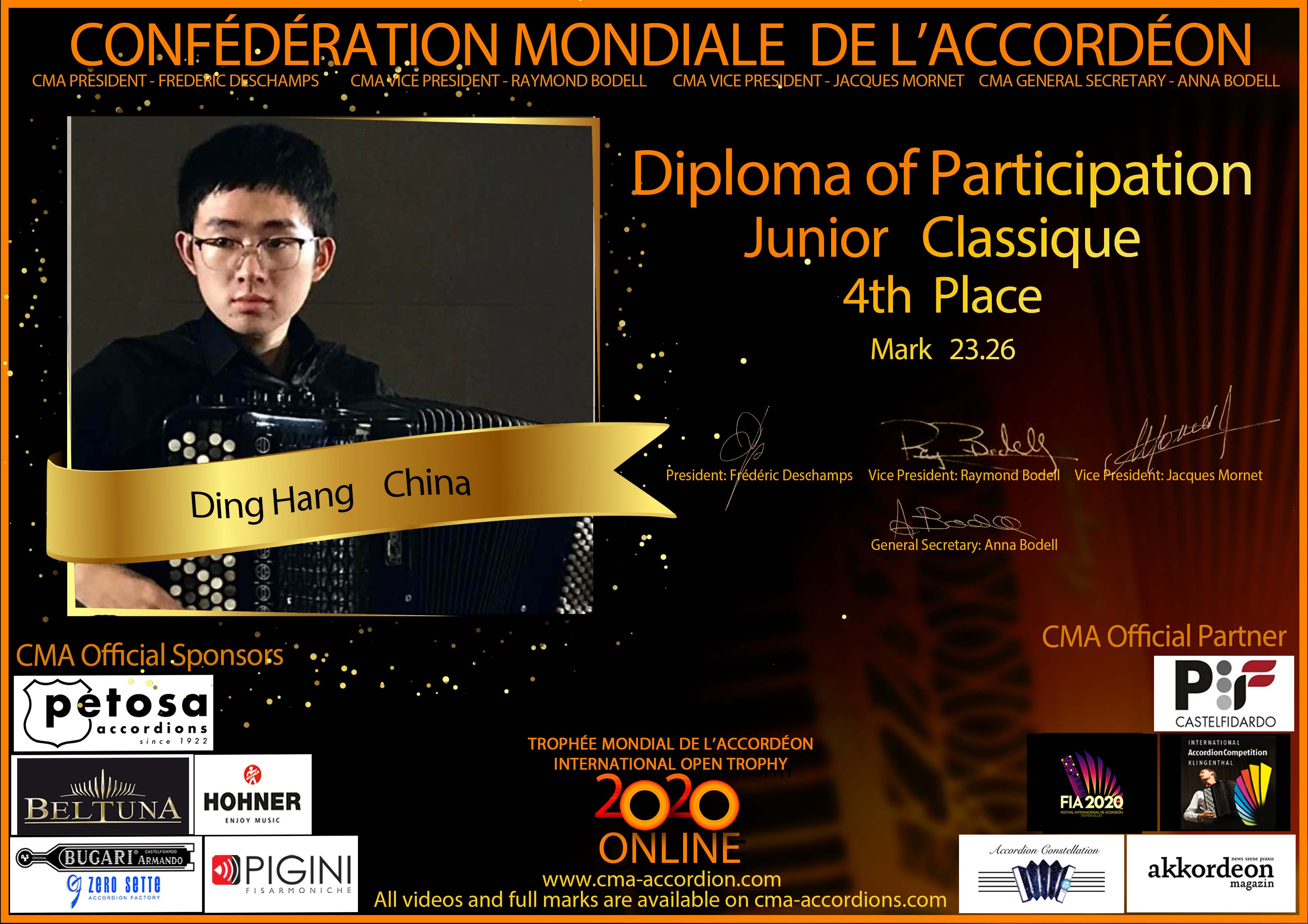 Candidates diploma of Trophee Mondial
