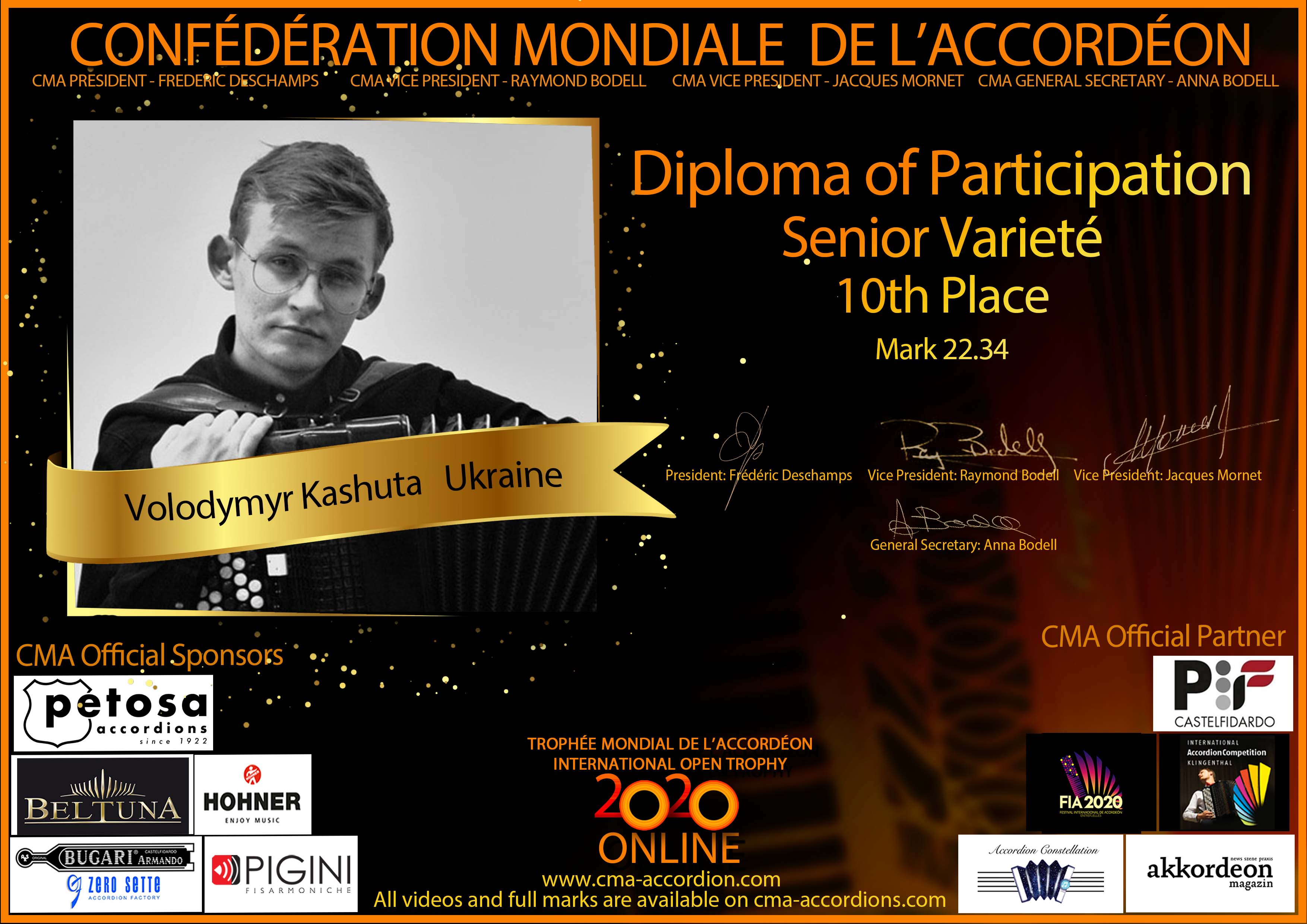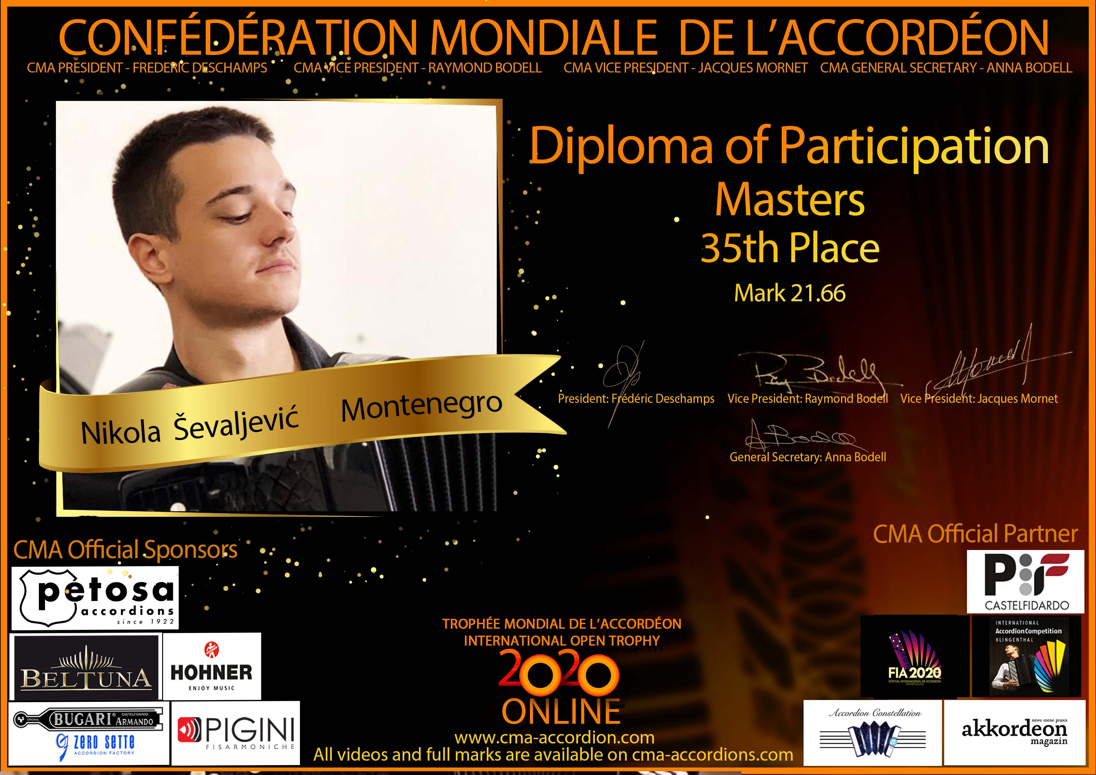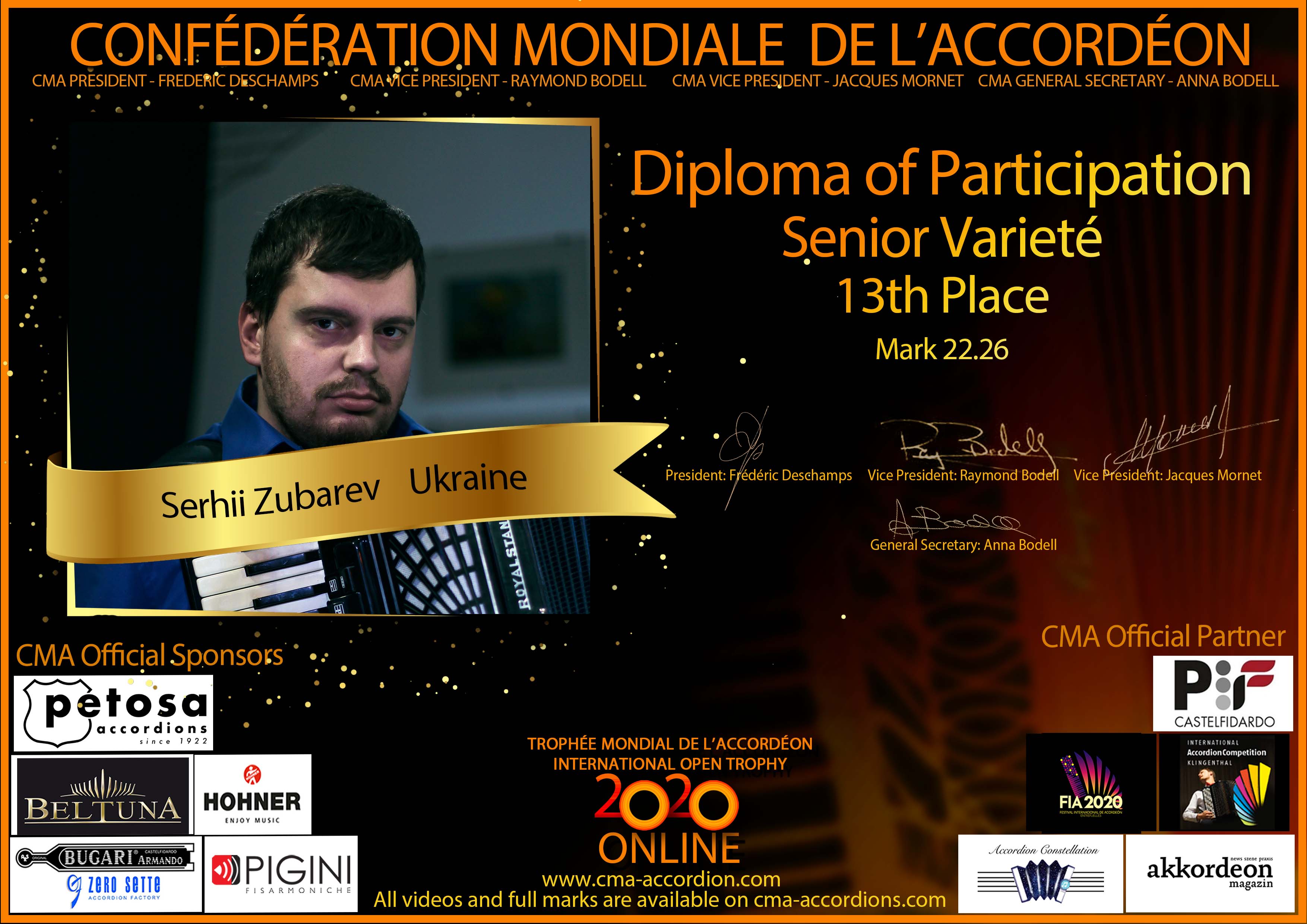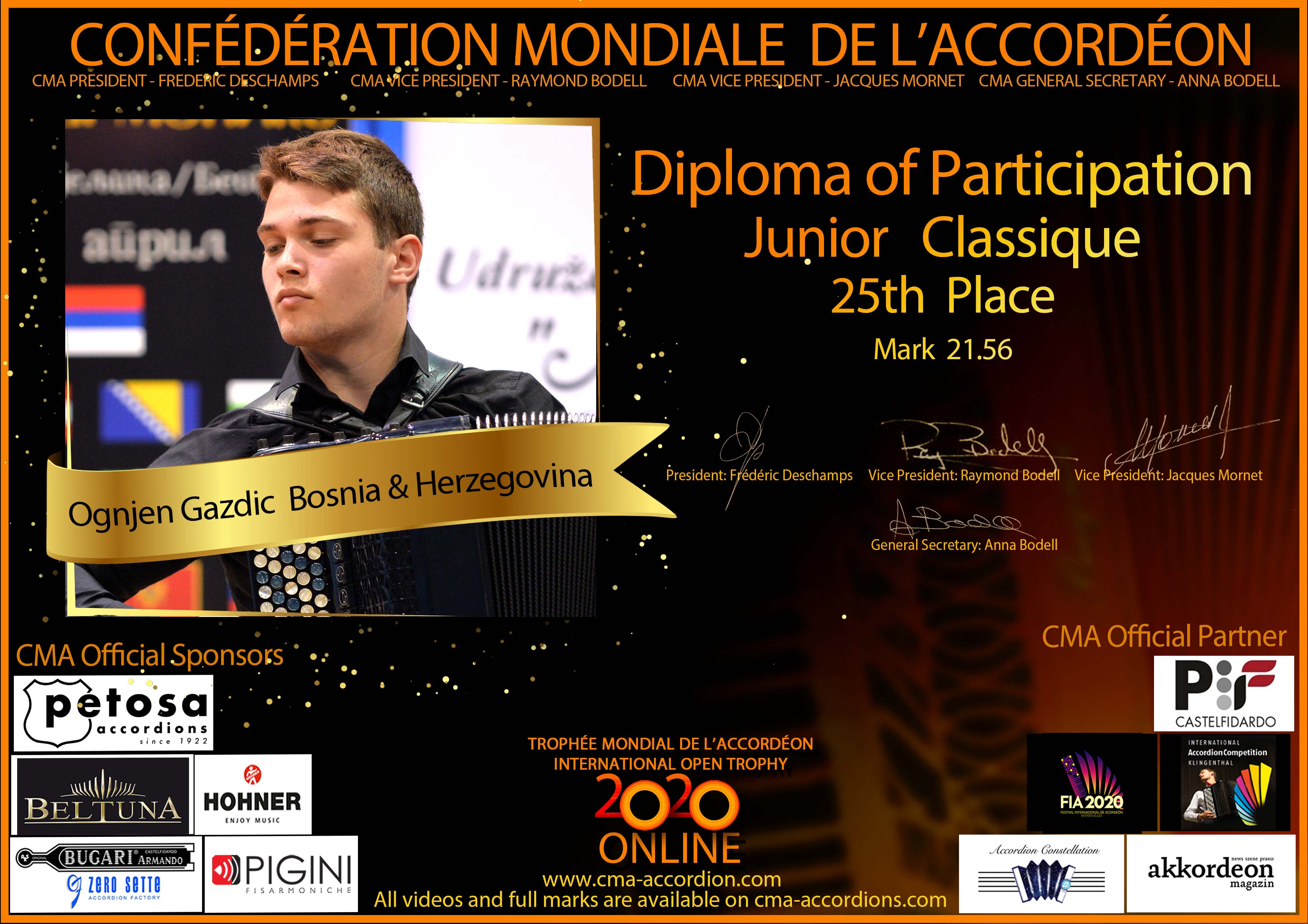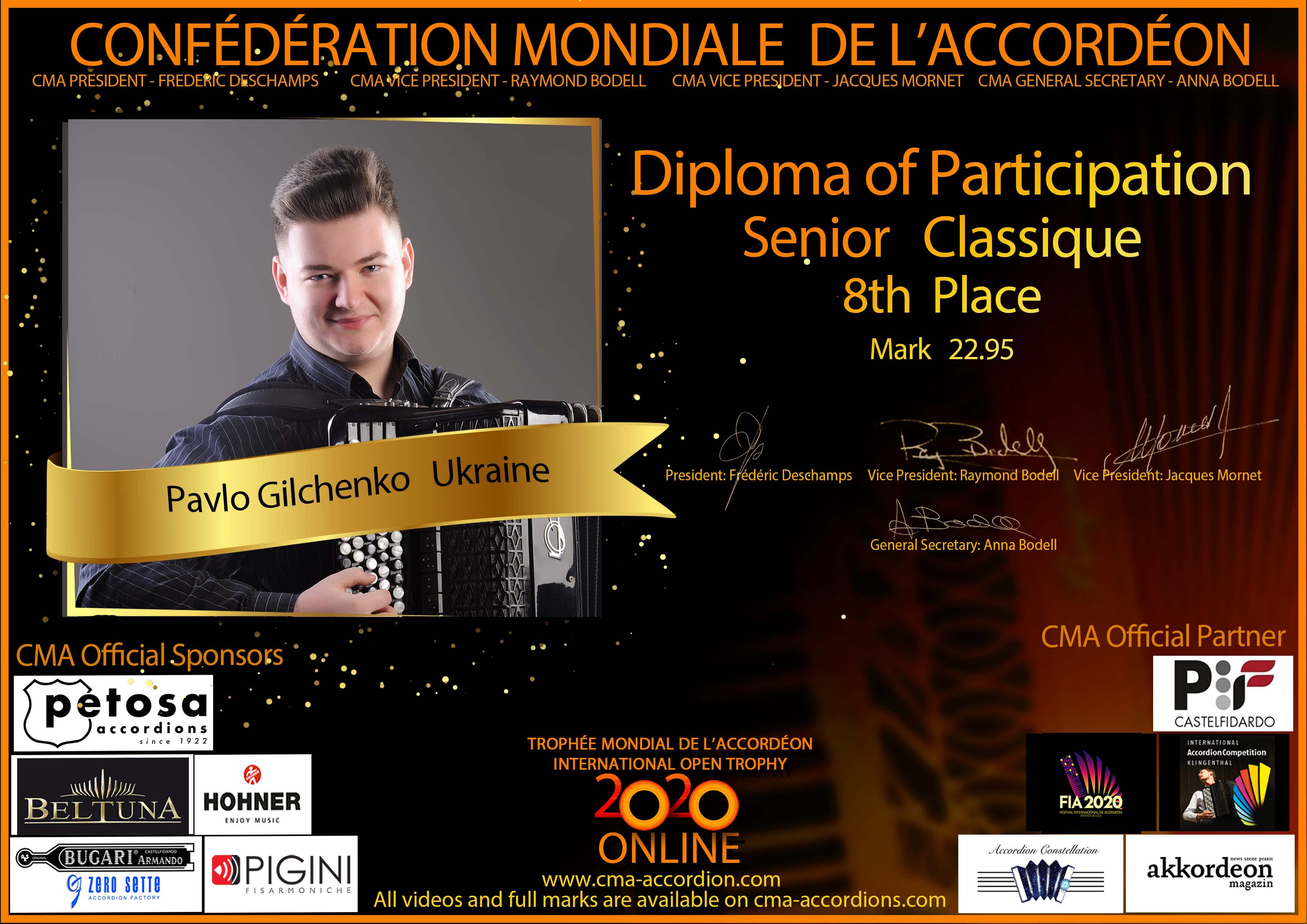 Candidates diploma of Trophee Mondial