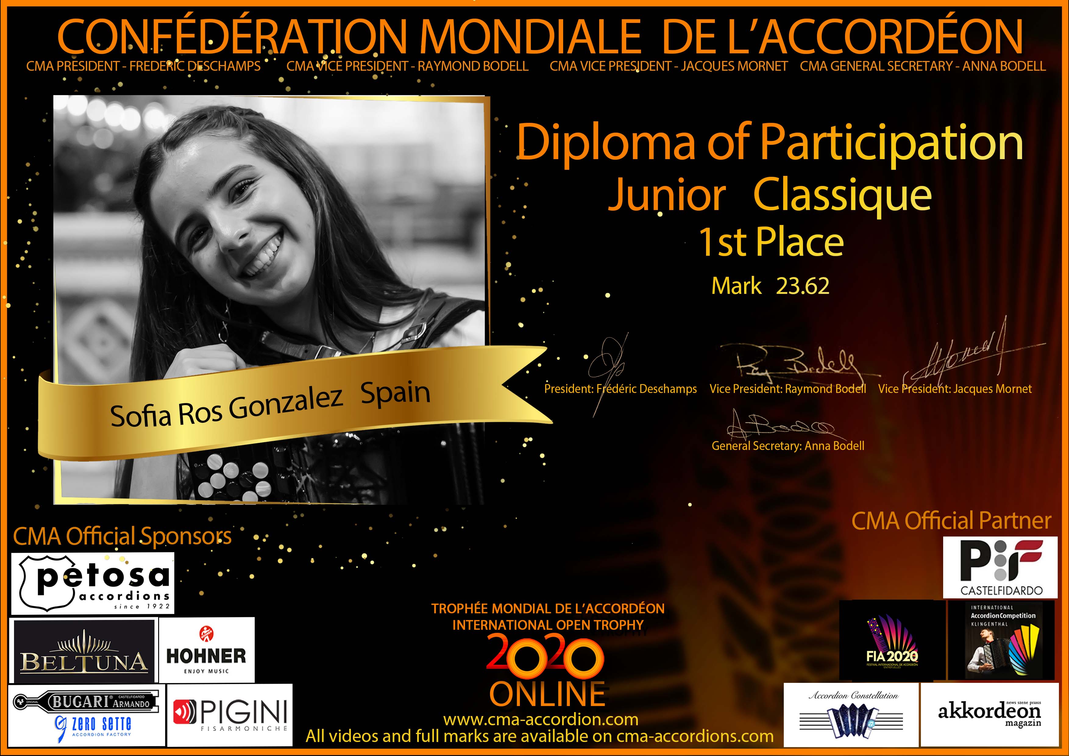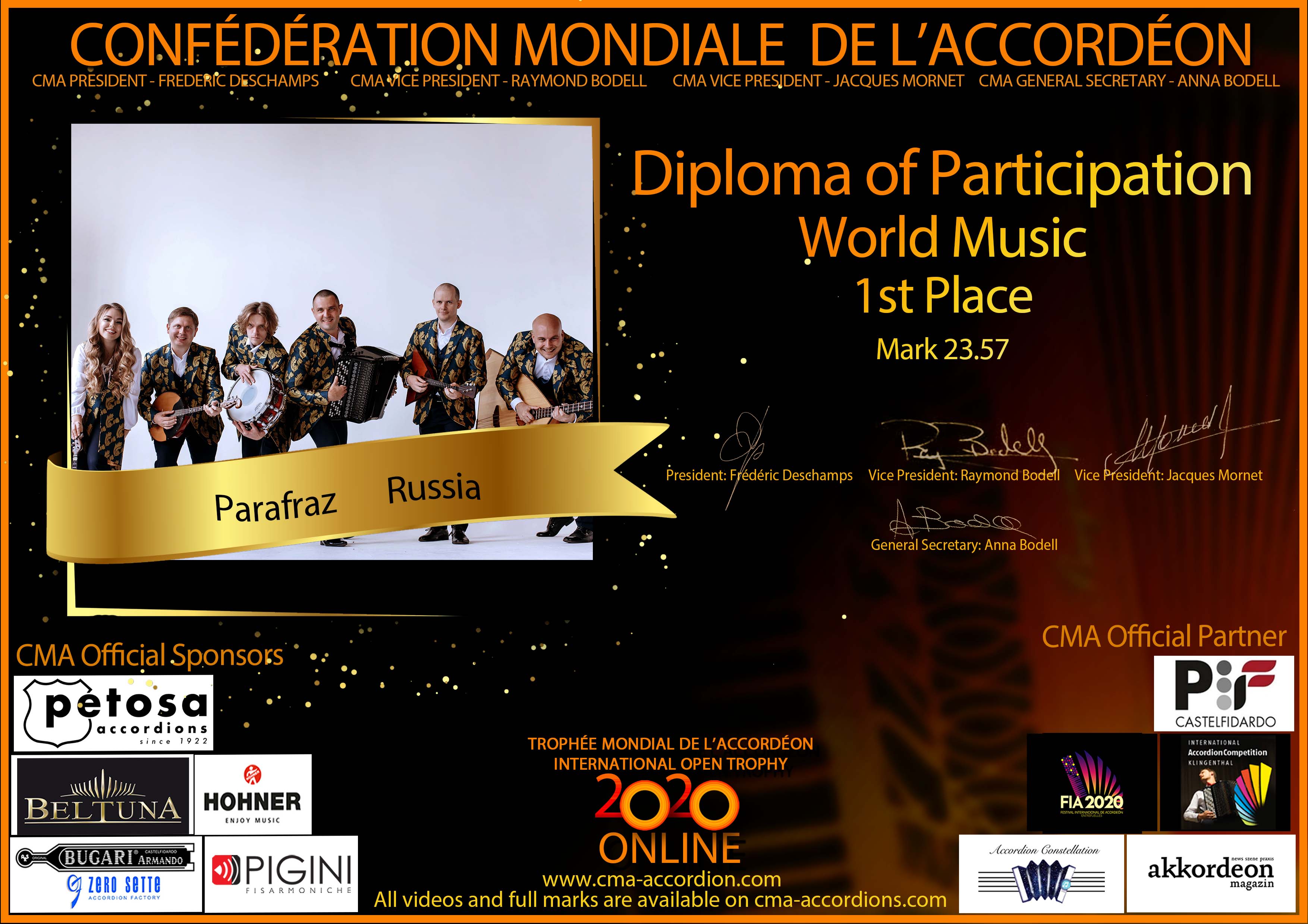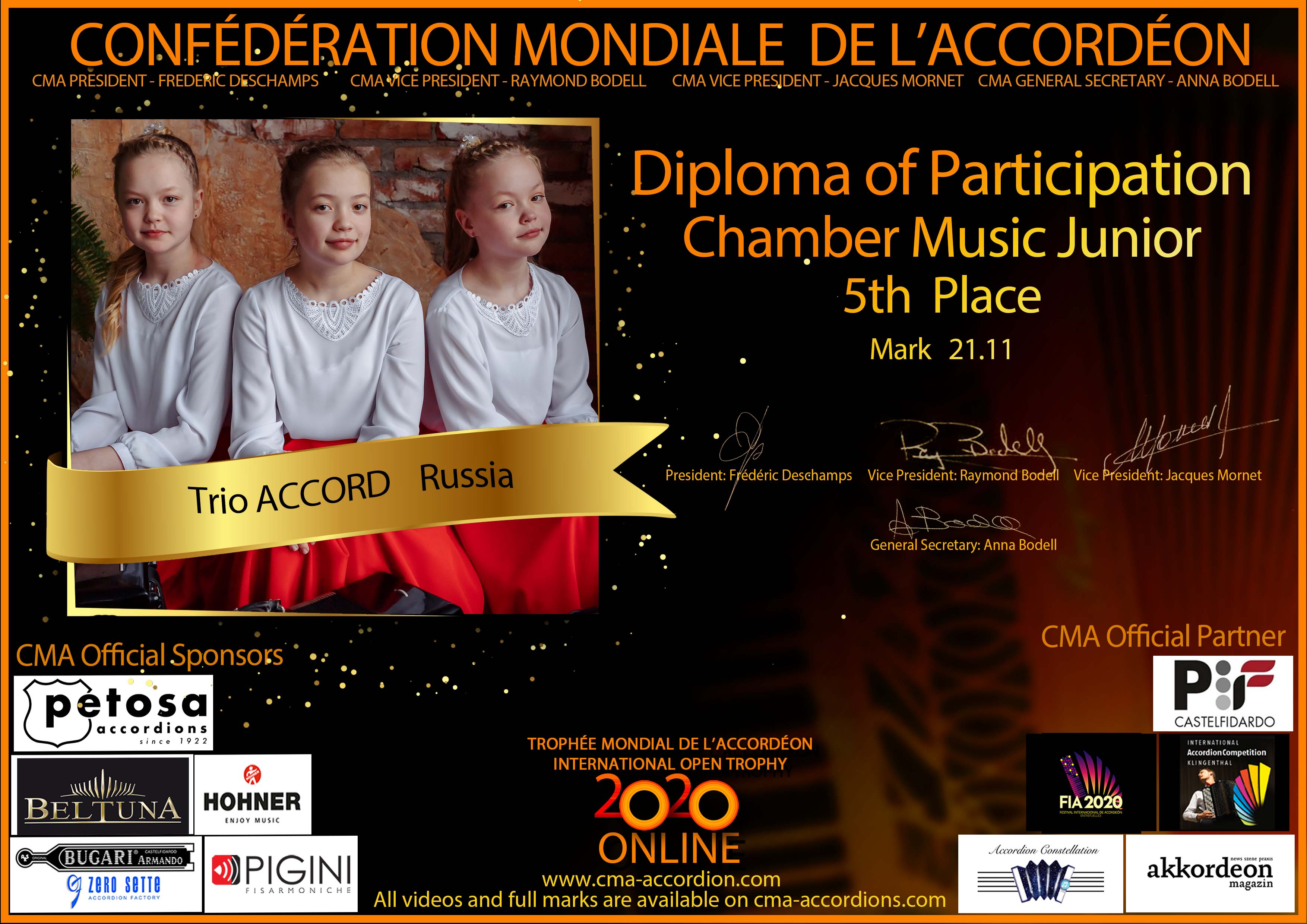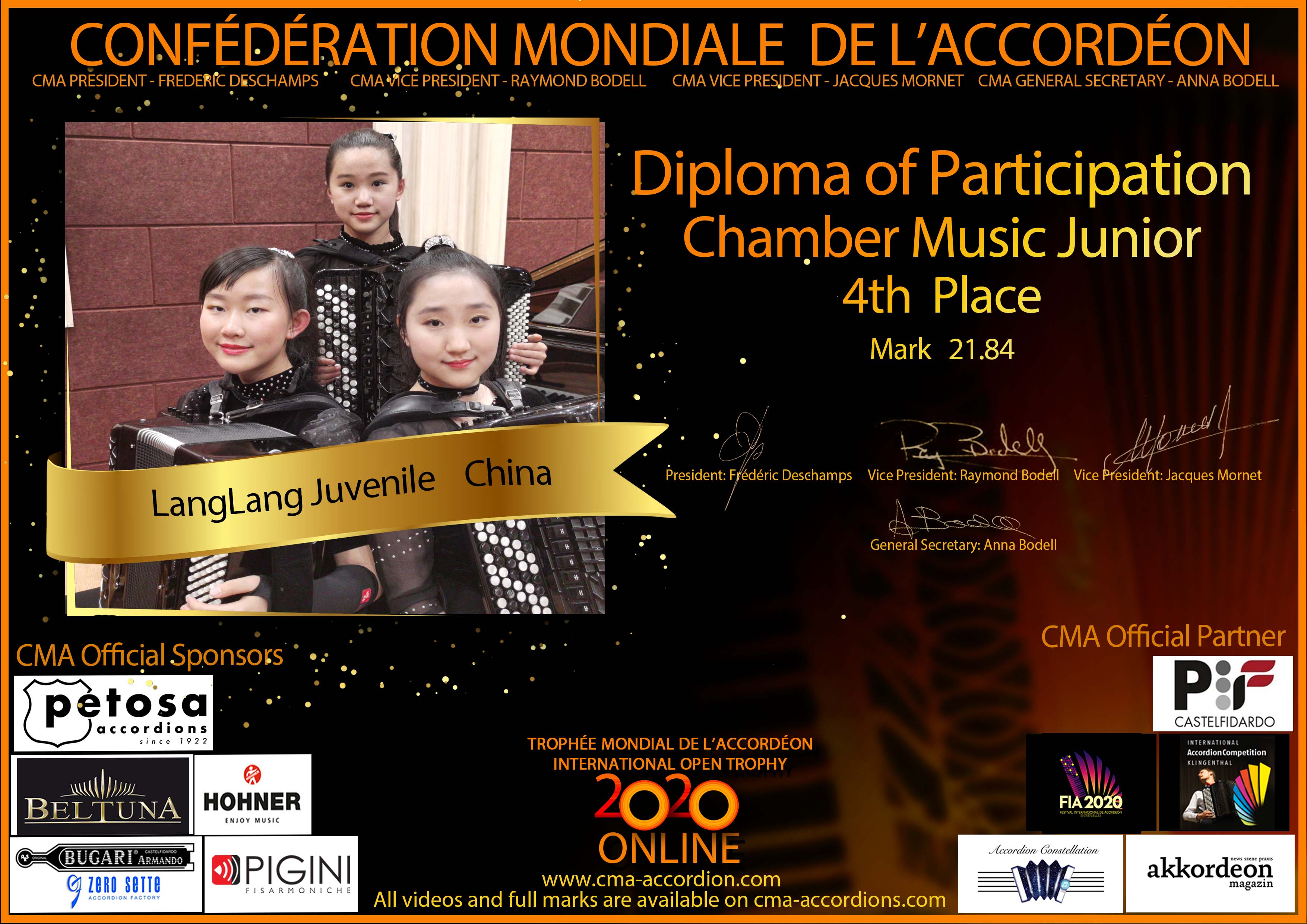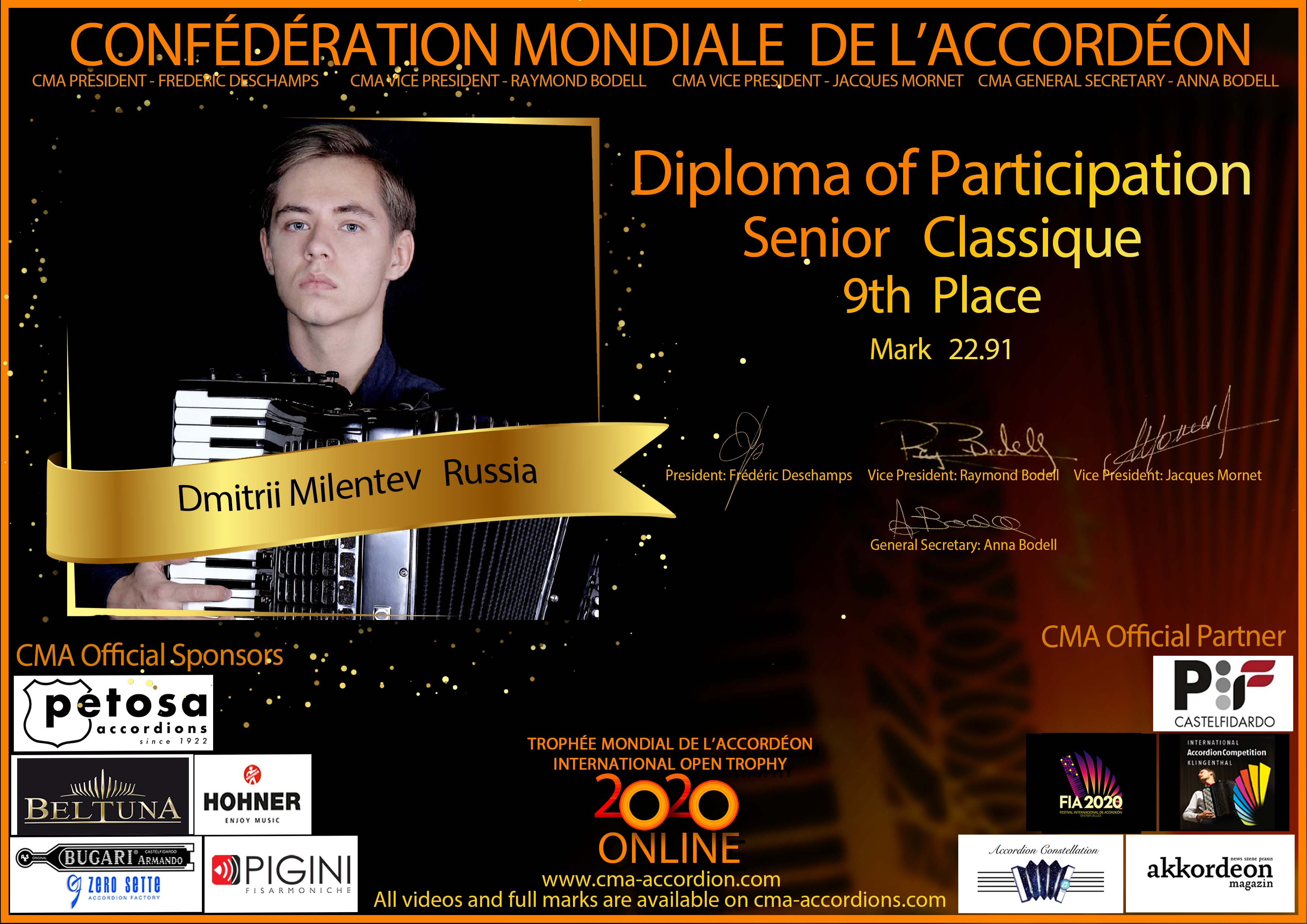 Candidates diploma of Trophee Mondial