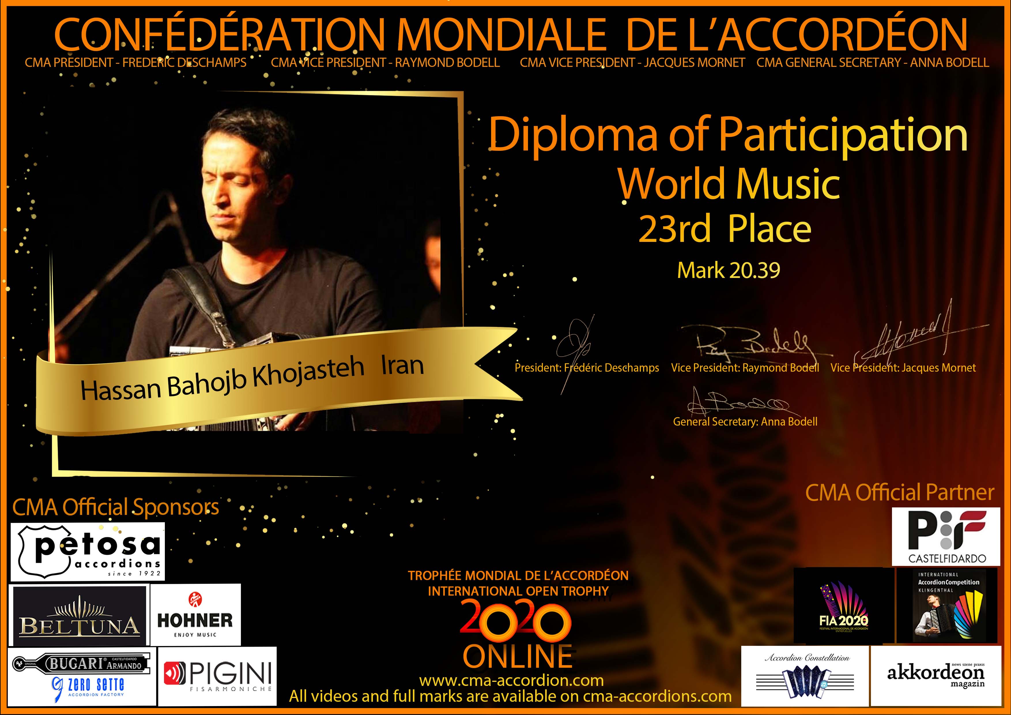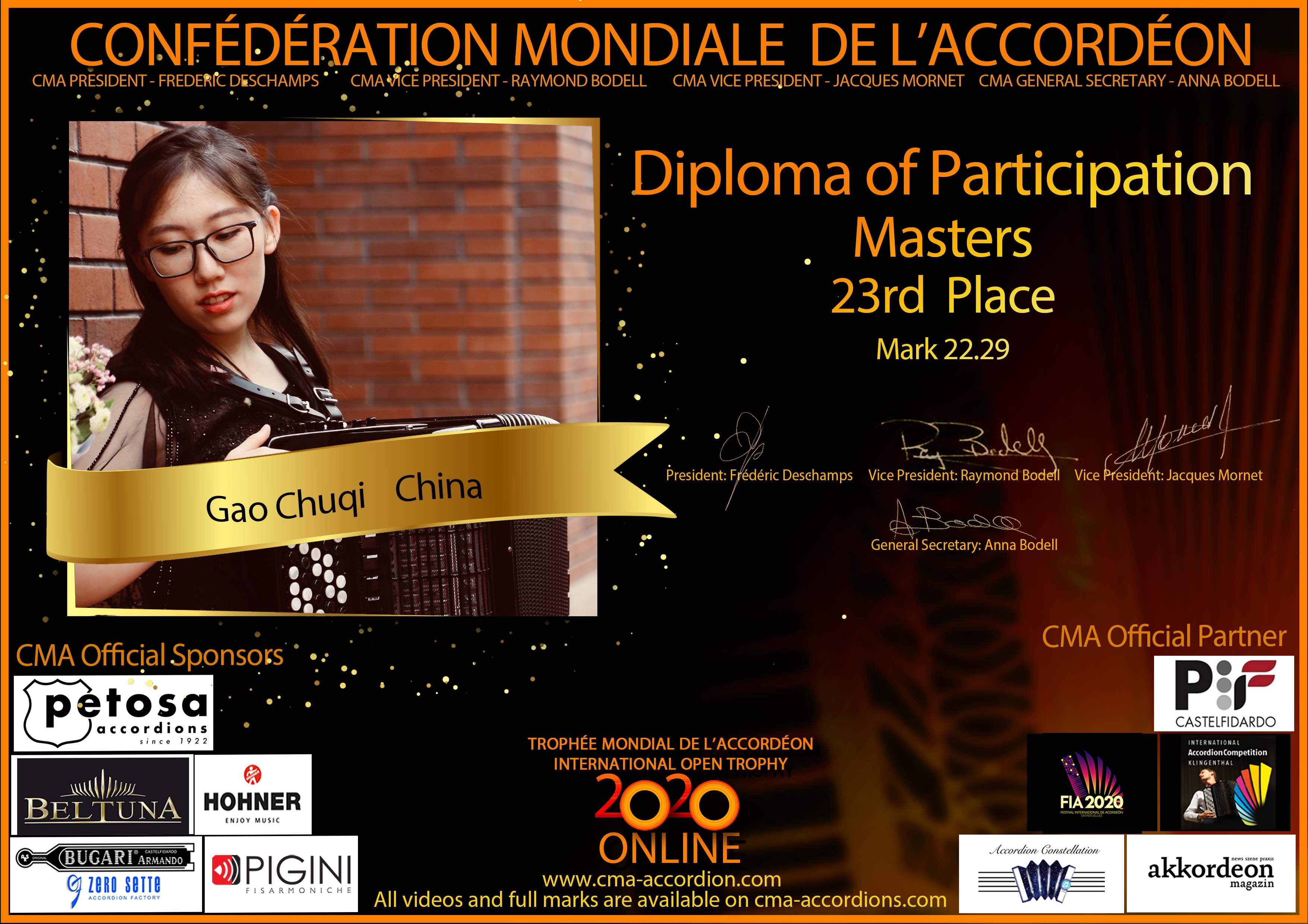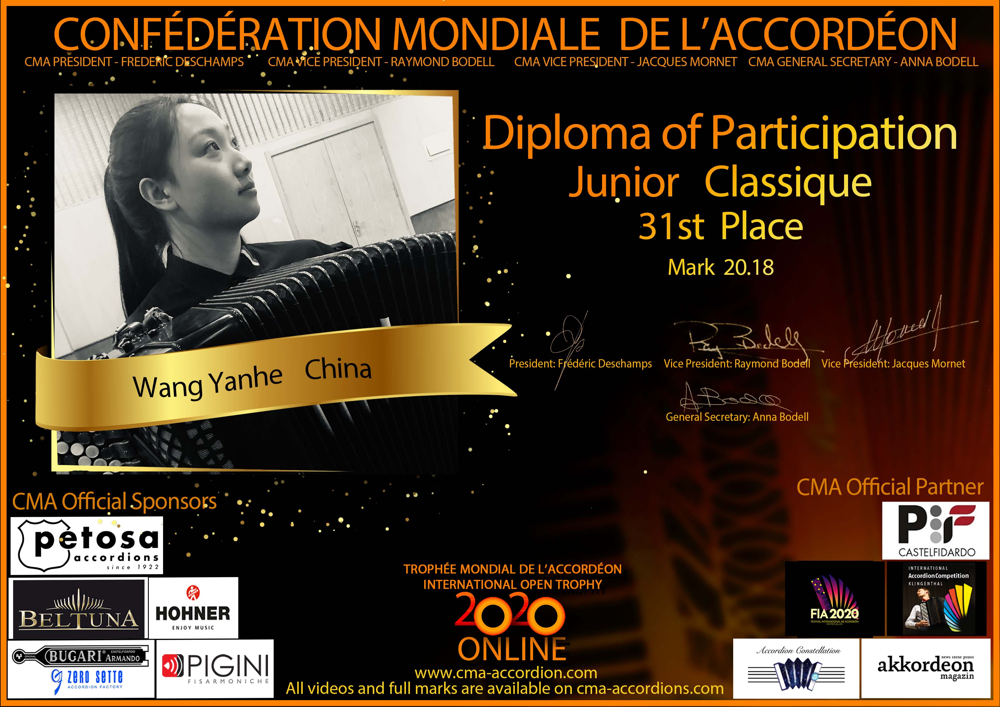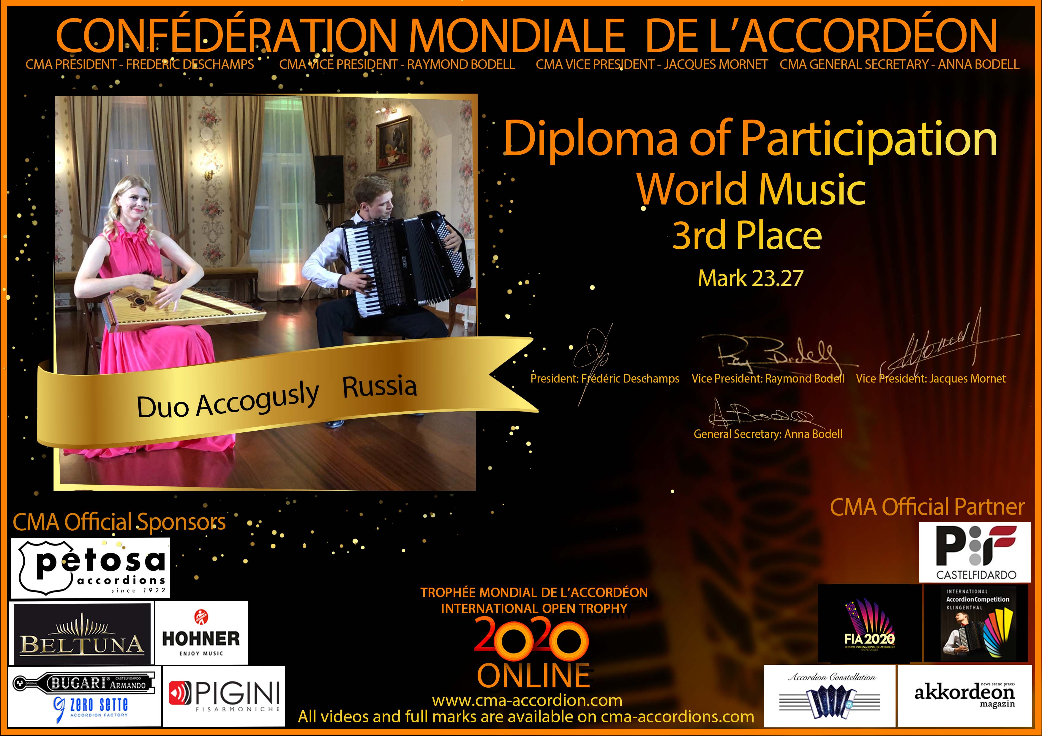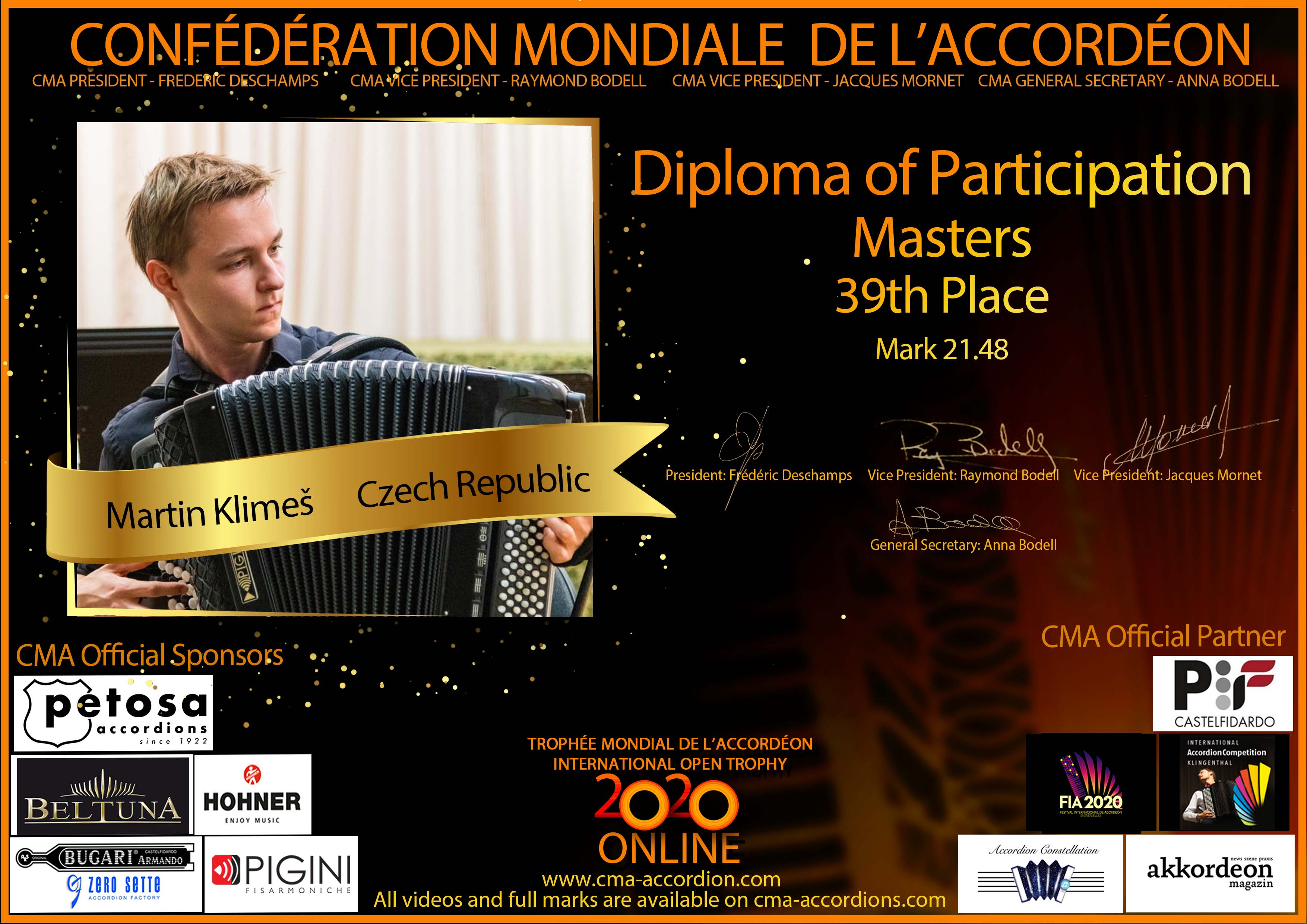 Candidates diploma of Trophee Mondial