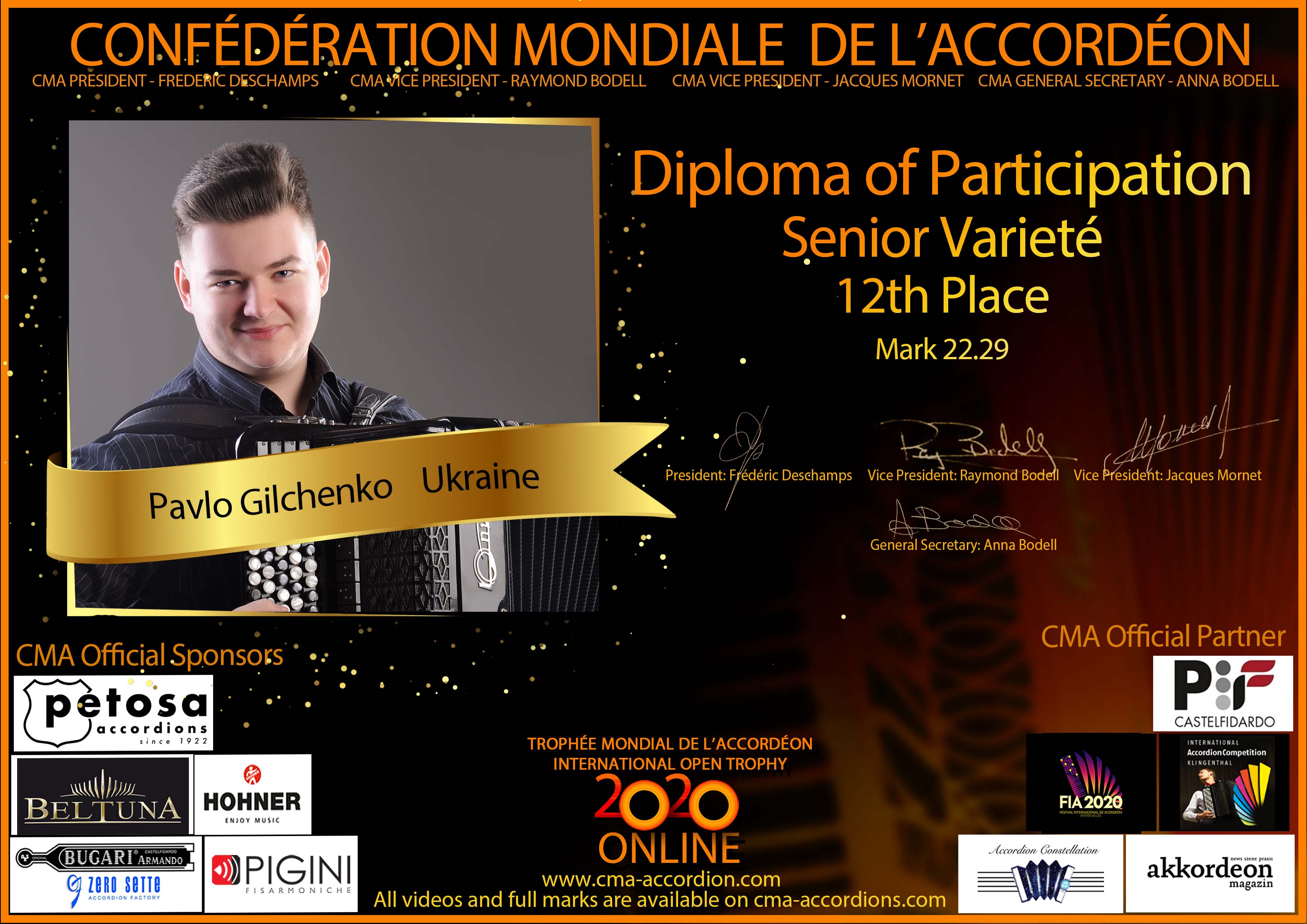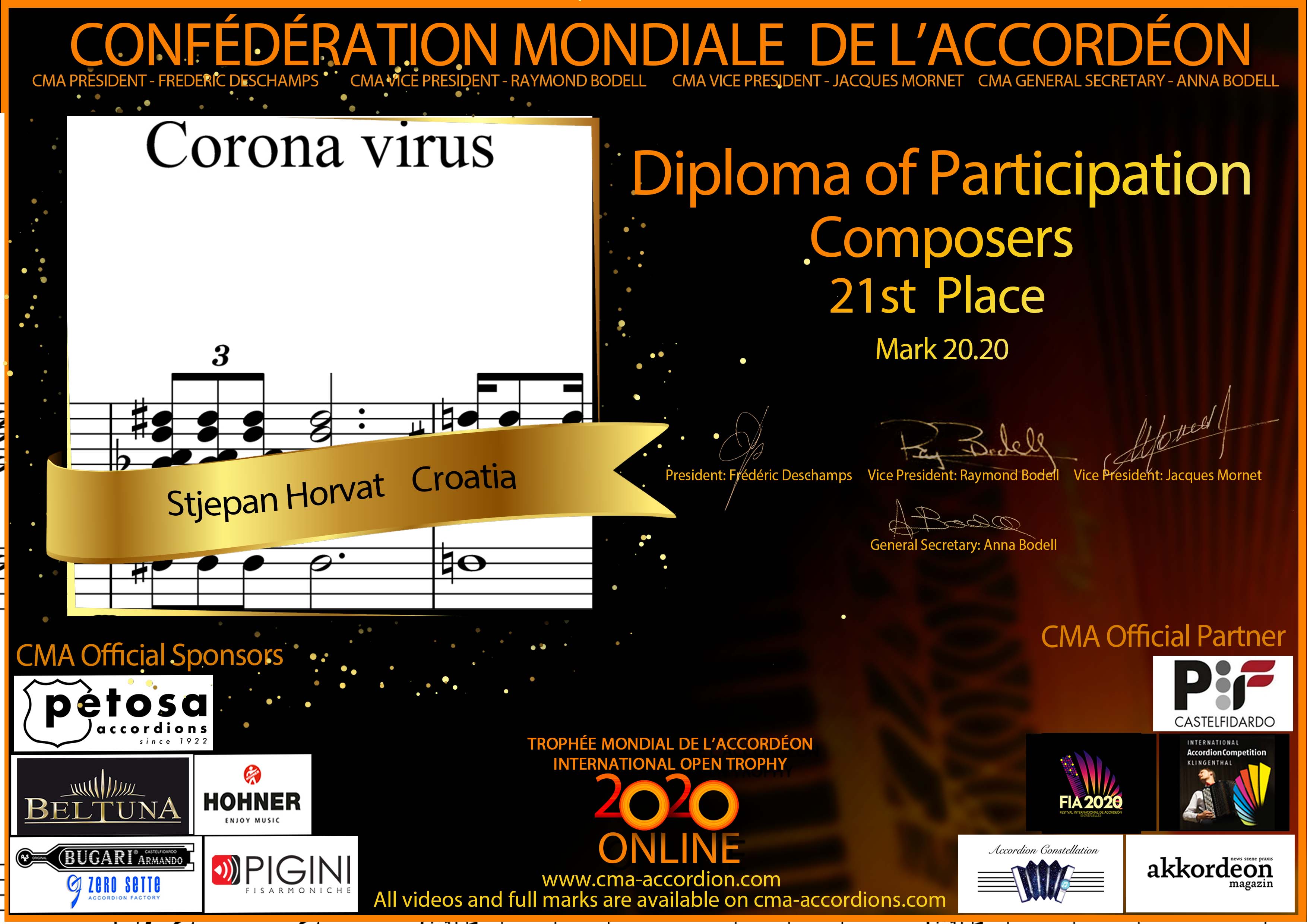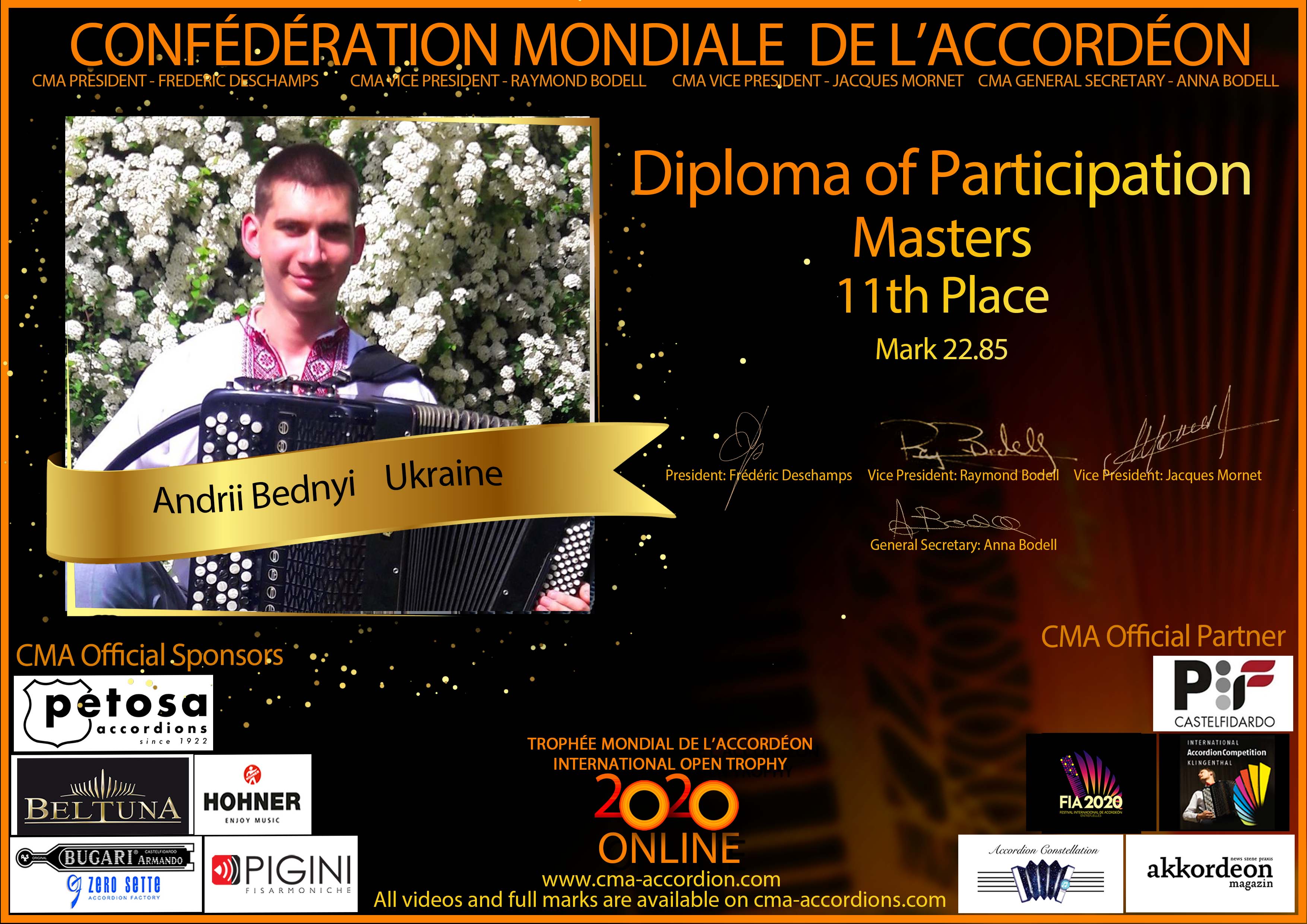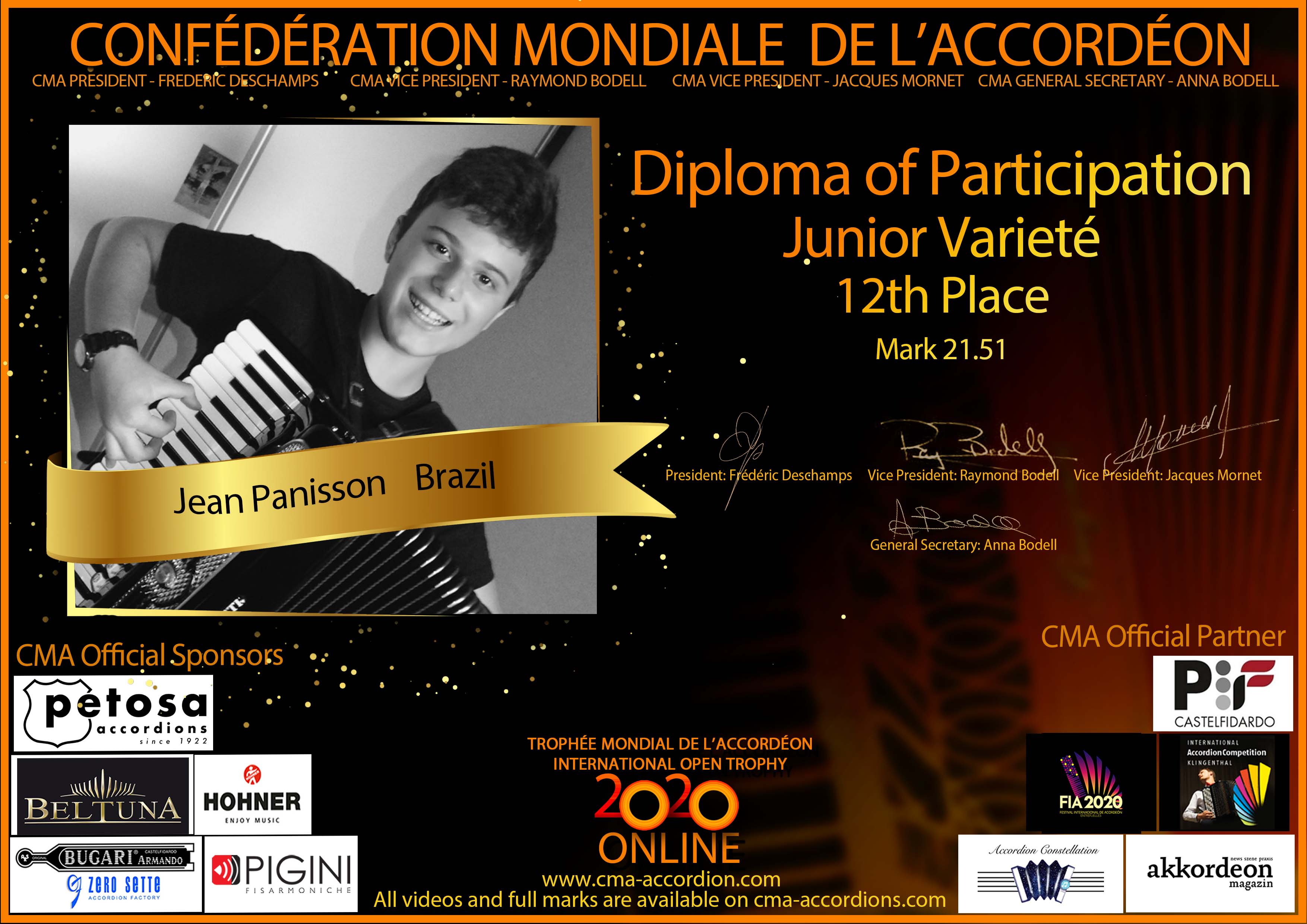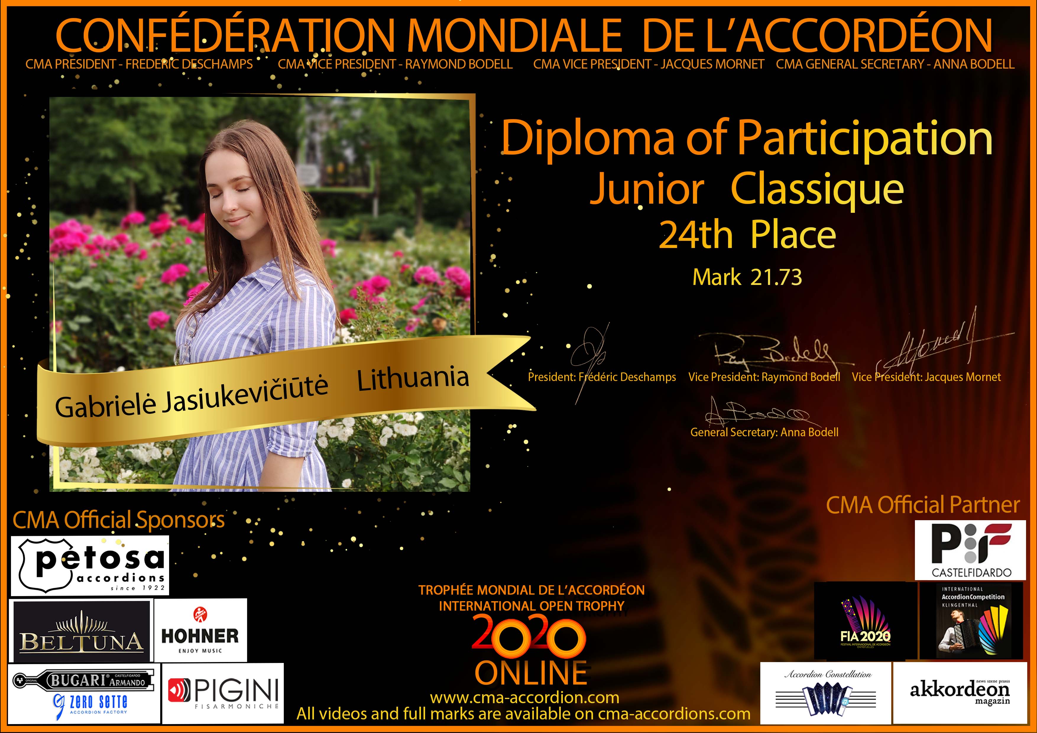 Candidates diploma of Trophee Mondial