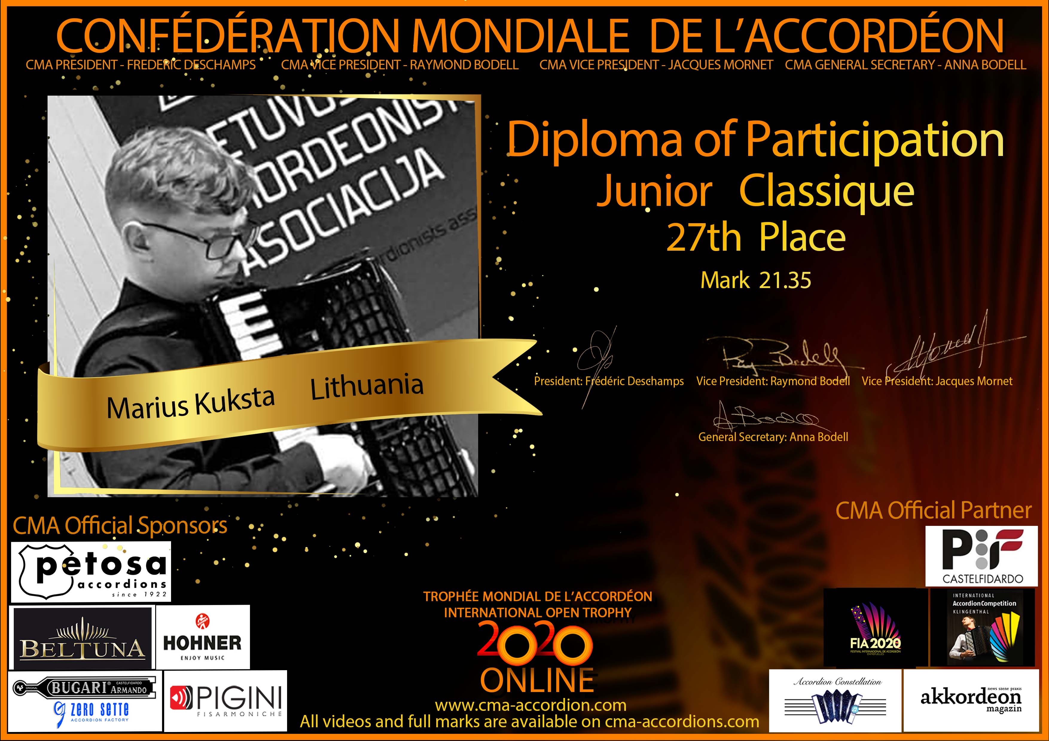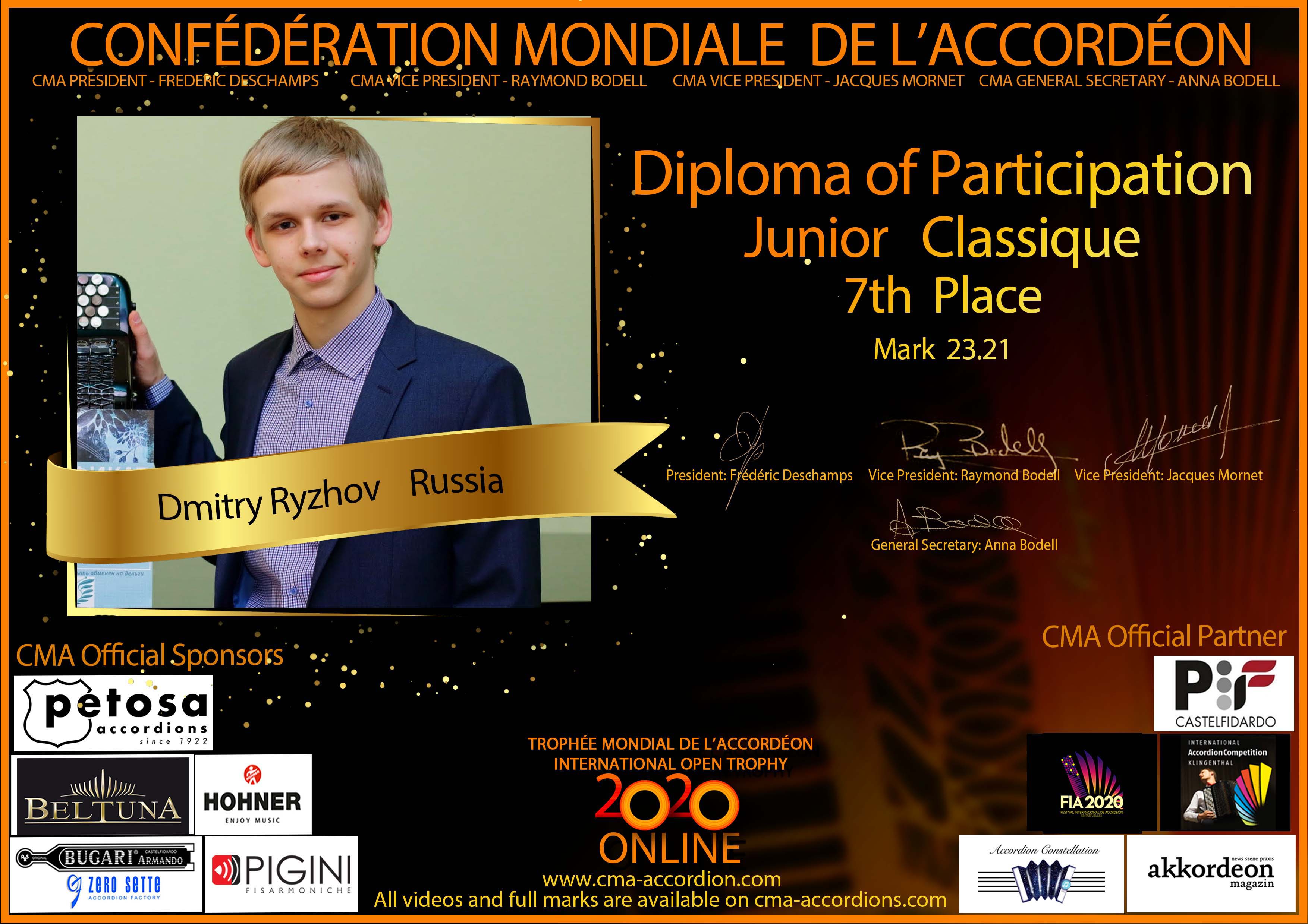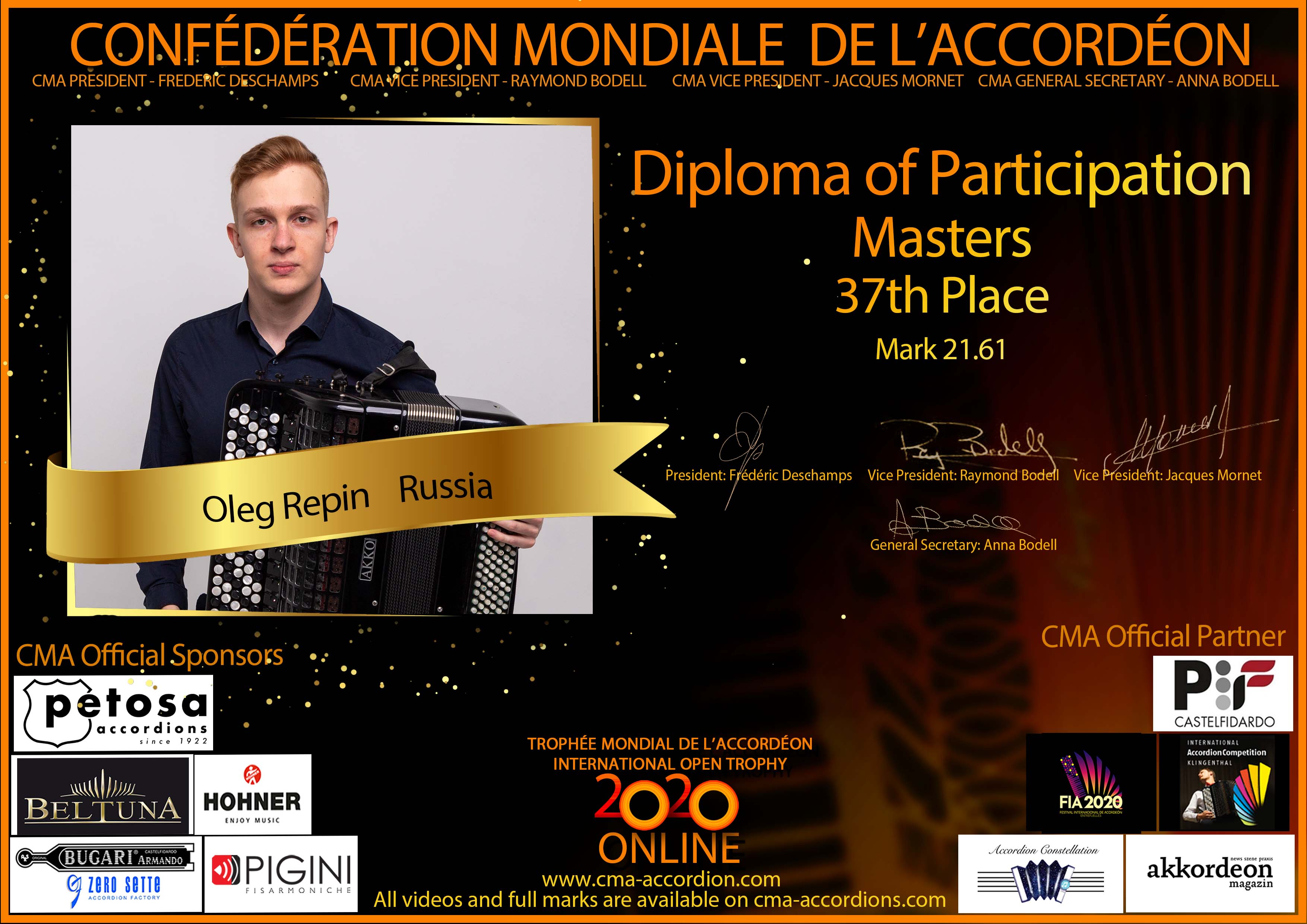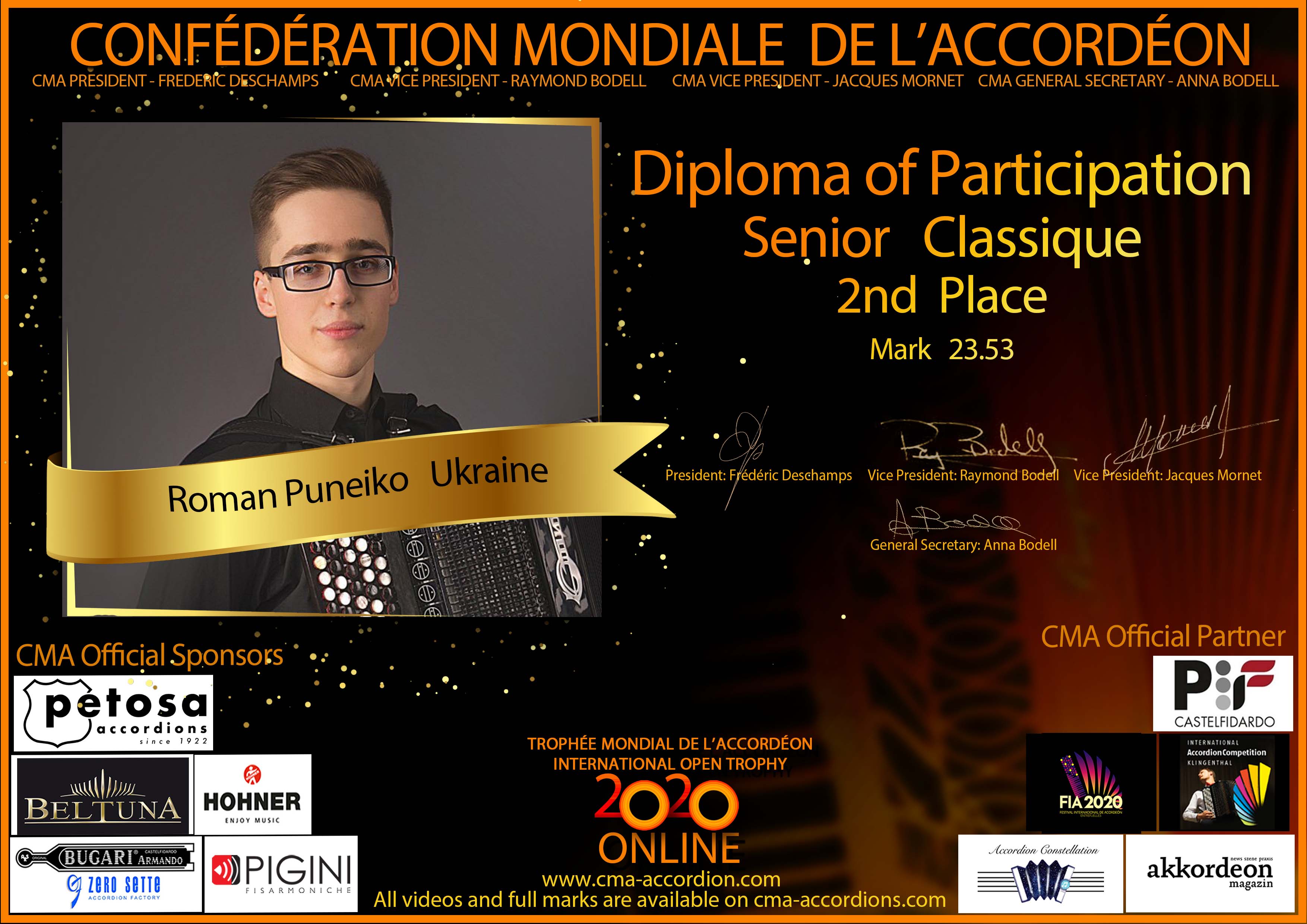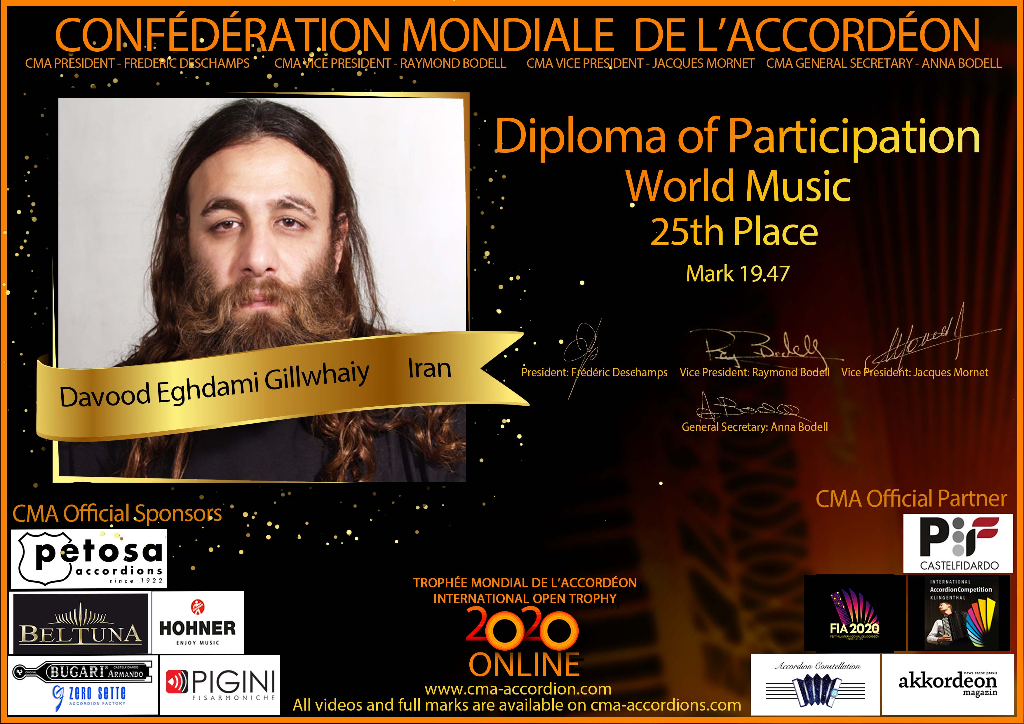 Candidates diploma of Trophee Mondial