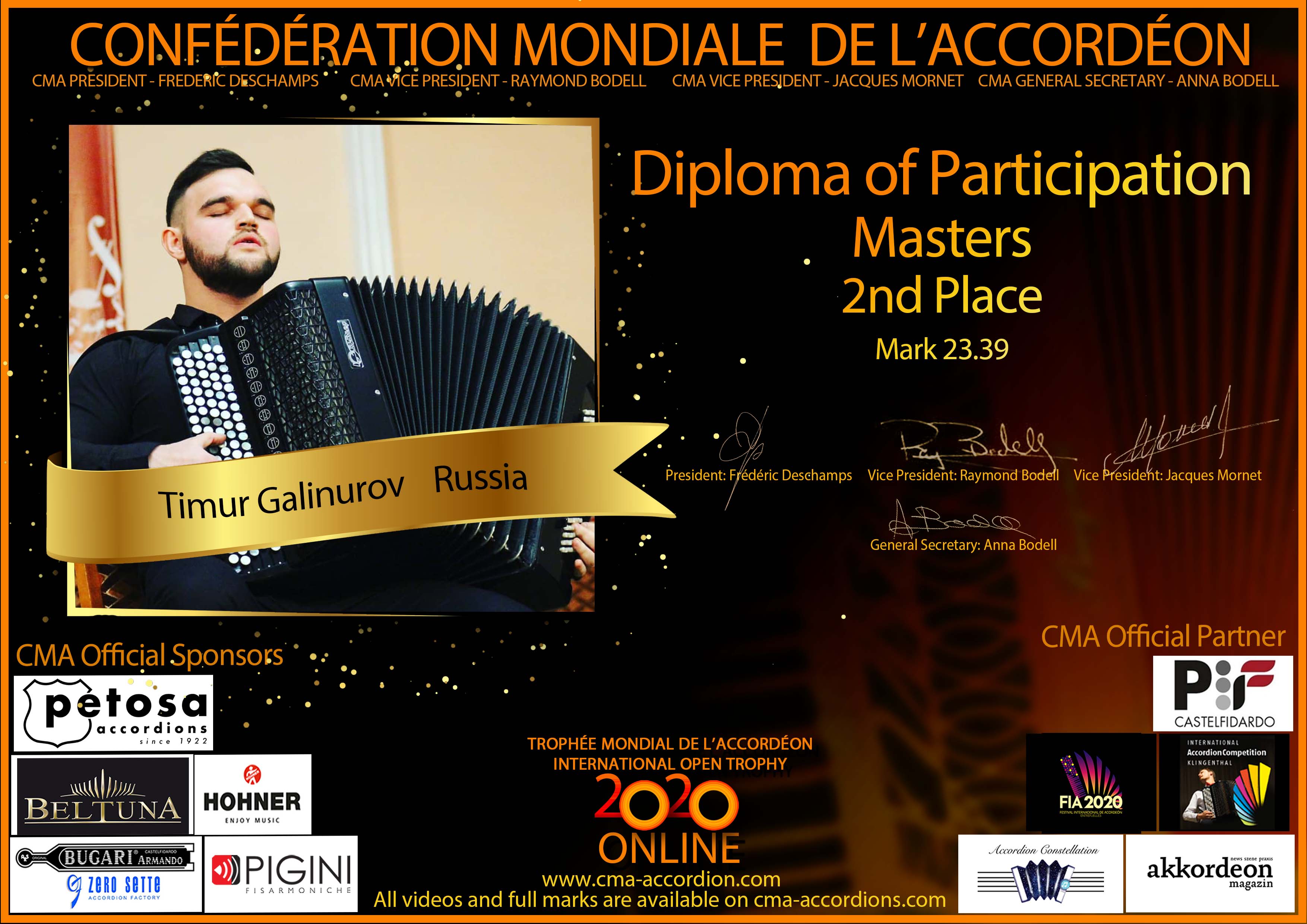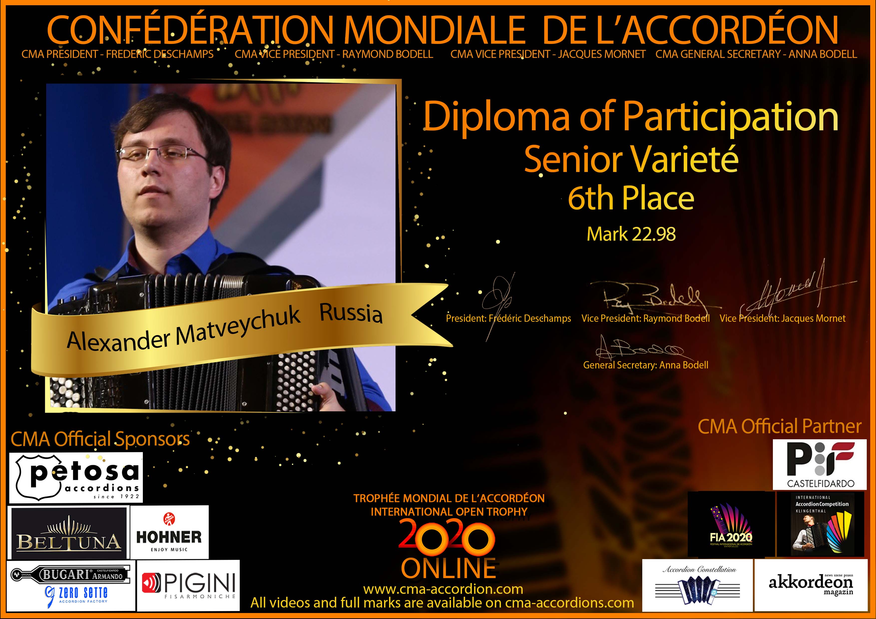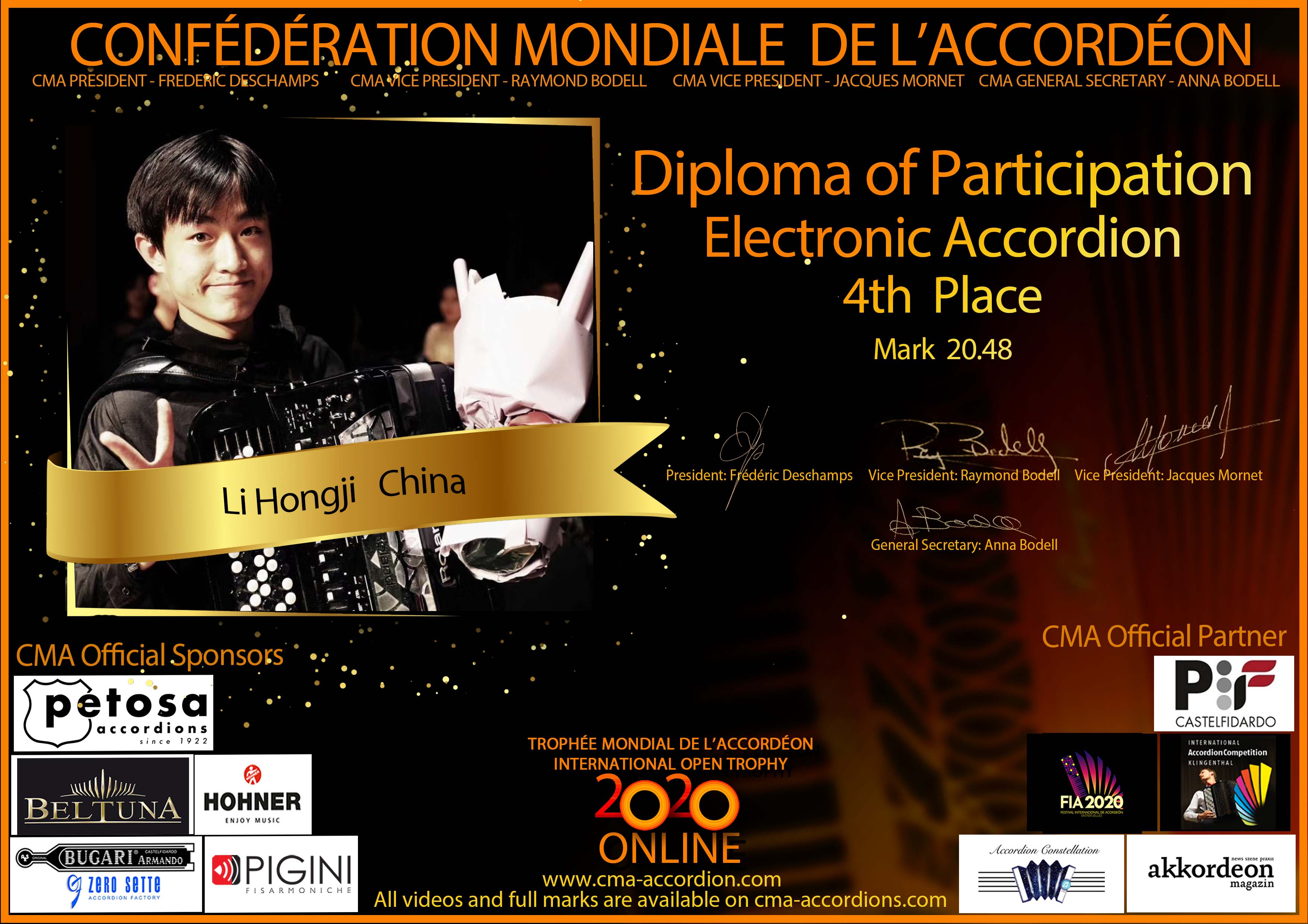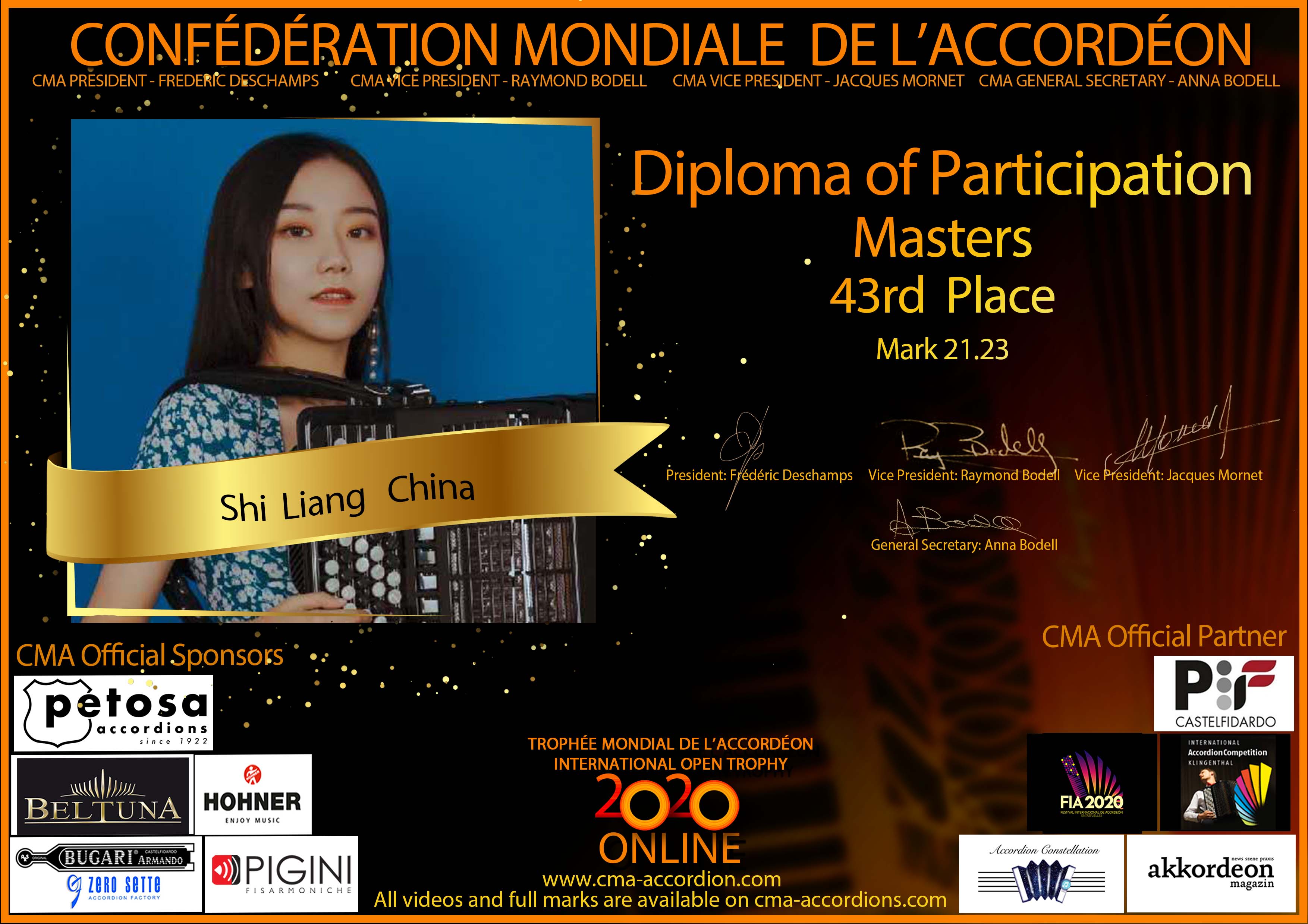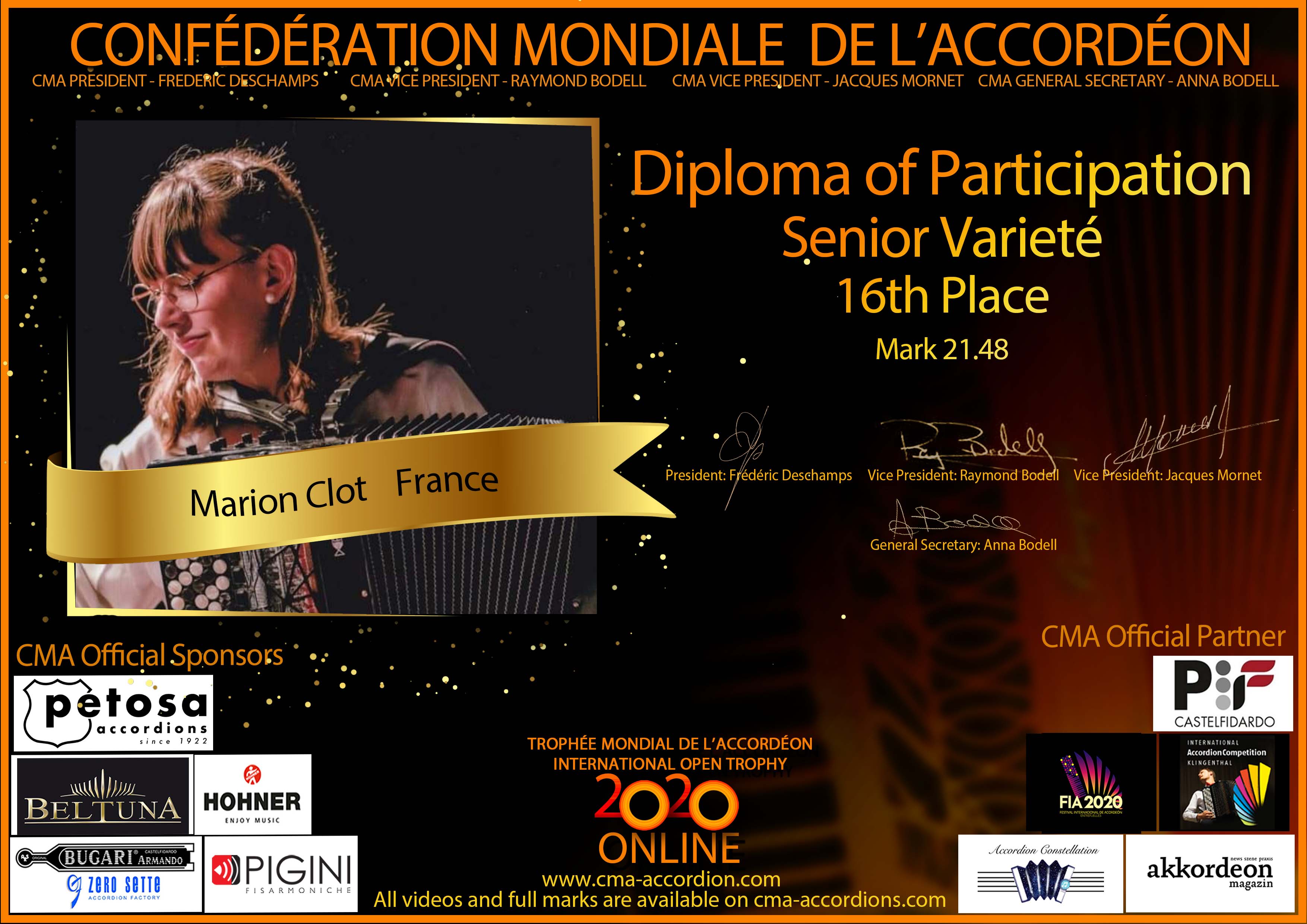 Candidates diploma of Trophee Mondial