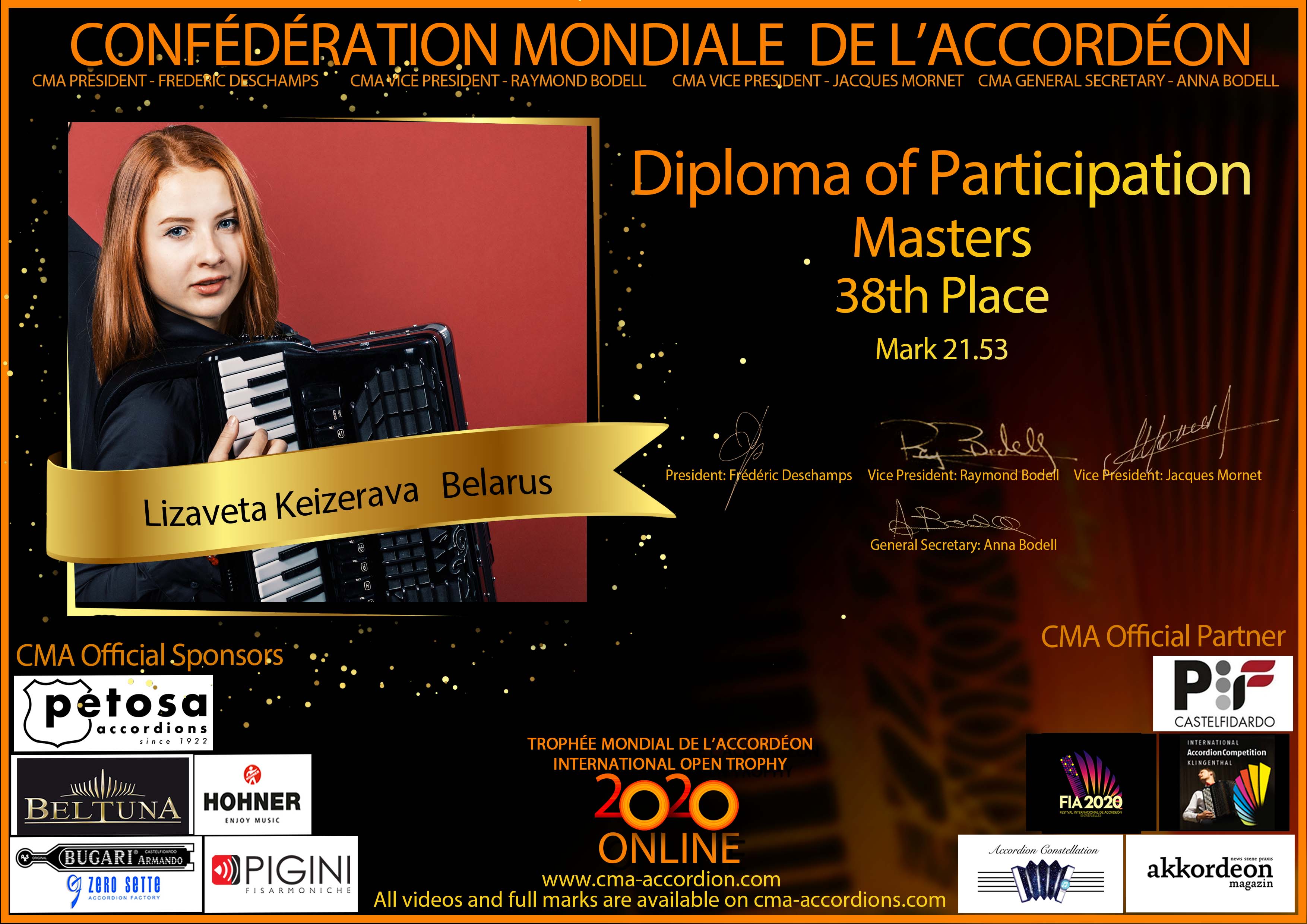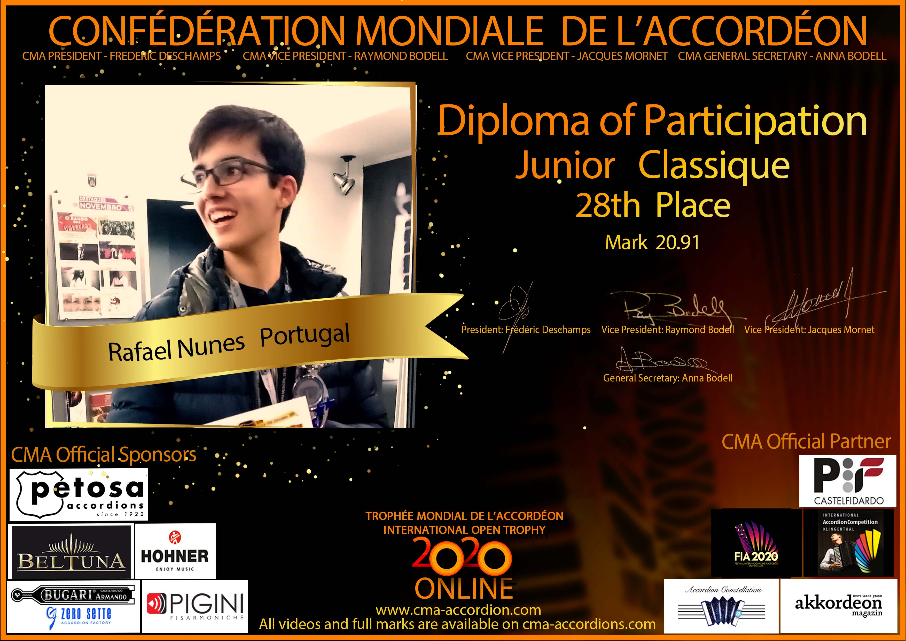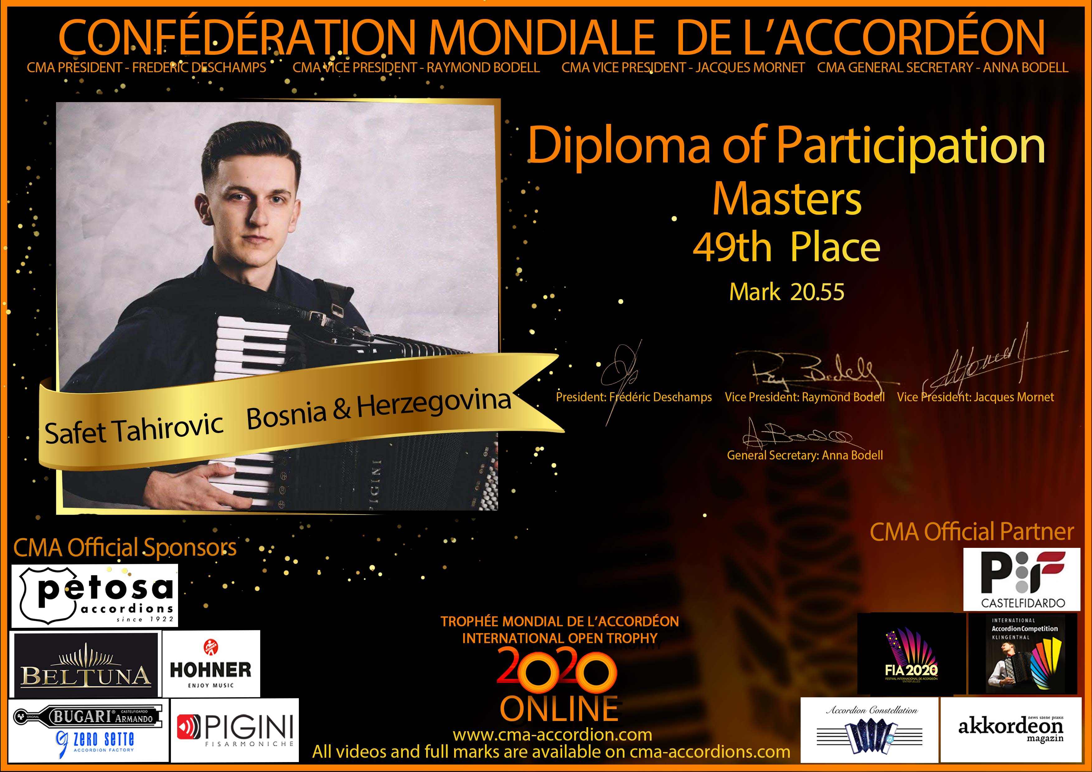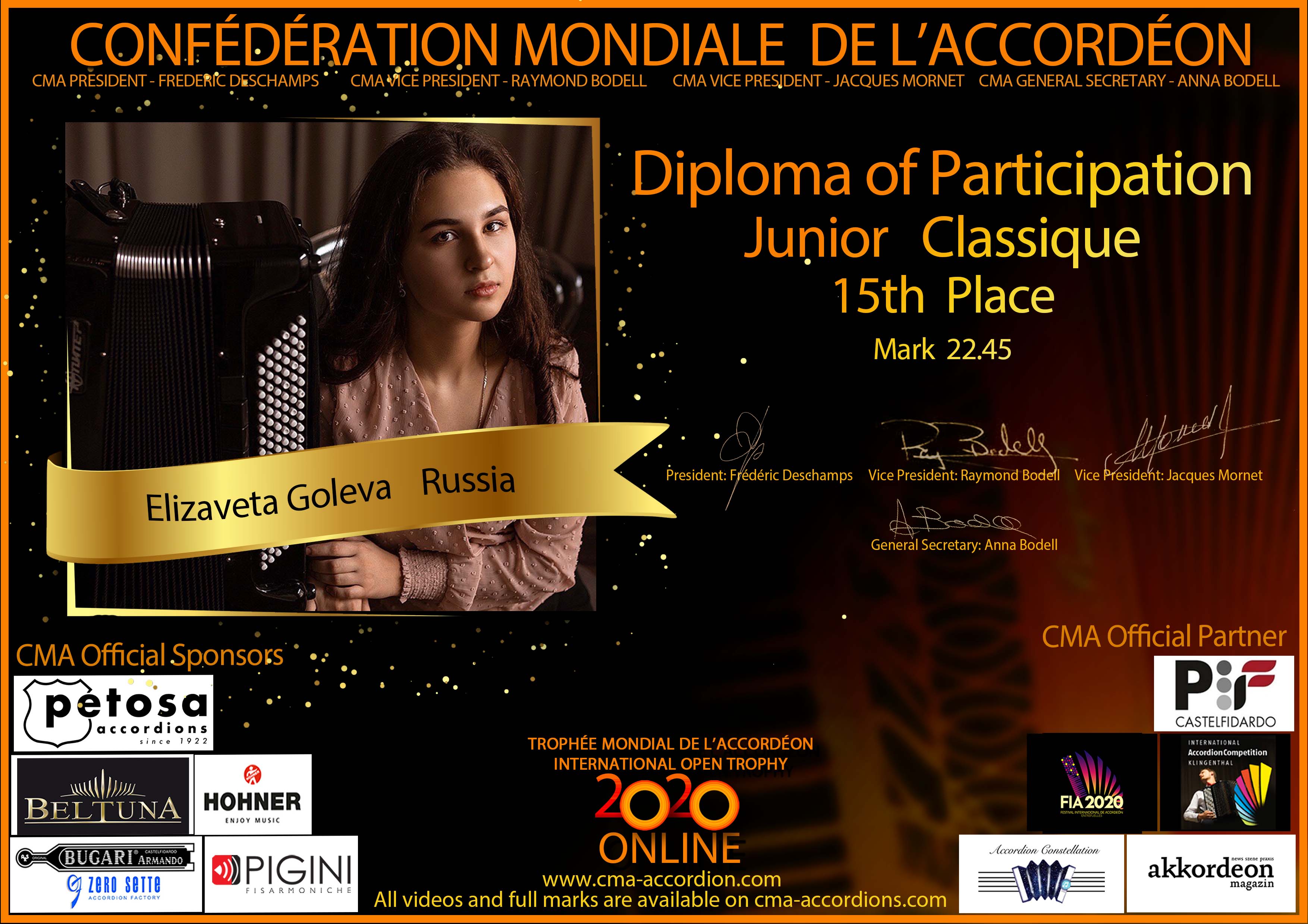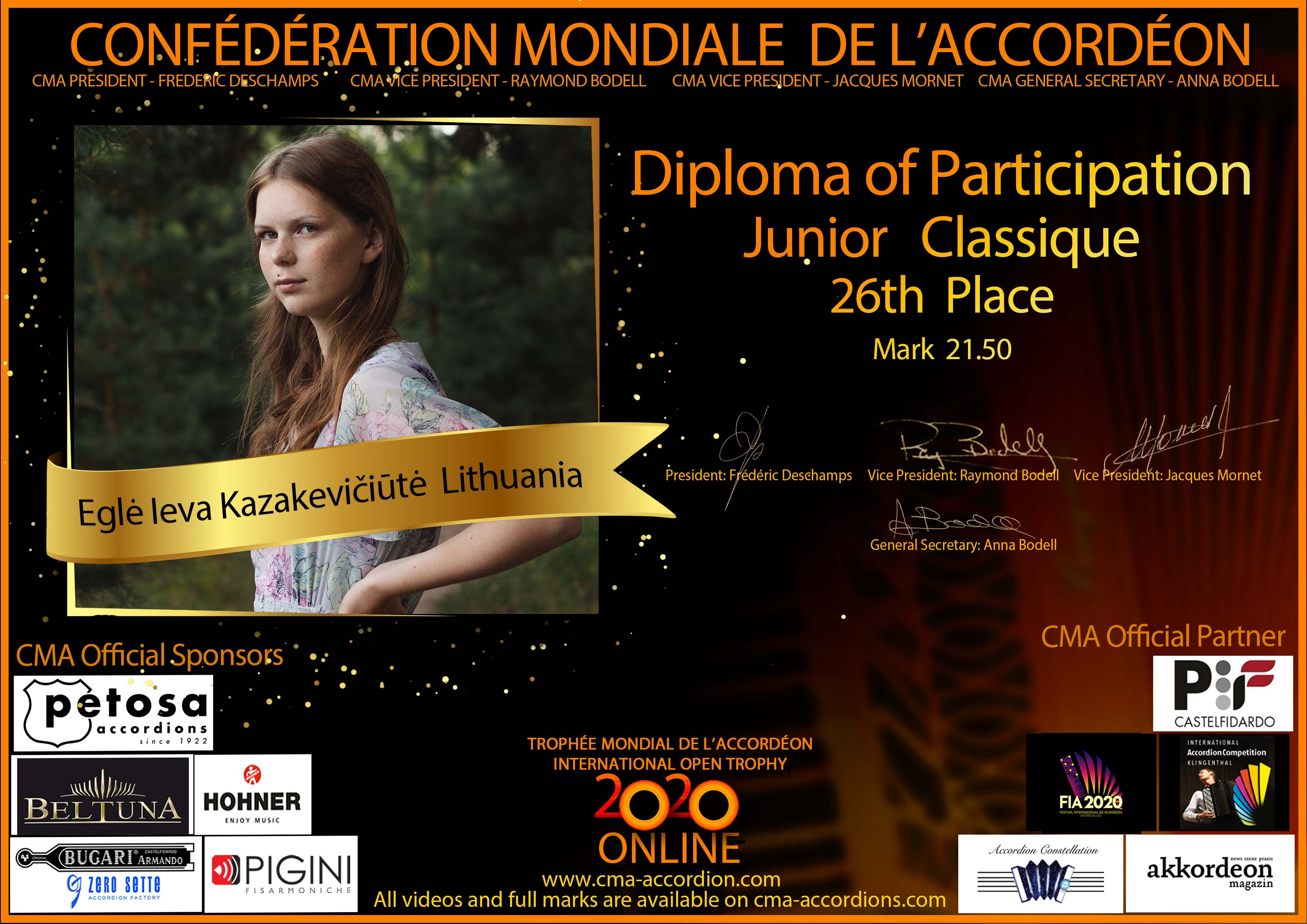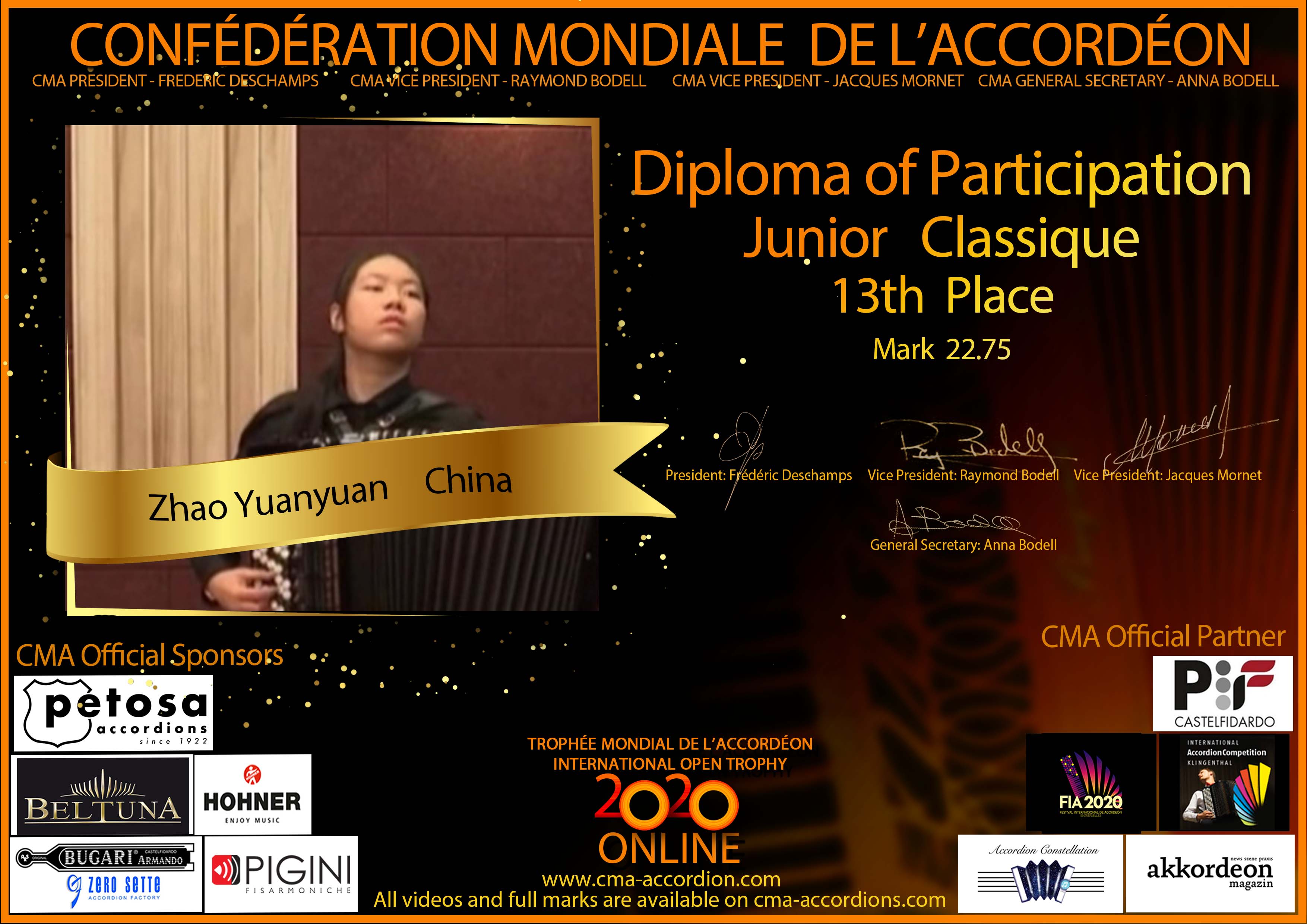 Candidates diploma of Trophee Mondial