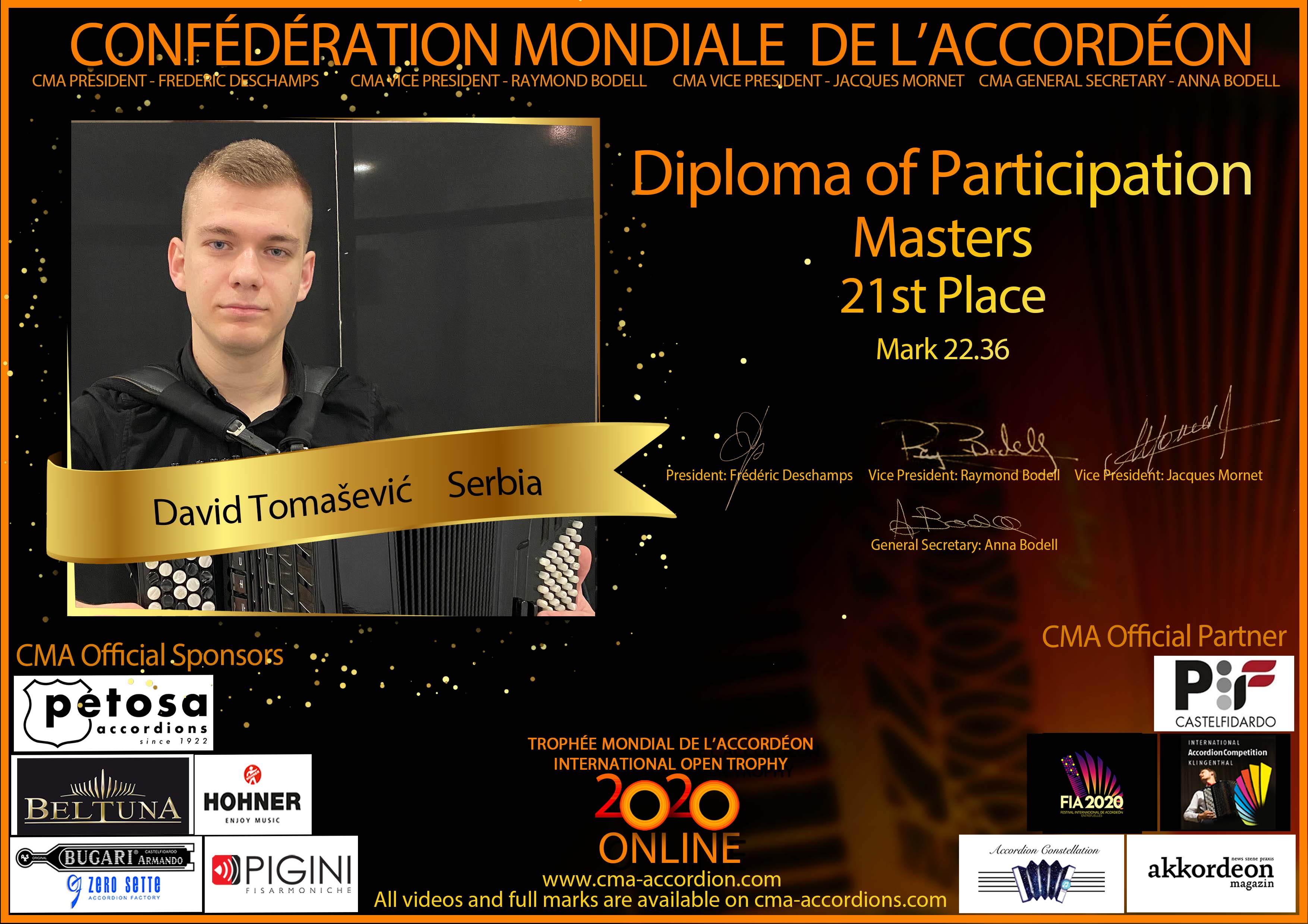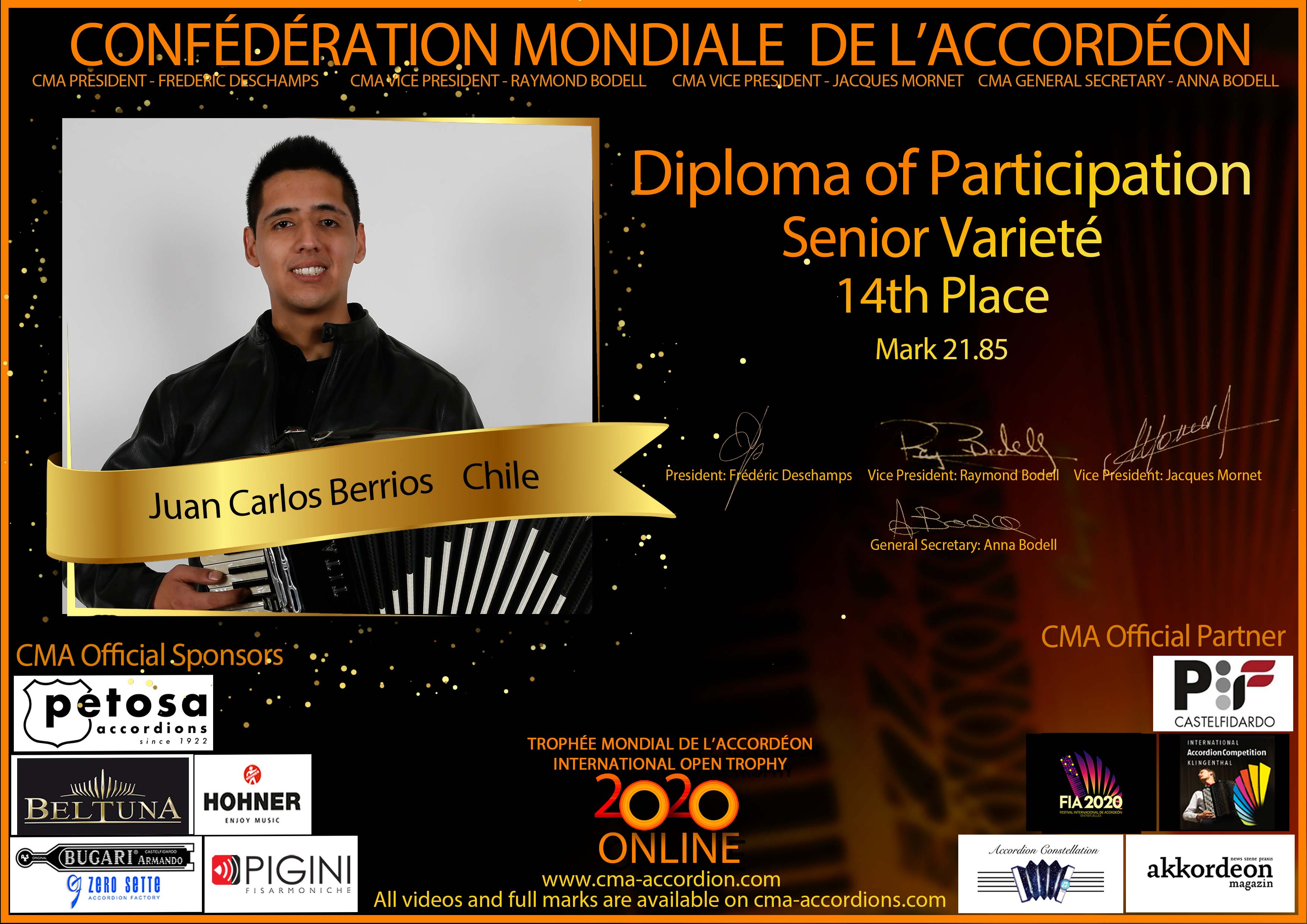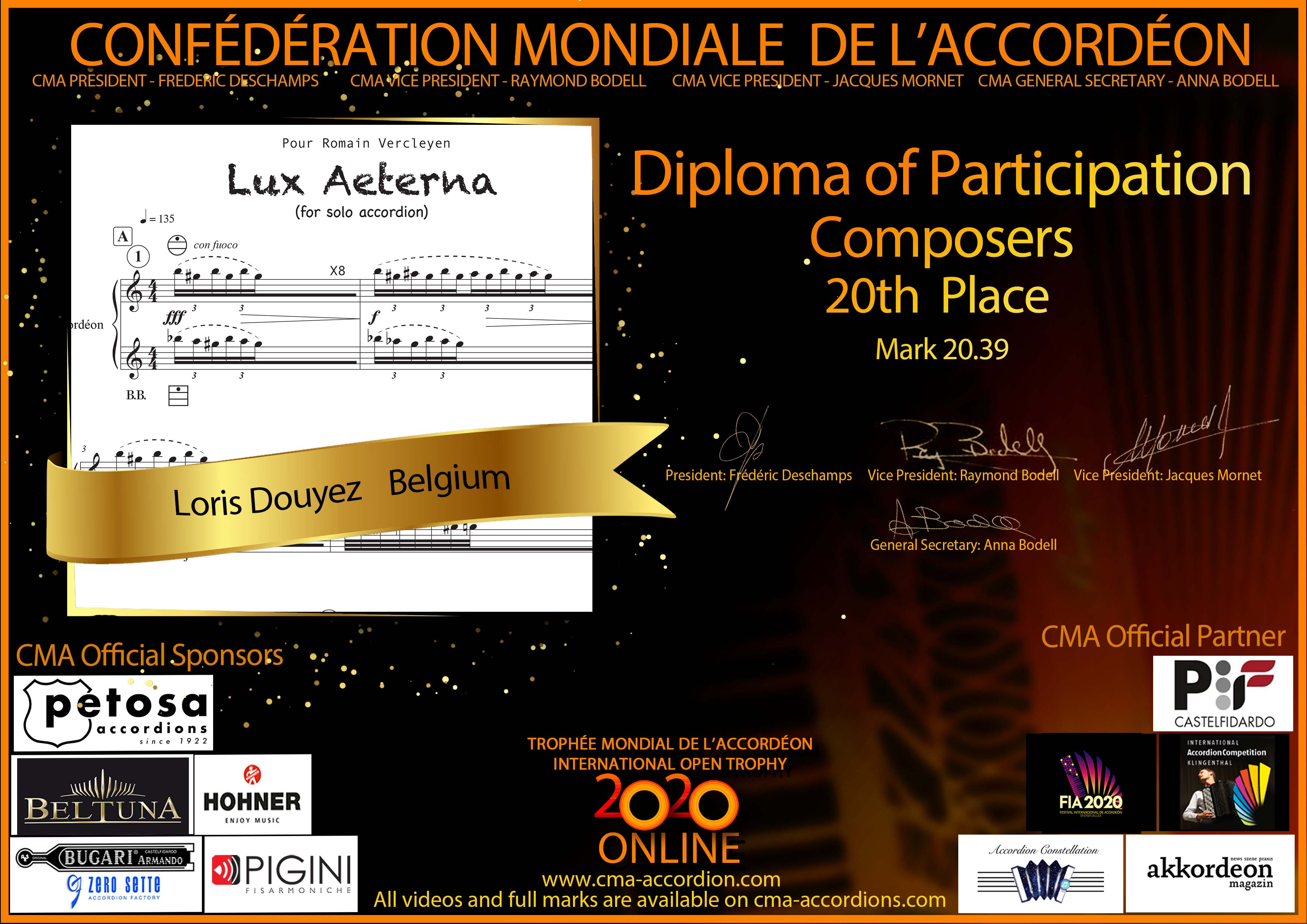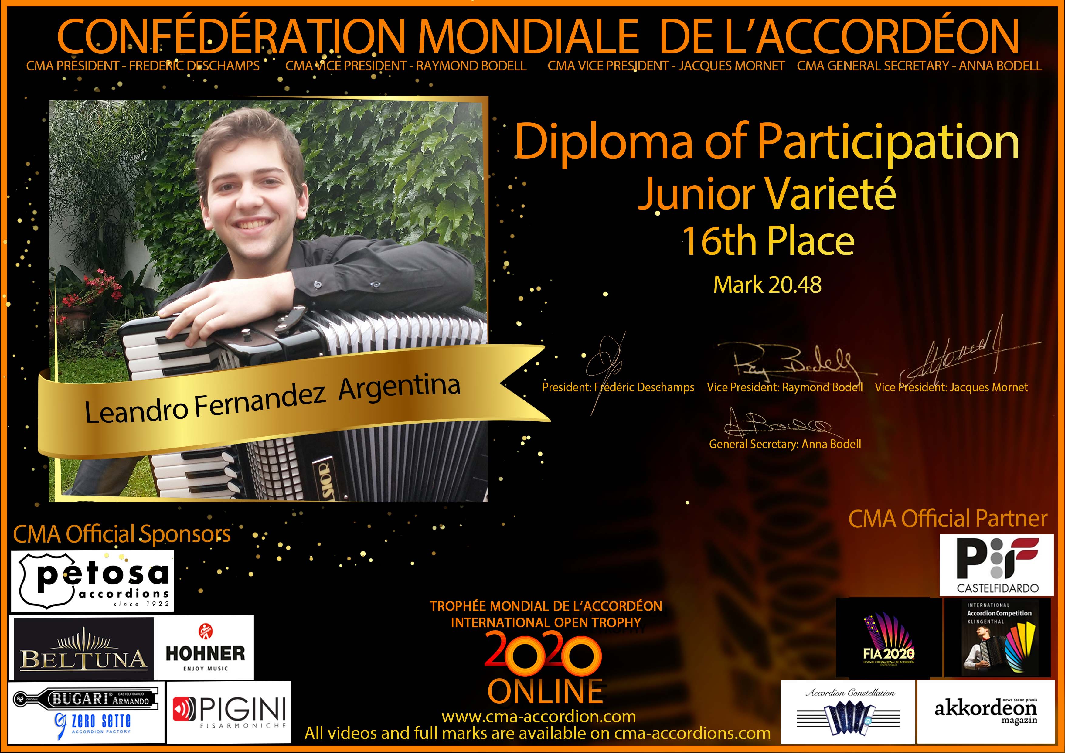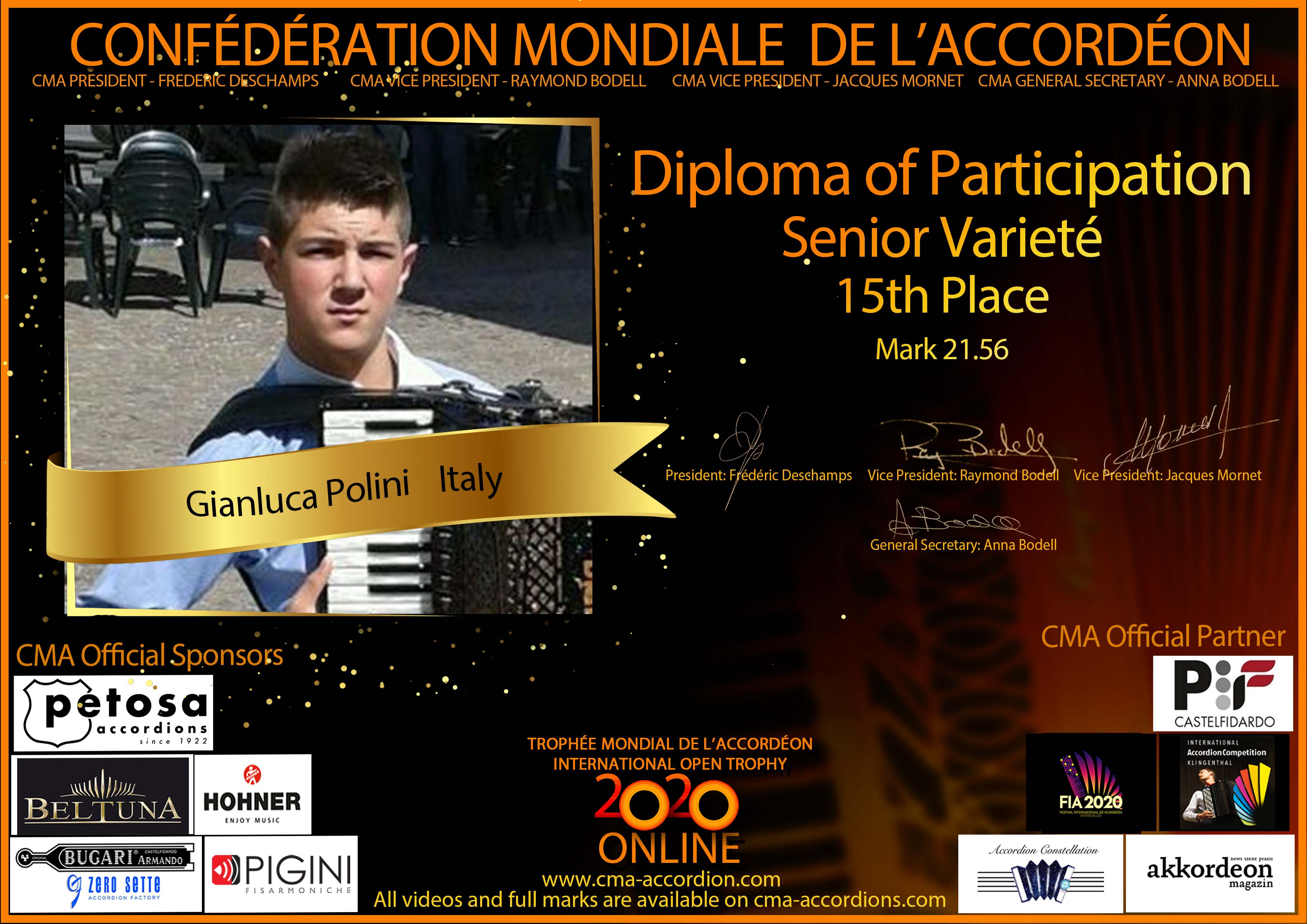 Candidates diploma of Trophee Mondial