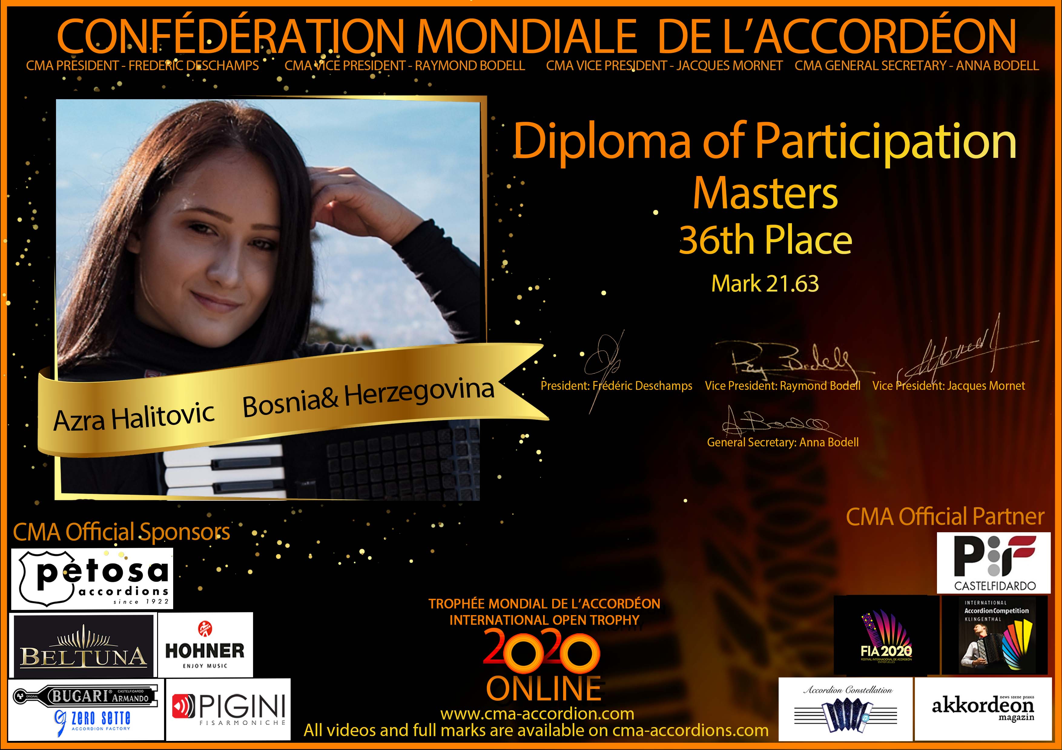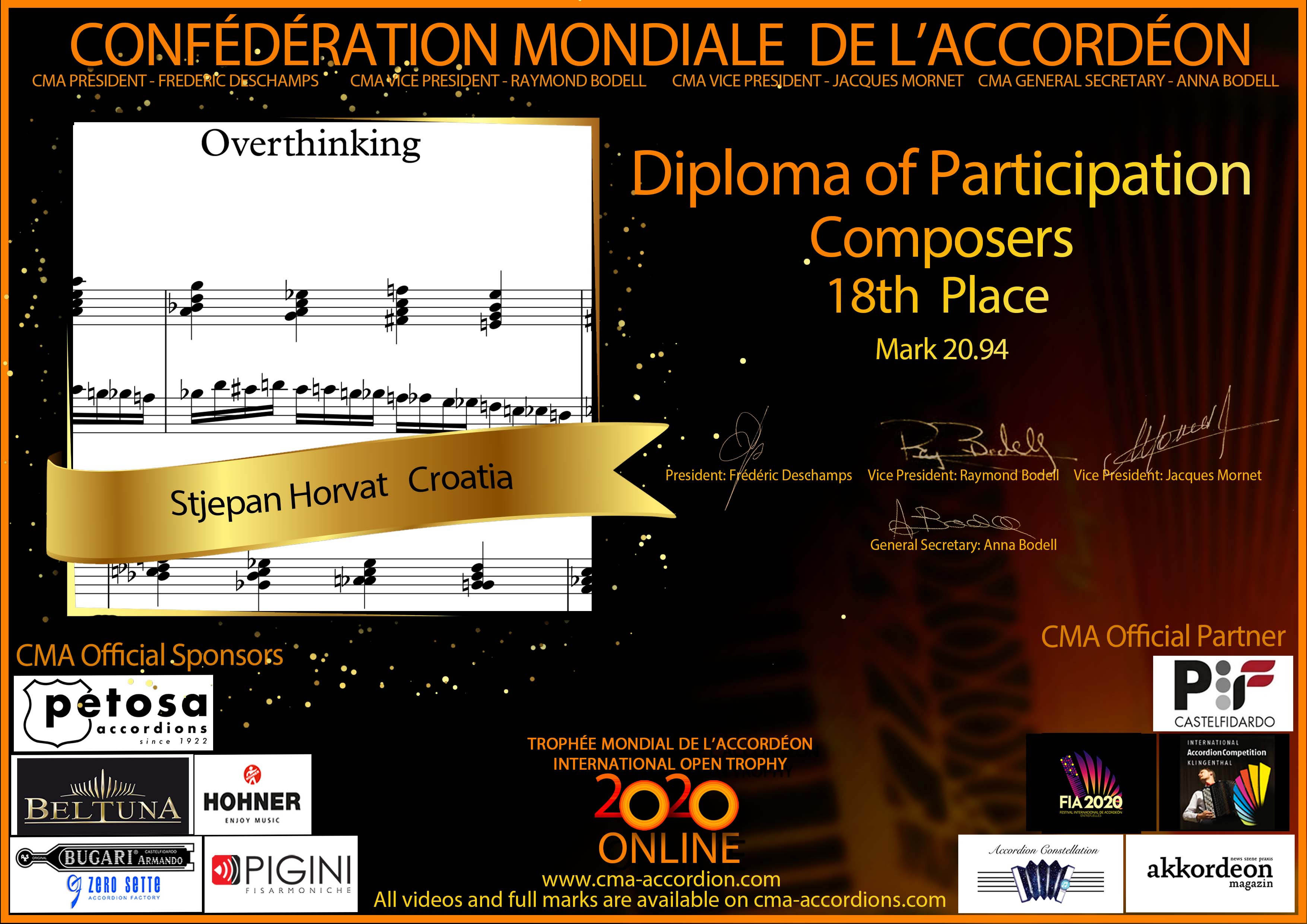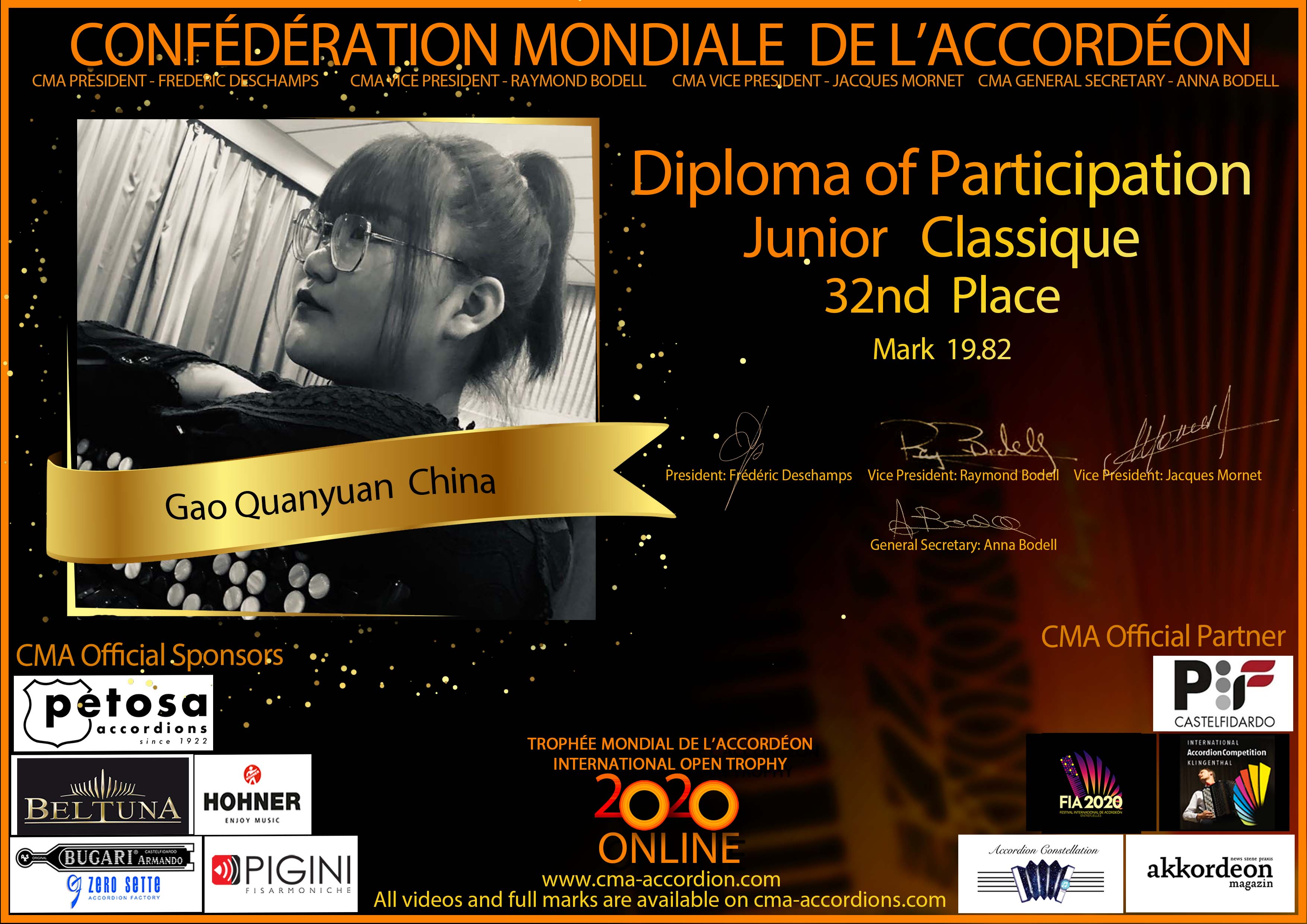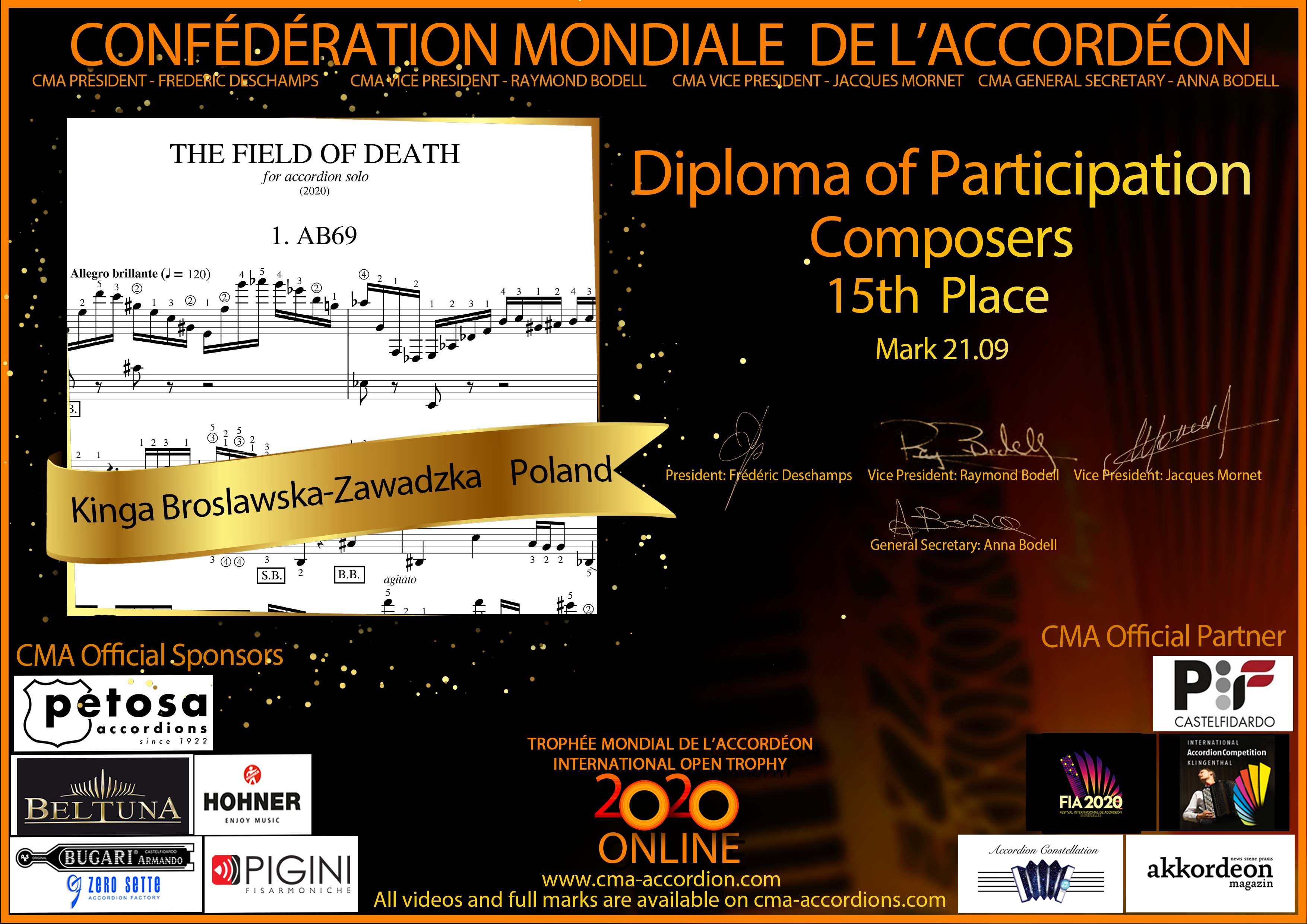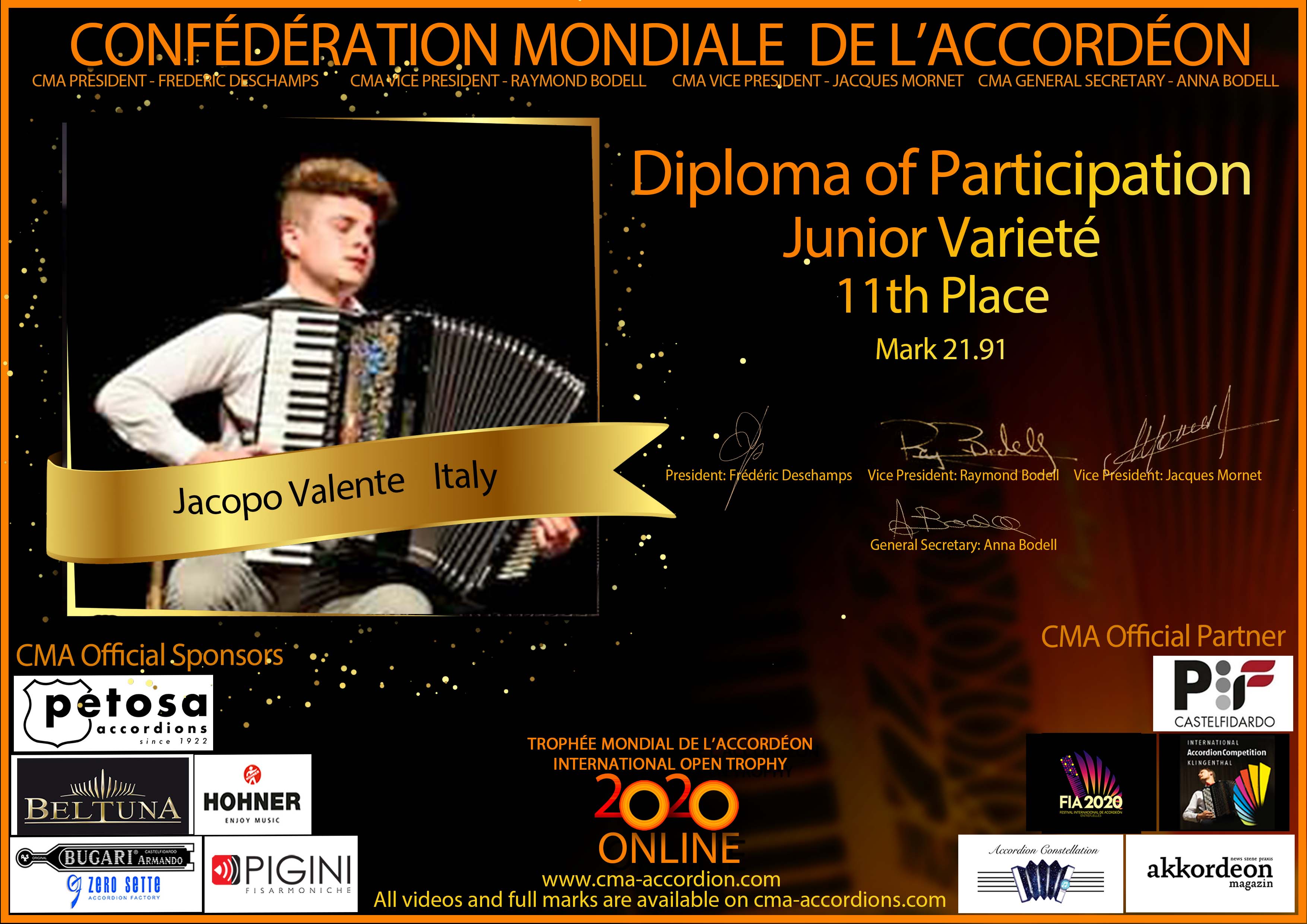 Candidates diploma of Trophee Mondial