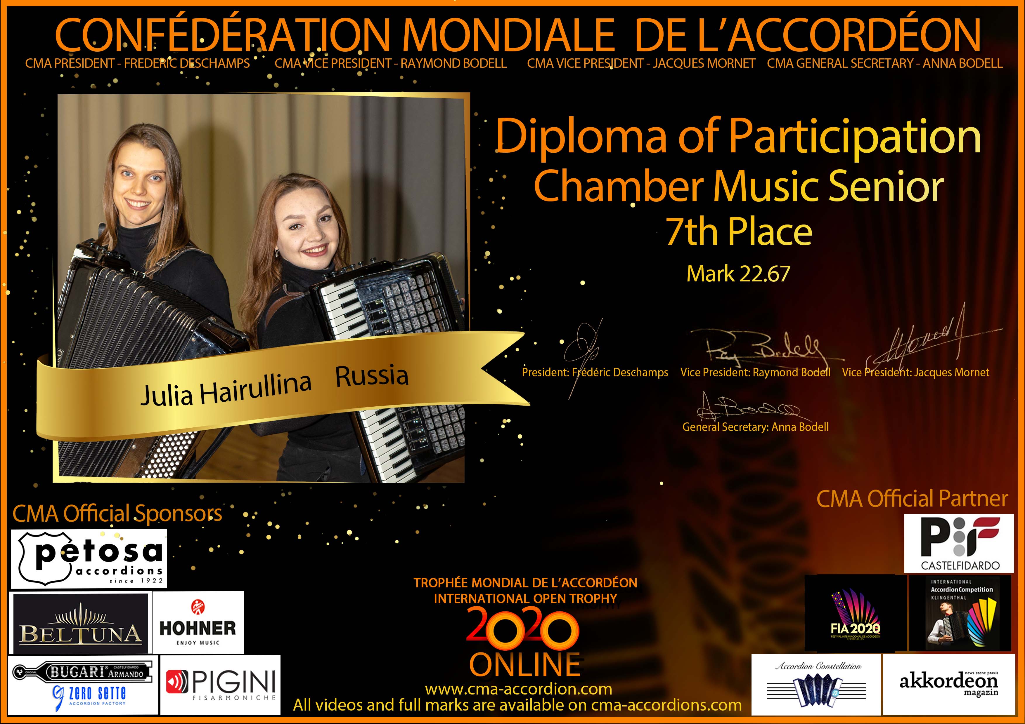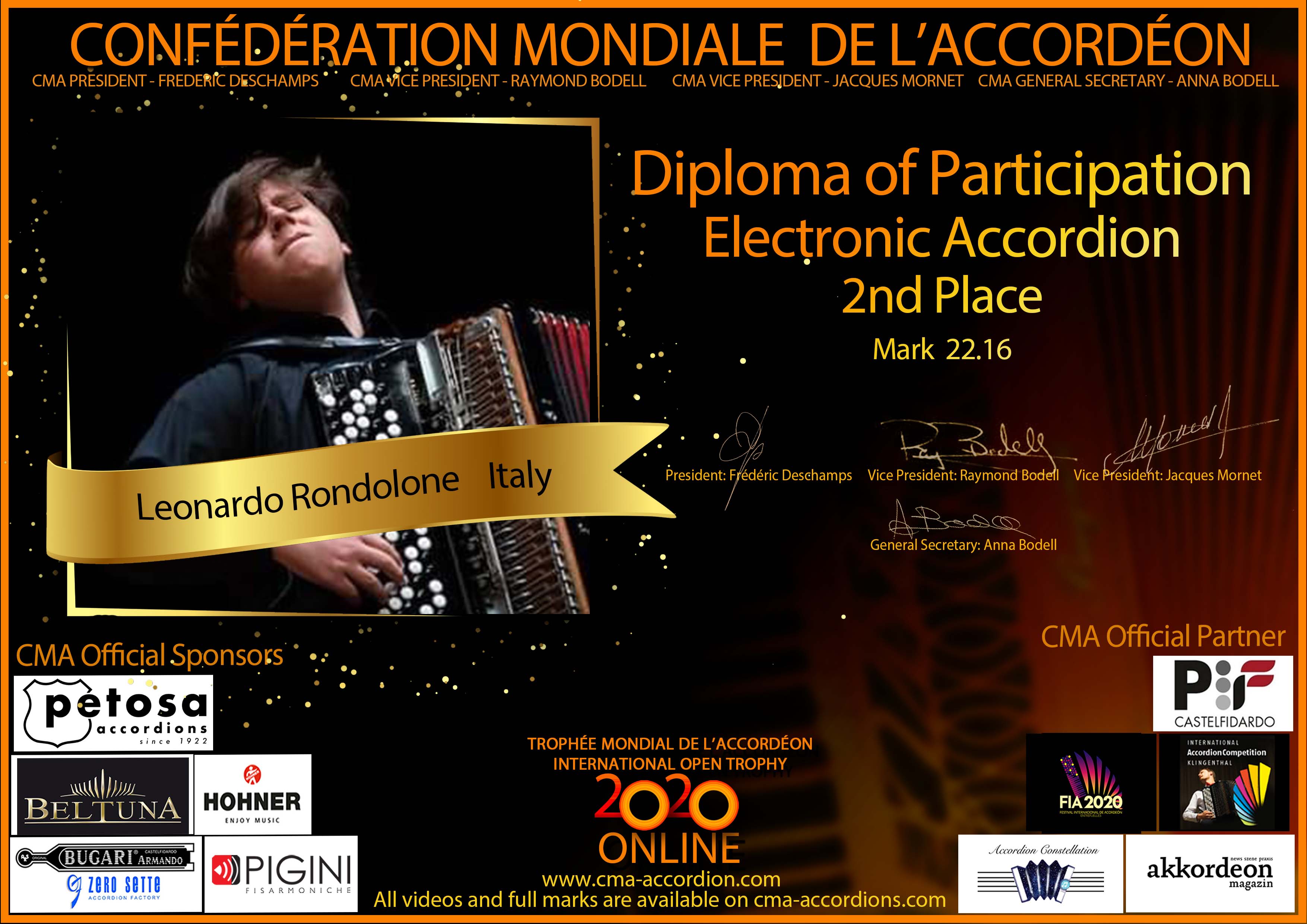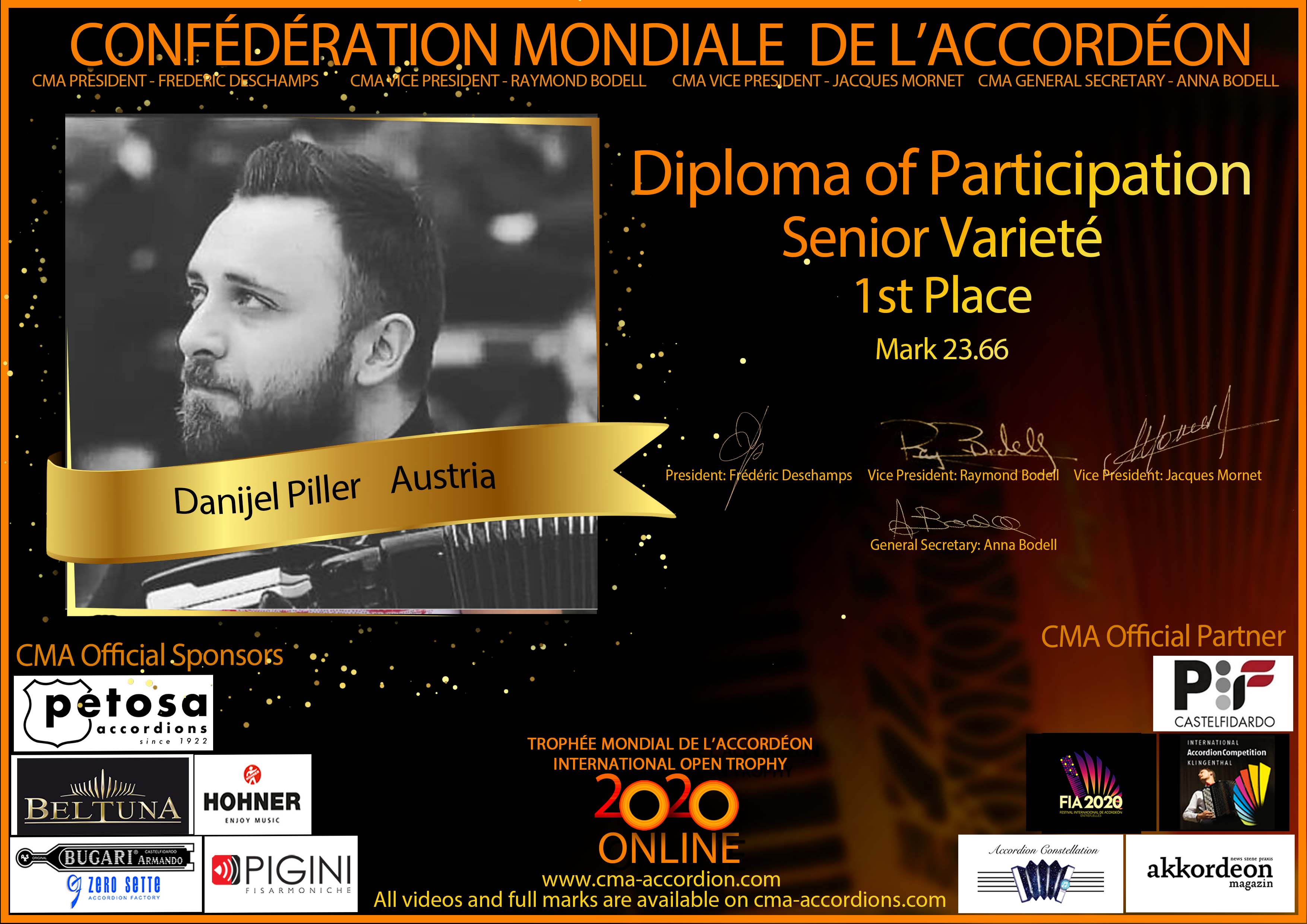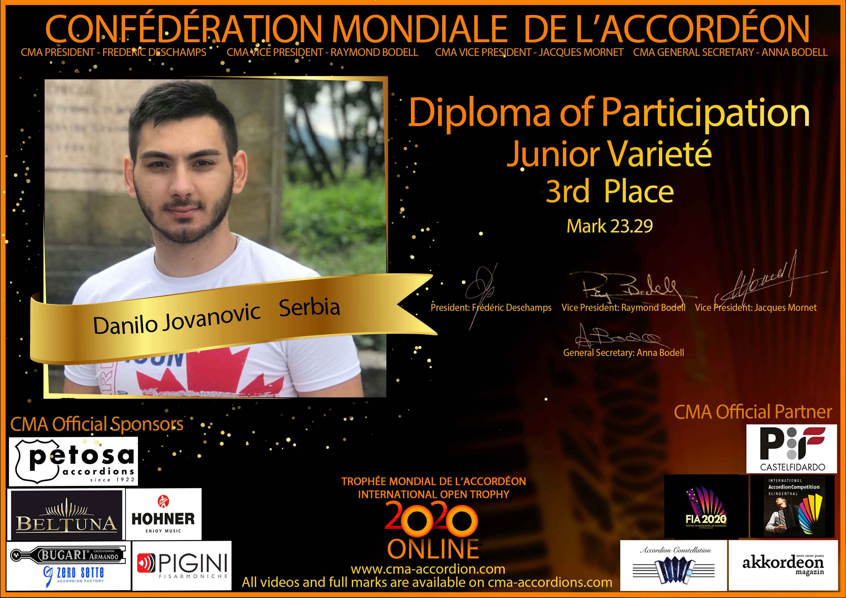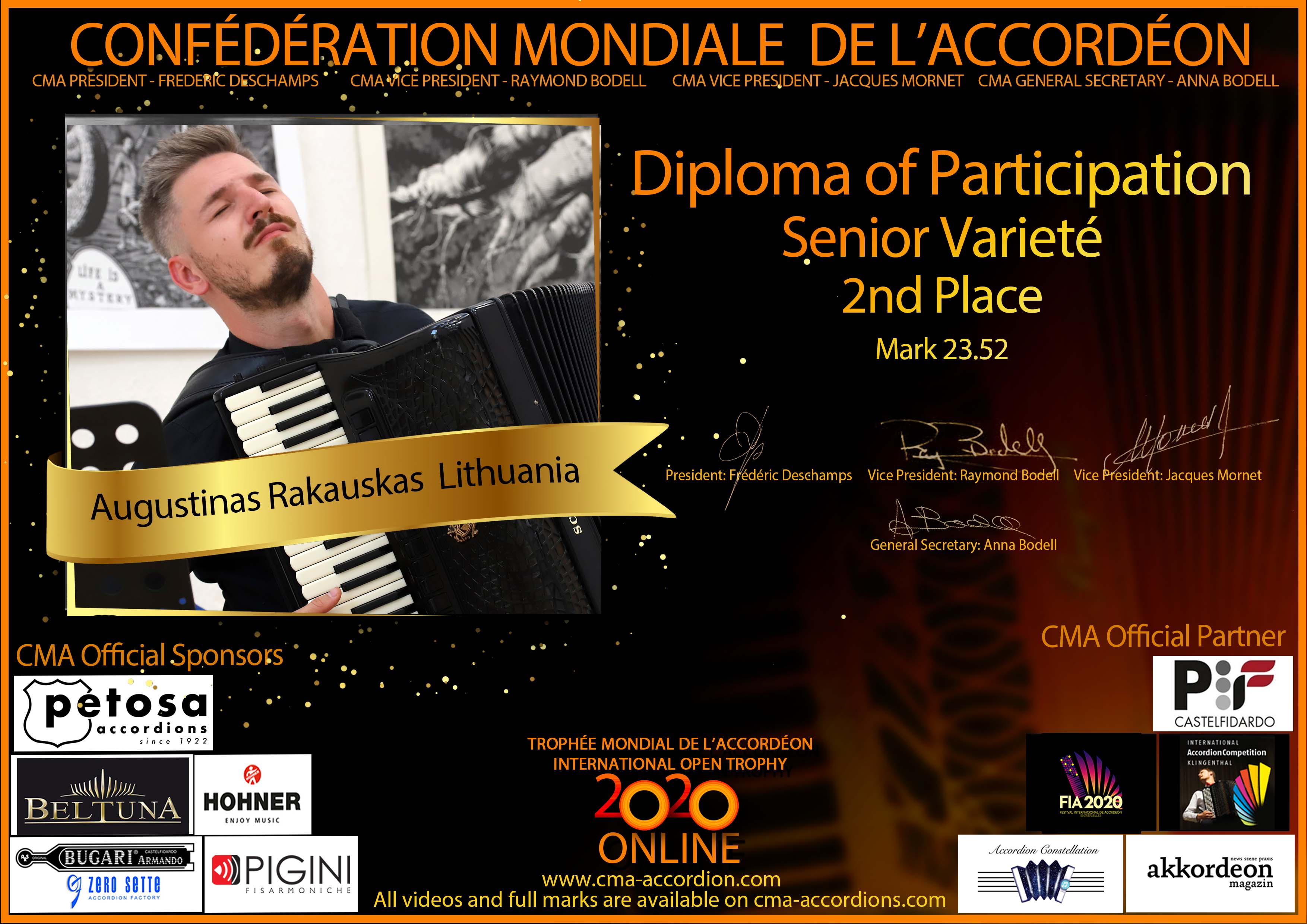Candidates diploma of Trophee Mondial