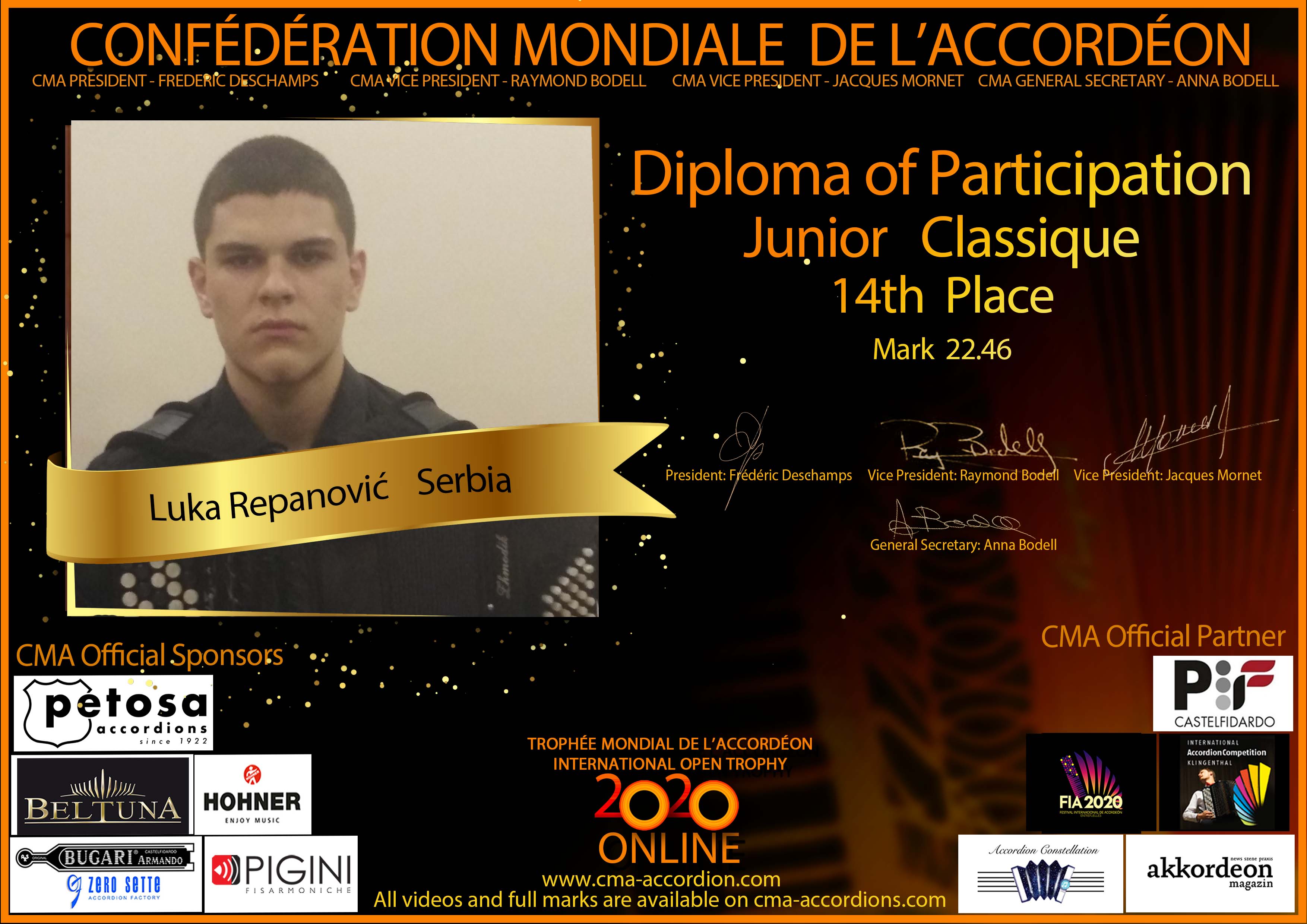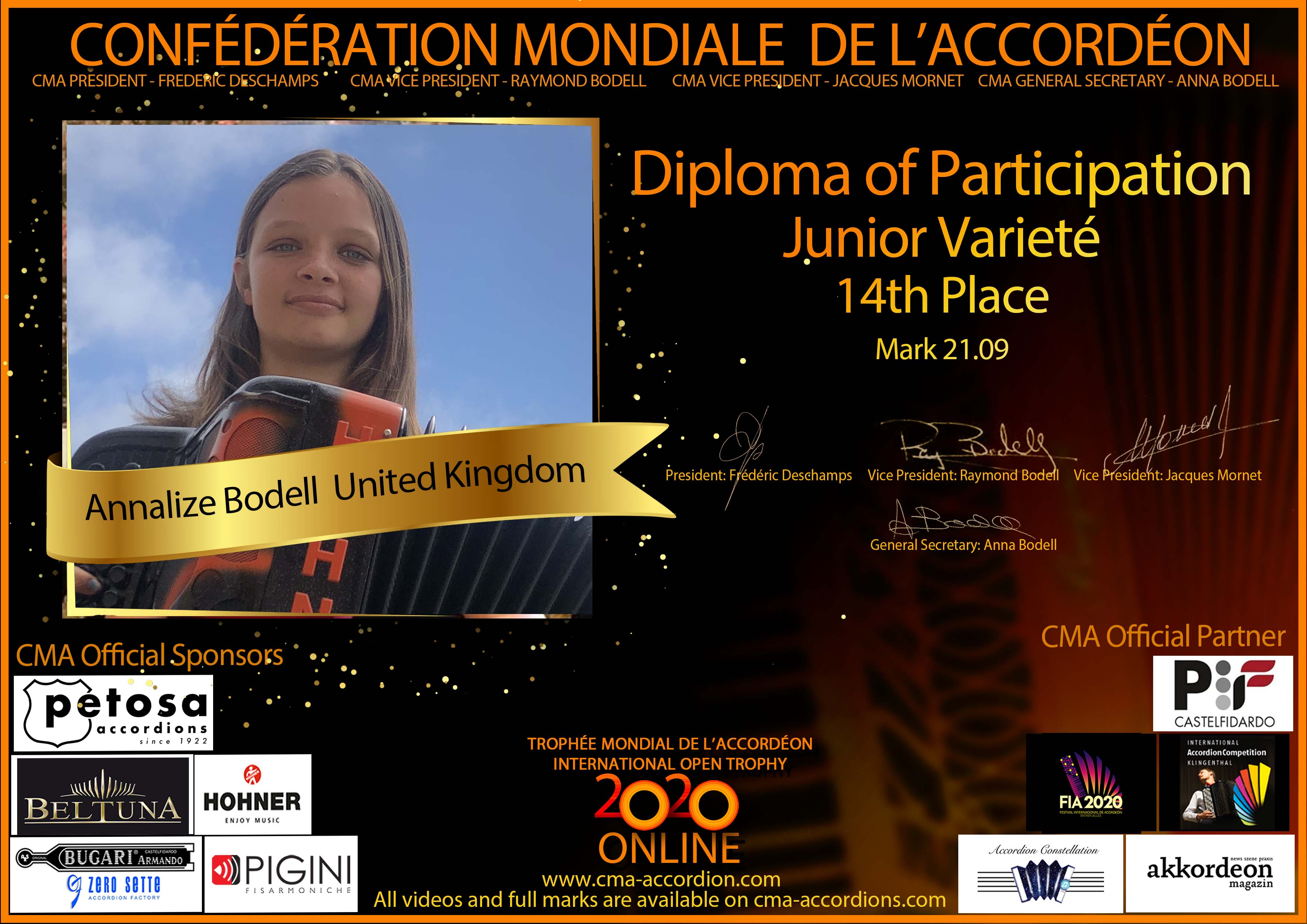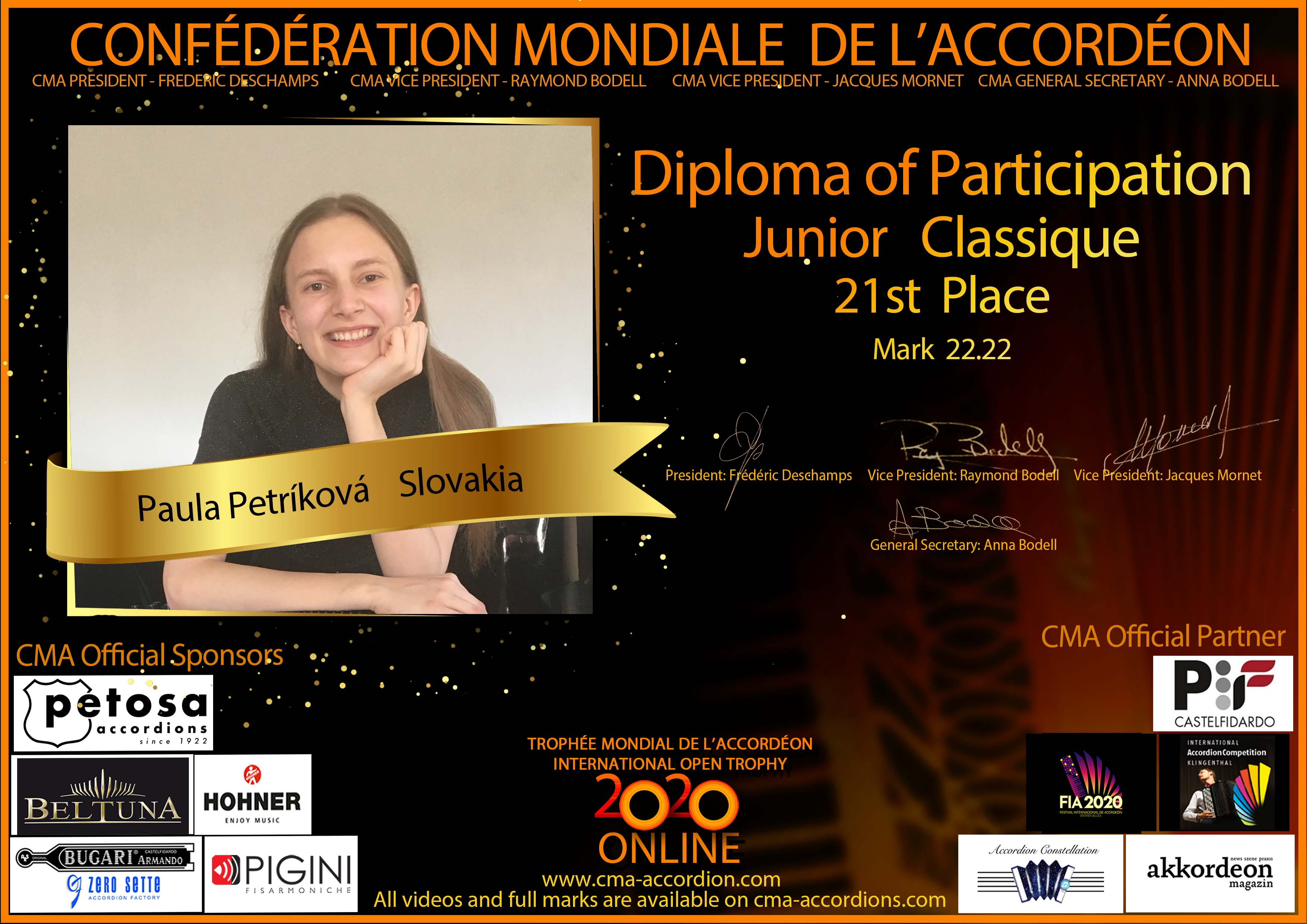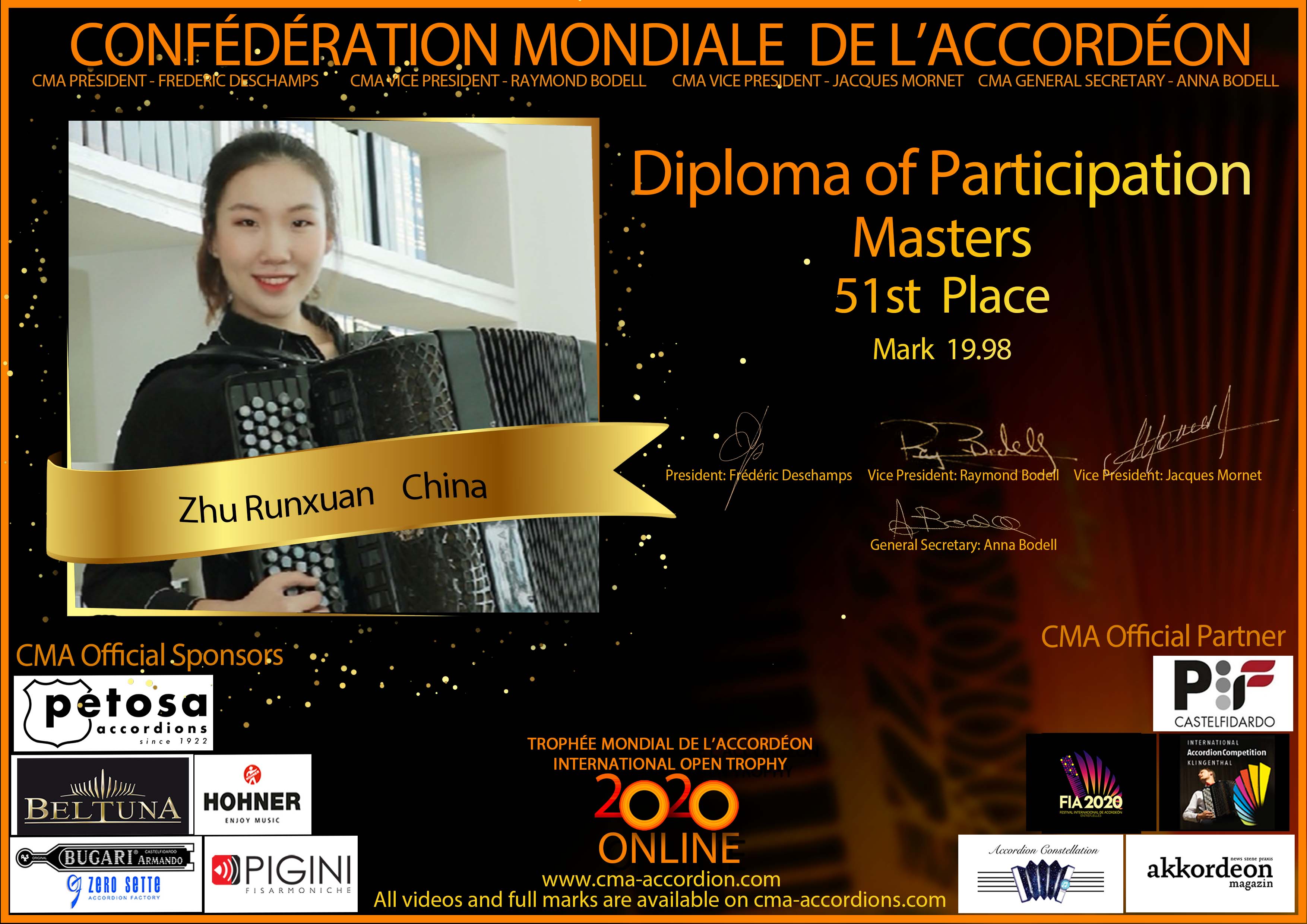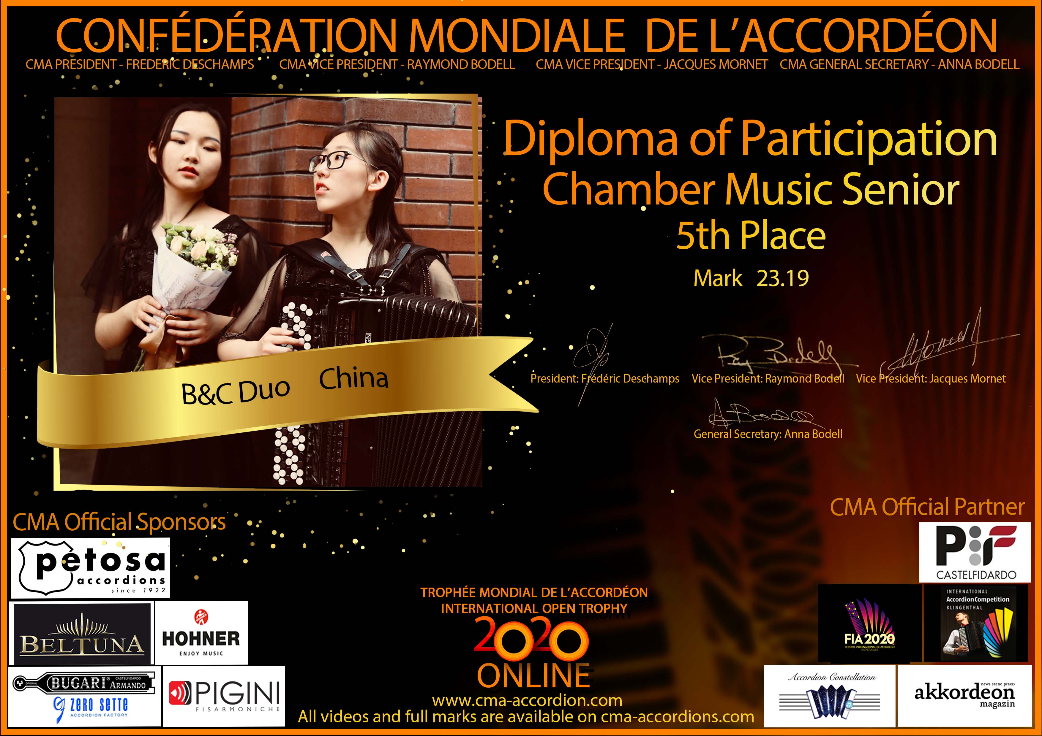 Candidates diploma of Trophee Mondial